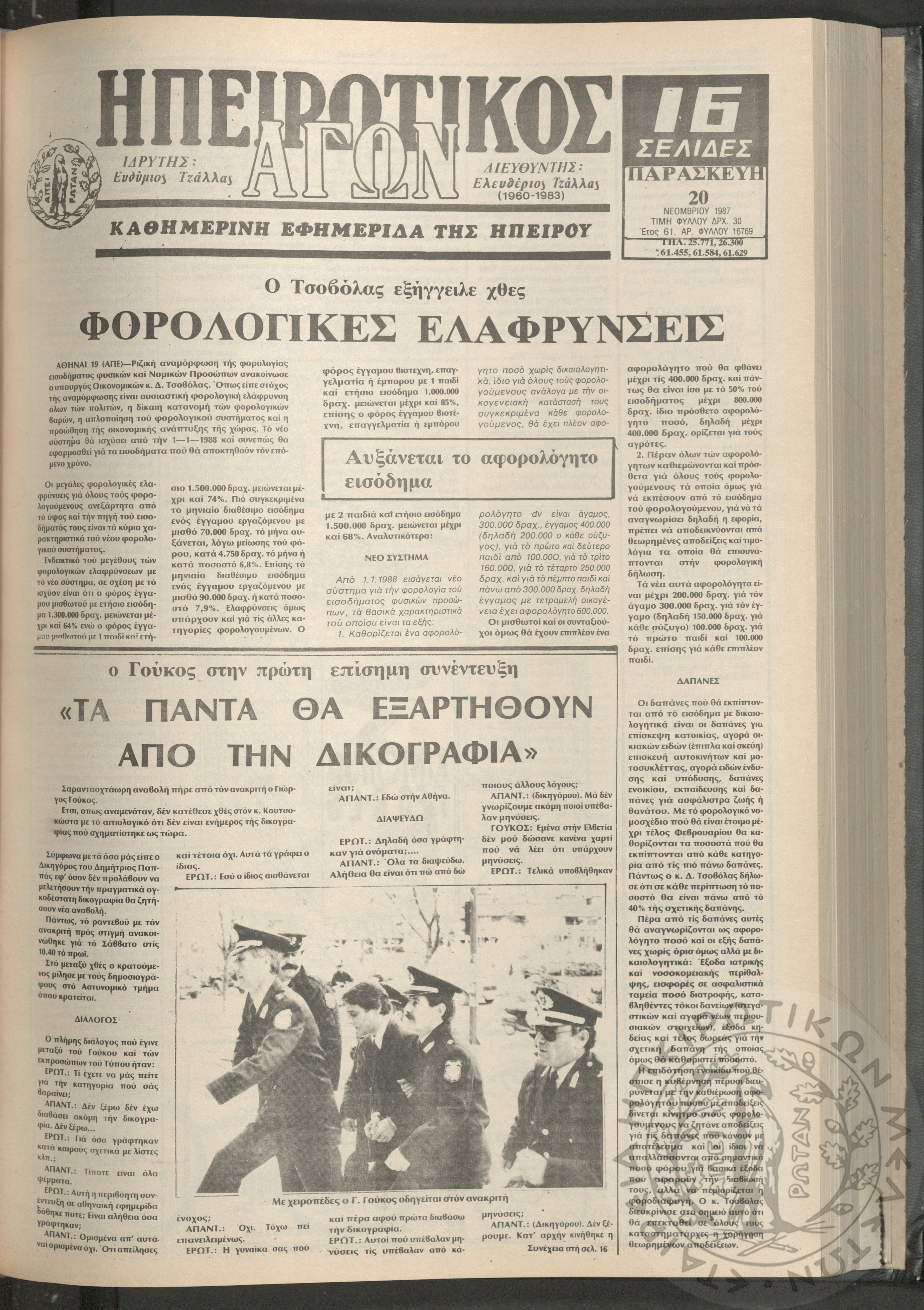 Ηπειρωτικός Αγών: καθημερινή εφημερίδα της Ηπείρου, 1987, φ. 16769
