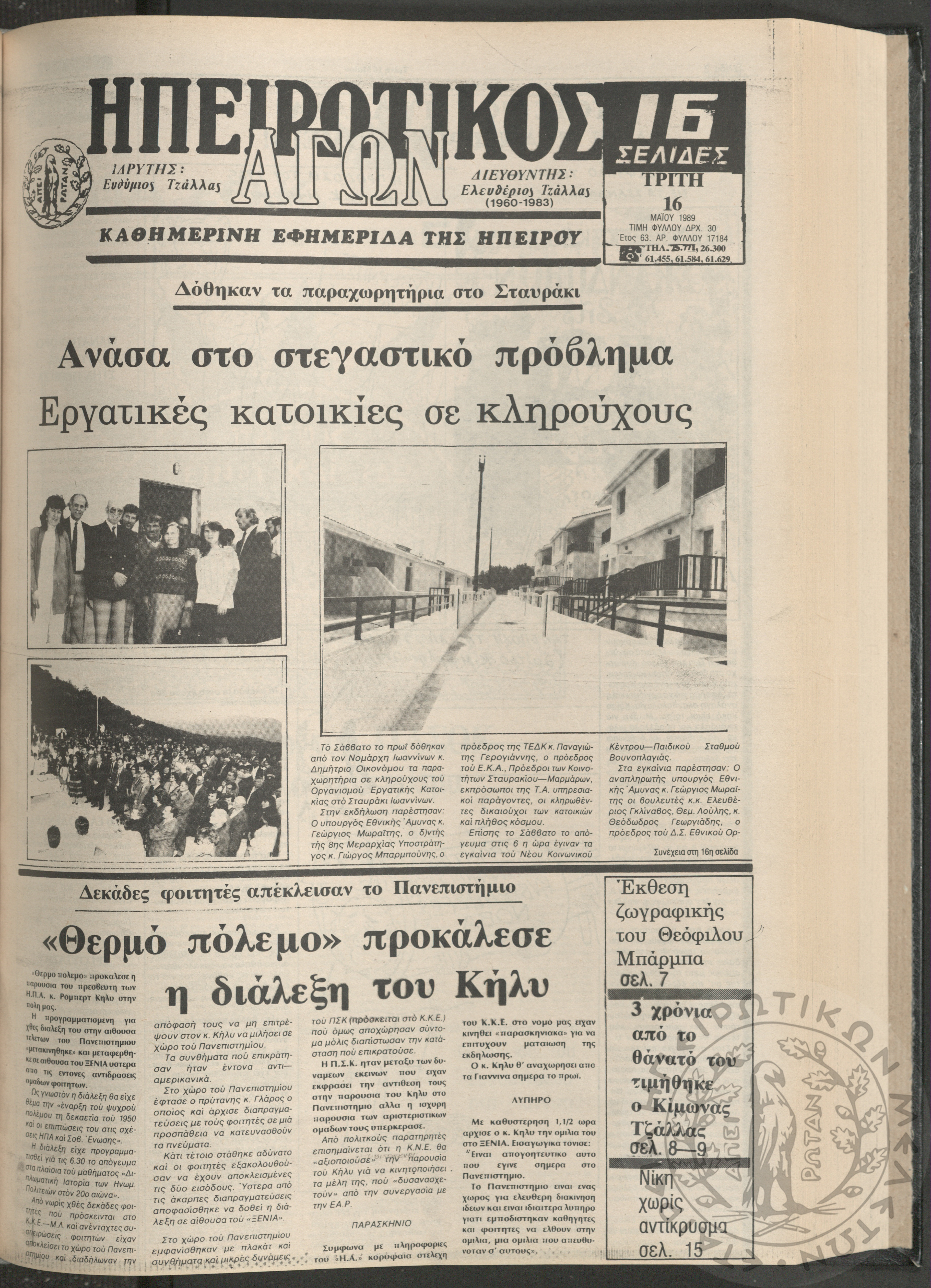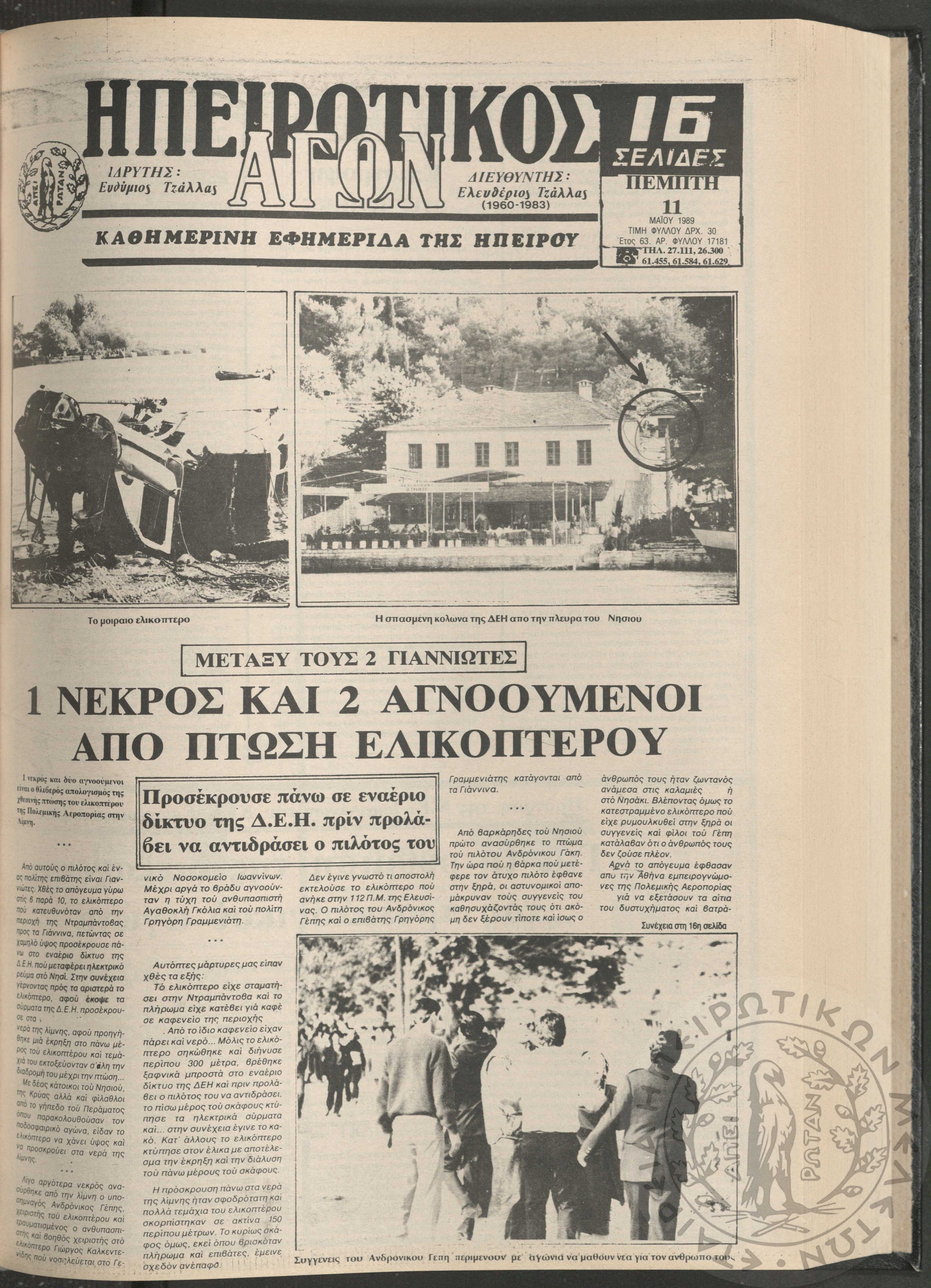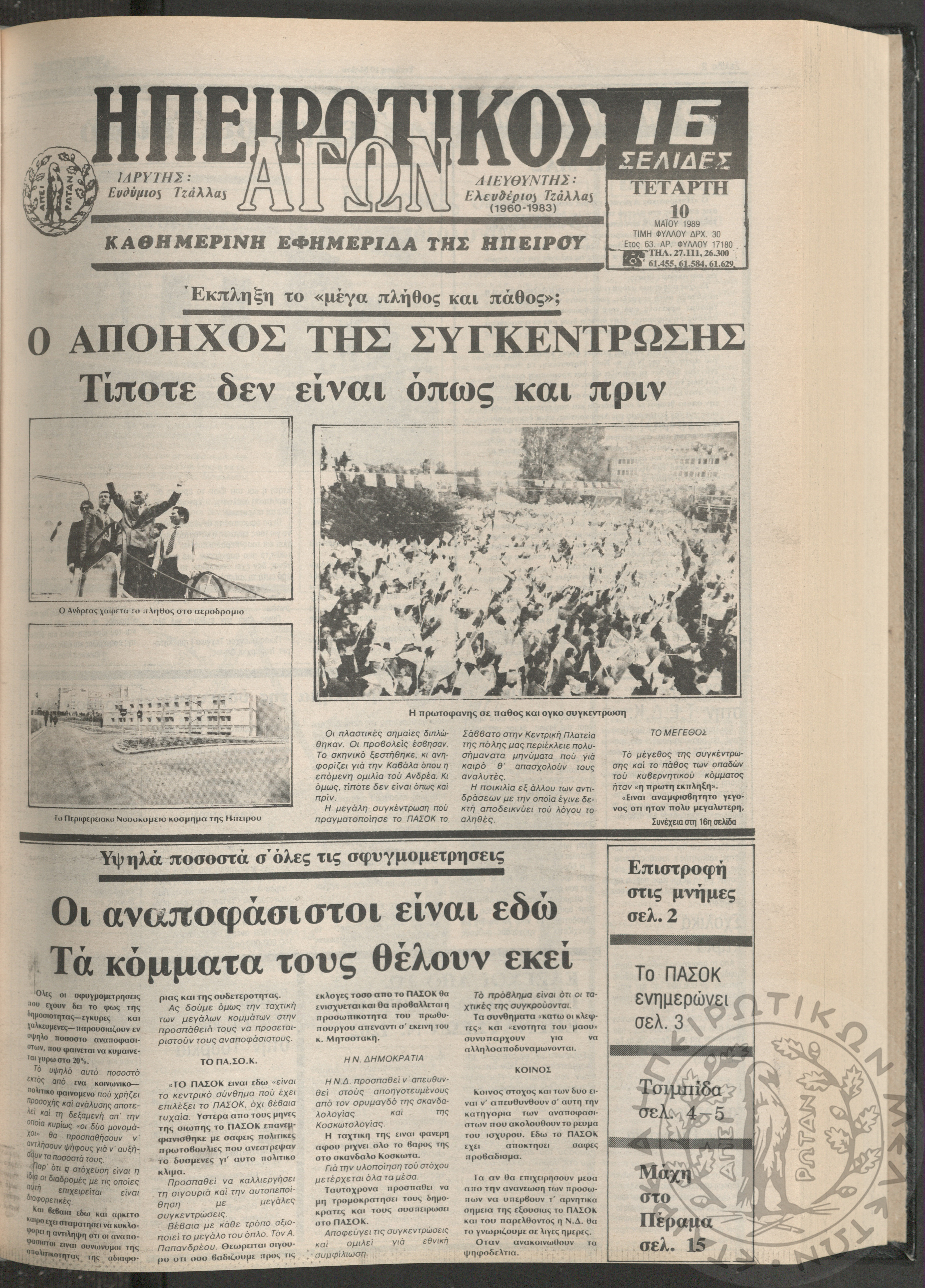 Ηπειρωτικός Αγών: καθημερινή εφημερίδα της Ηπείρου, 1989, φ. 17179