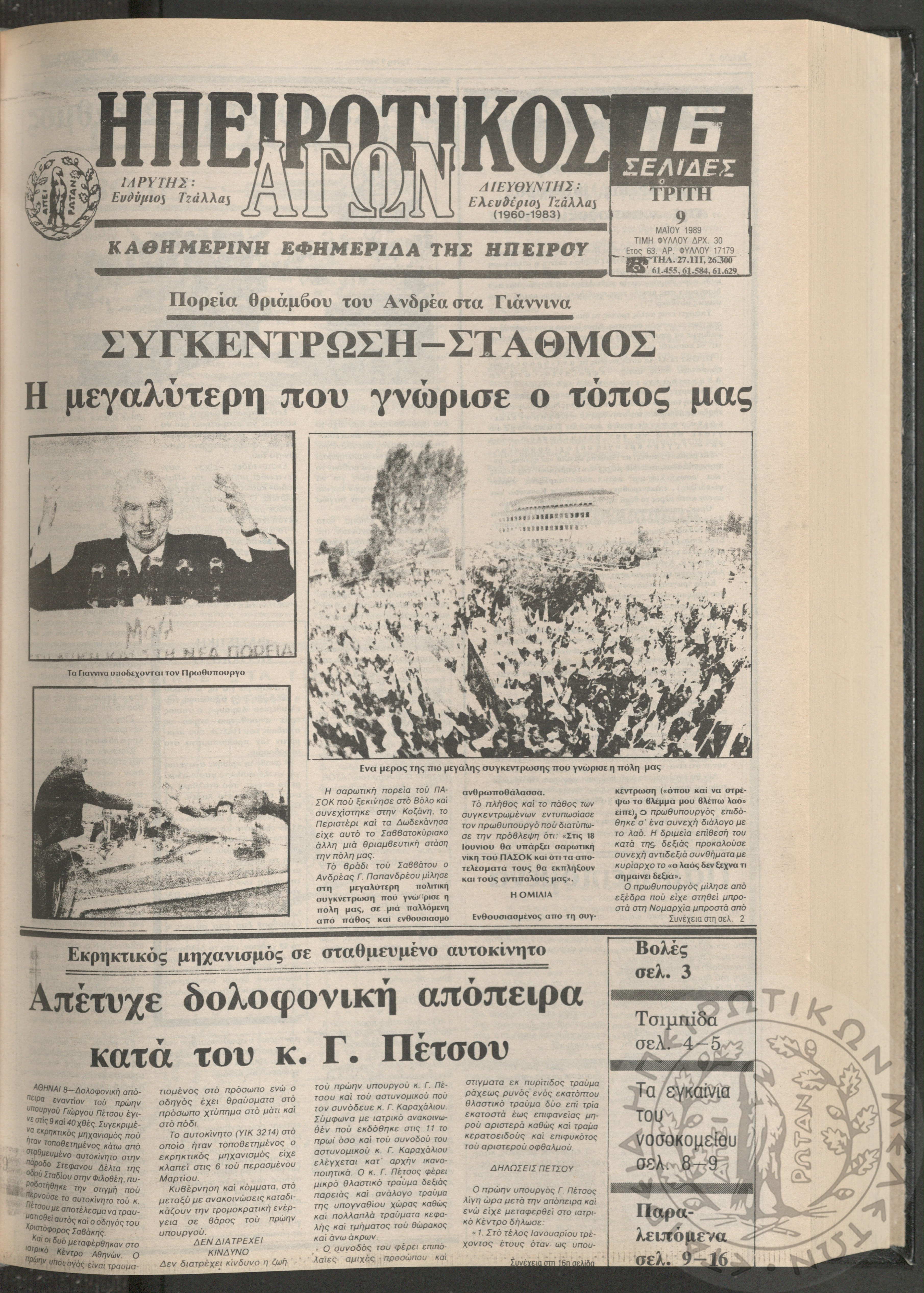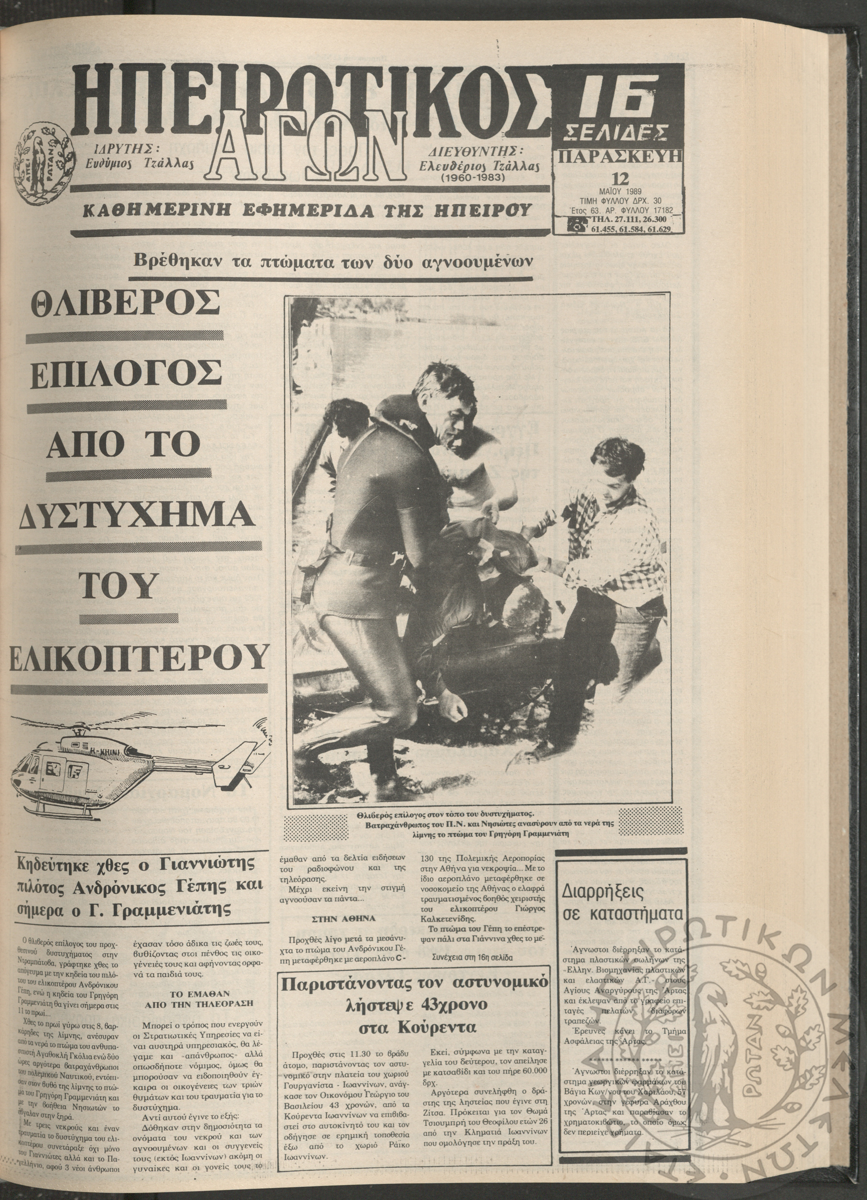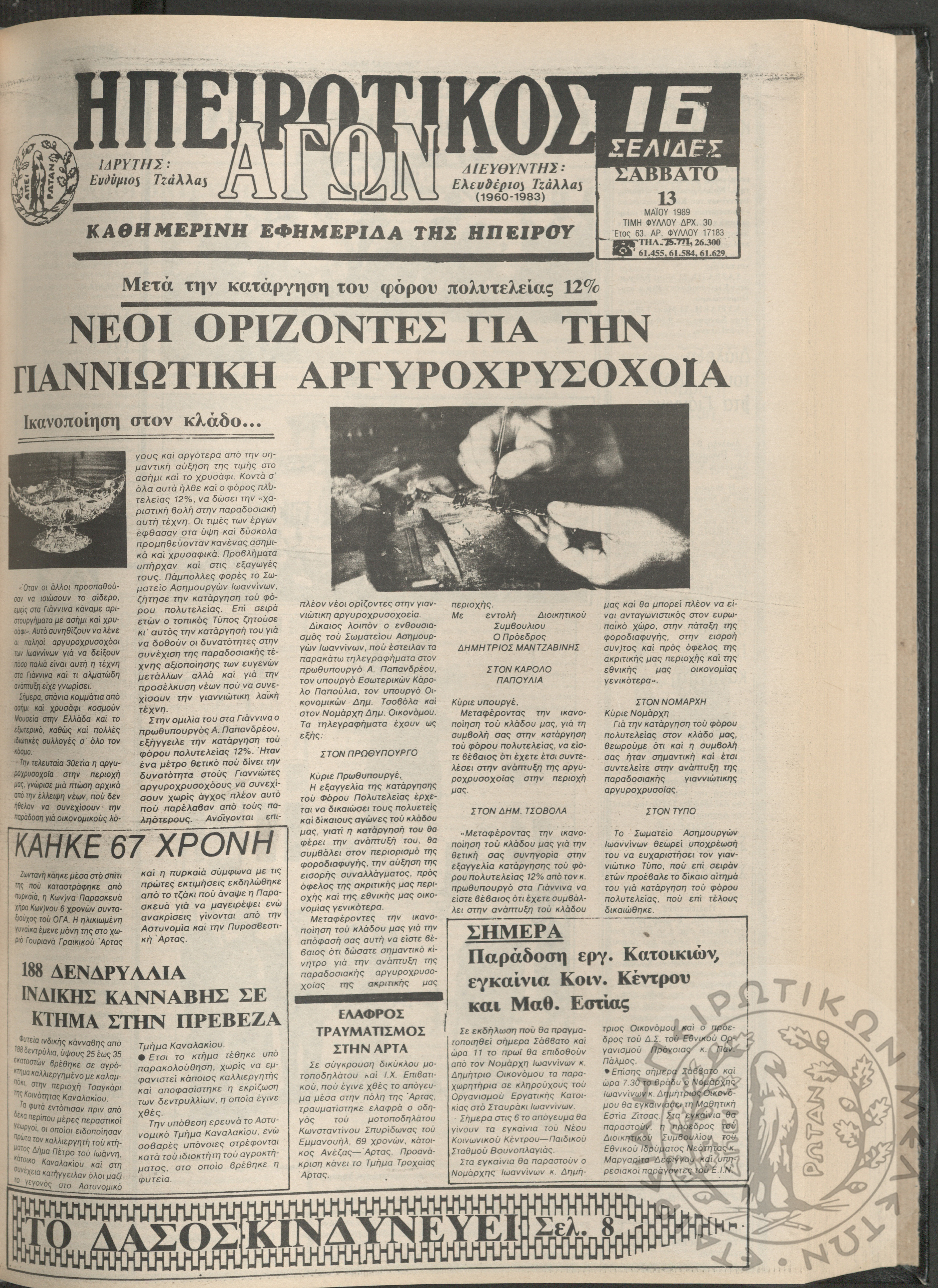 Ηπειρωτικός Αγών: καθημερινή εφημερίδα της Ηπείρου, 1989, φ. 17179