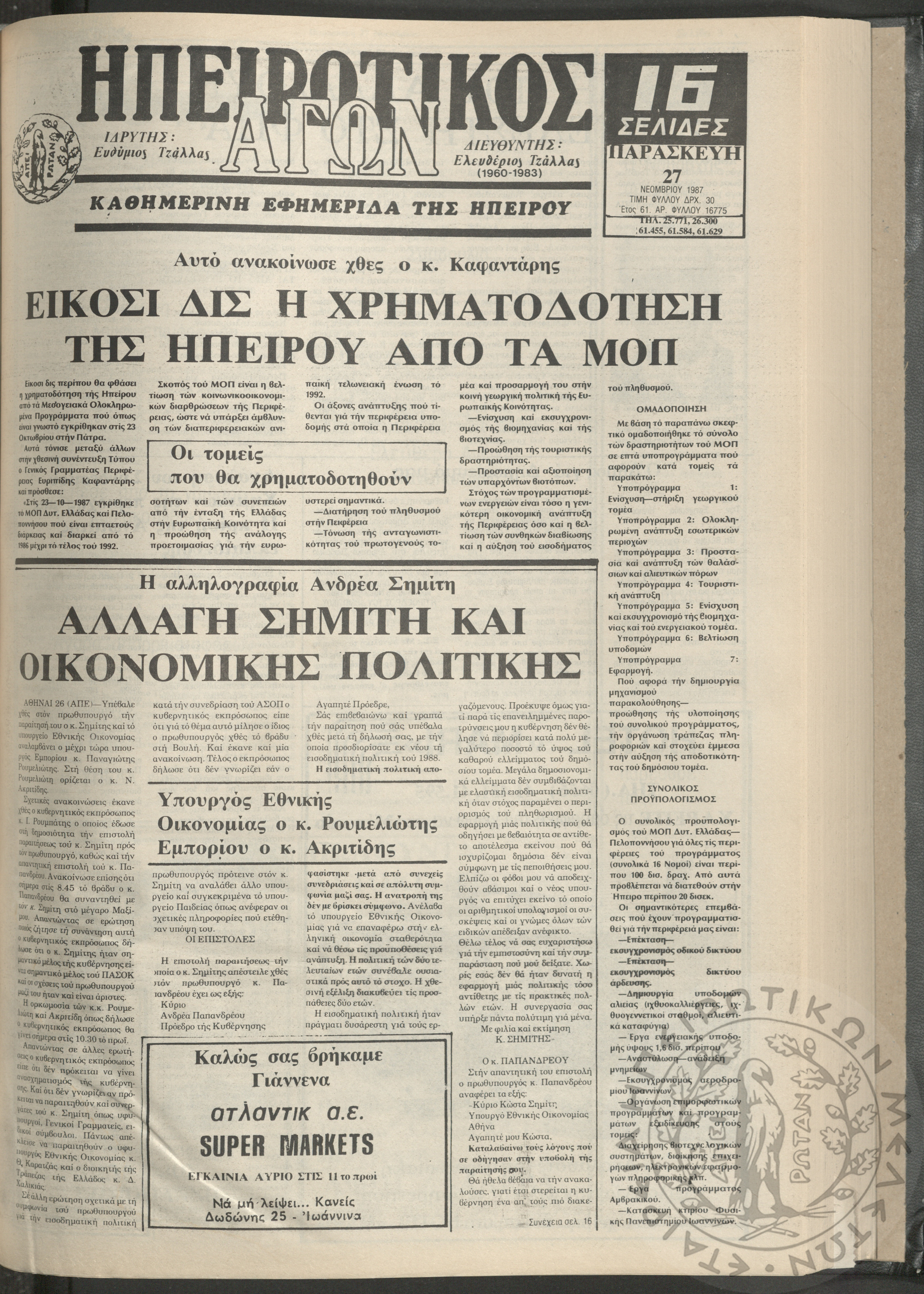 Ηπειρωτικός Αγών: καθημερινή εφημερίδα της Ηπείρου, 1987, φ. 16775