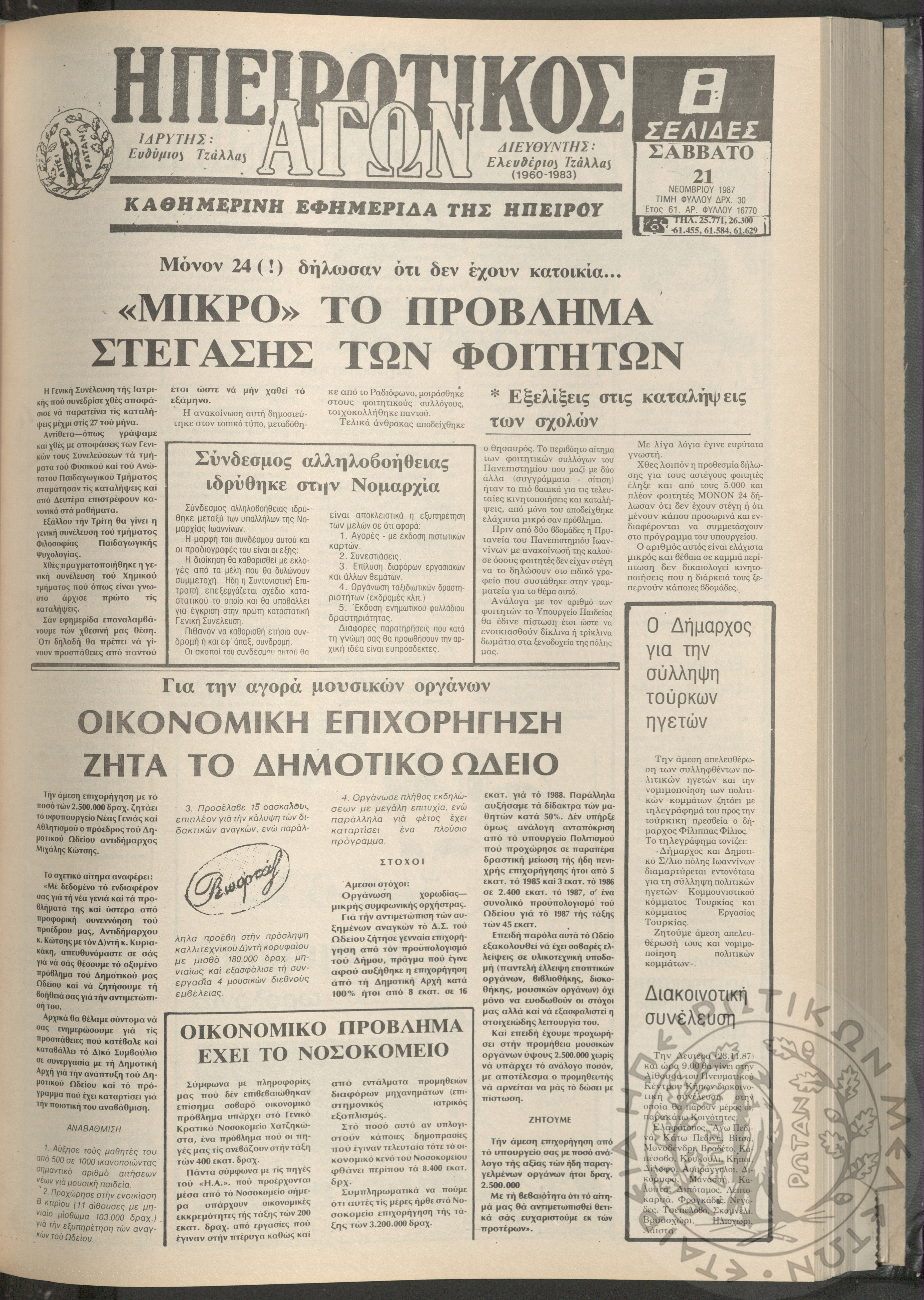 Ηπειρωτικός Αγών: καθημερινή εφημερίδα της Ηπείρου, 1987, φ. 16773
