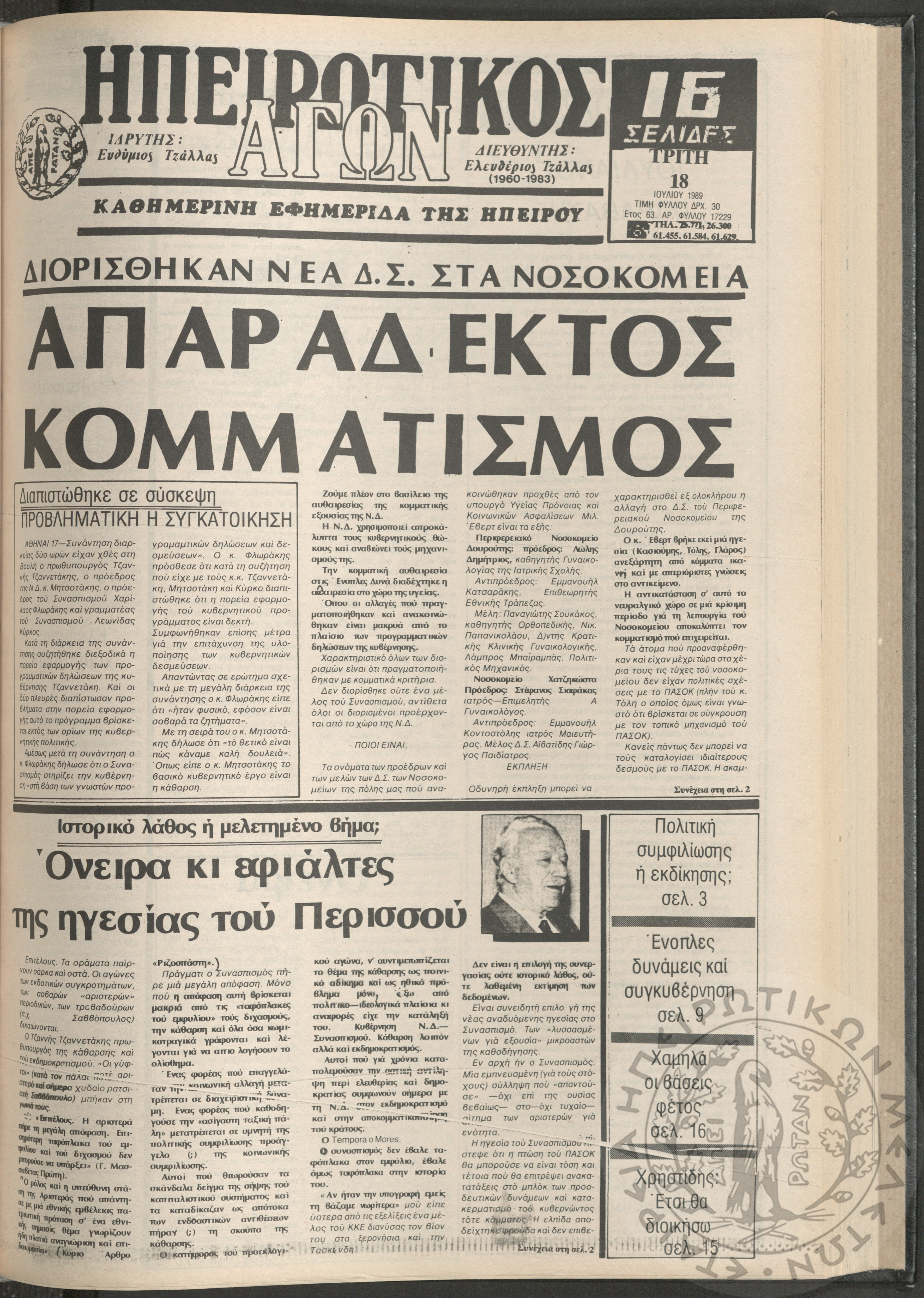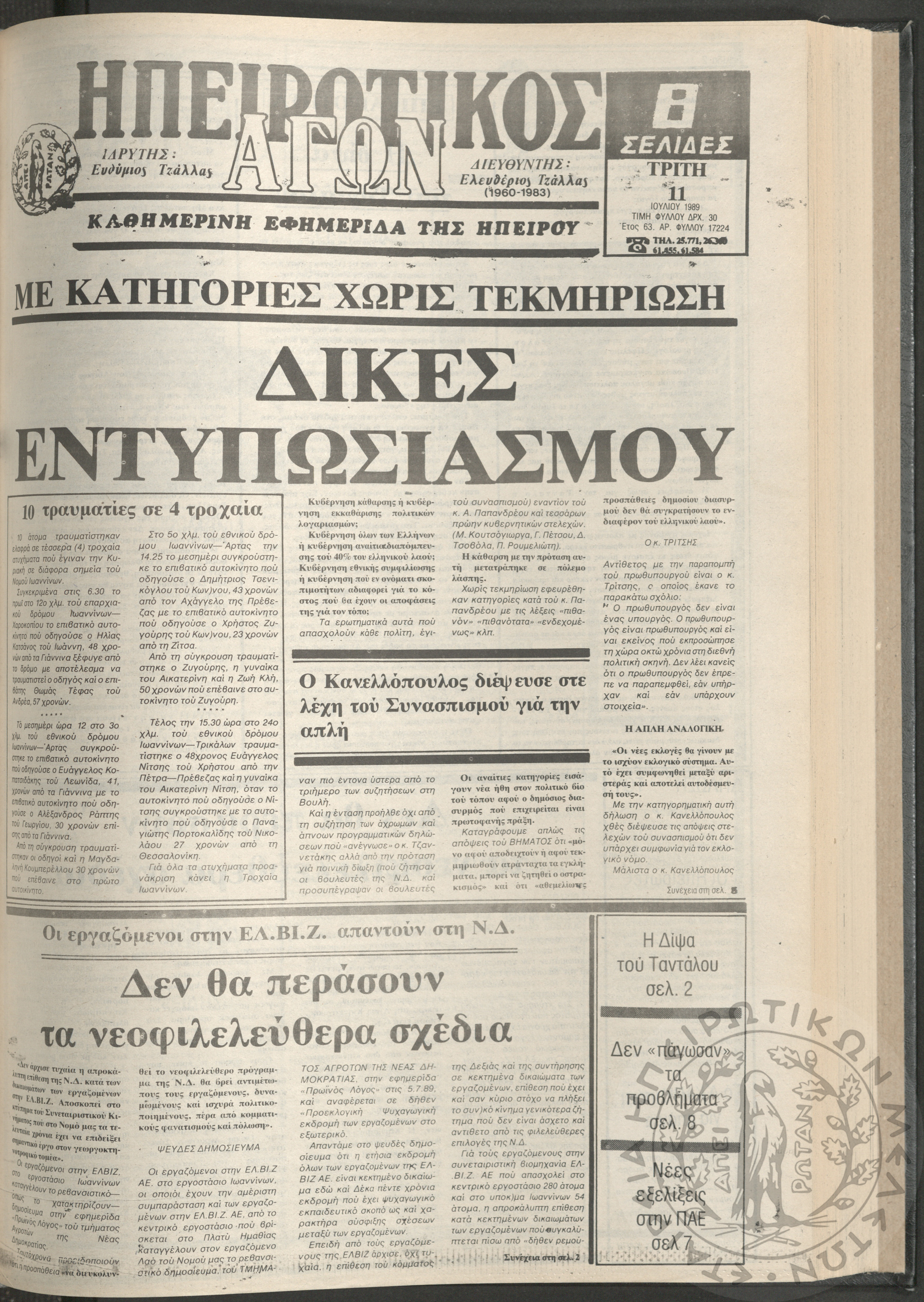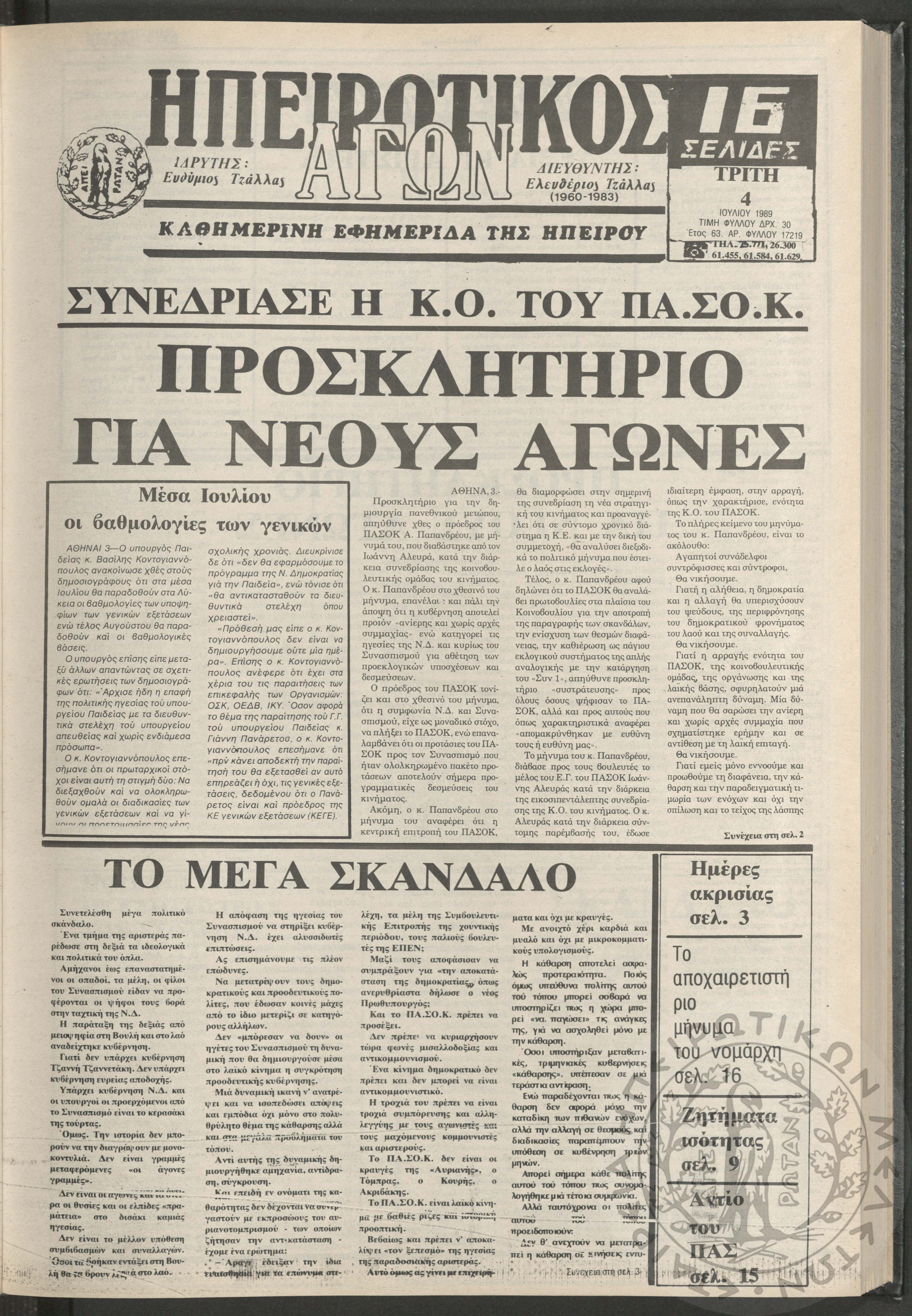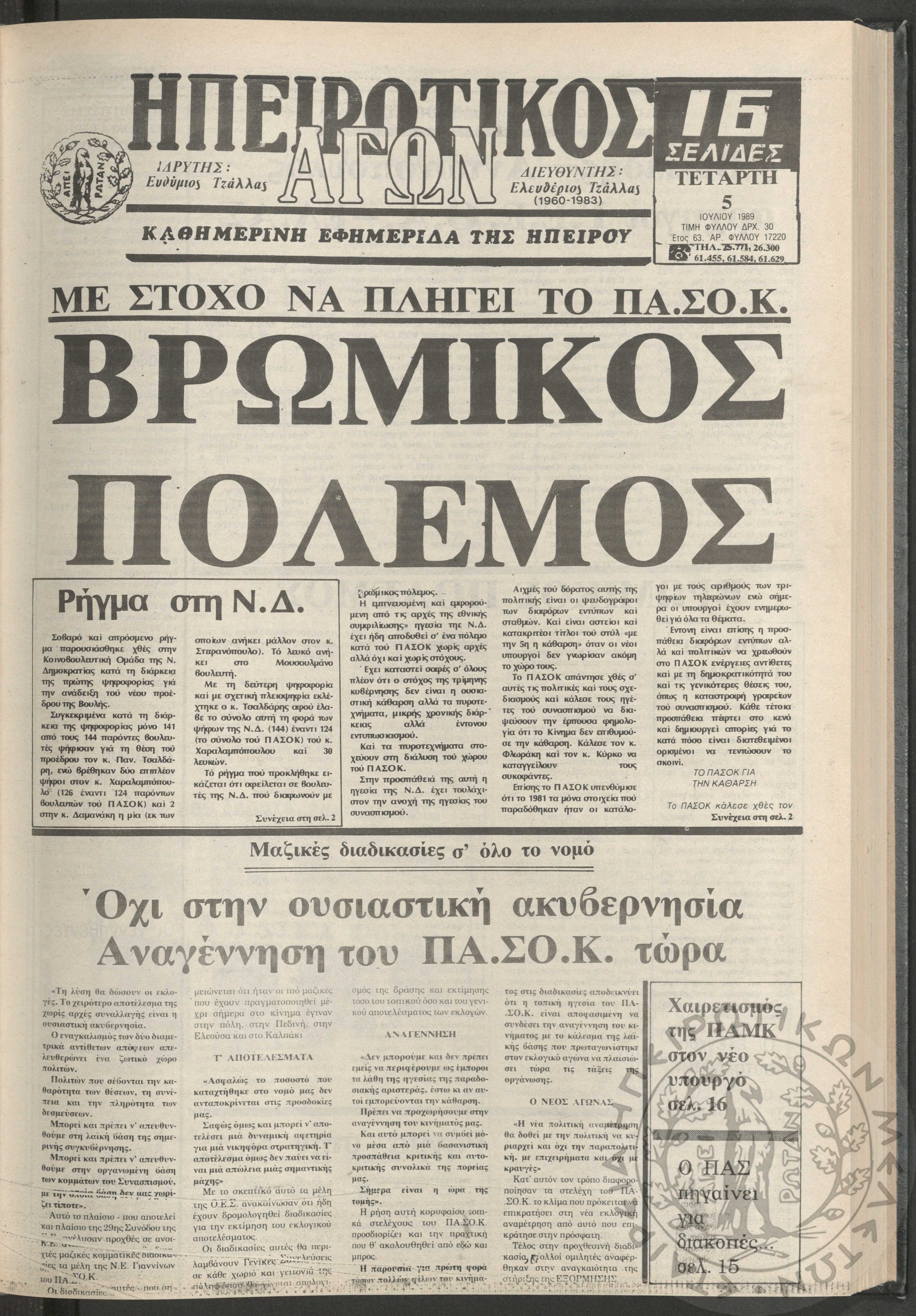 Ηπειρωτικός Αγών: καθημερινή εφημερίδα της Ηπείρου, 1989, φ. 17230