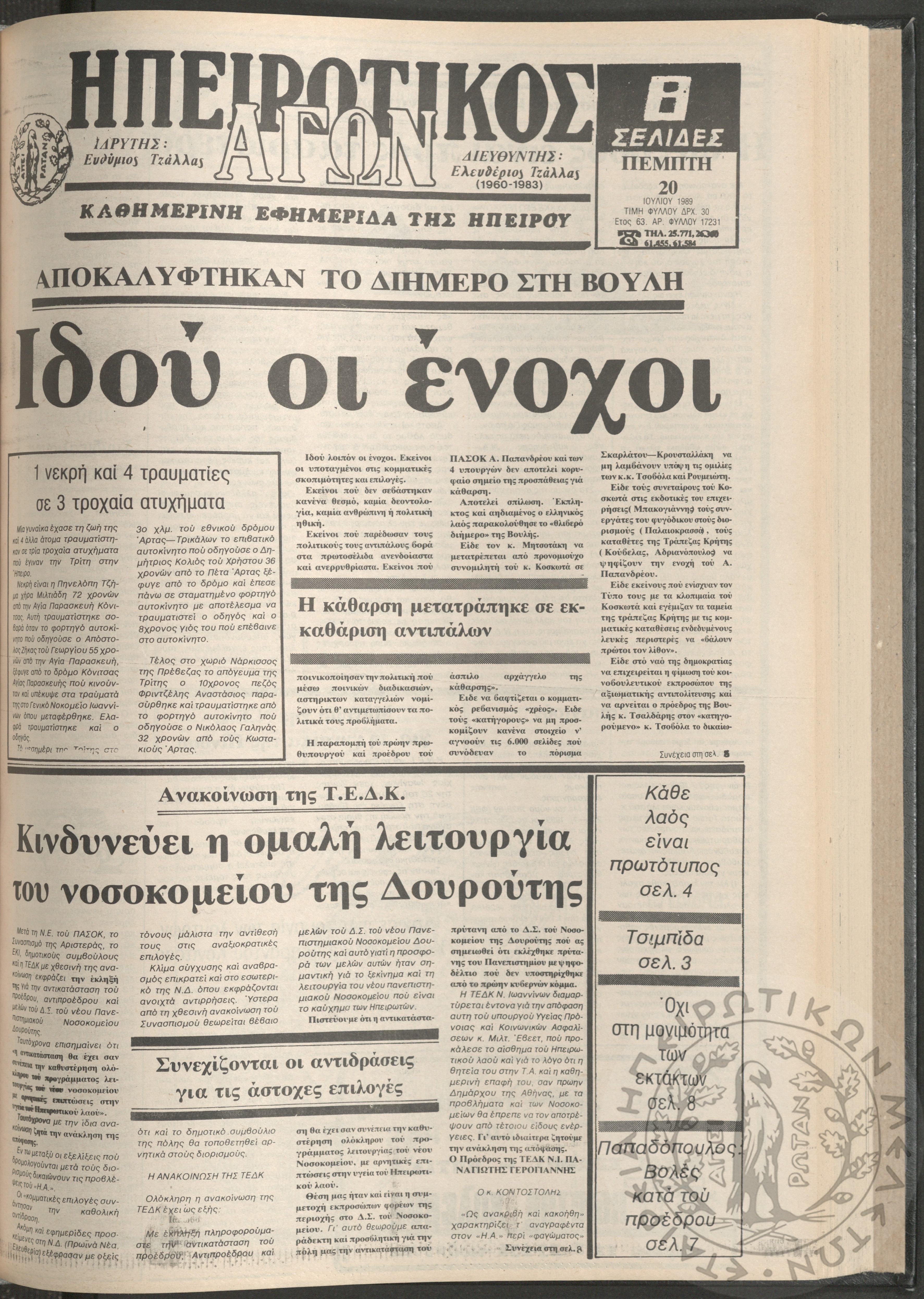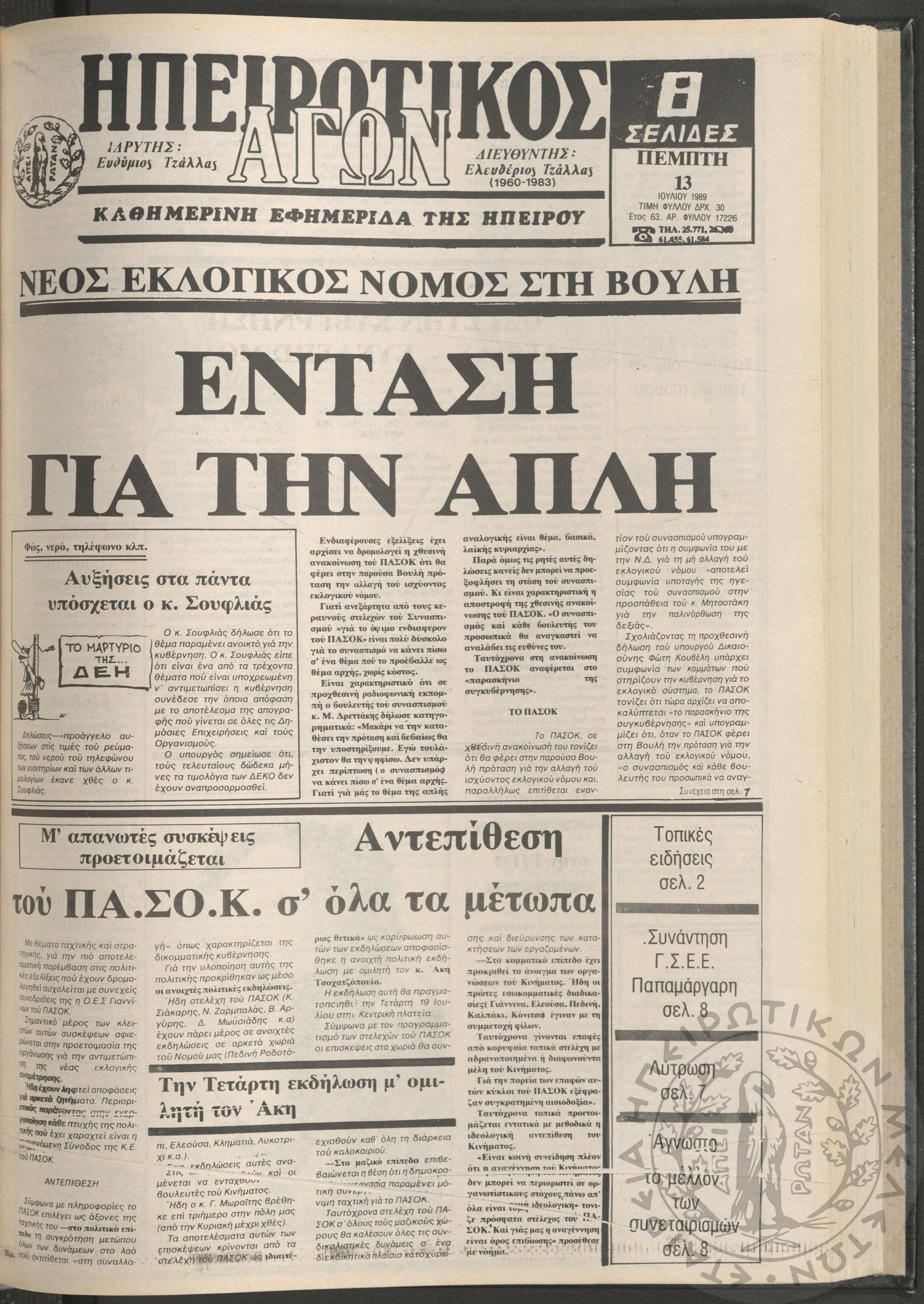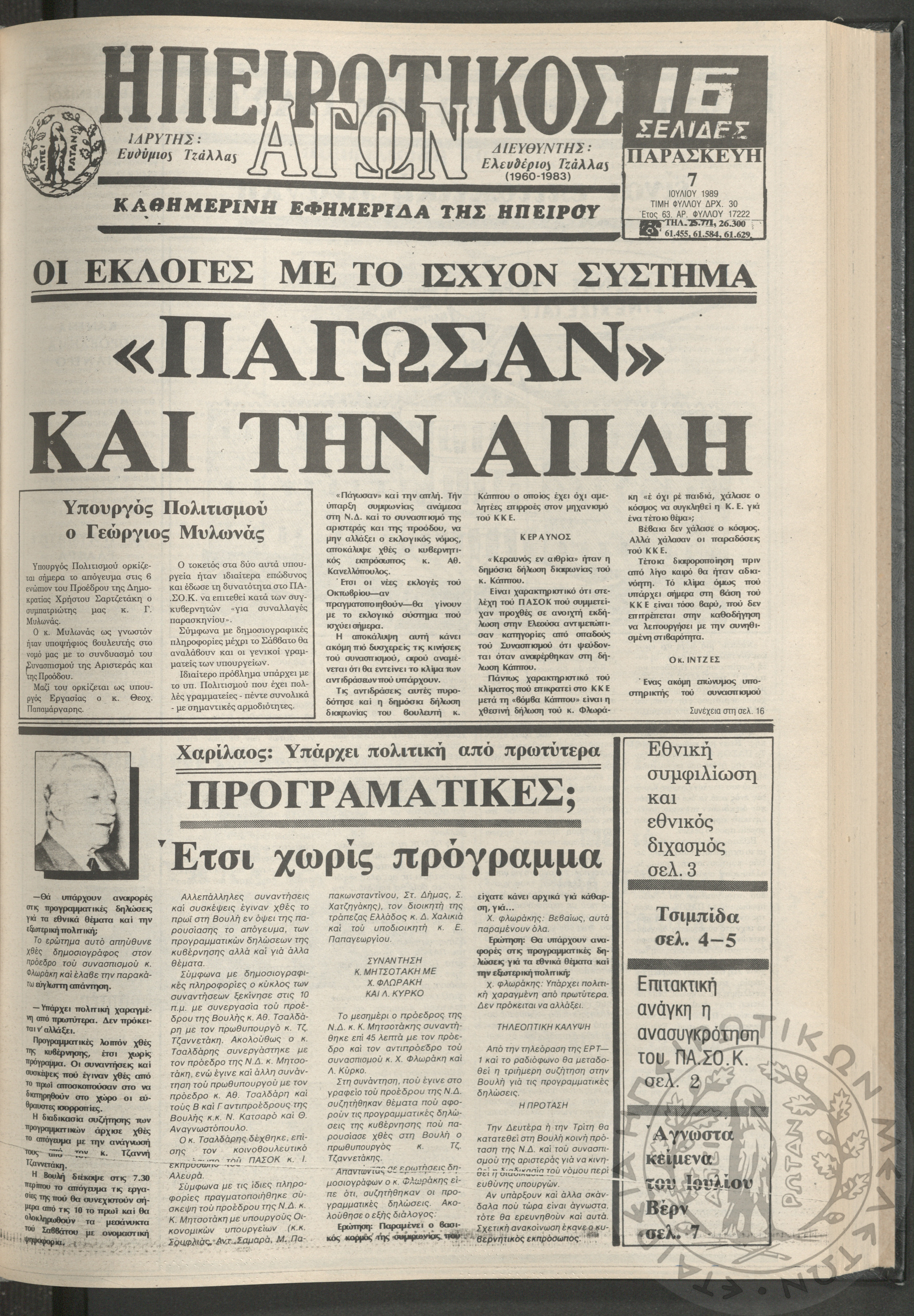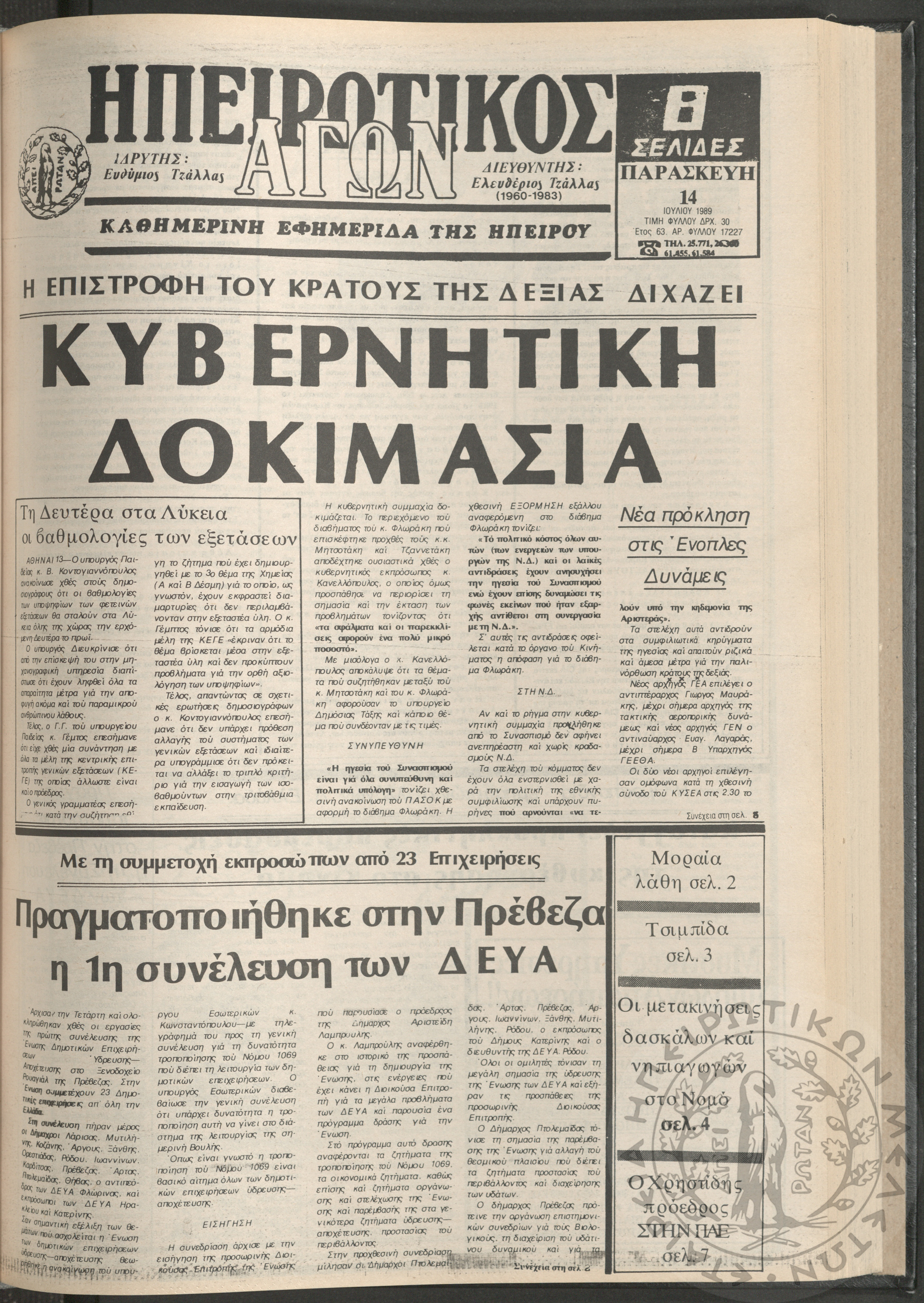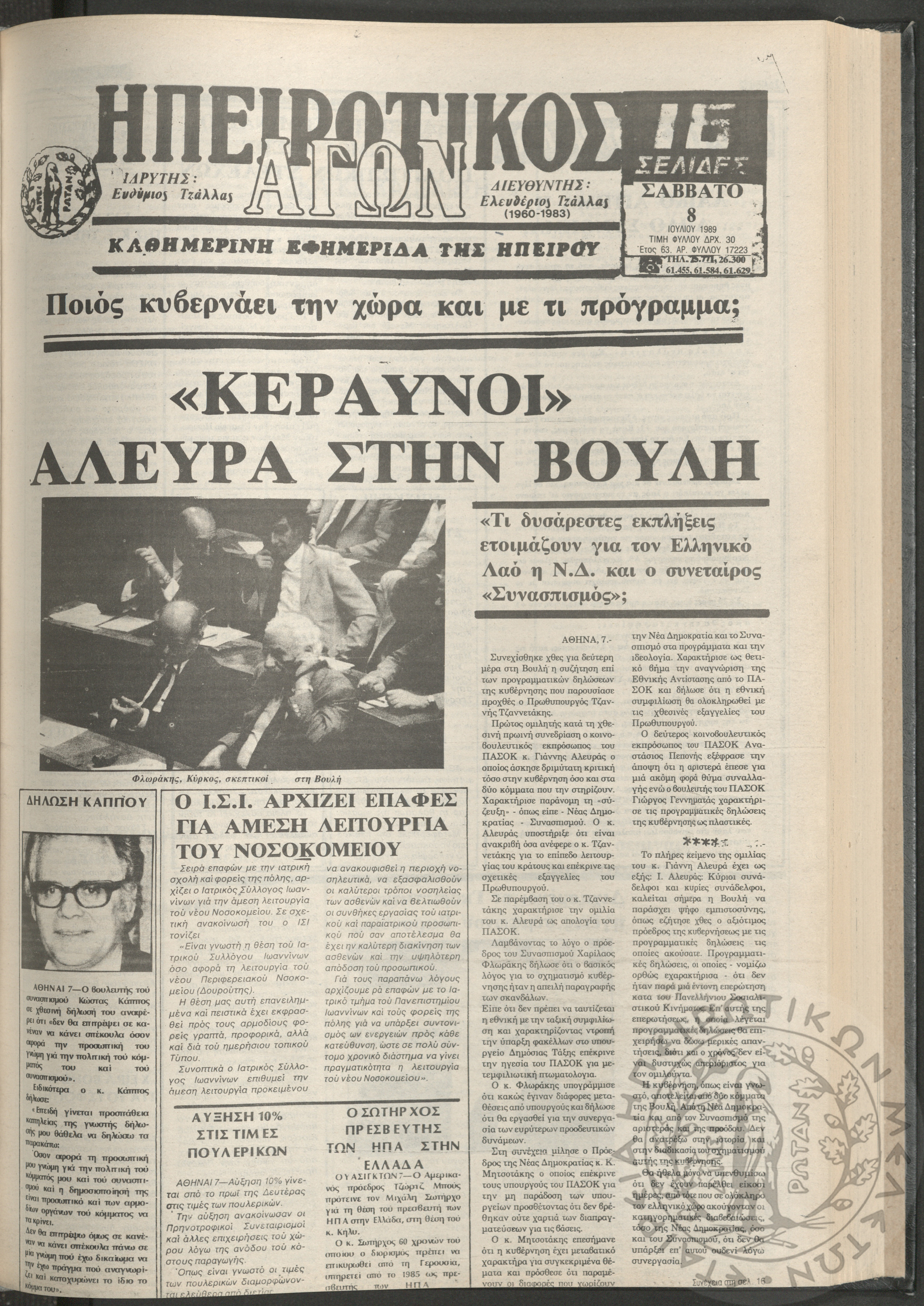 Ηπειρωτικός Αγών: καθημερινή εφημερίδα της Ηπείρου, 1989, φ. 17230