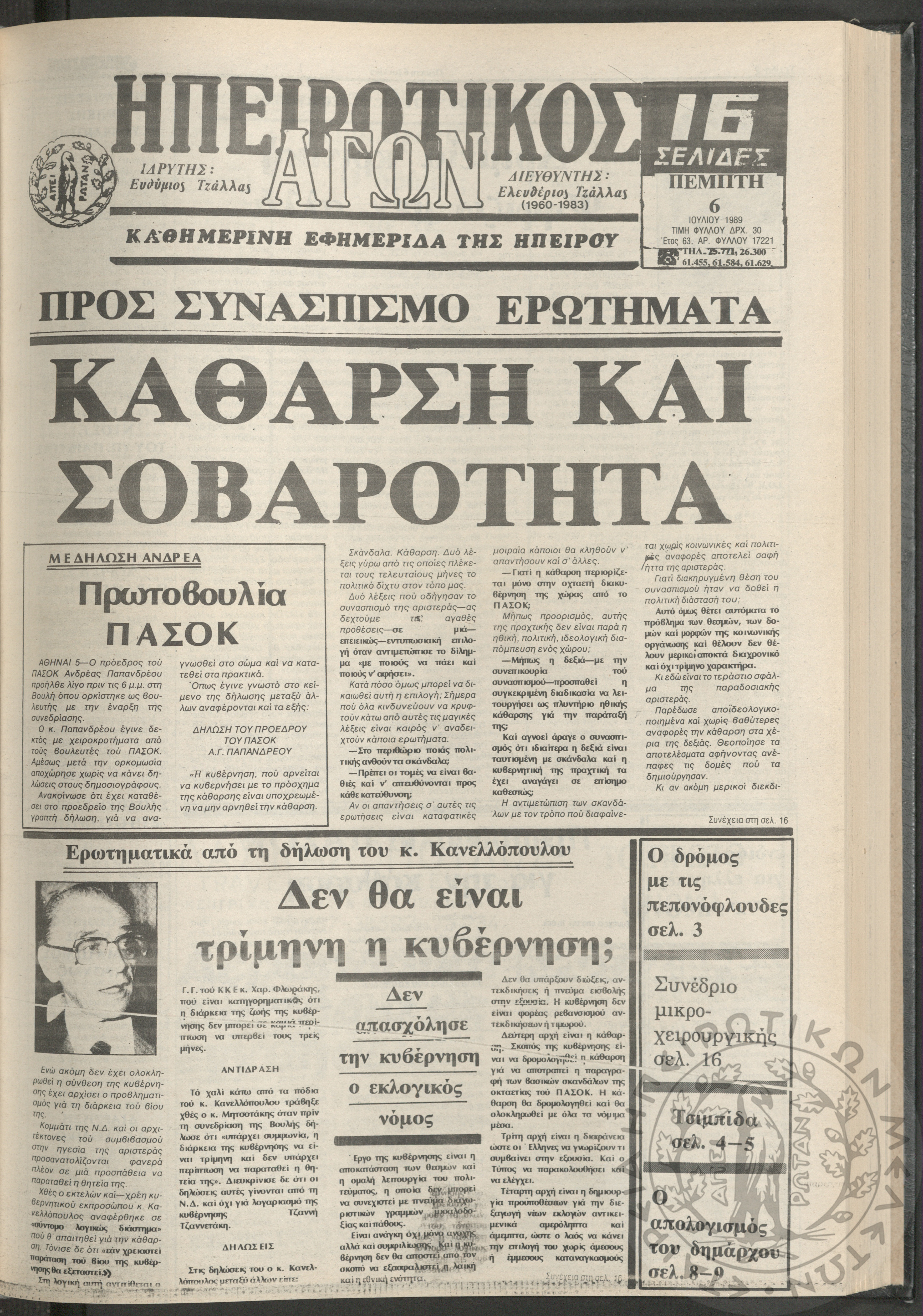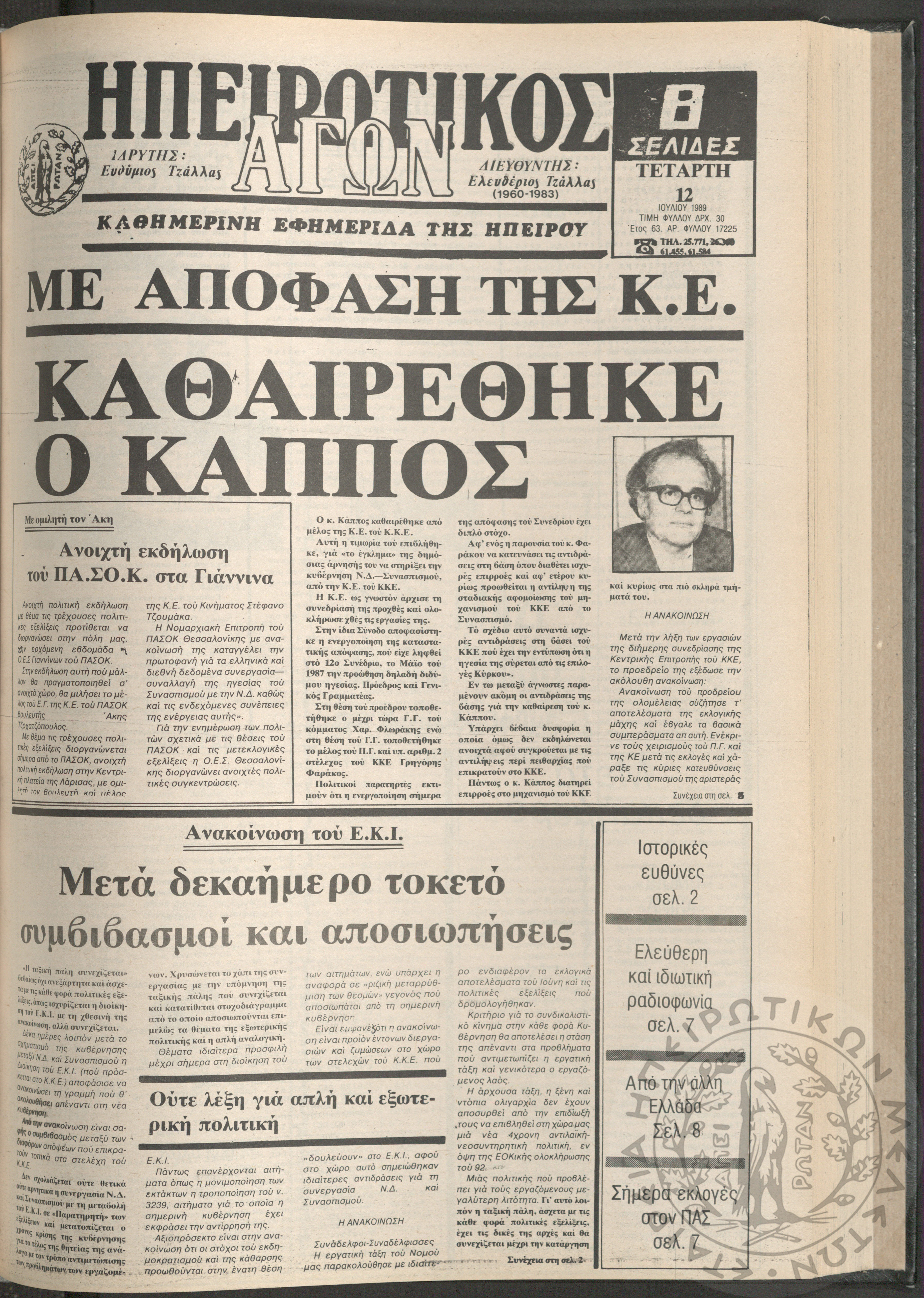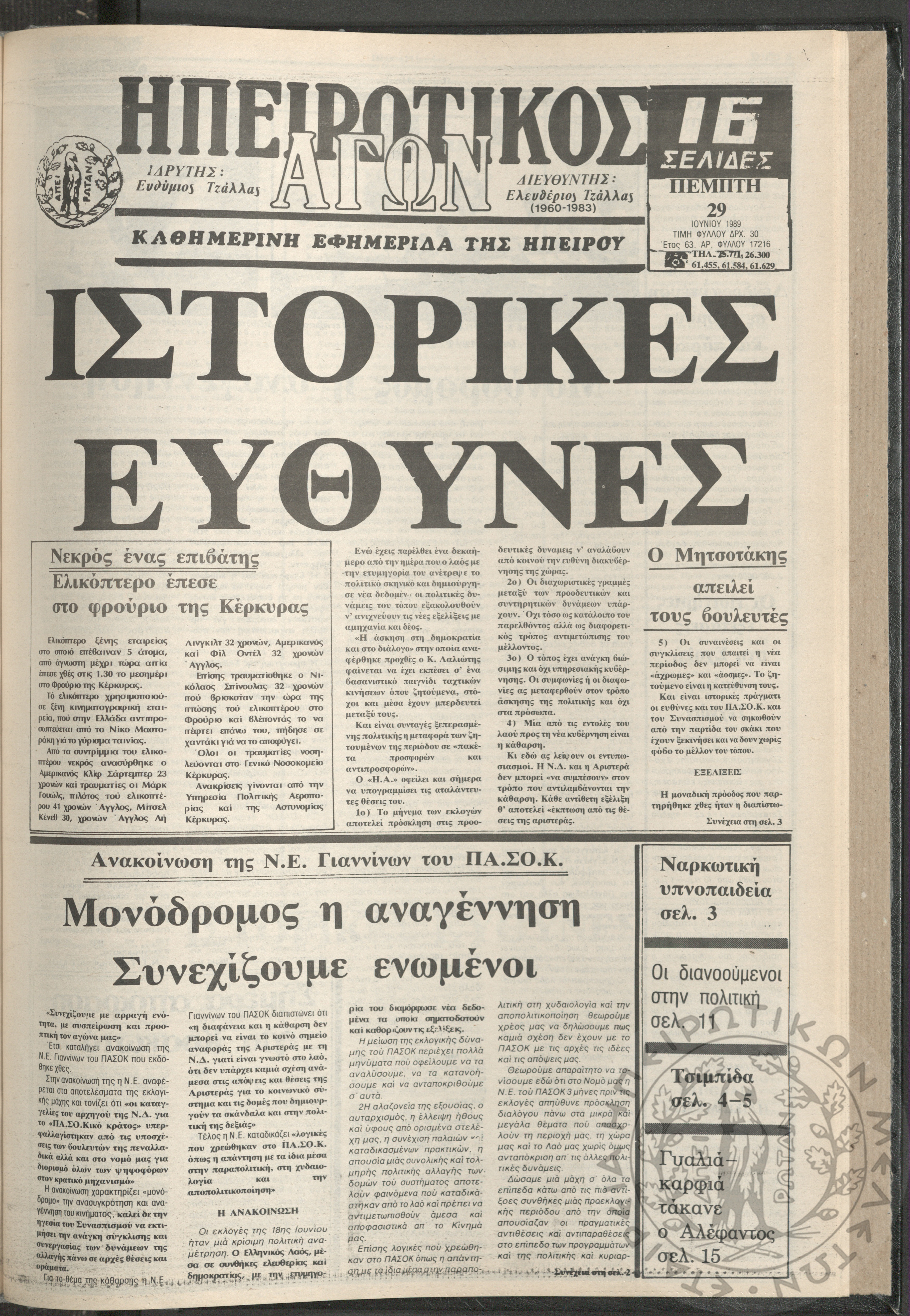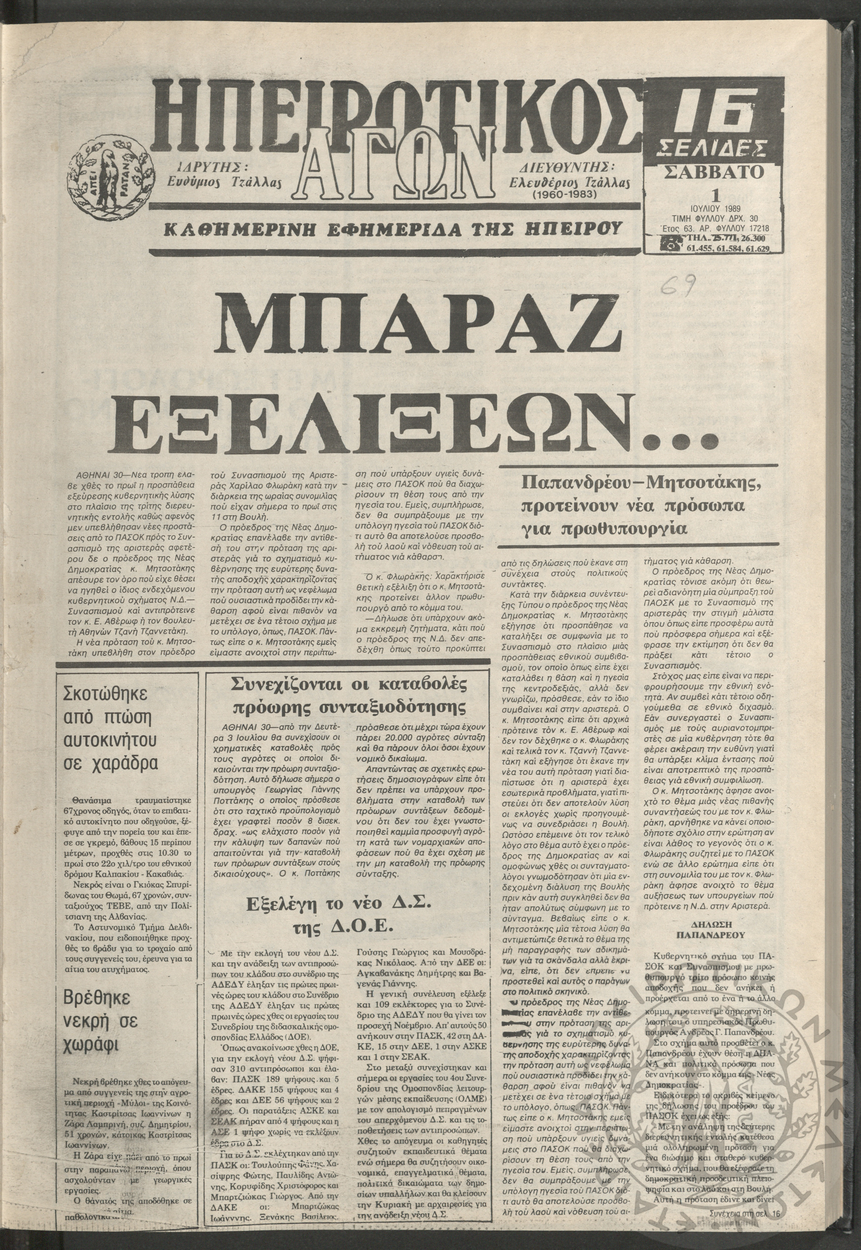 Ηπειρωτικός Αγών: καθημερινή εφημερίδα της Ηπείρου, 1989, φ. 17230