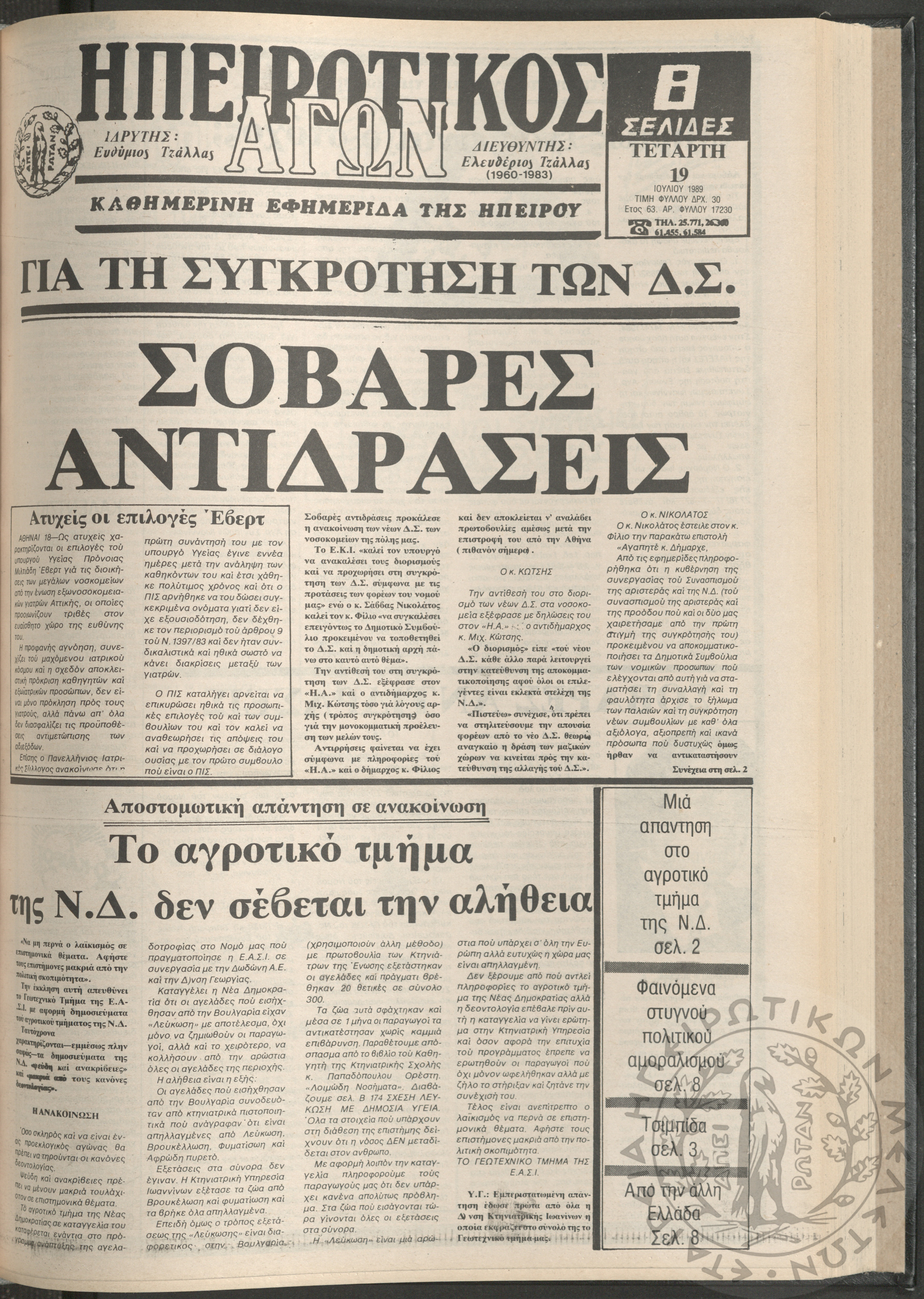 Ηπειρωτικός Αγών: καθημερινή εφημερίδα της Ηπείρου, 1989, φ. 17219