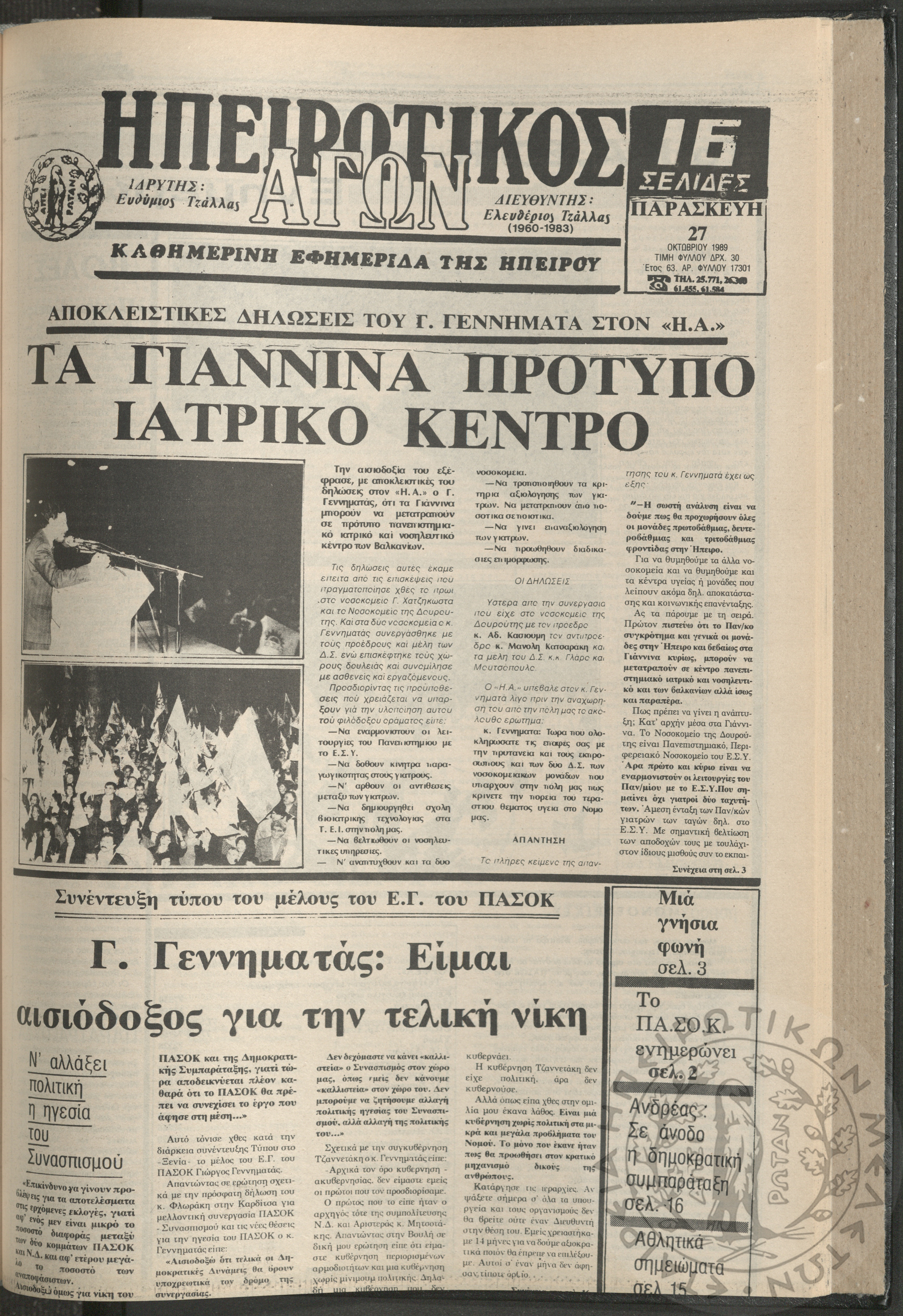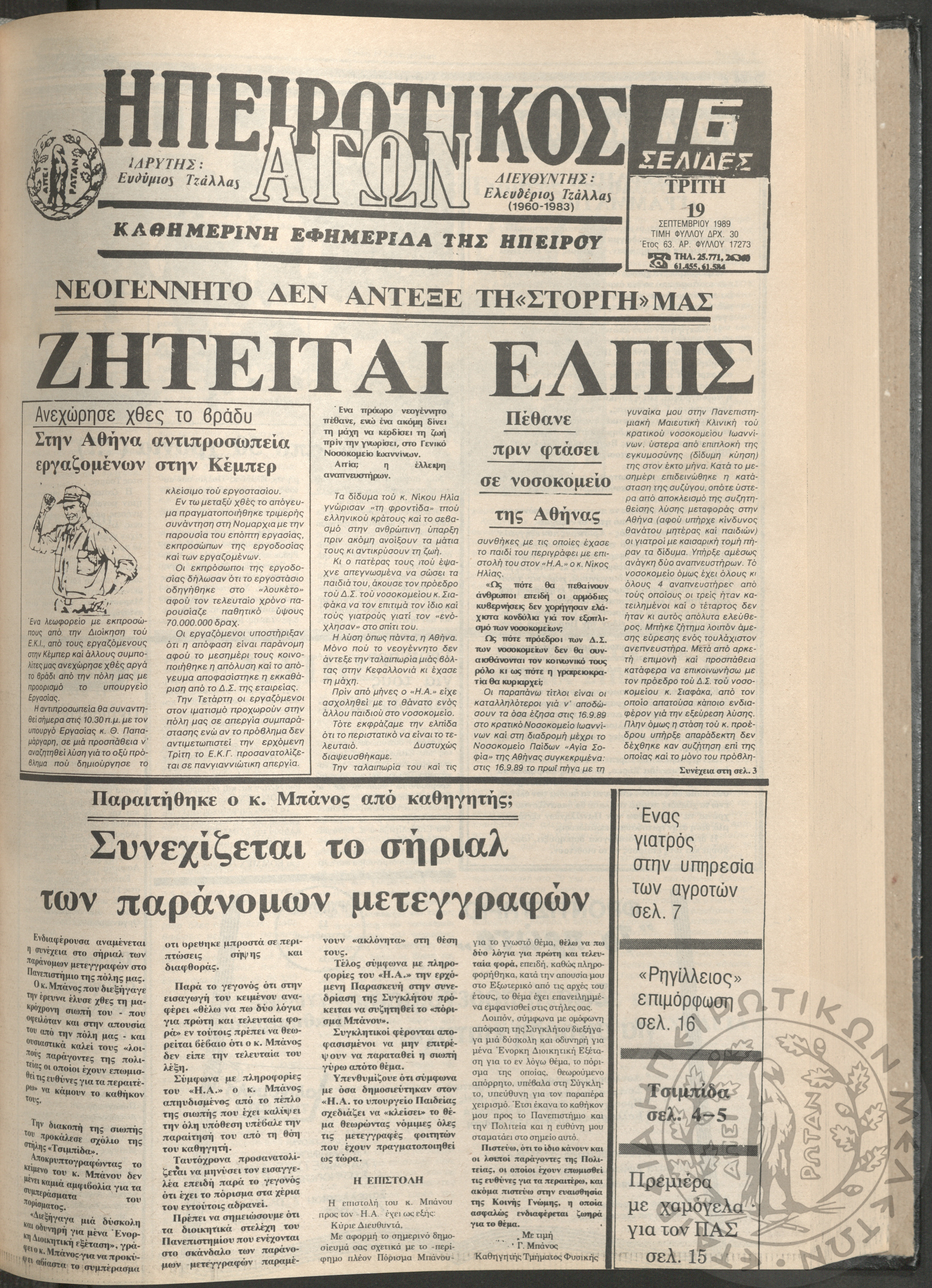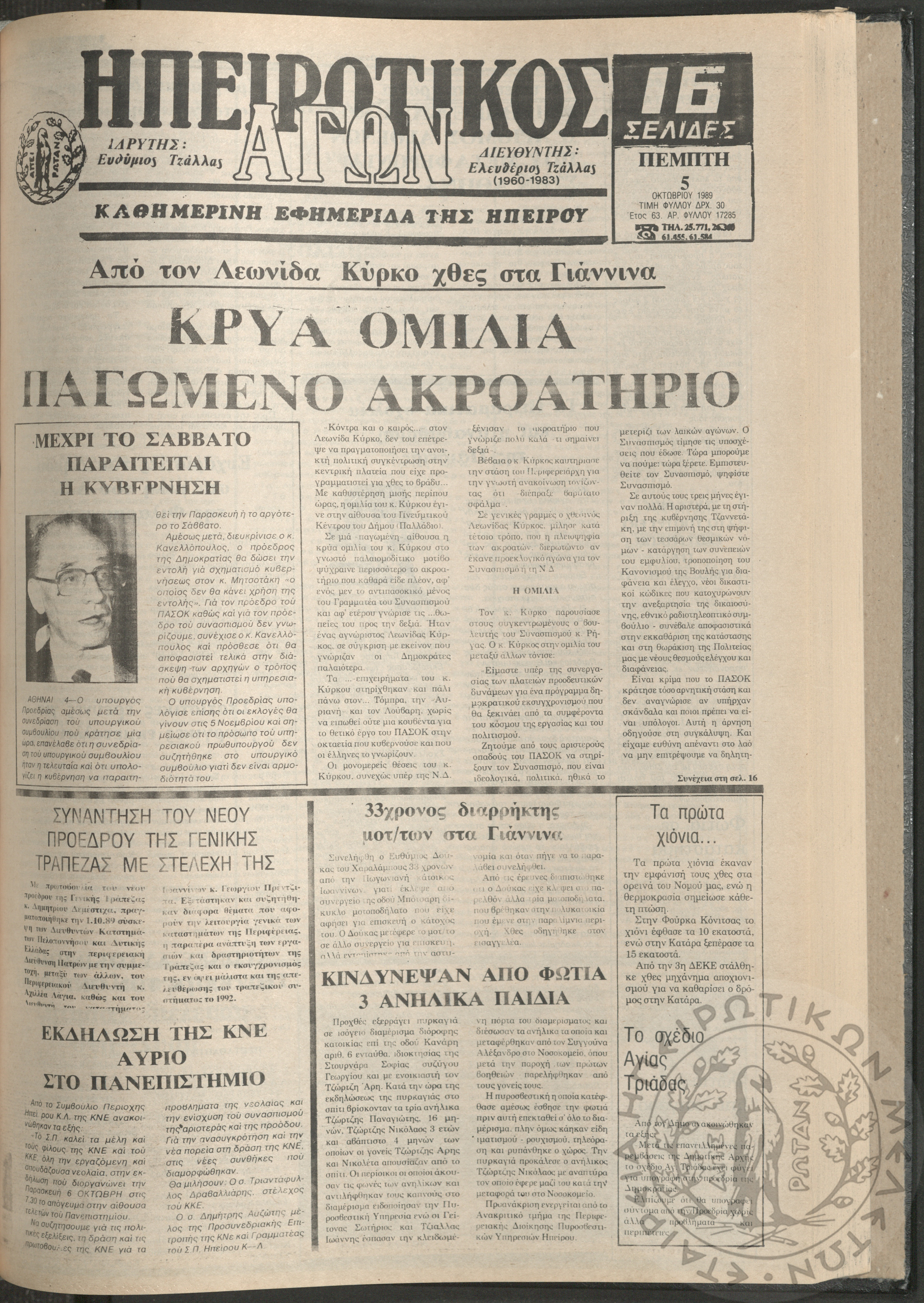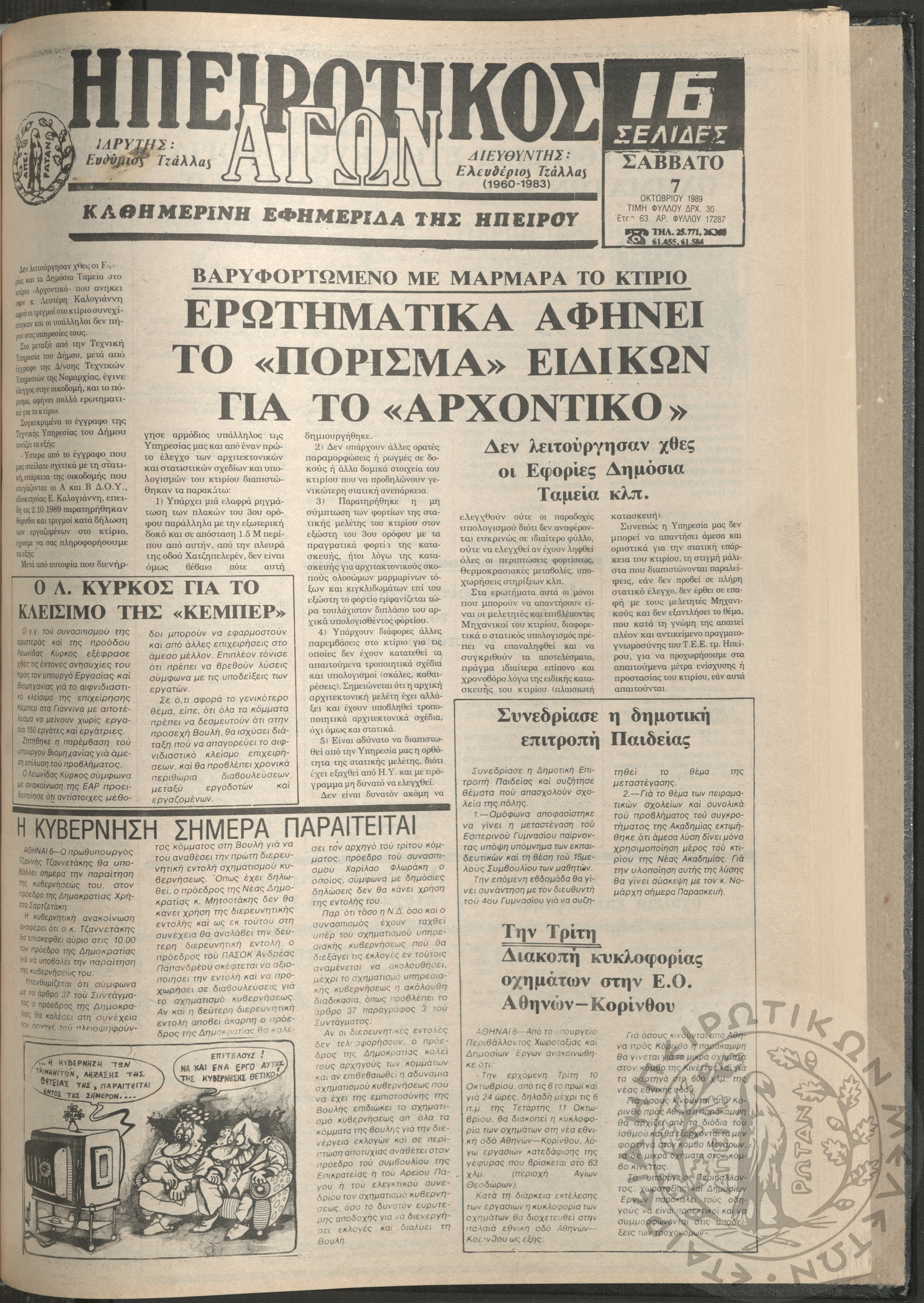 Ηπειρωτικός Αγών: καθημερινή εφημερίδα της Ηπείρου, 1989, φ. 17271