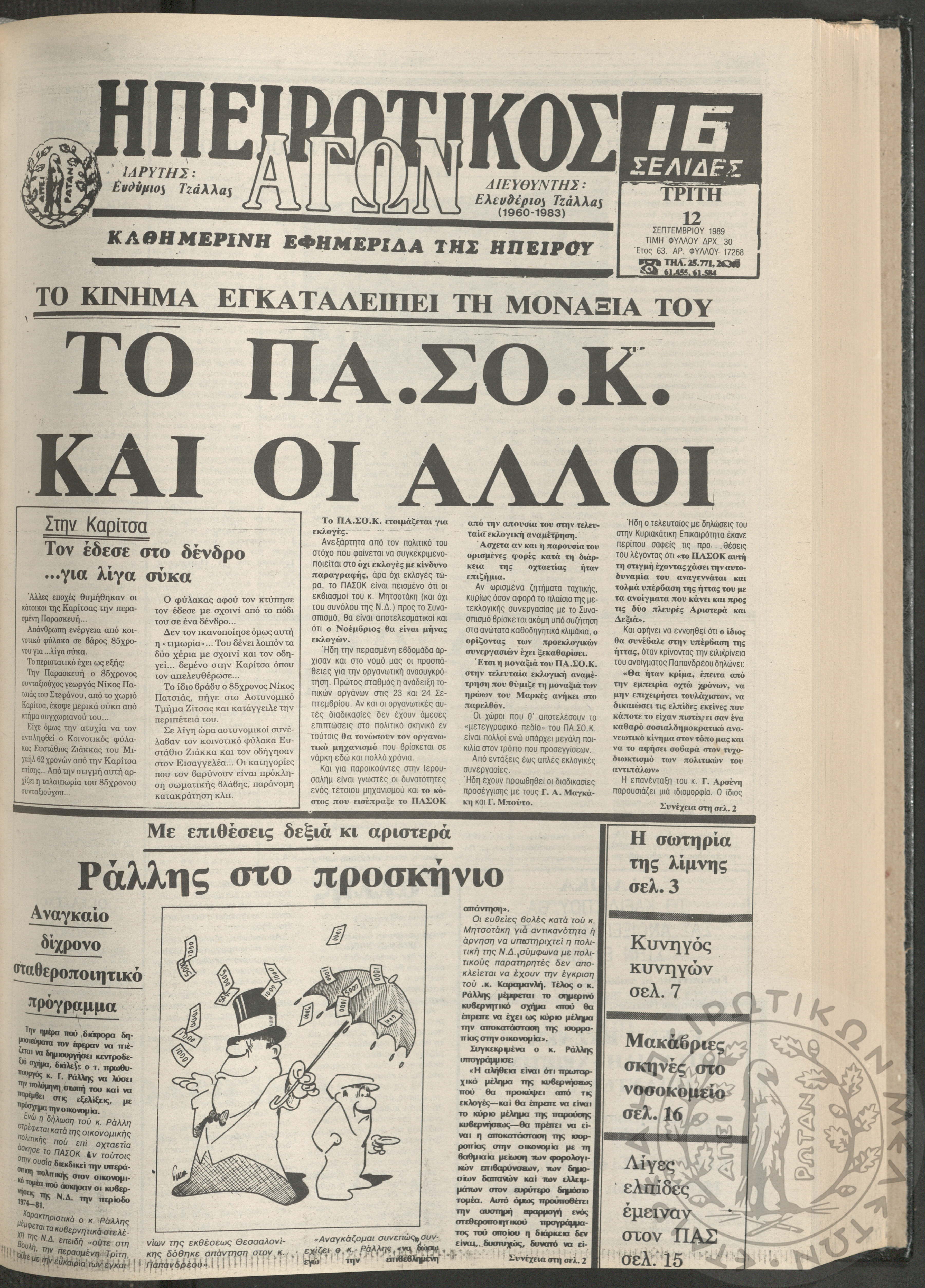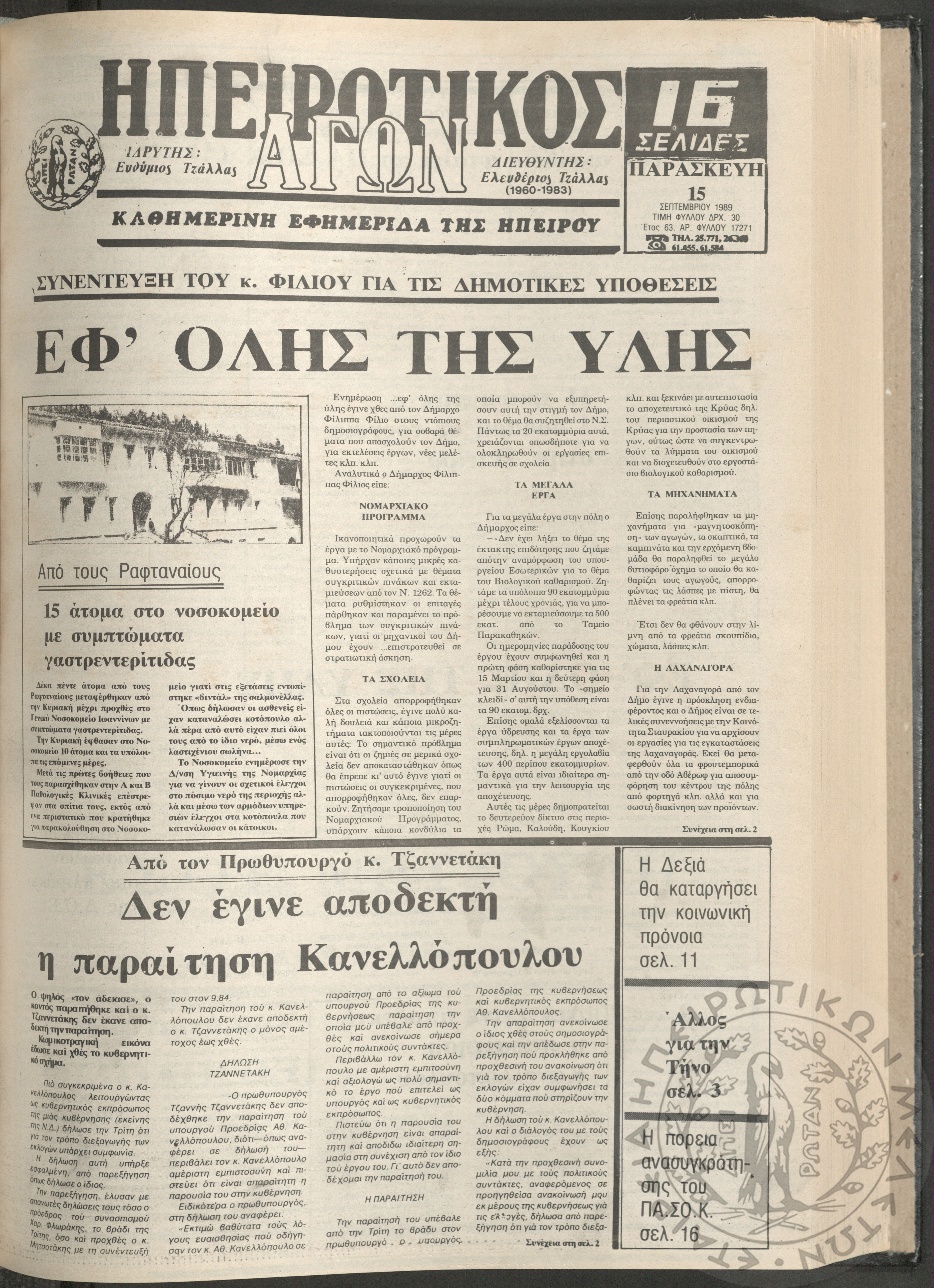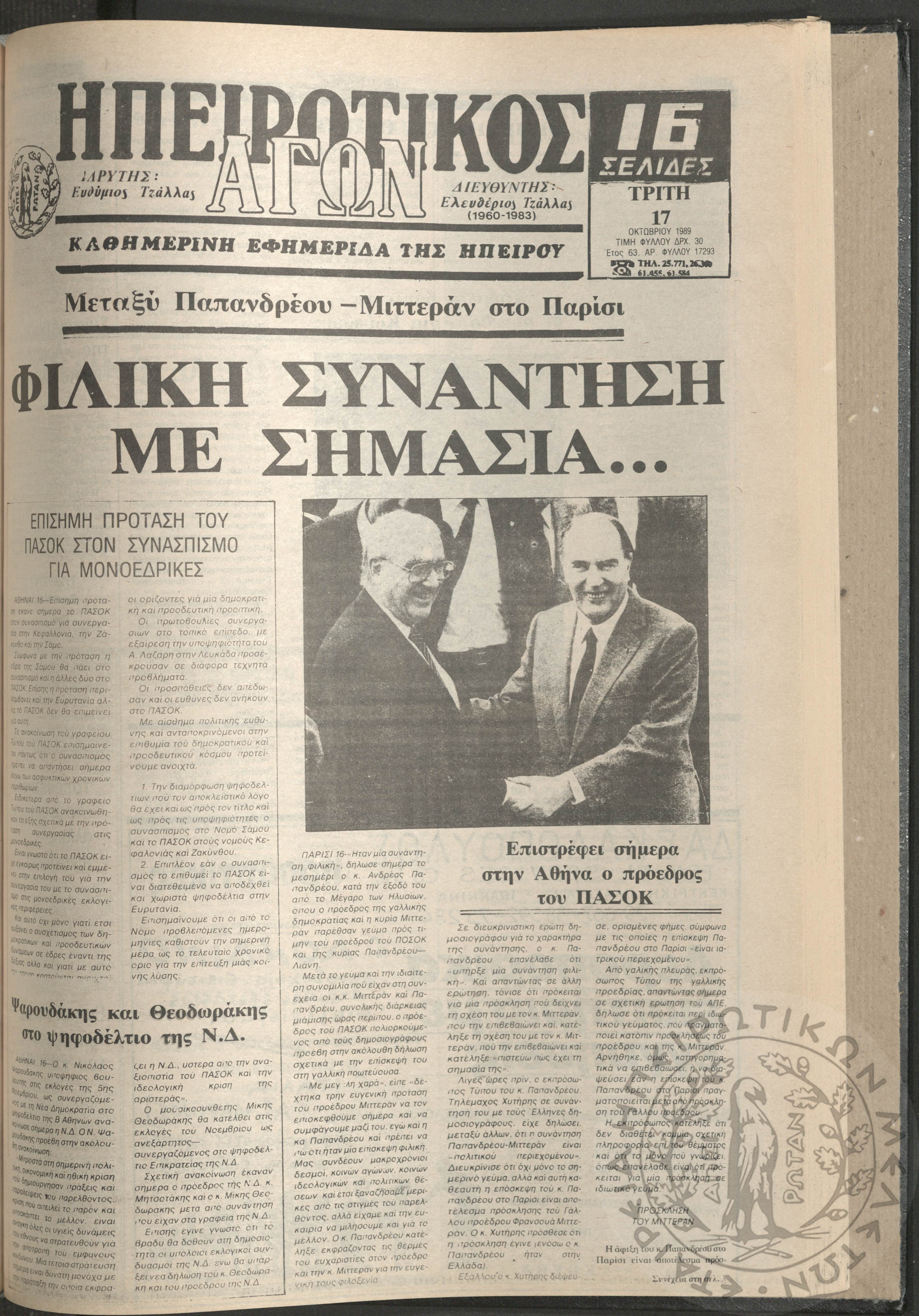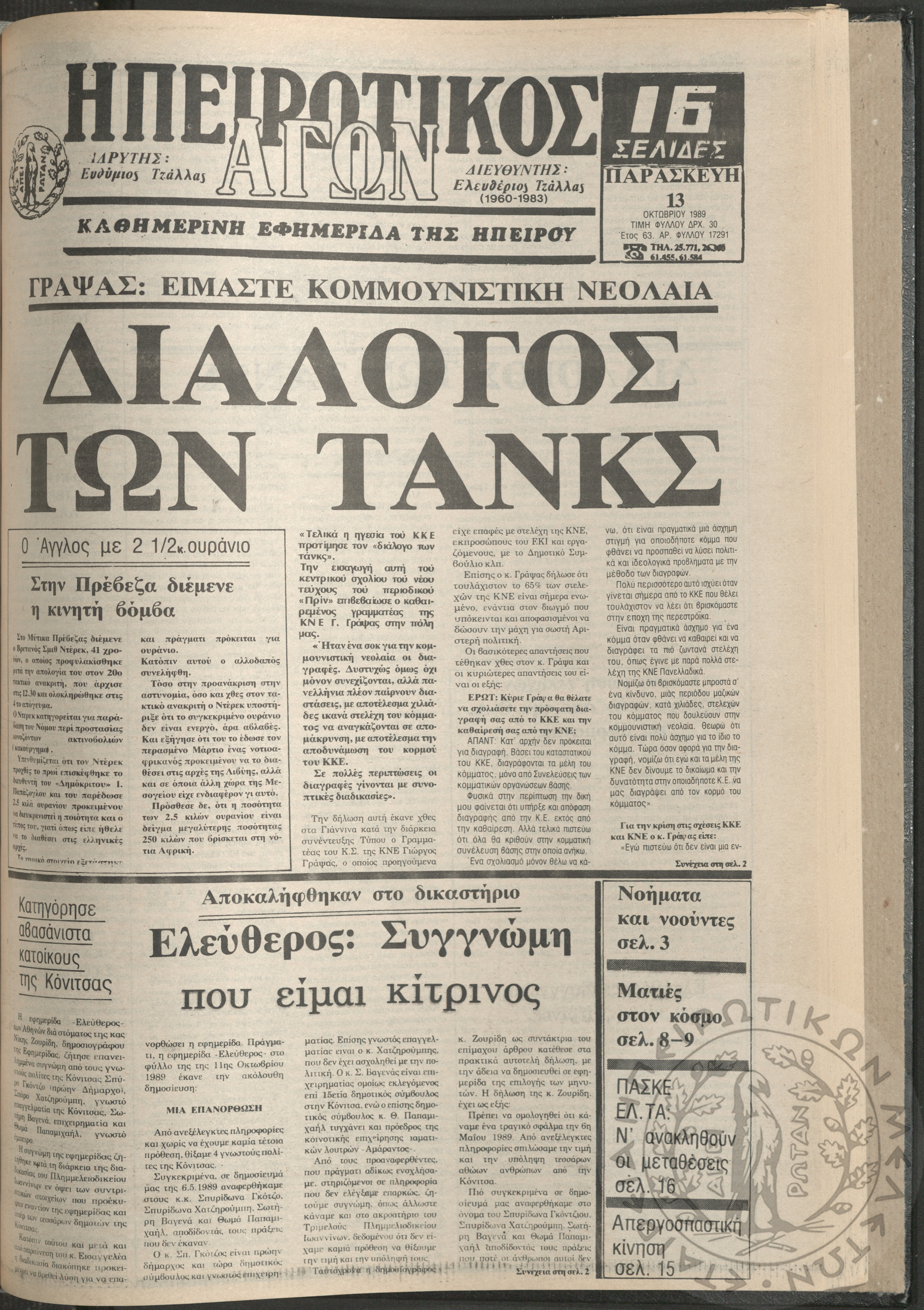 Ηπειρωτικός Αγών: καθημερινή εφημερίδα της Ηπείρου, 1989, φ. 17271