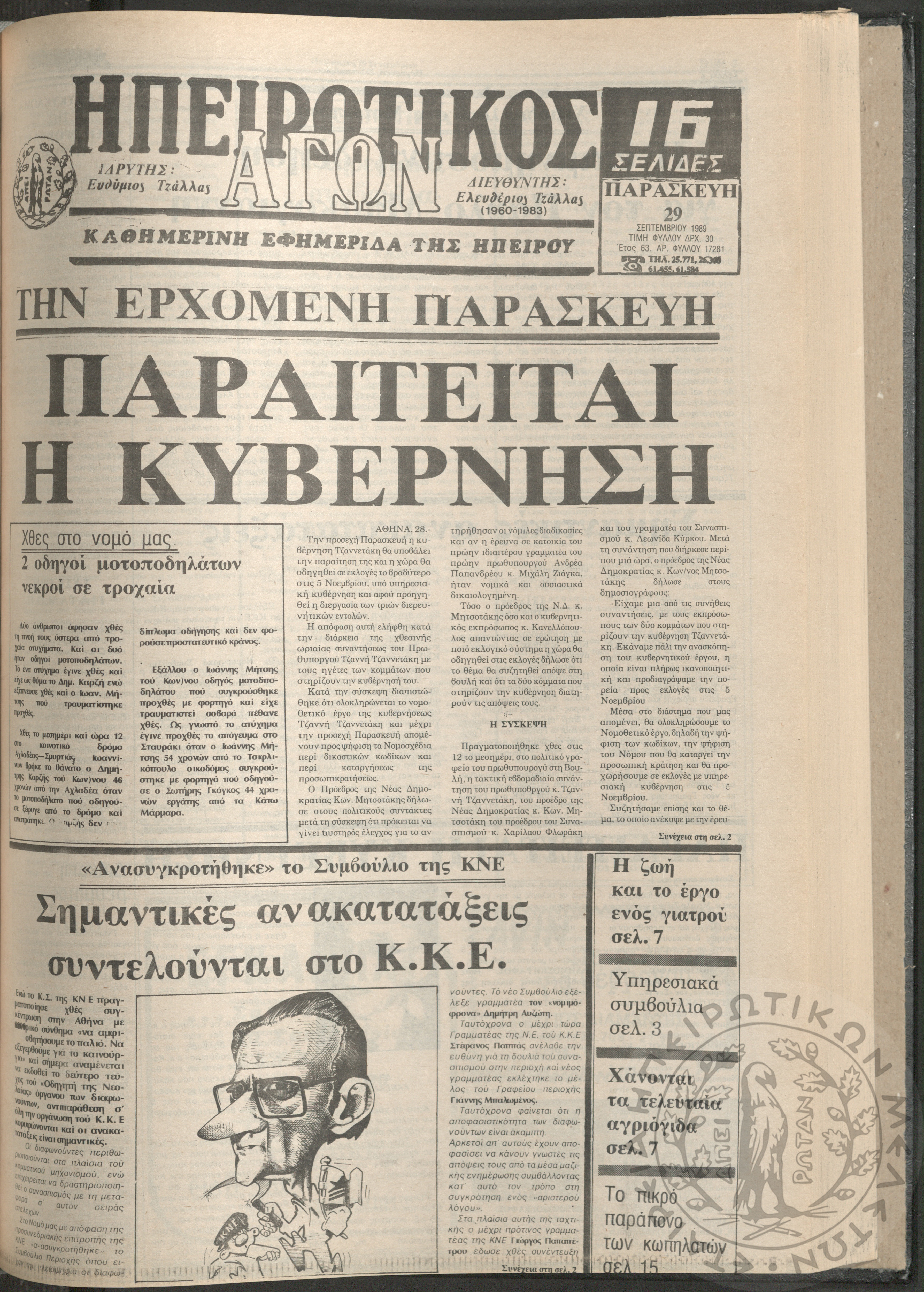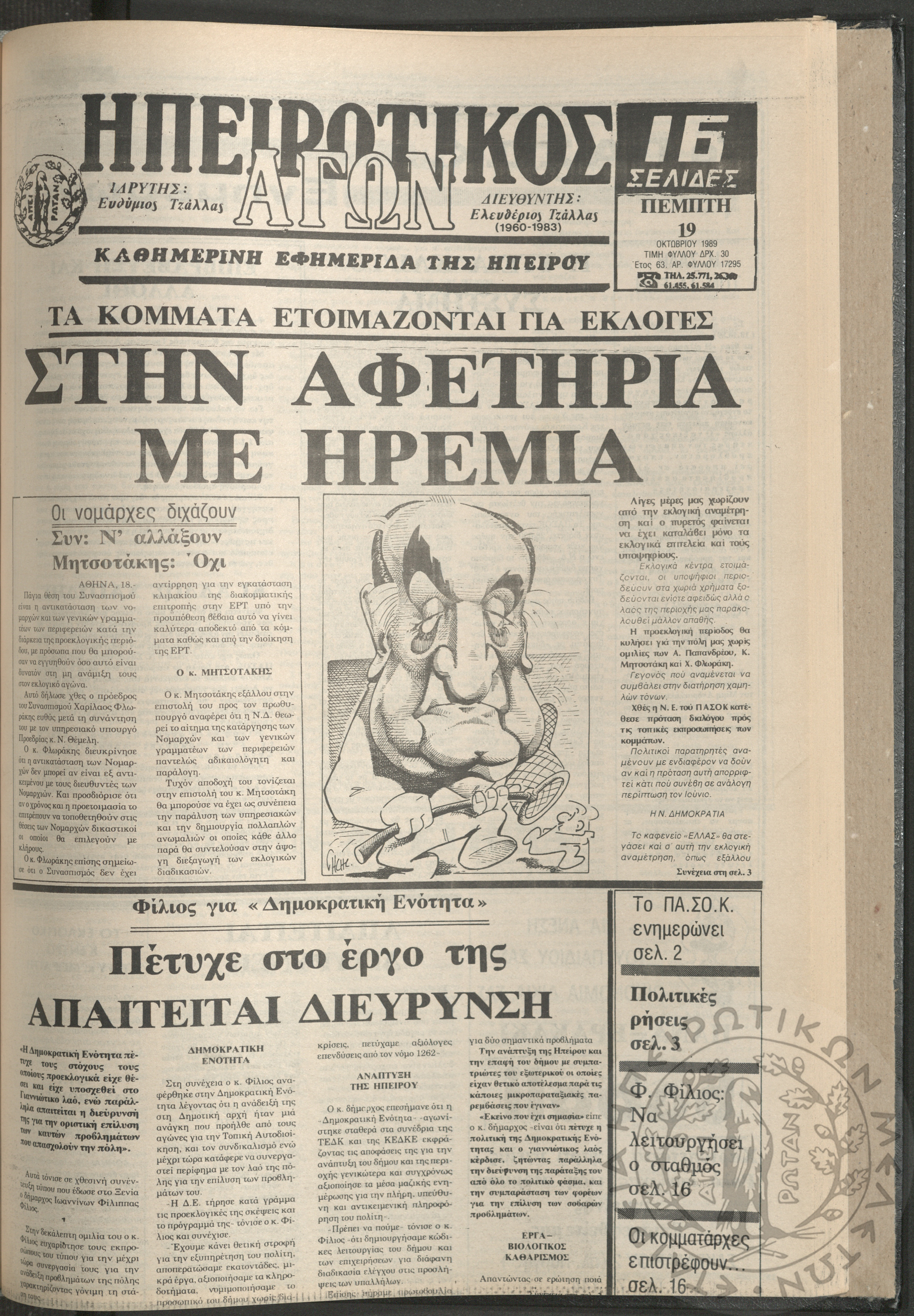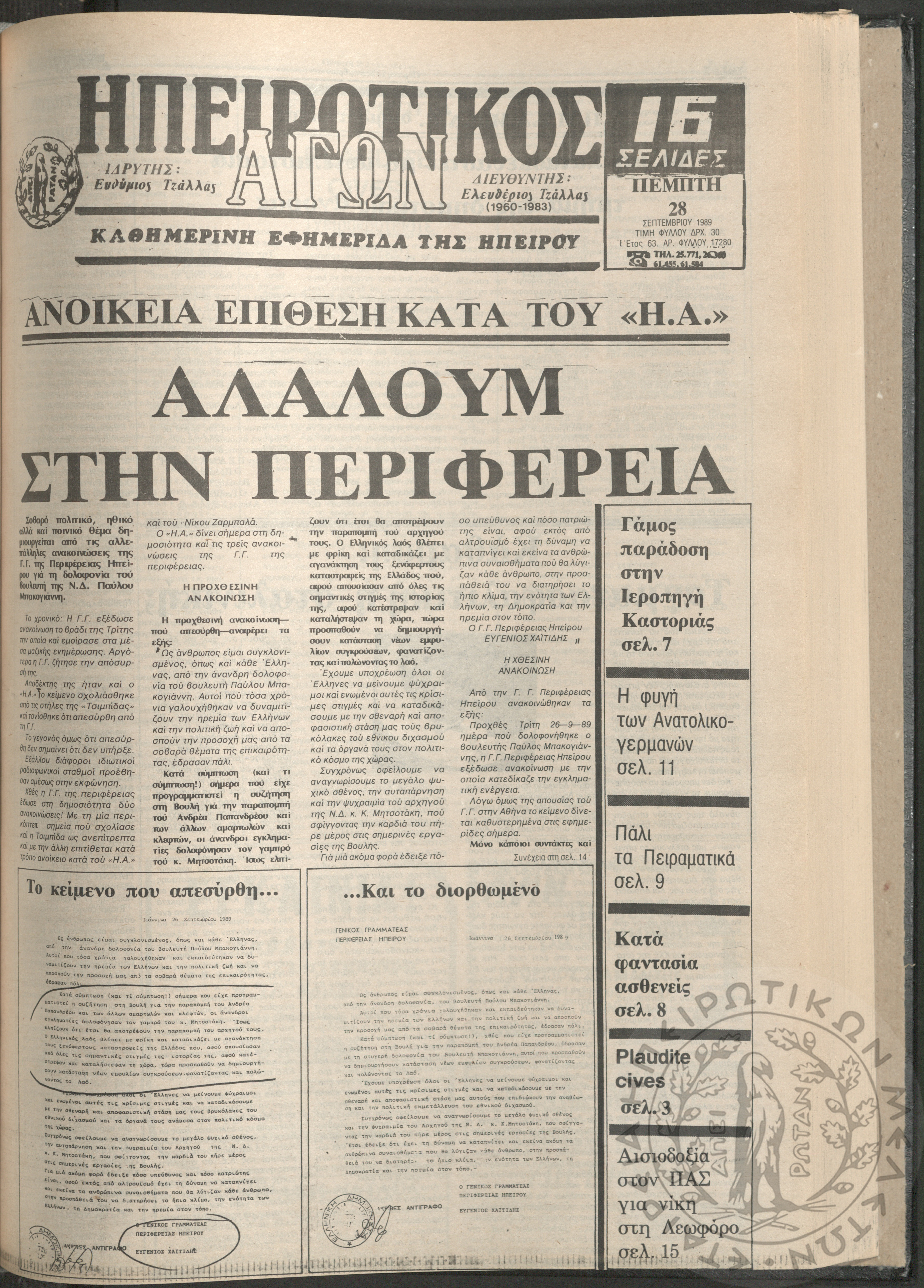 Ηπειρωτικός Αγών: καθημερινή εφημερίδα της Ηπείρου, 1989, φ. 17285