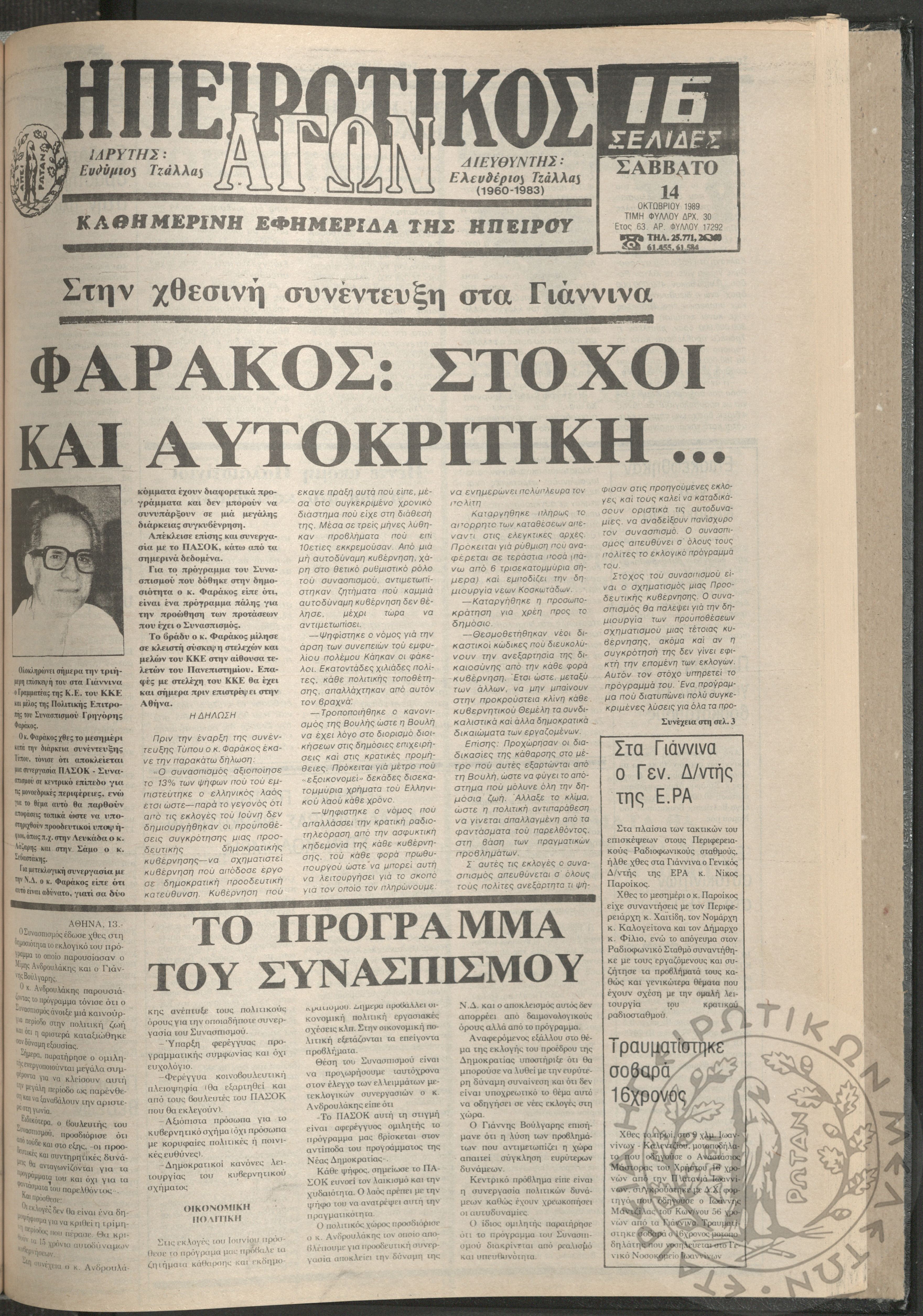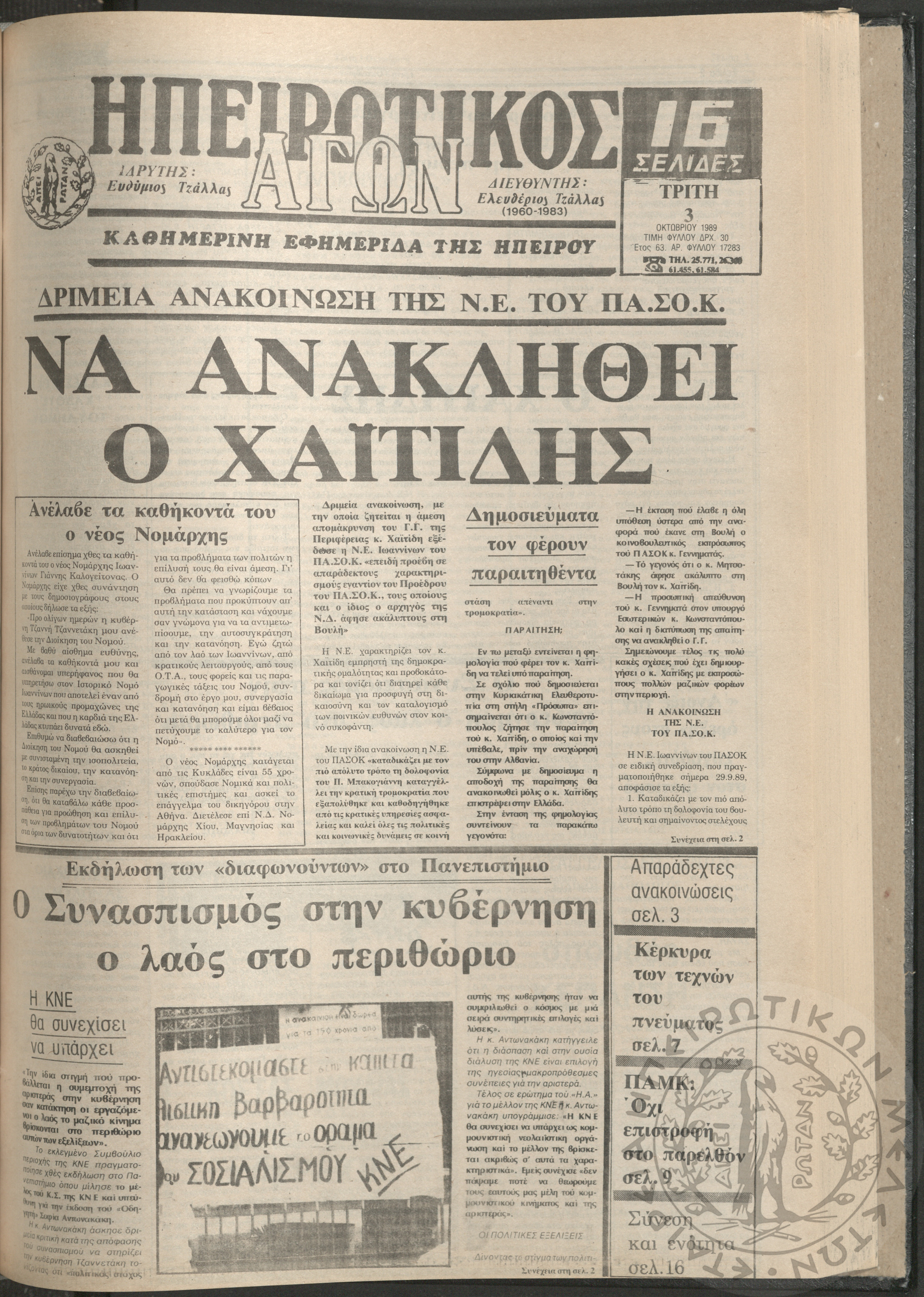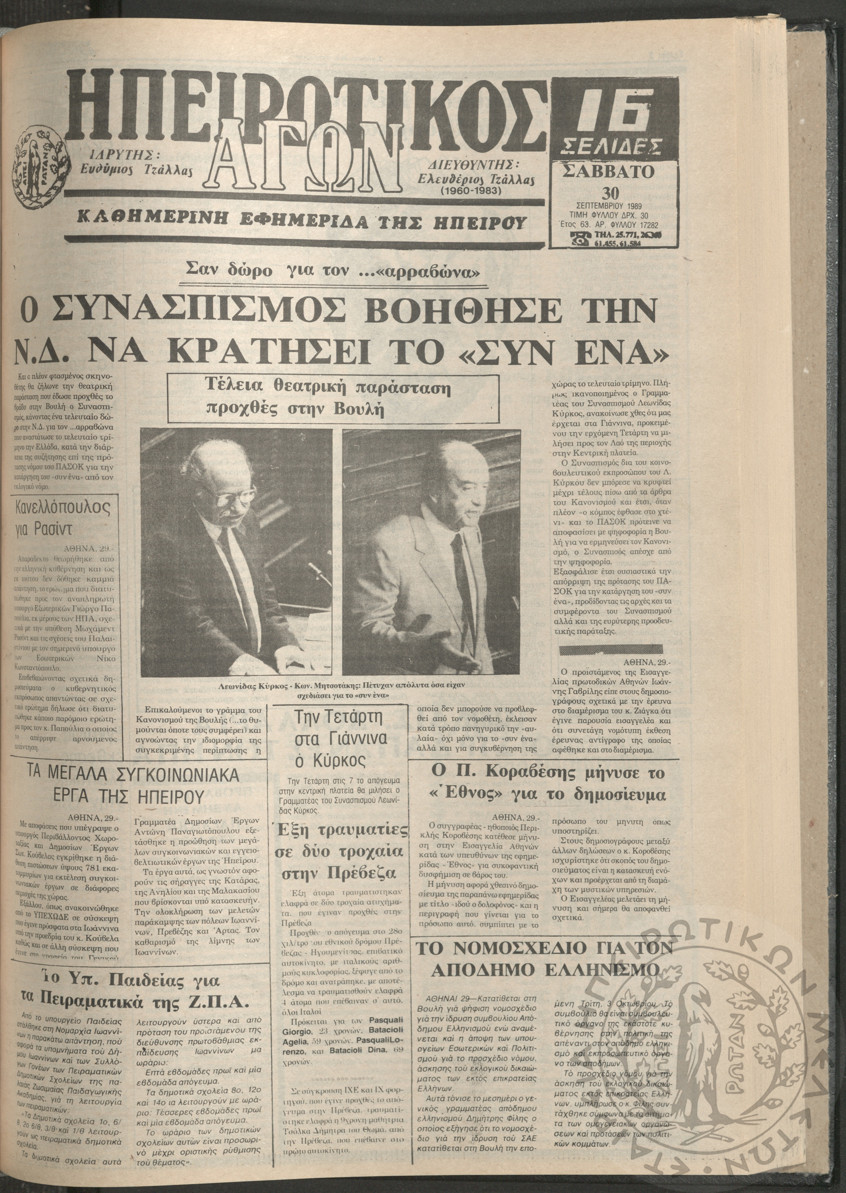 Ηπειρωτικός Αγών: καθημερινή εφημερίδα της Ηπείρου, 1989, φ. 17283