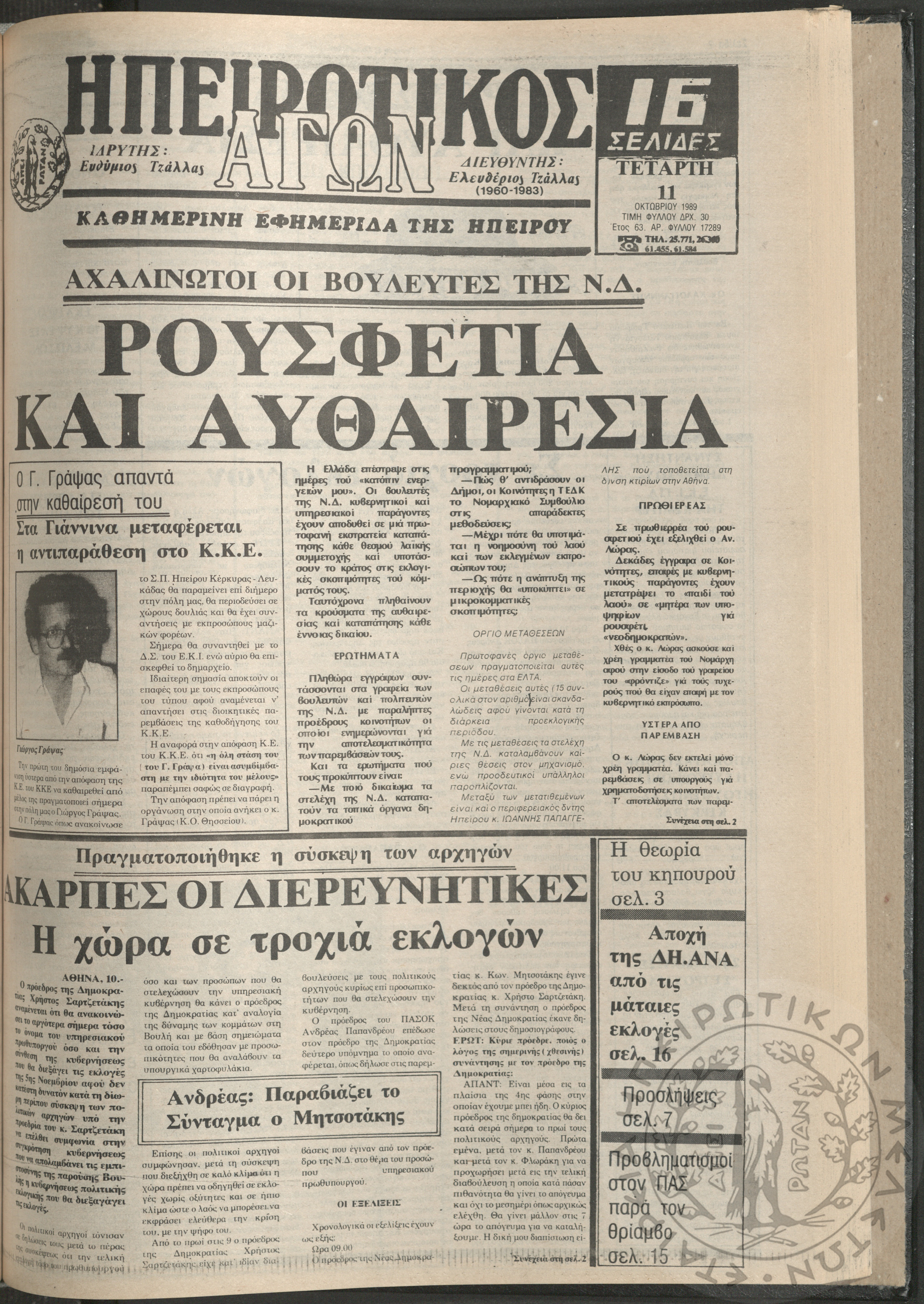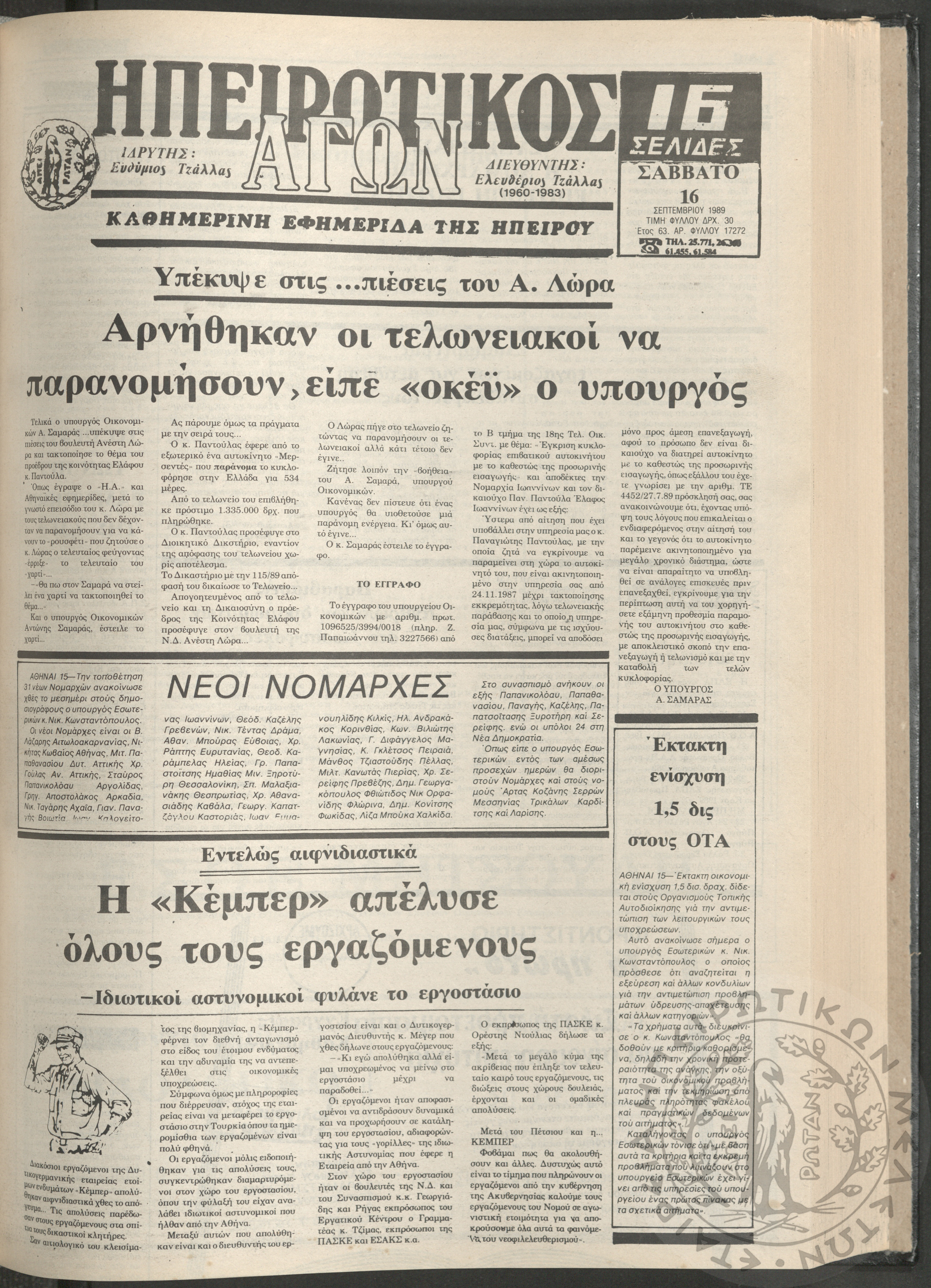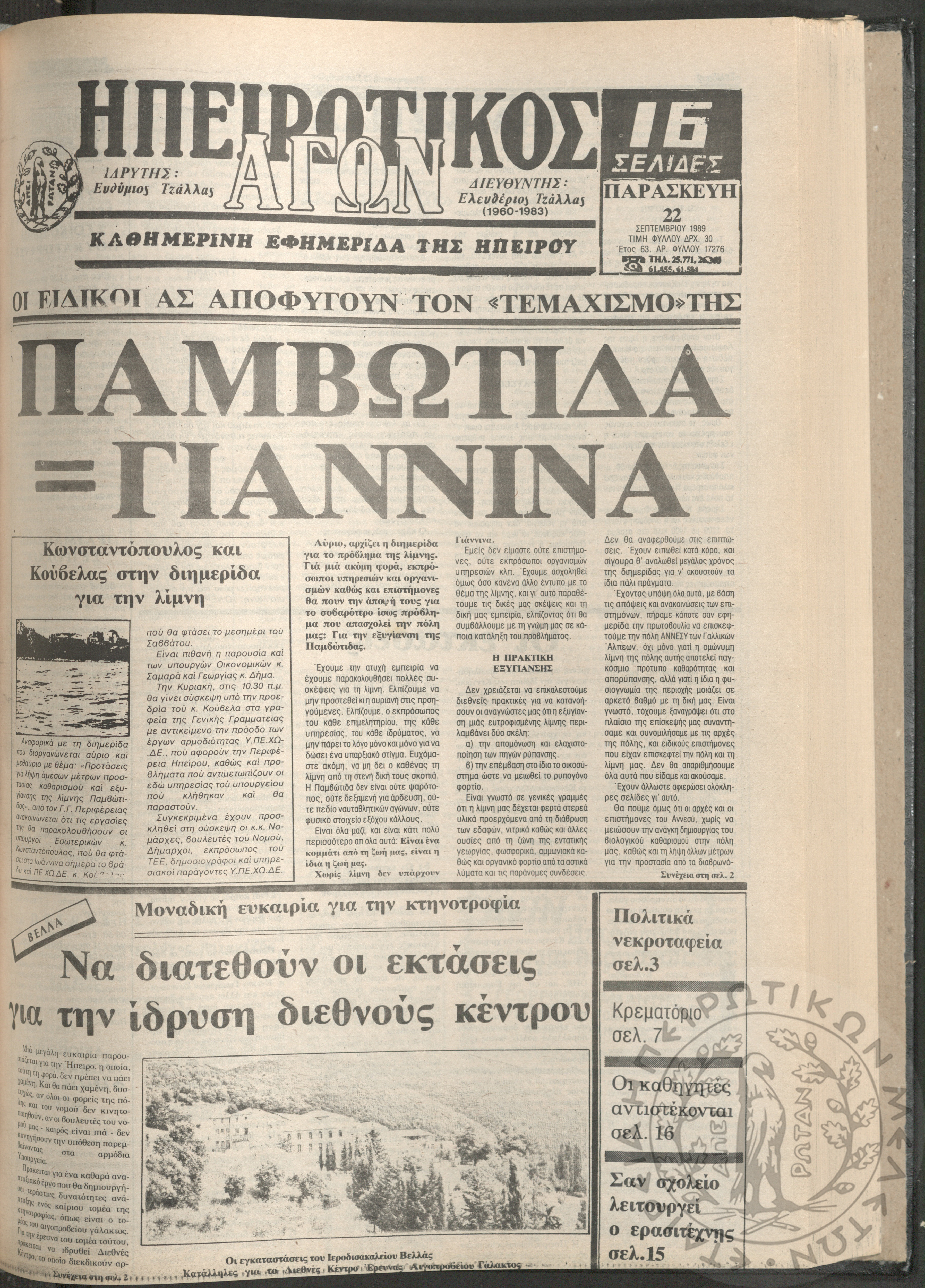 Ηπειρωτικός Αγών: καθημερινή εφημερίδα της Ηπείρου, 1989, φ. 17269