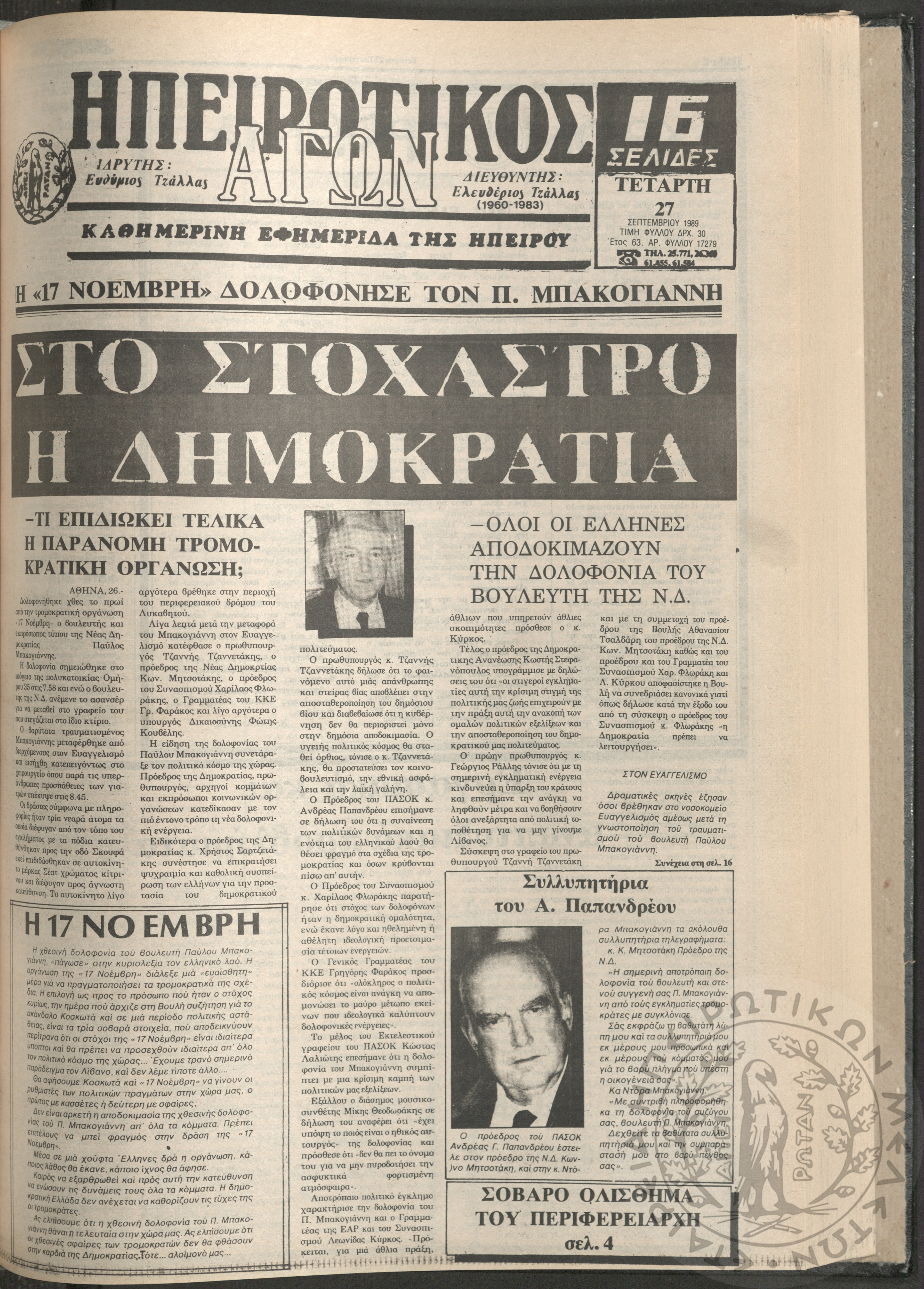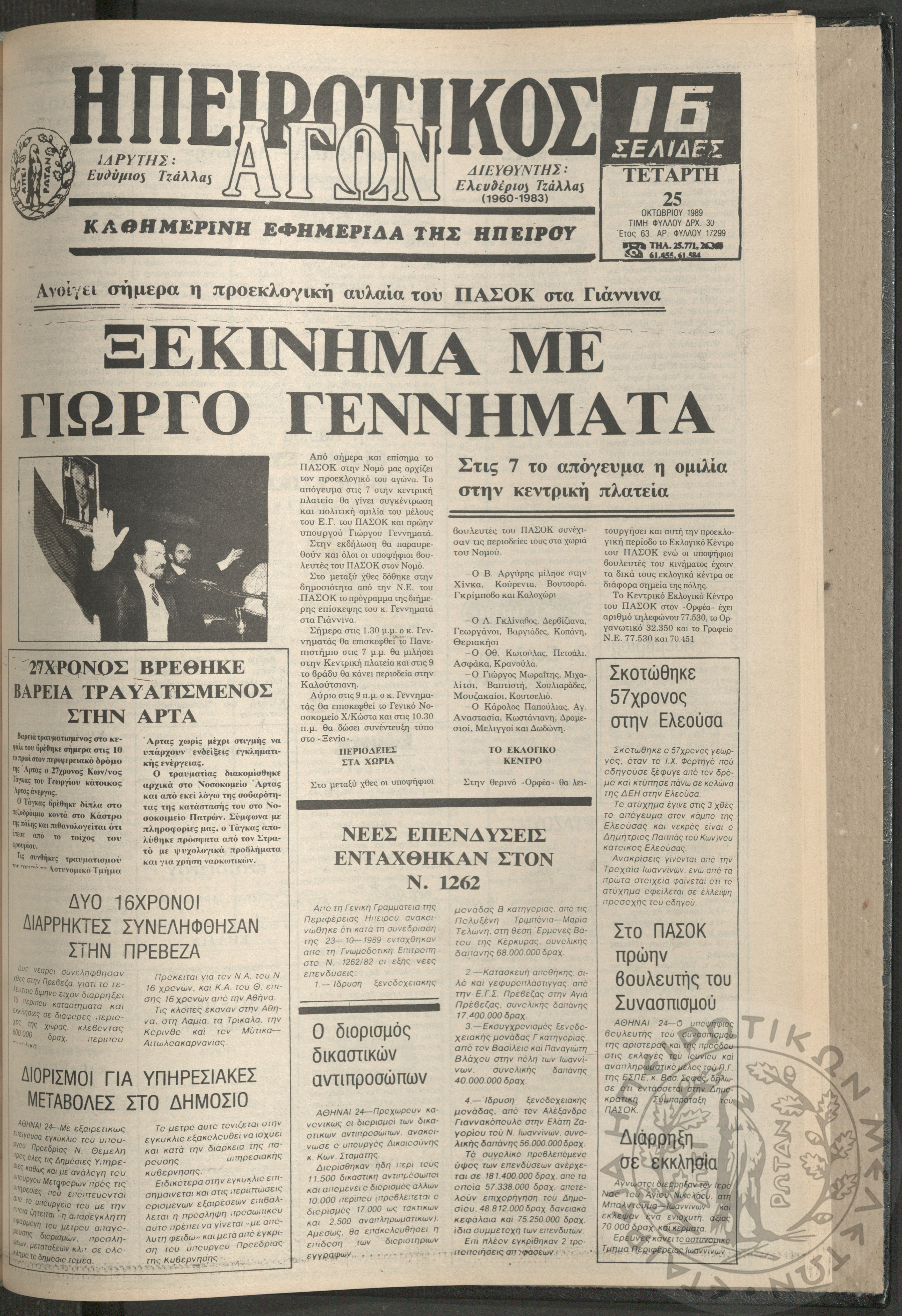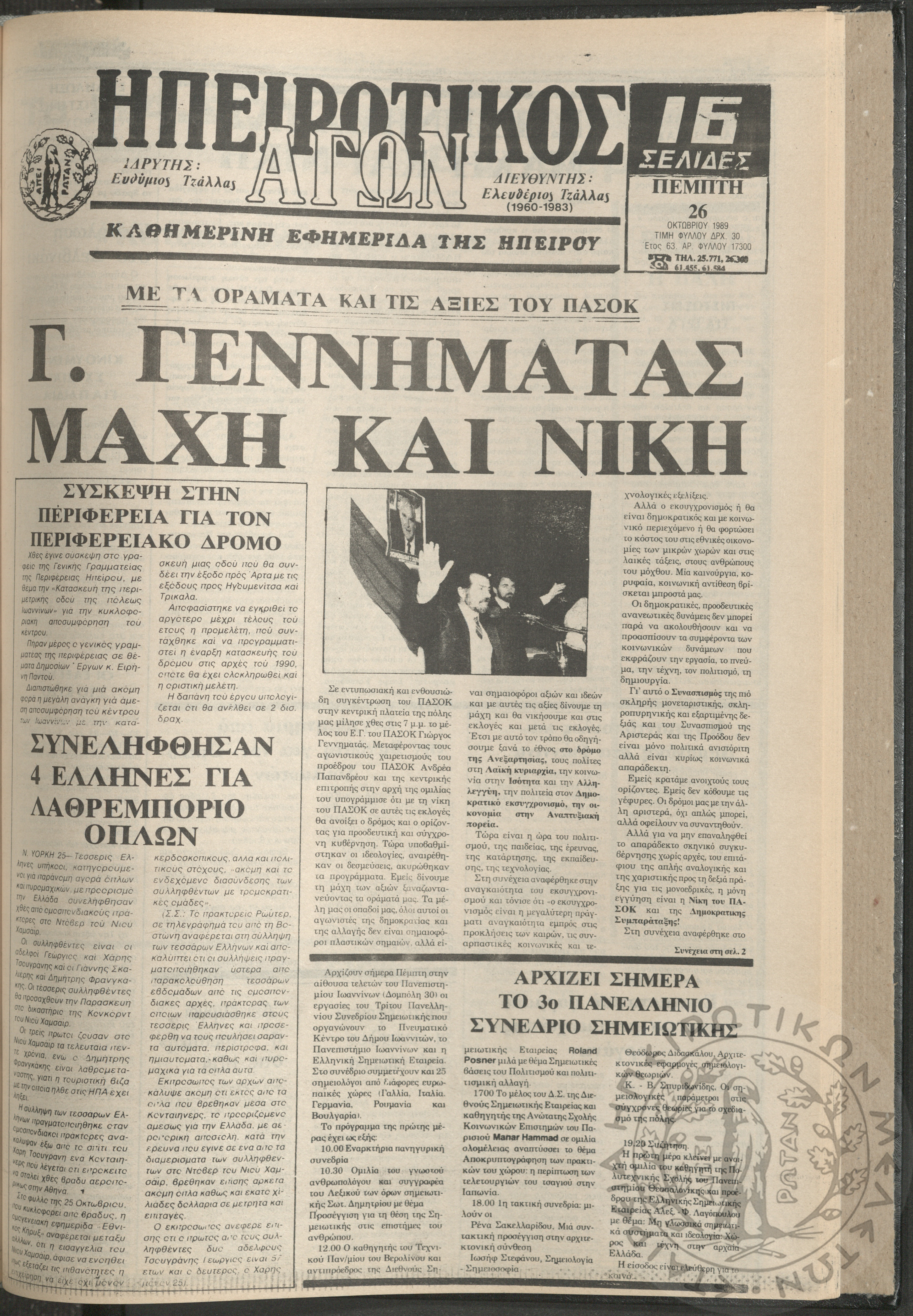Ηπειρωτικός Αγών: καθημερινή εφημερίδα της Ηπείρου, 1989, φ. 17269