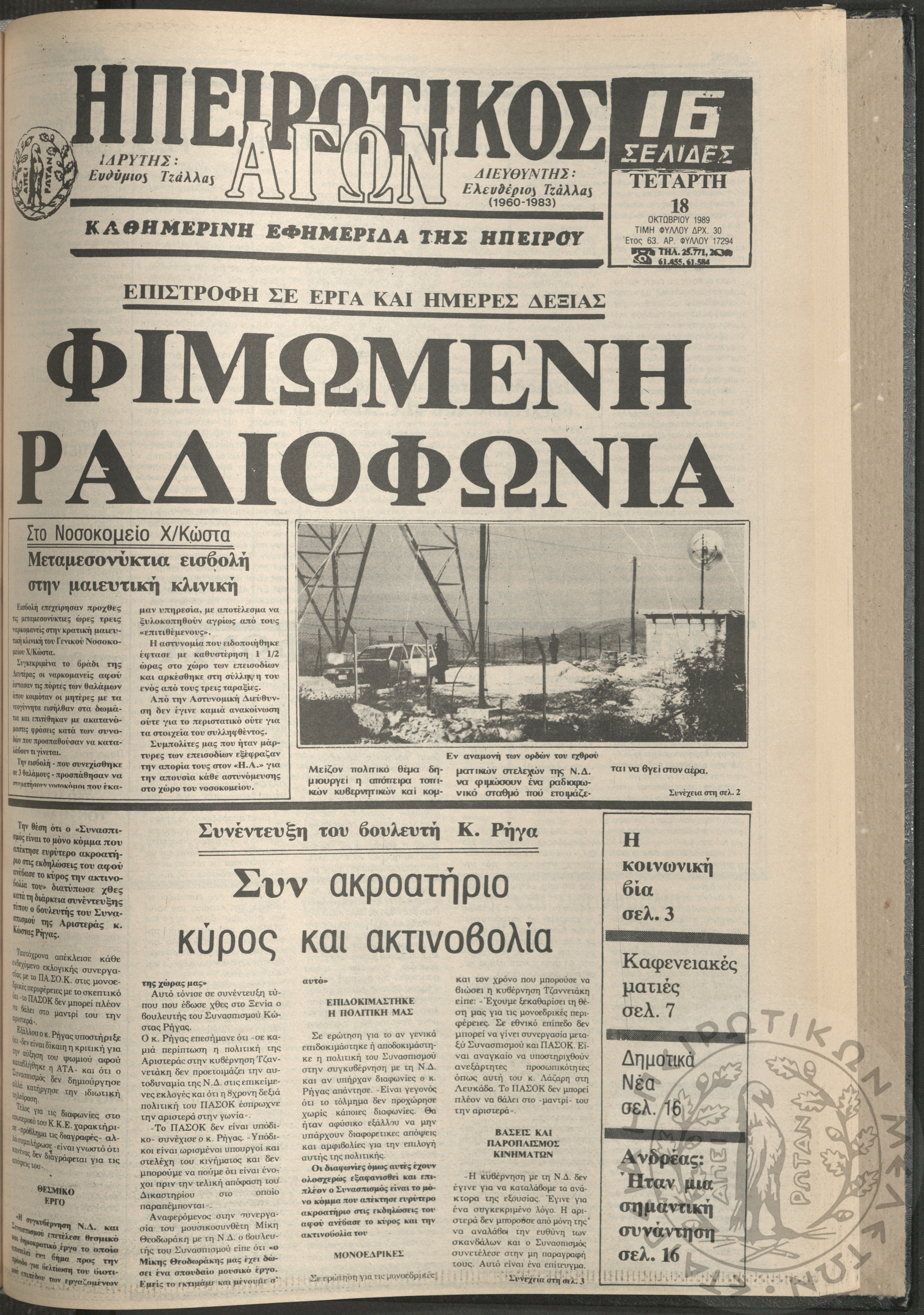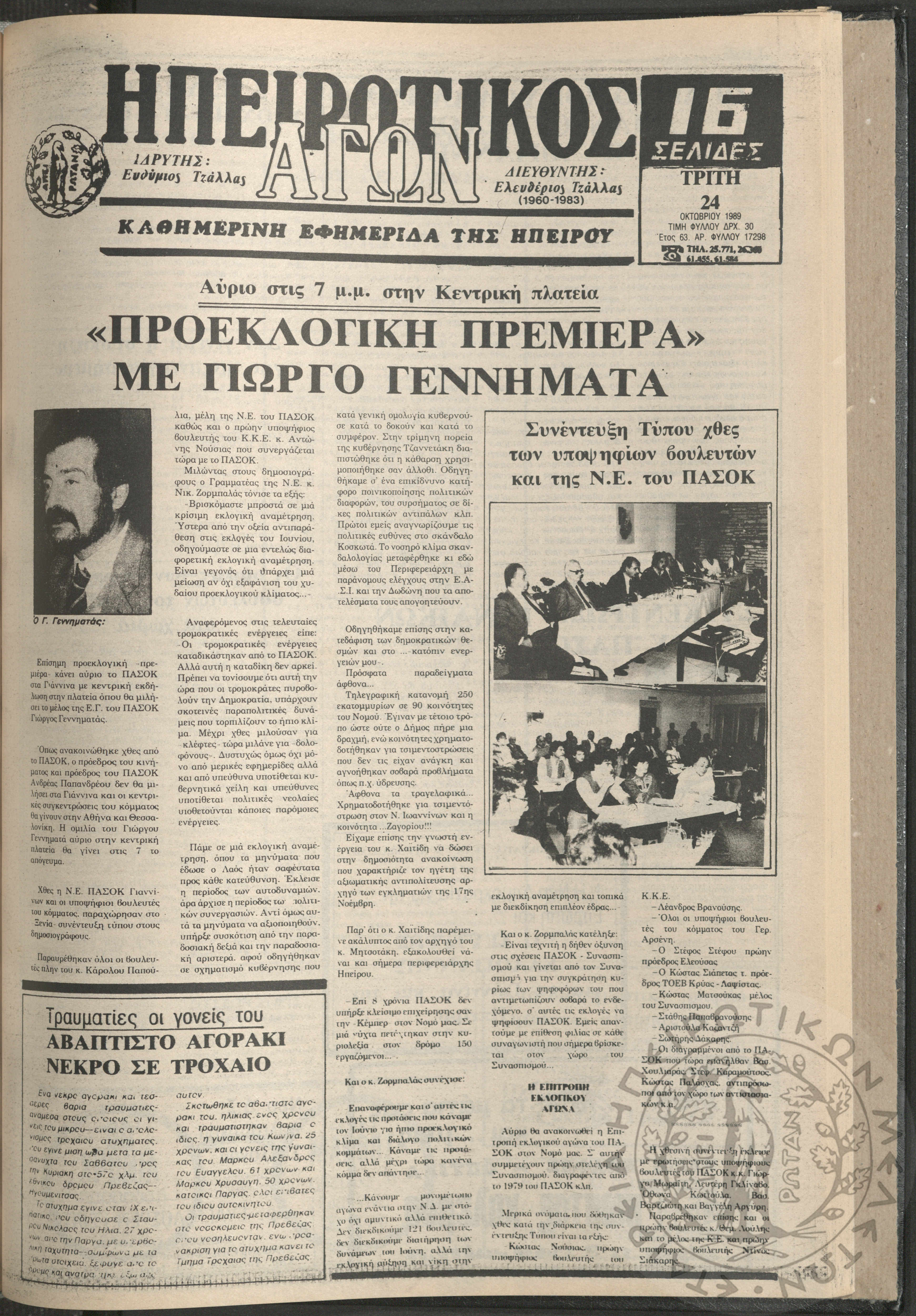 Ηπειρωτικός Αγών: καθημερινή εφημερίδα της Ηπείρου, 1989, φ. 17277