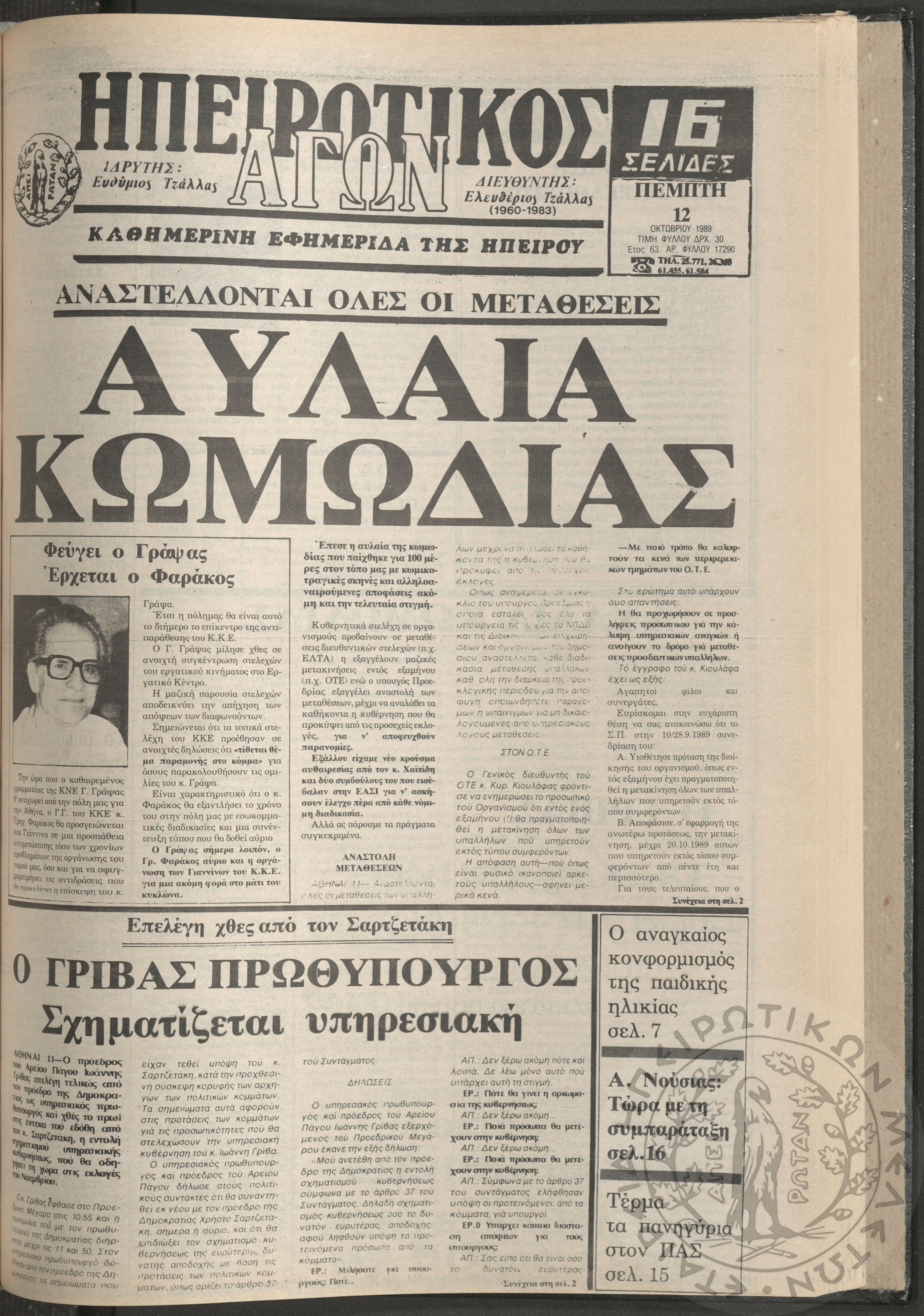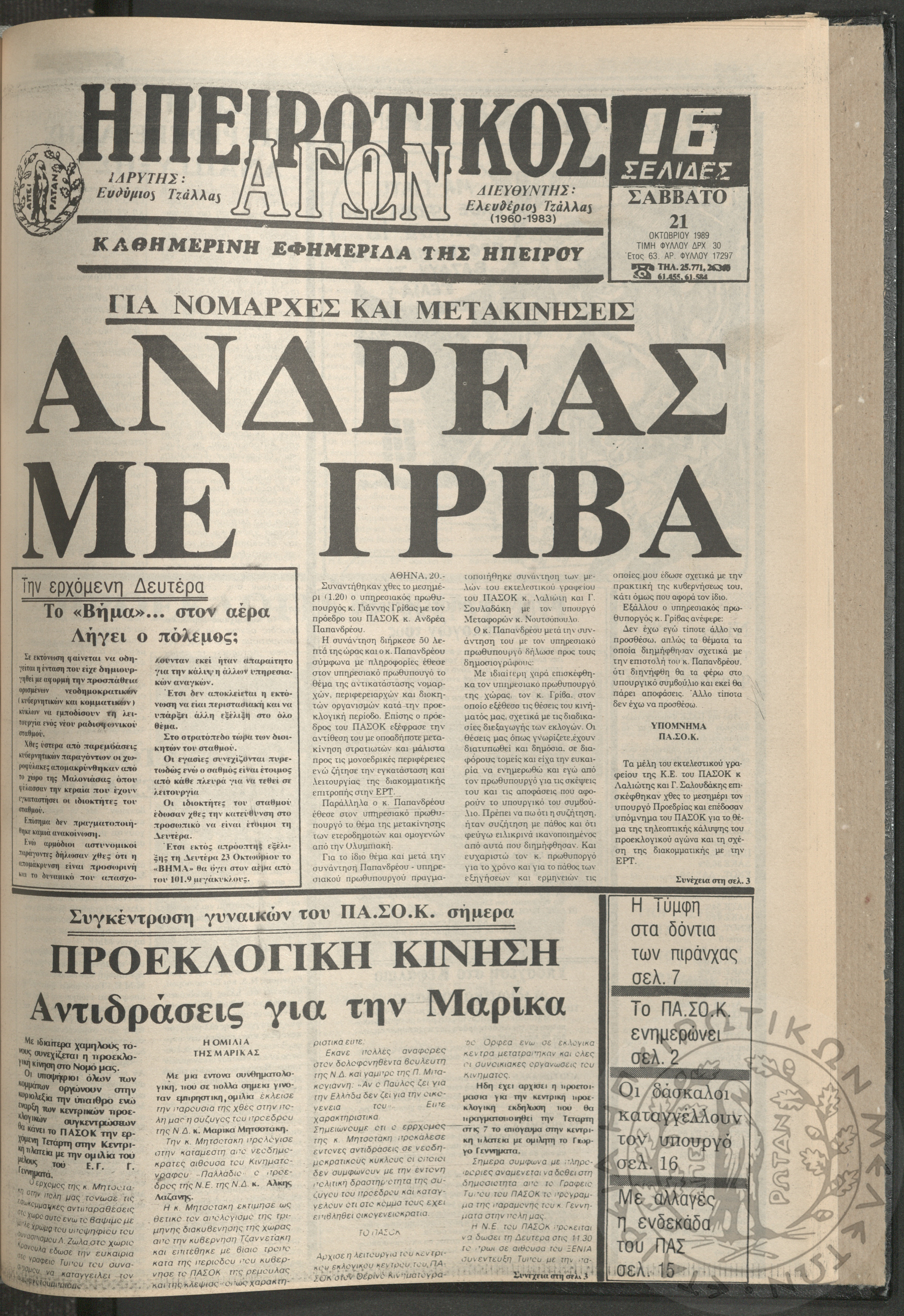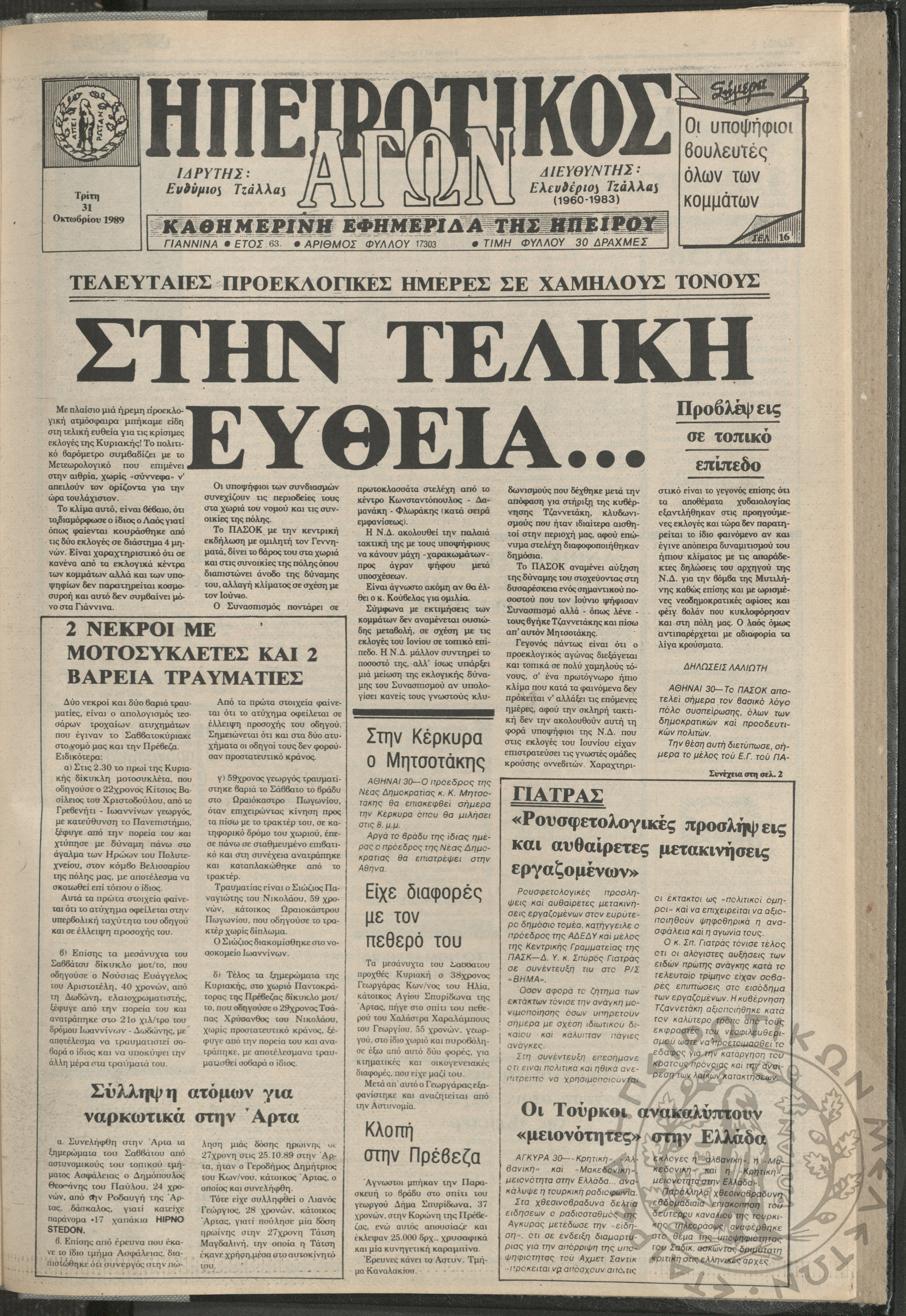 Ηπειρωτικός Αγών: καθημερινή εφημερίδα της Ηπείρου, 1989, φ. 17300