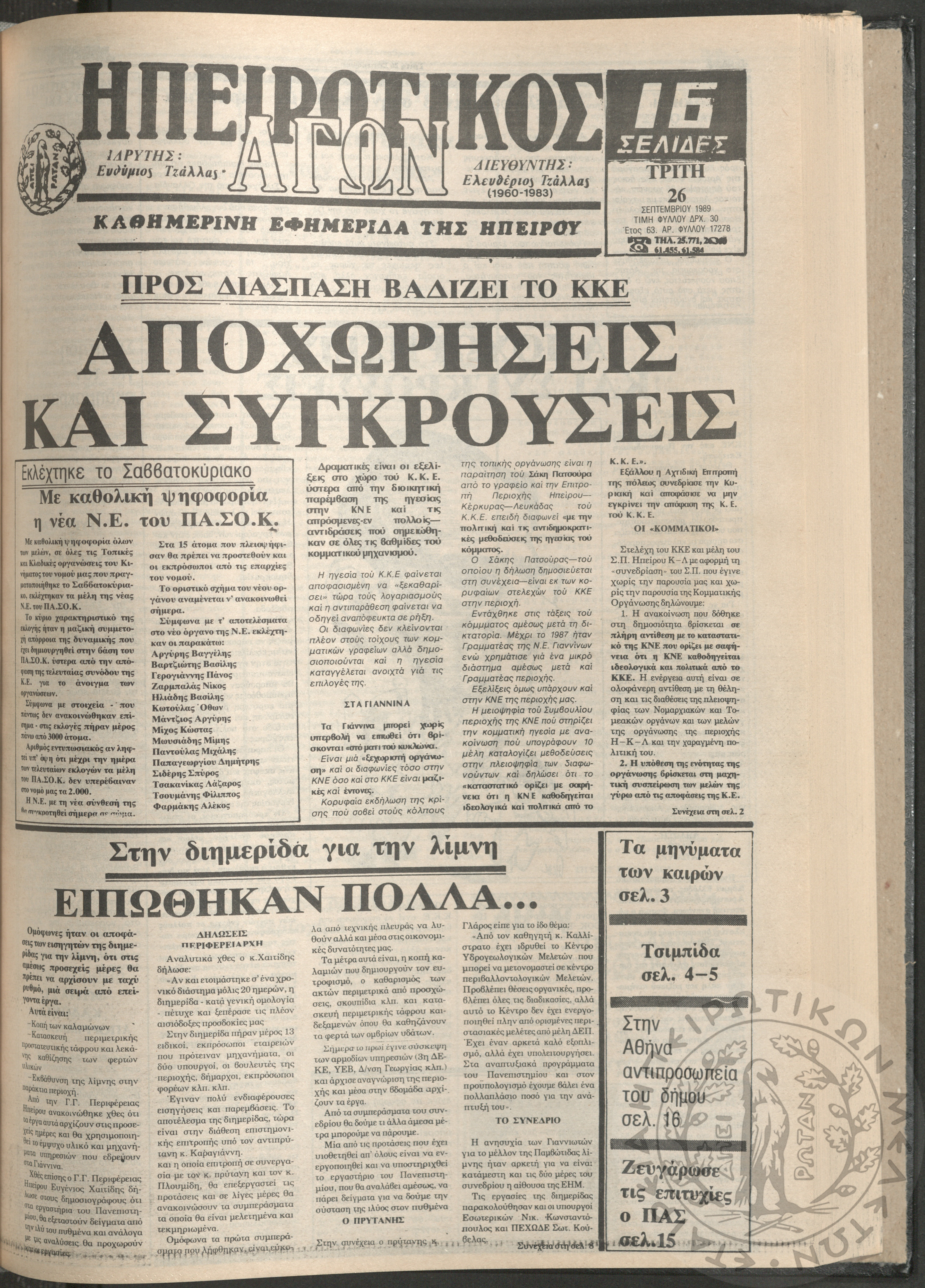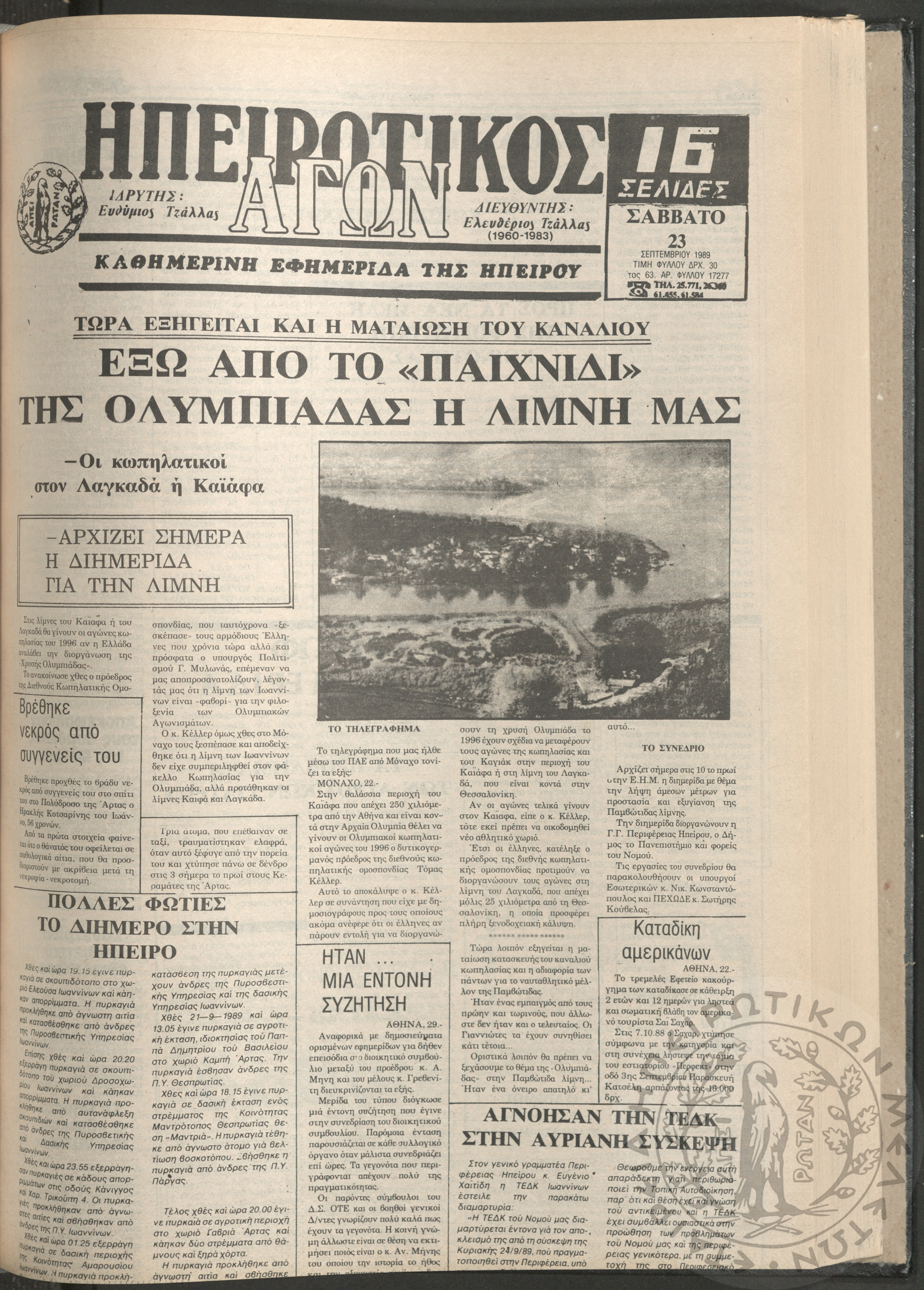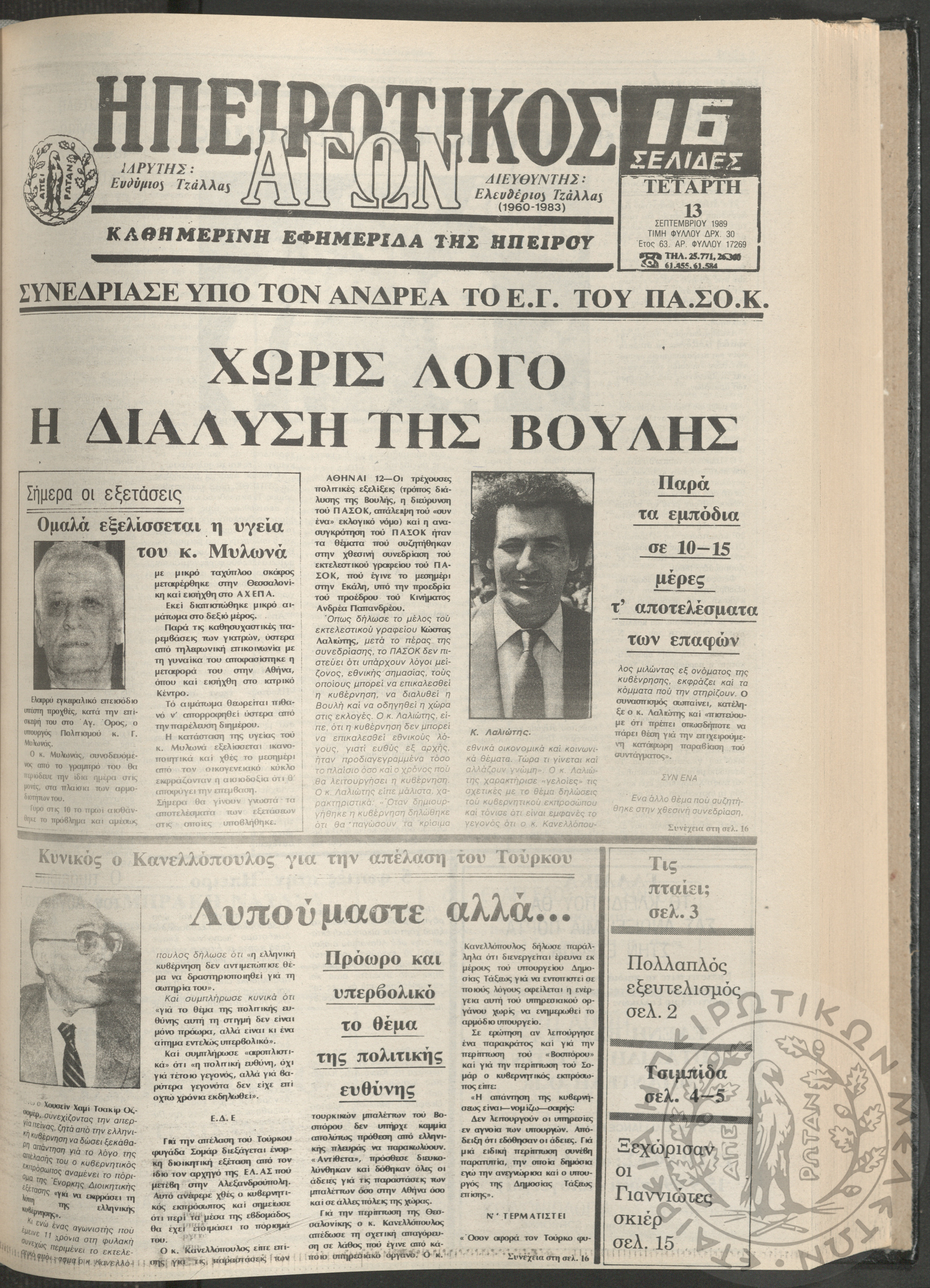 Ηπειρωτικός Αγών: καθημερινή εφημερίδα της Ηπείρου, 1989, φ. 17300