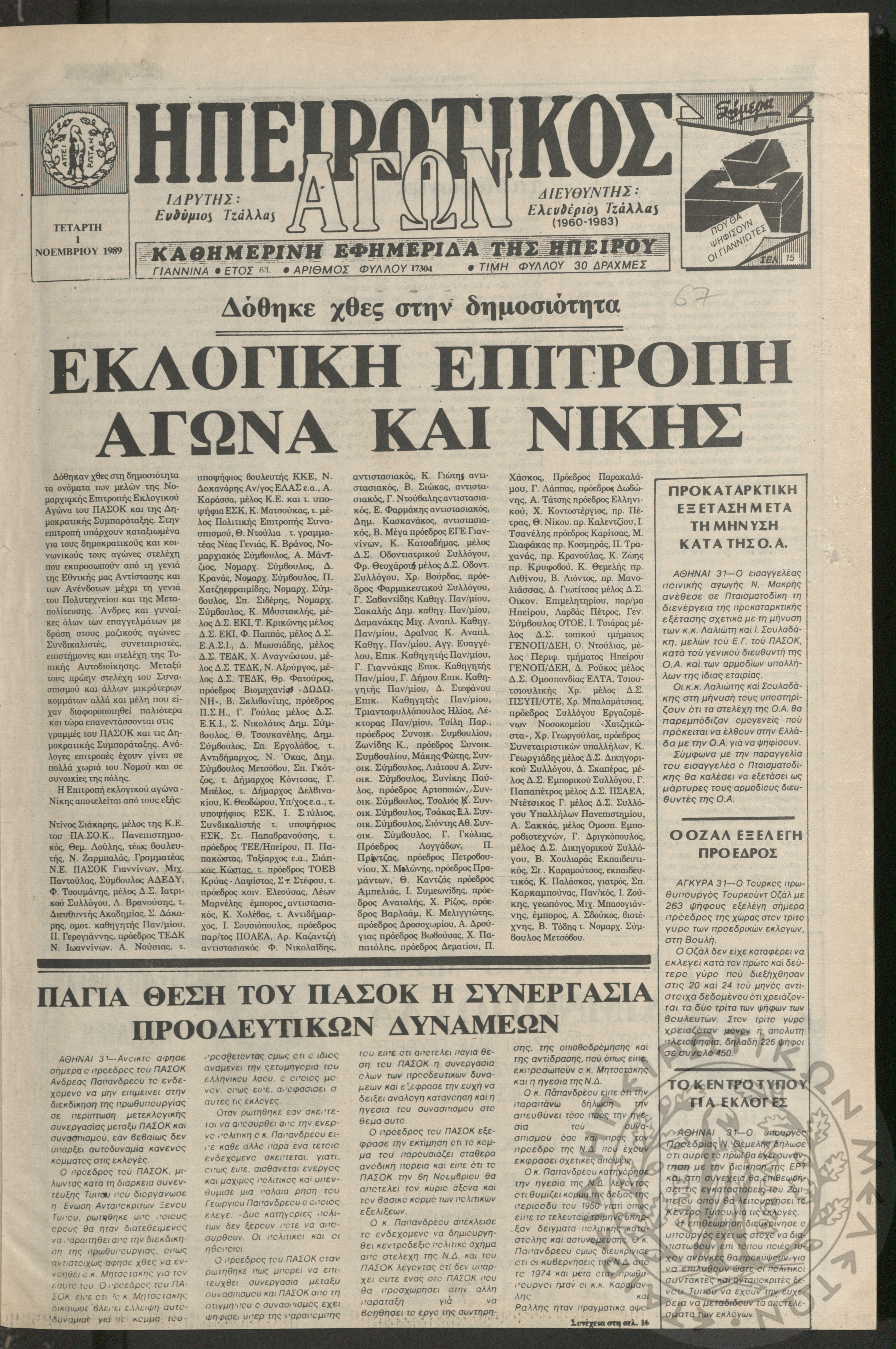Ηπειρωτικός Αγών: καθημερινή εφημερίδα της Ηπείρου, 1989, φ. 17304