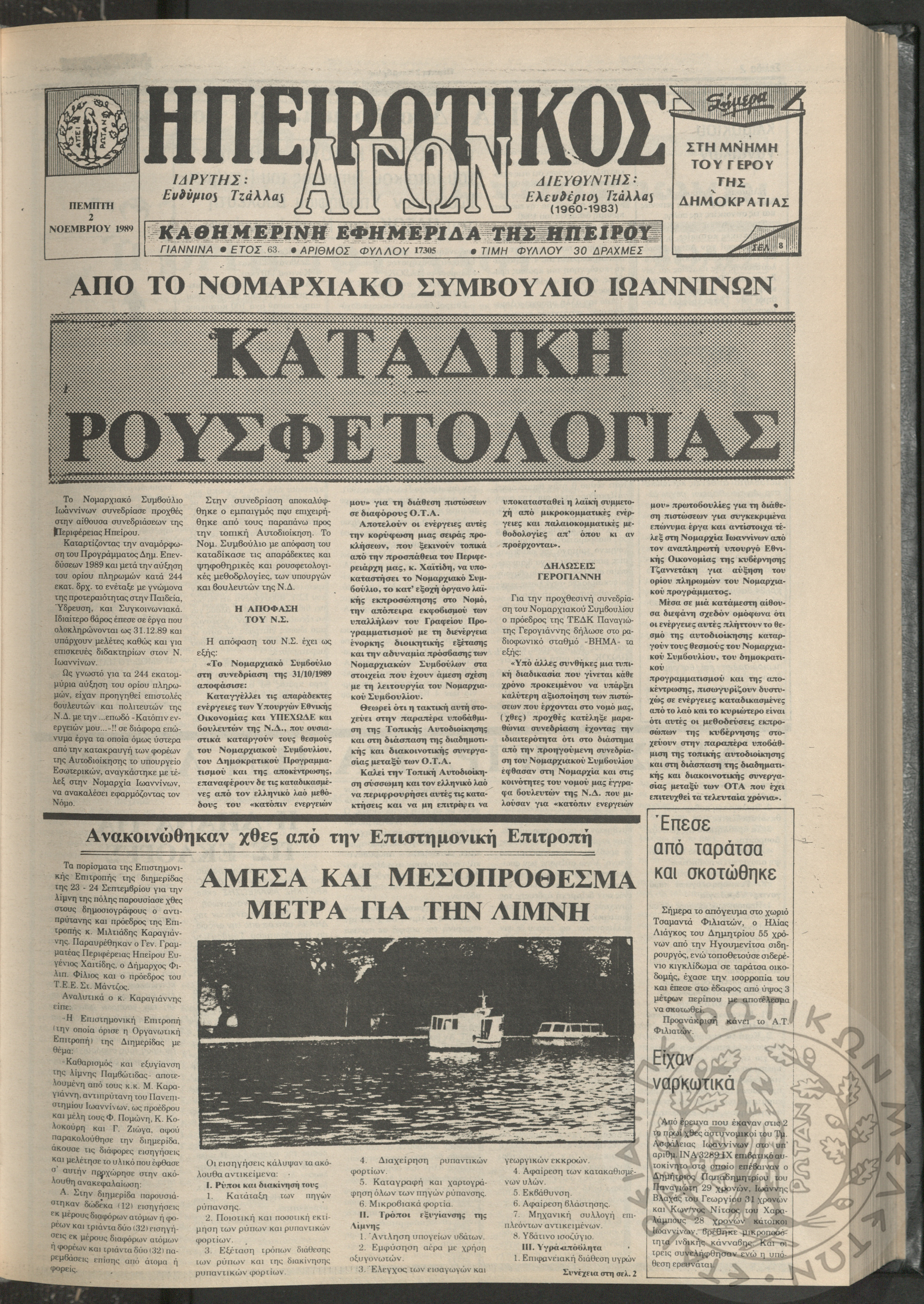 Ηπειρωτικός Αγών: καθημερινή εφημερίδα της Ηπείρου, 1989, φ. 17305