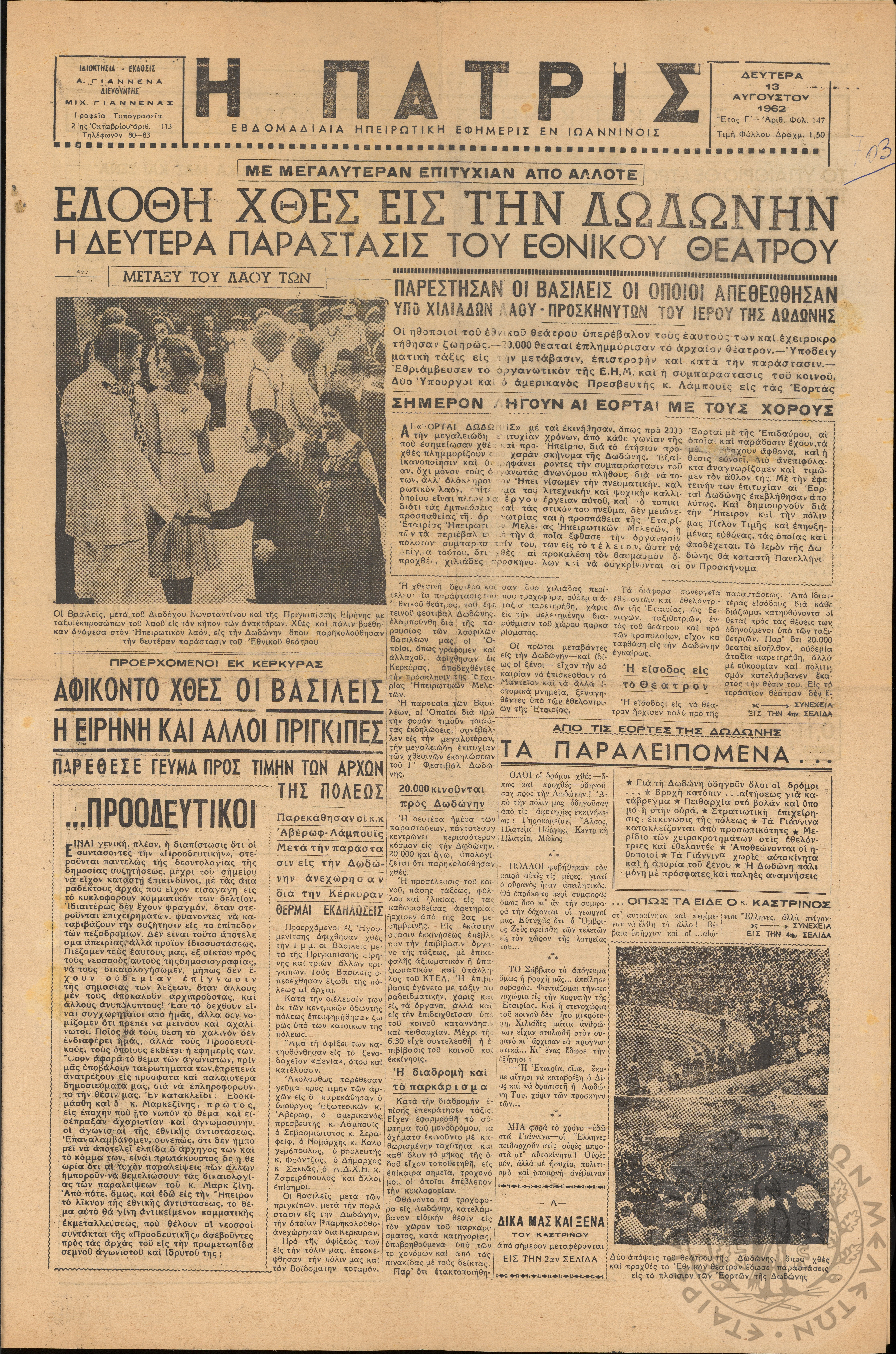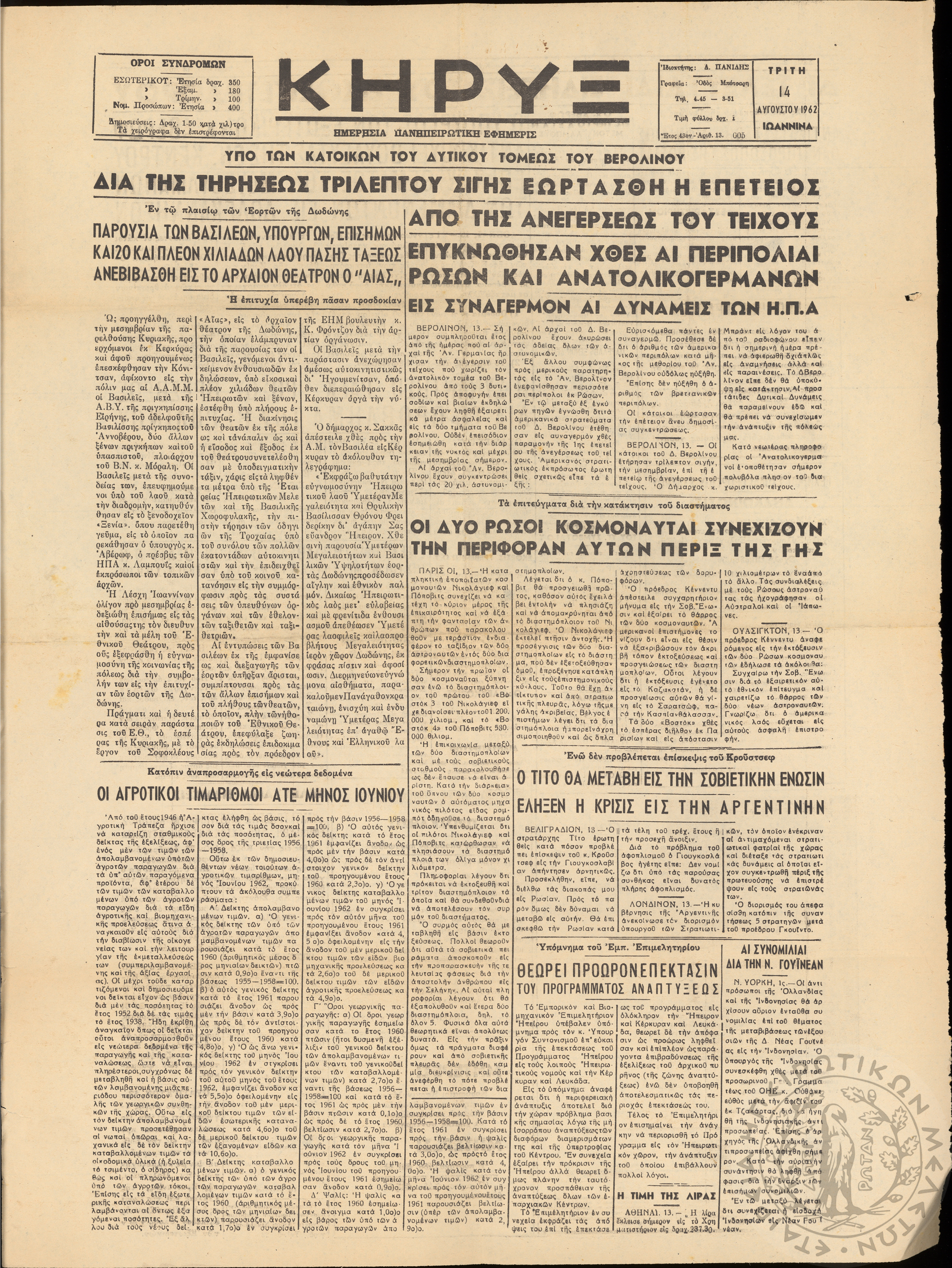 Εθνικός Αγών: καθημερινή Πανηπειρωτική πολιτική και των ειδήσεων εφημερίς εν Ιωαννίνοις, 1962, φ. 5146Έτος 17, αρ. φ. 5146...