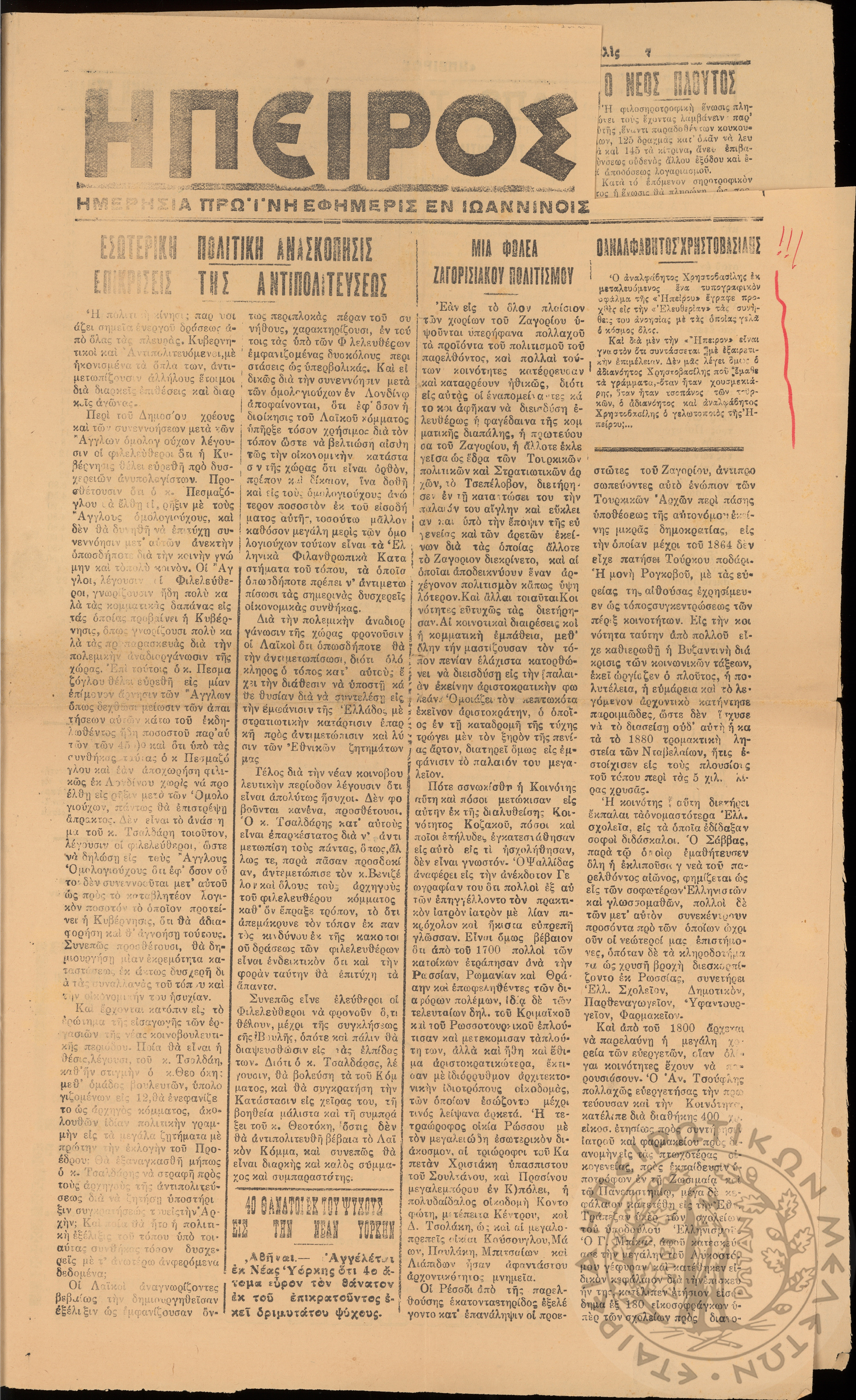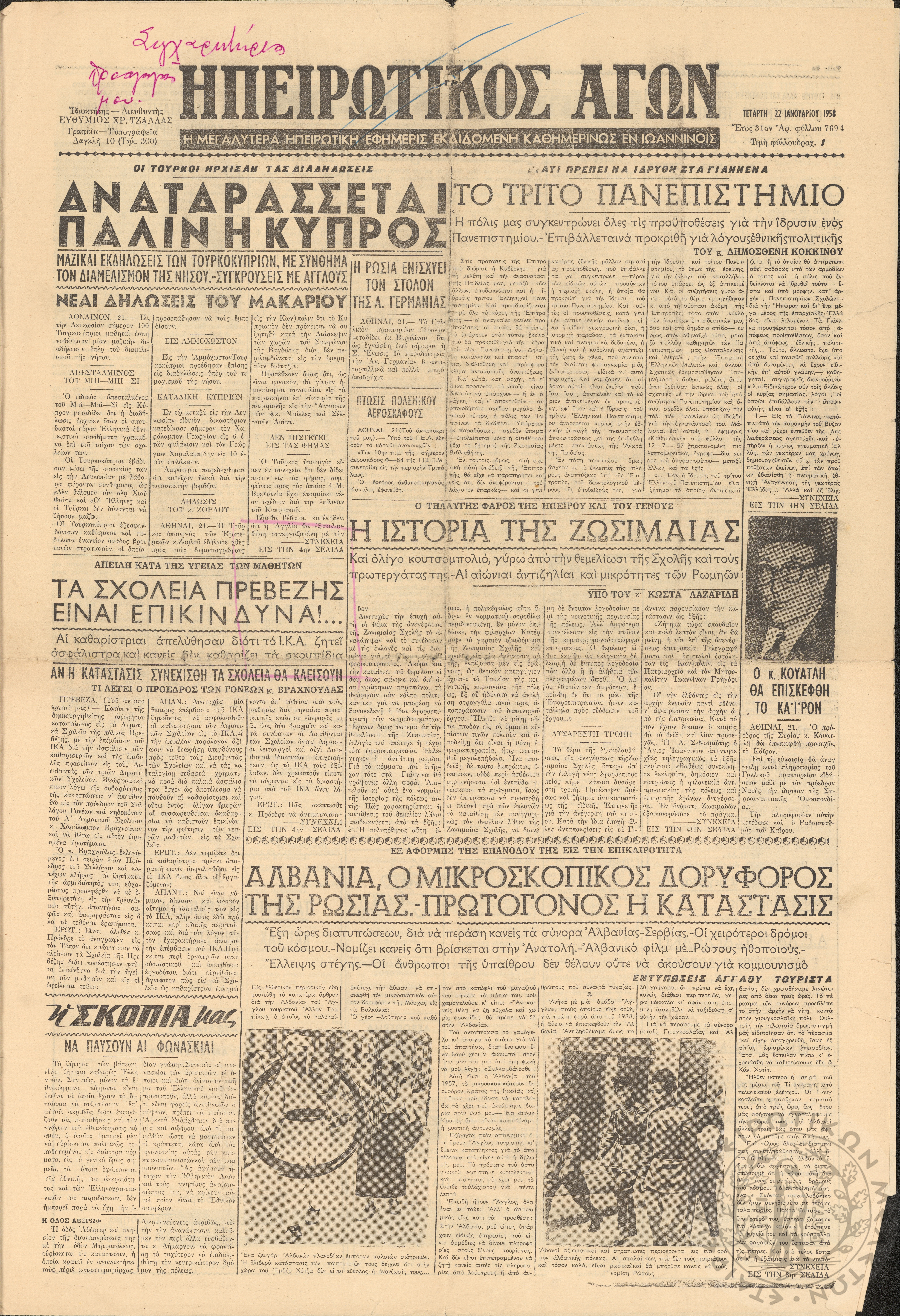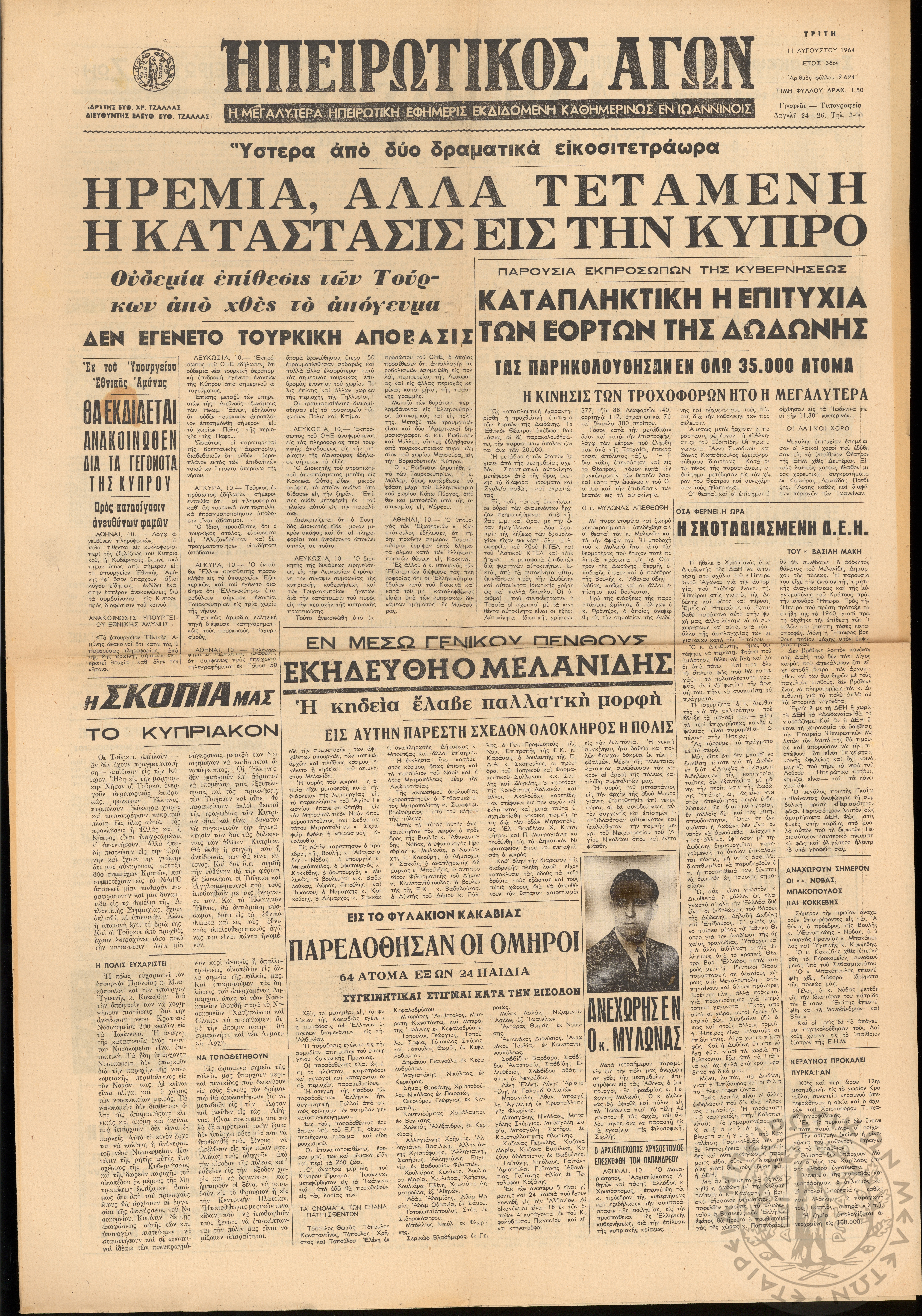 Ηπειρωτικός Αγών: η μεγαλυτέρα Ηπειρωτική εφημερίς εκδιδομένη καθημερινώς εν Ιωαννίνοις, 1964, φ. 9694Έτος 36, φ. 9694...