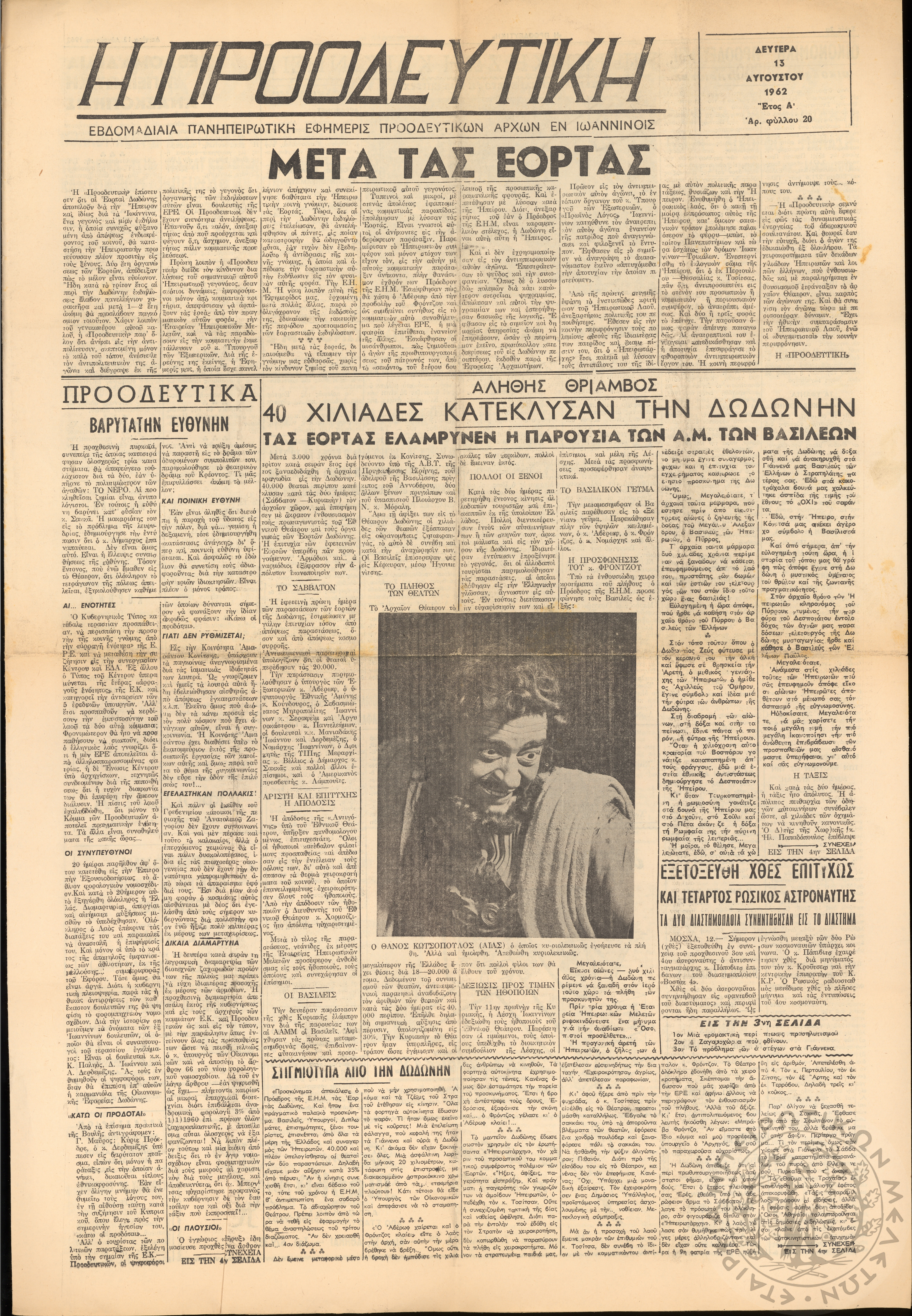 Η Προοδευτική: εβδομαδιαία Πανηπειρωτική εφημερίς προοδευτικών αρχών εν Ιωαννίνοις, 1962, φ. 20Έτος Α΄, φ. 20...