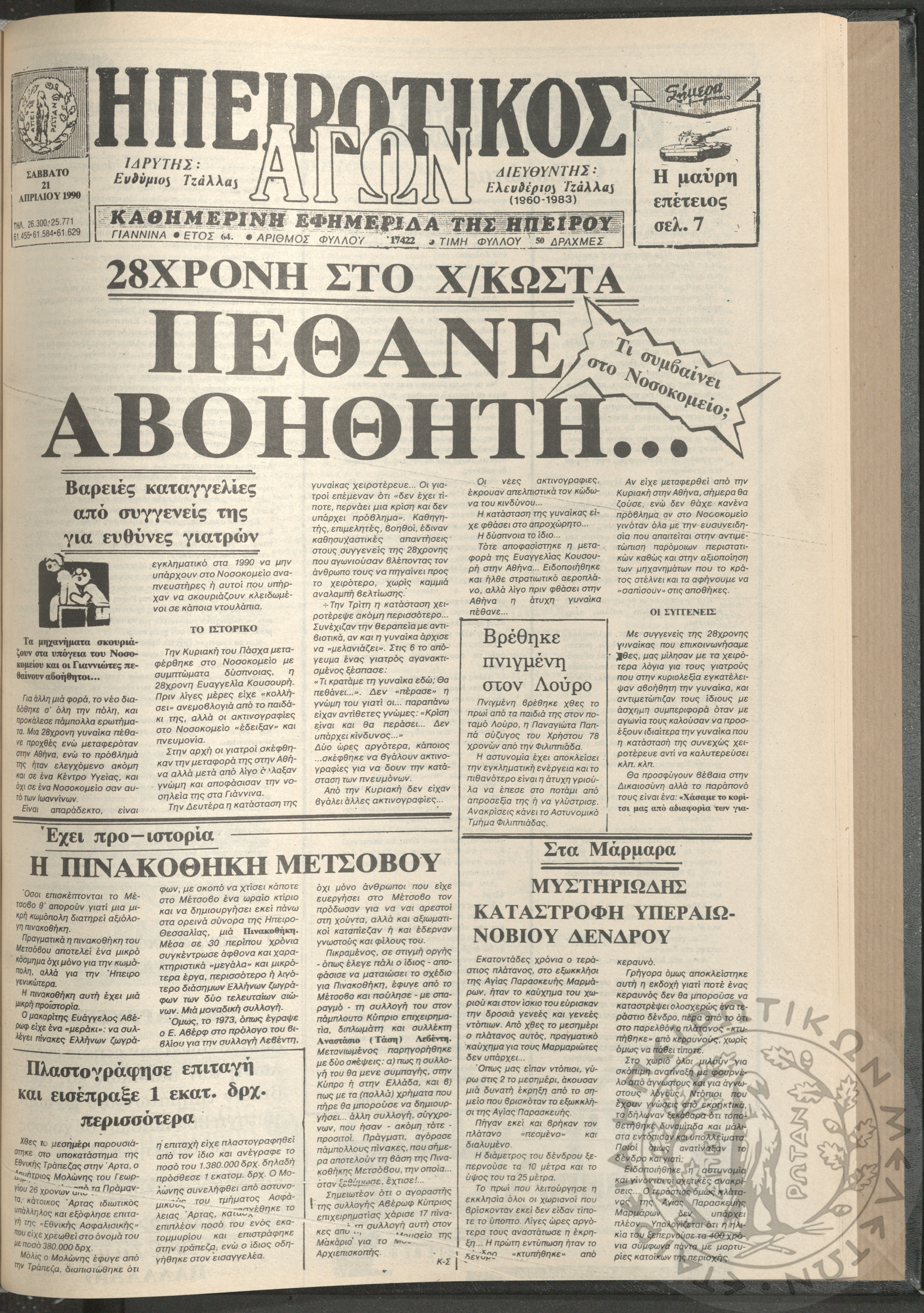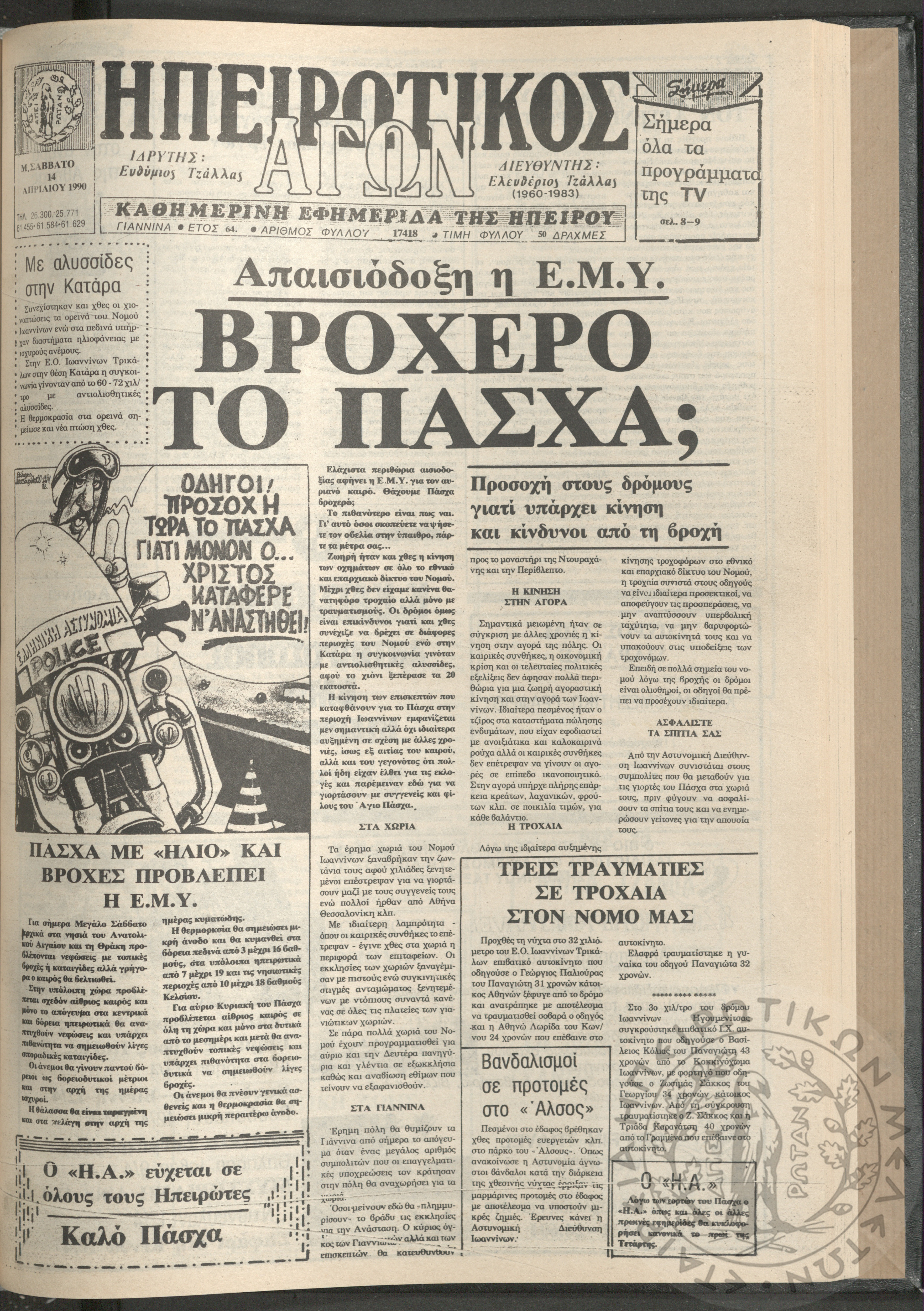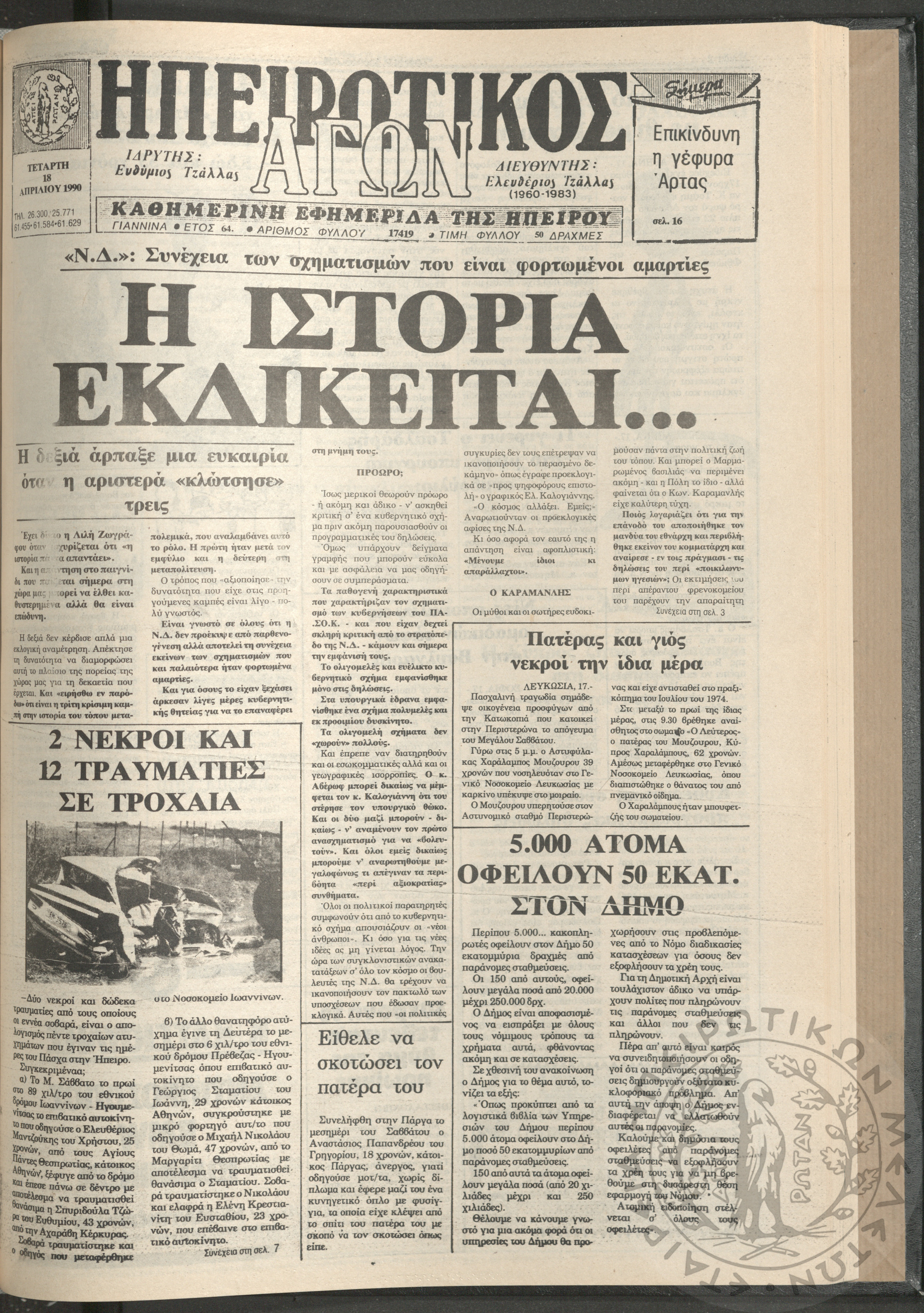 Ηπειρωτικός Αγών: καθημερινή εφημερίδα της Ηπείρου, 1990, φ. 17416