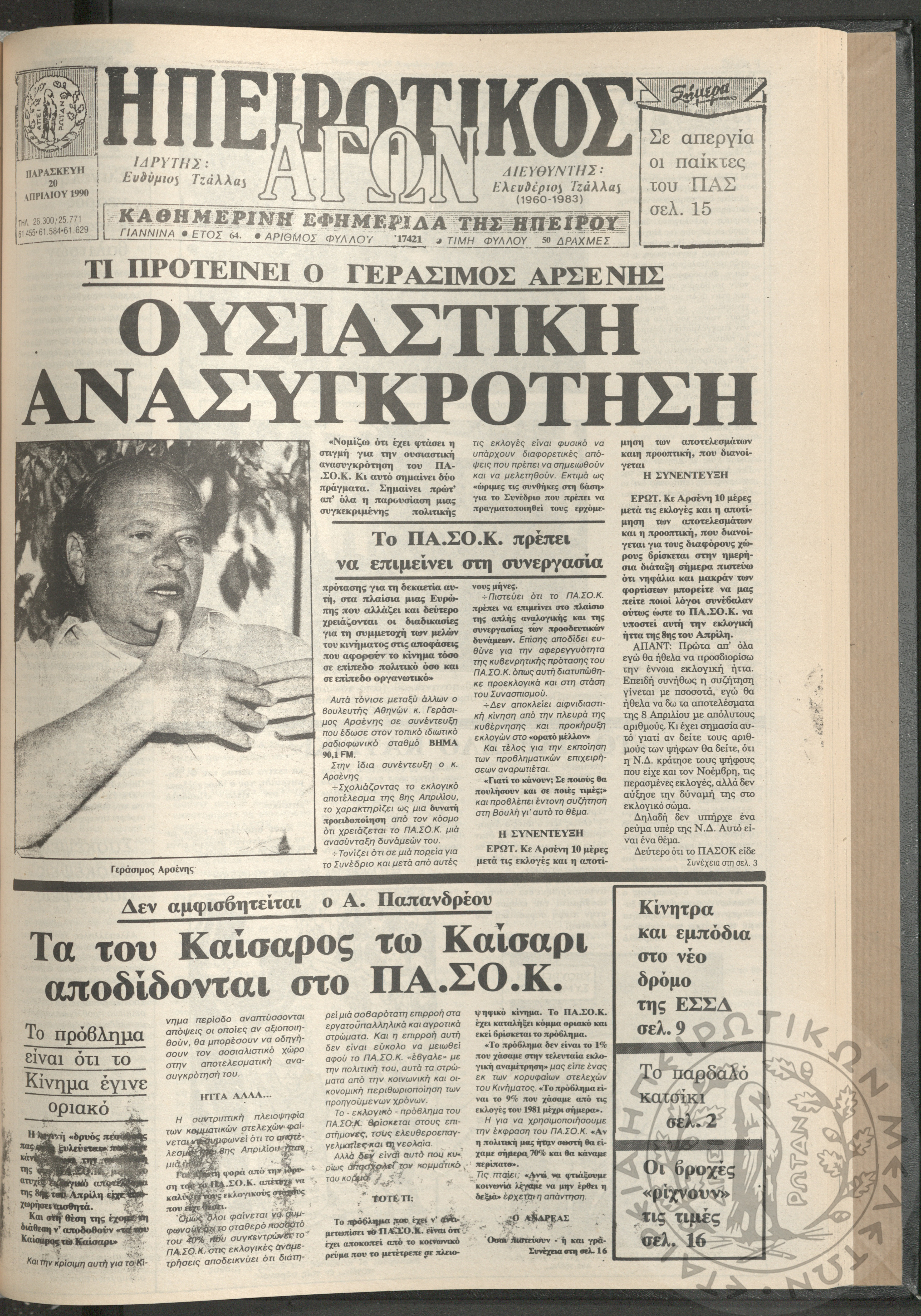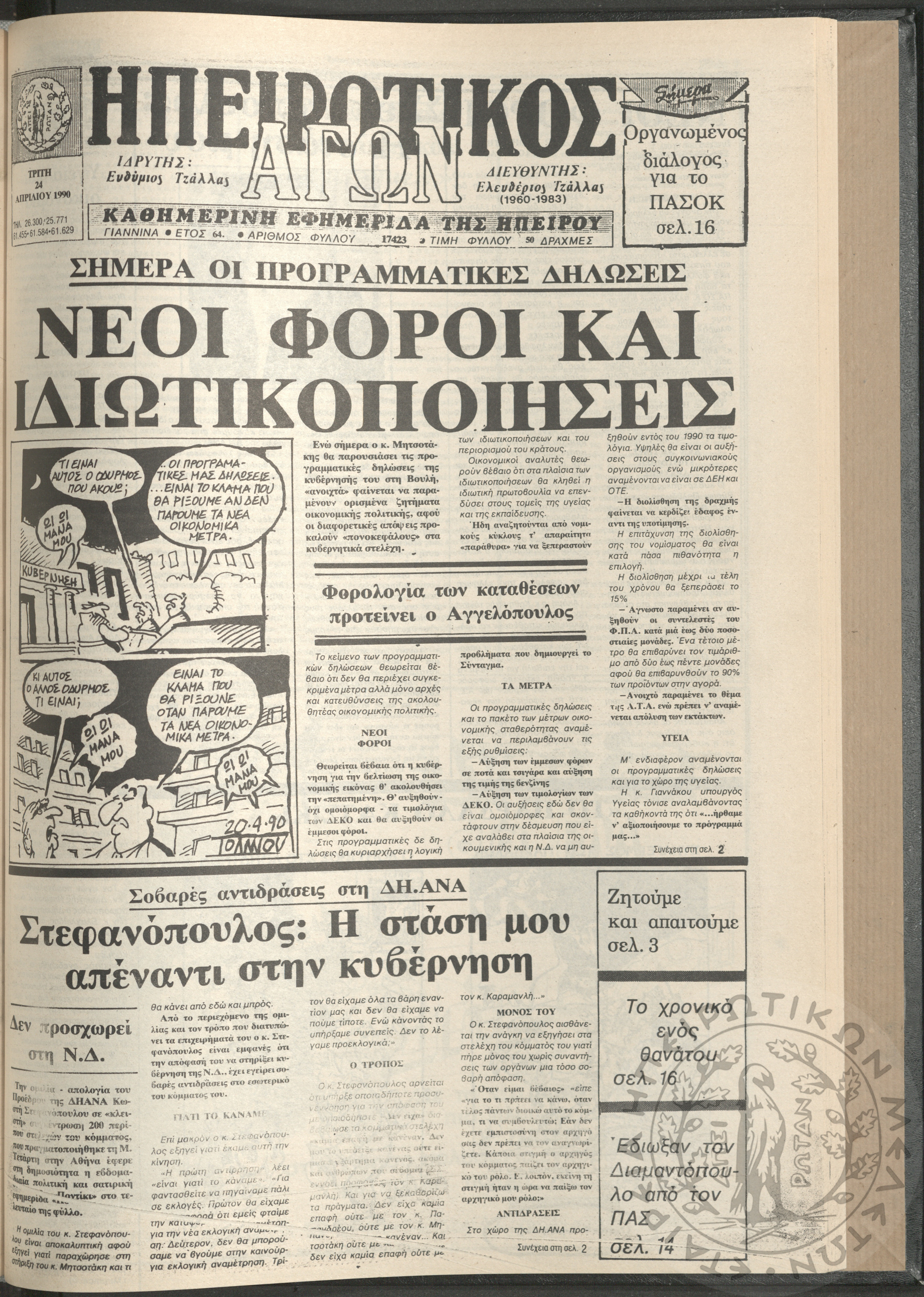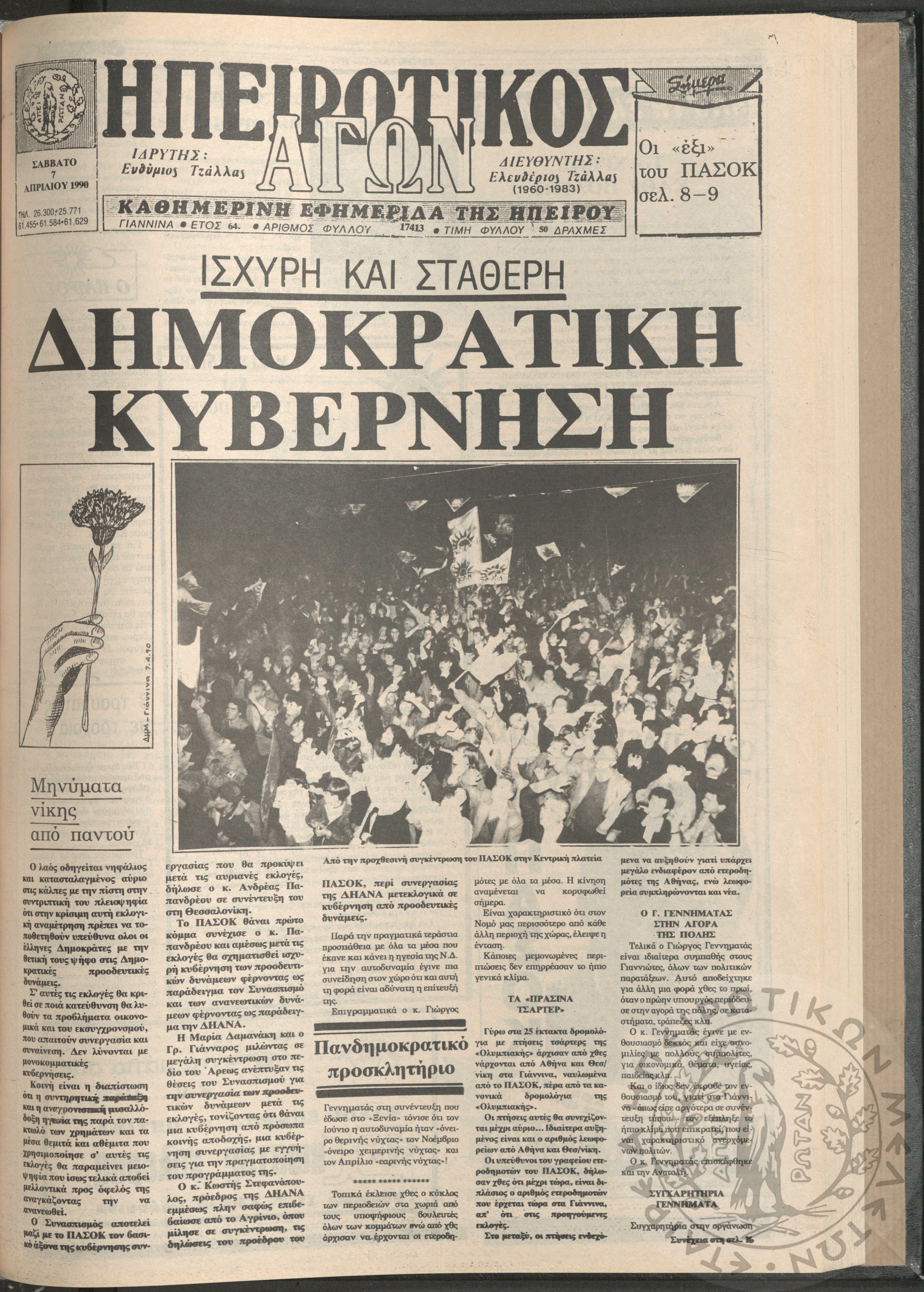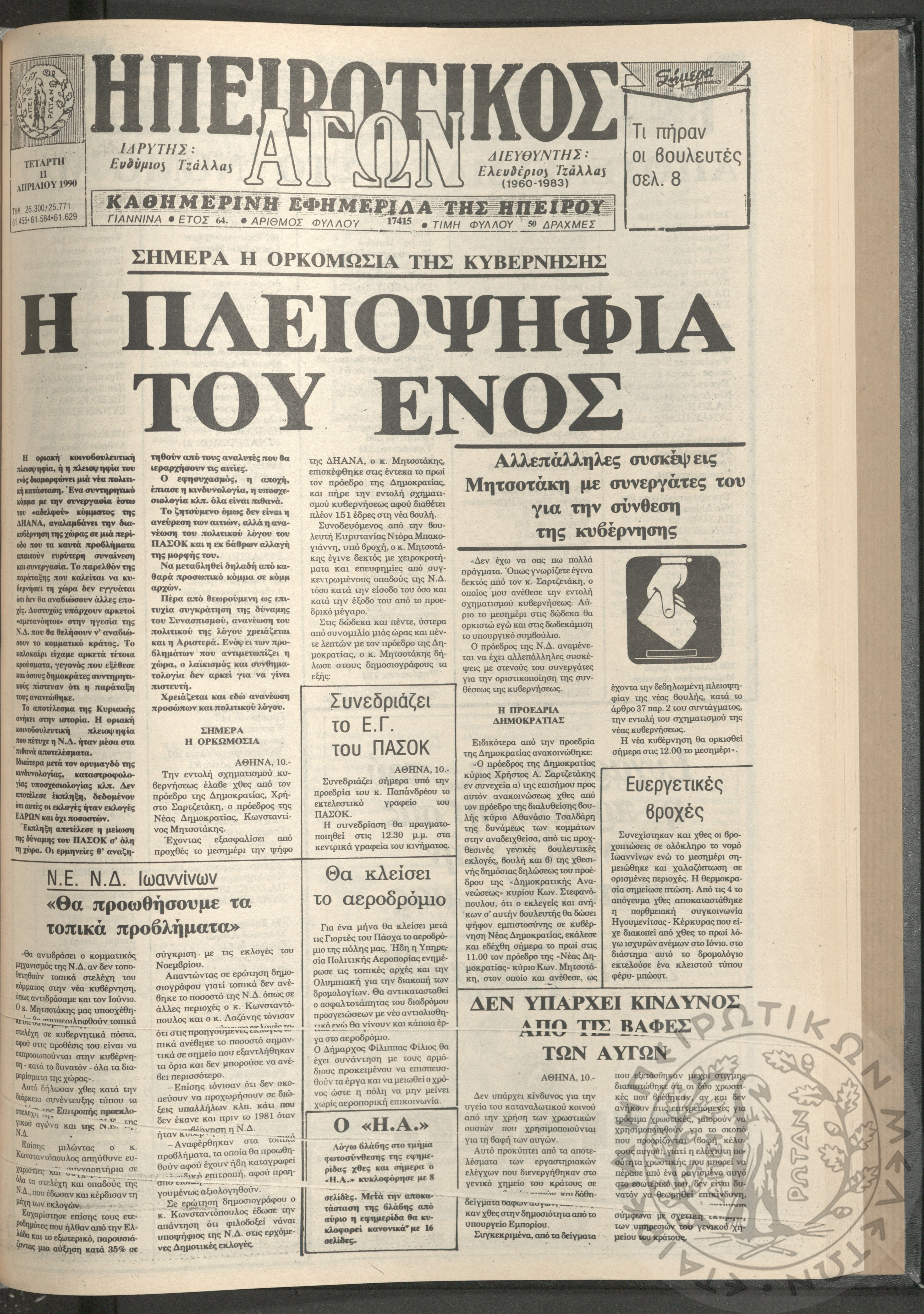 Ηπειρωτικός Αγών: καθημερινή εφημερίδα της Ηπείρου, 1990, φ. 17416