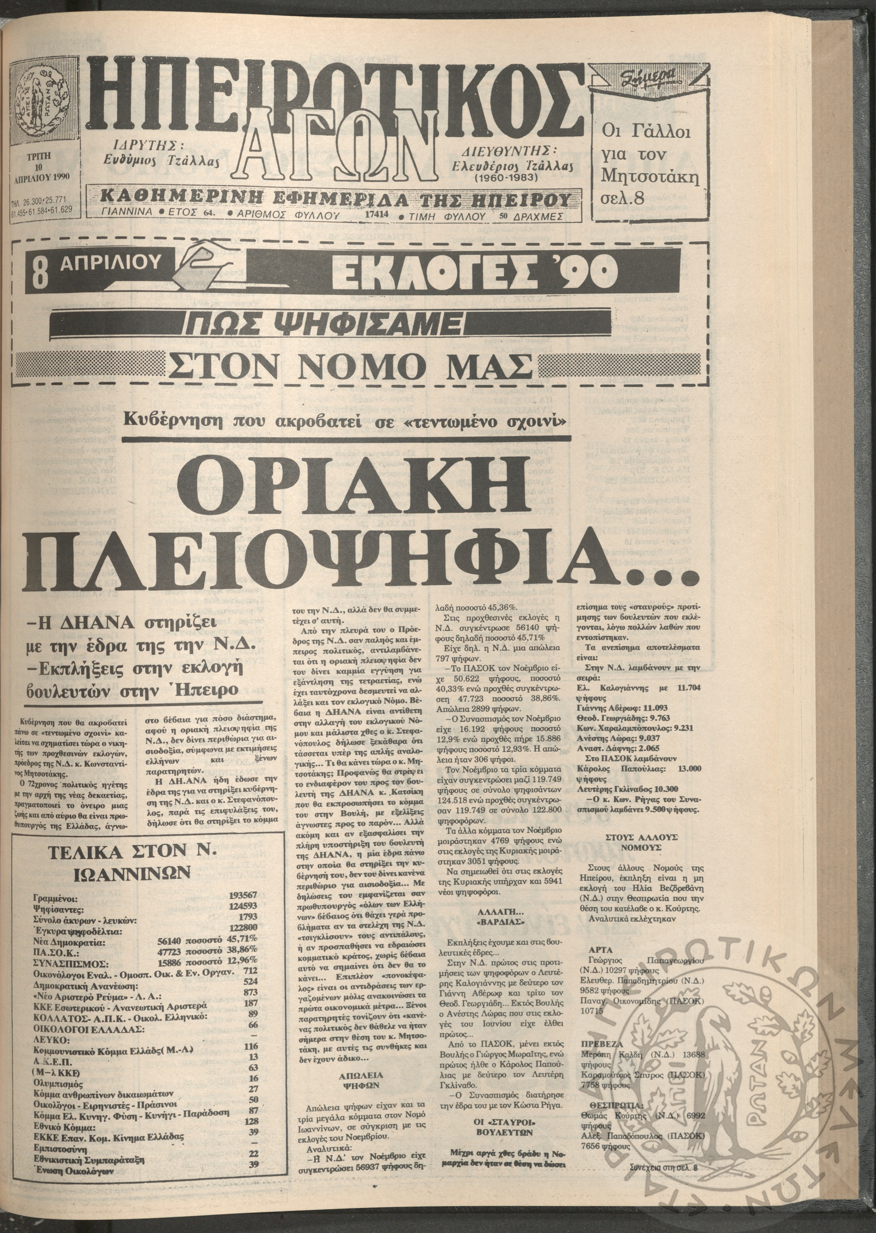 Ηπειρωτικός Αγών: καθημερινή εφημερίδα της Ηπείρου, 1990, φ. 17414