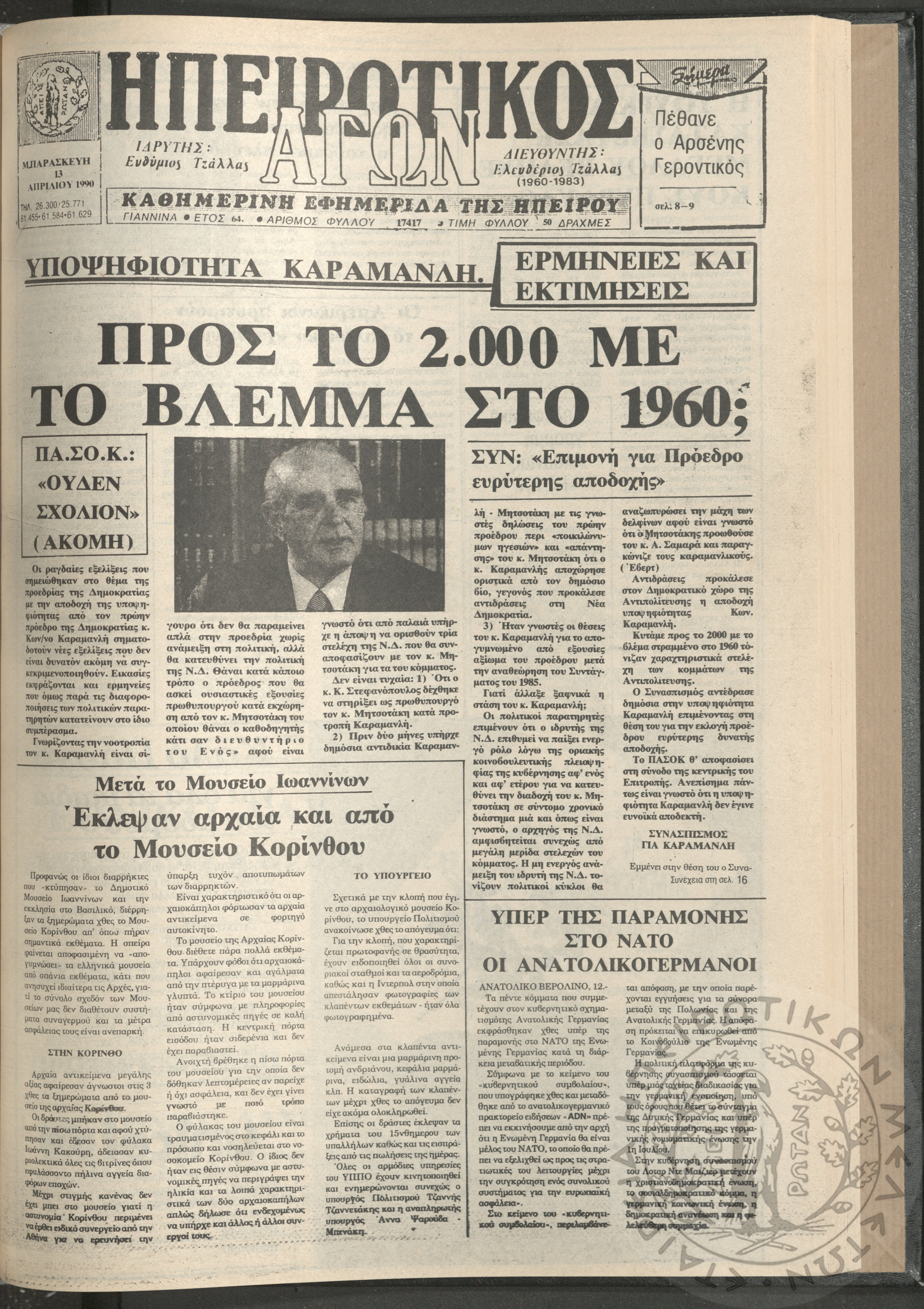 Ηπειρωτικός Αγών: καθημερινή εφημερίδα της Ηπείρου, 1990, φ. 17413