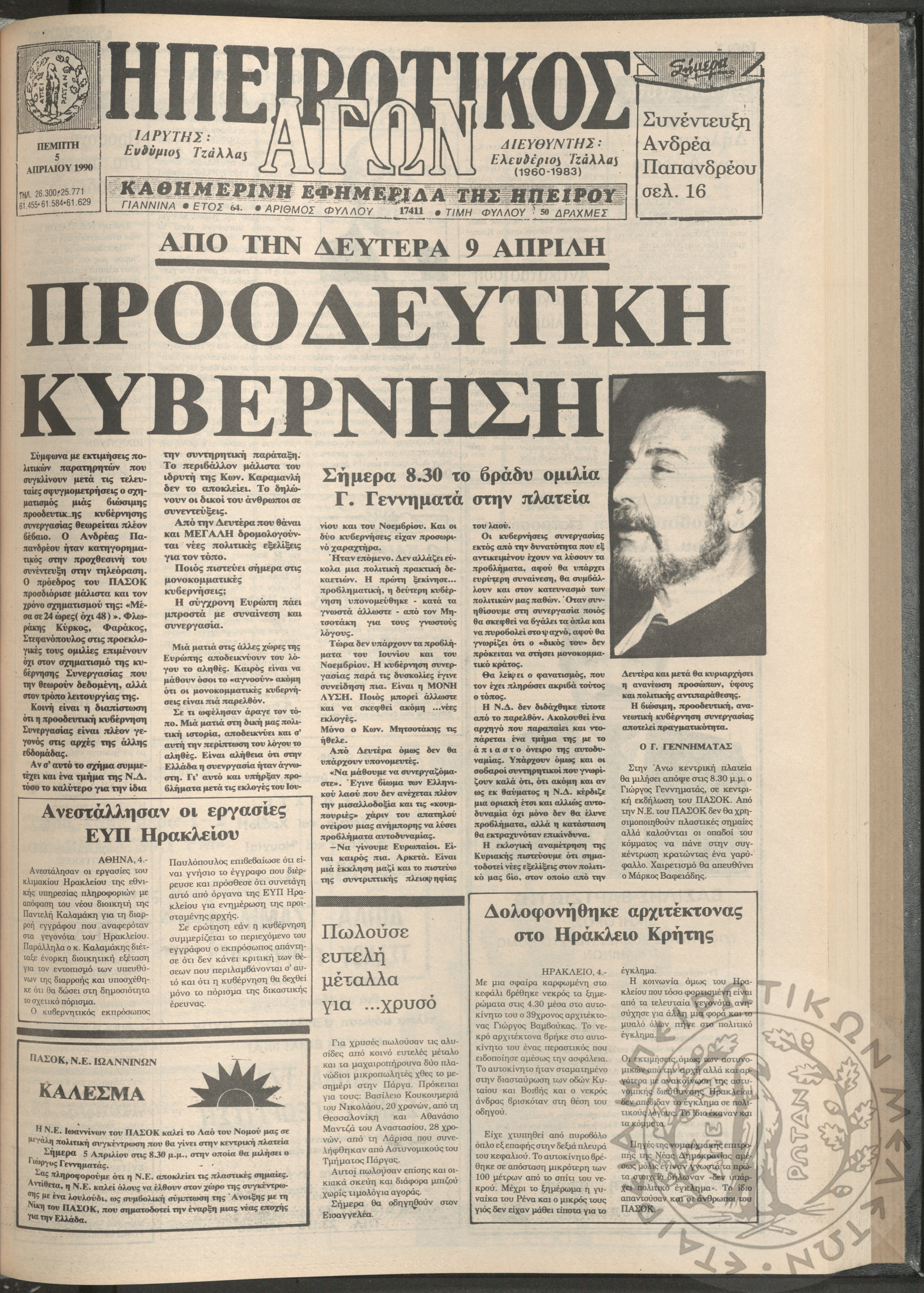 Ηπειρωτικός Αγών: καθημερινή εφημερίδα της Ηπείρου, 1990, φ. 17411