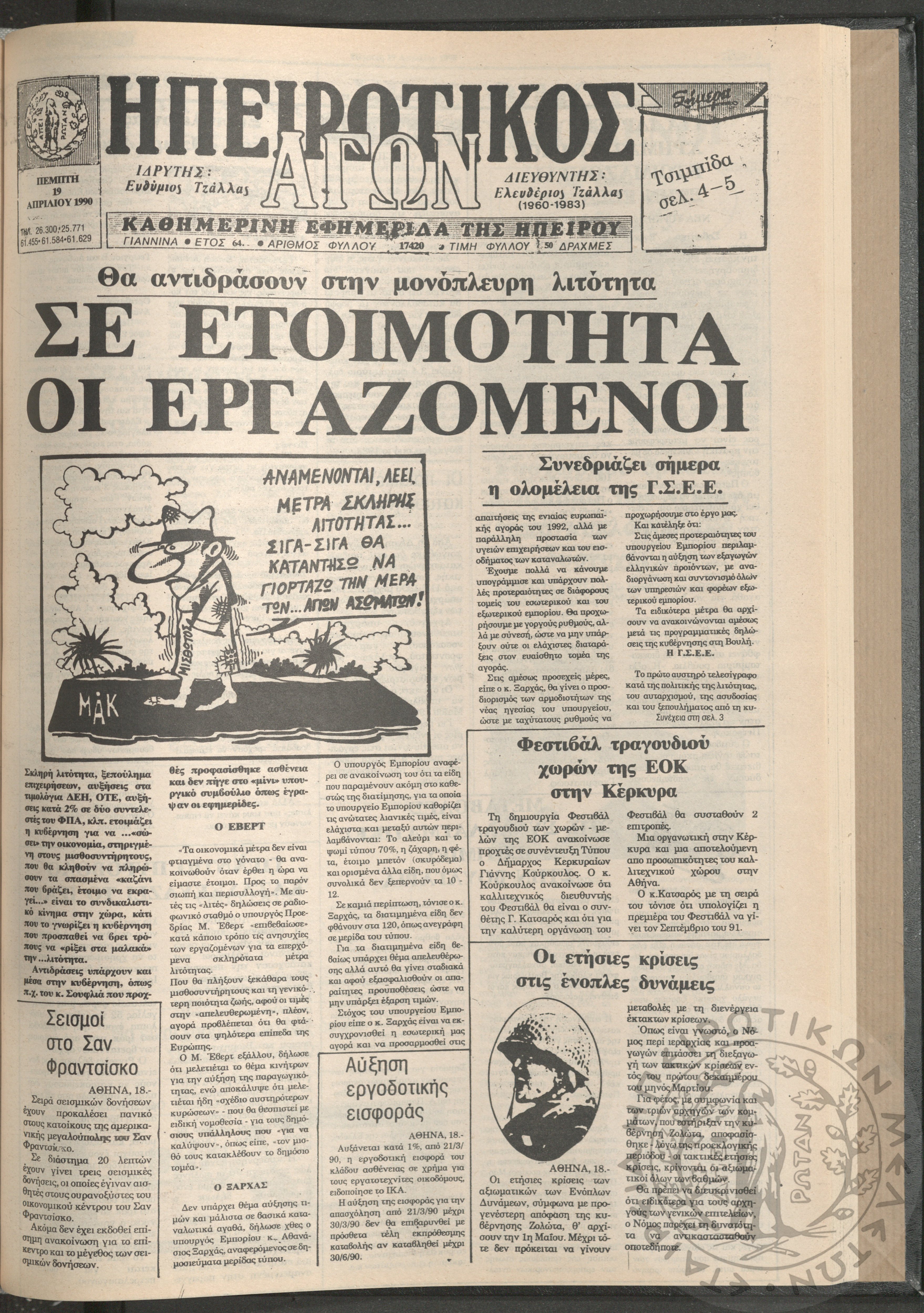 Ηπειρωτικός Αγών: καθημερινή εφημερίδα της Ηπείρου, 1990, φ. 17419