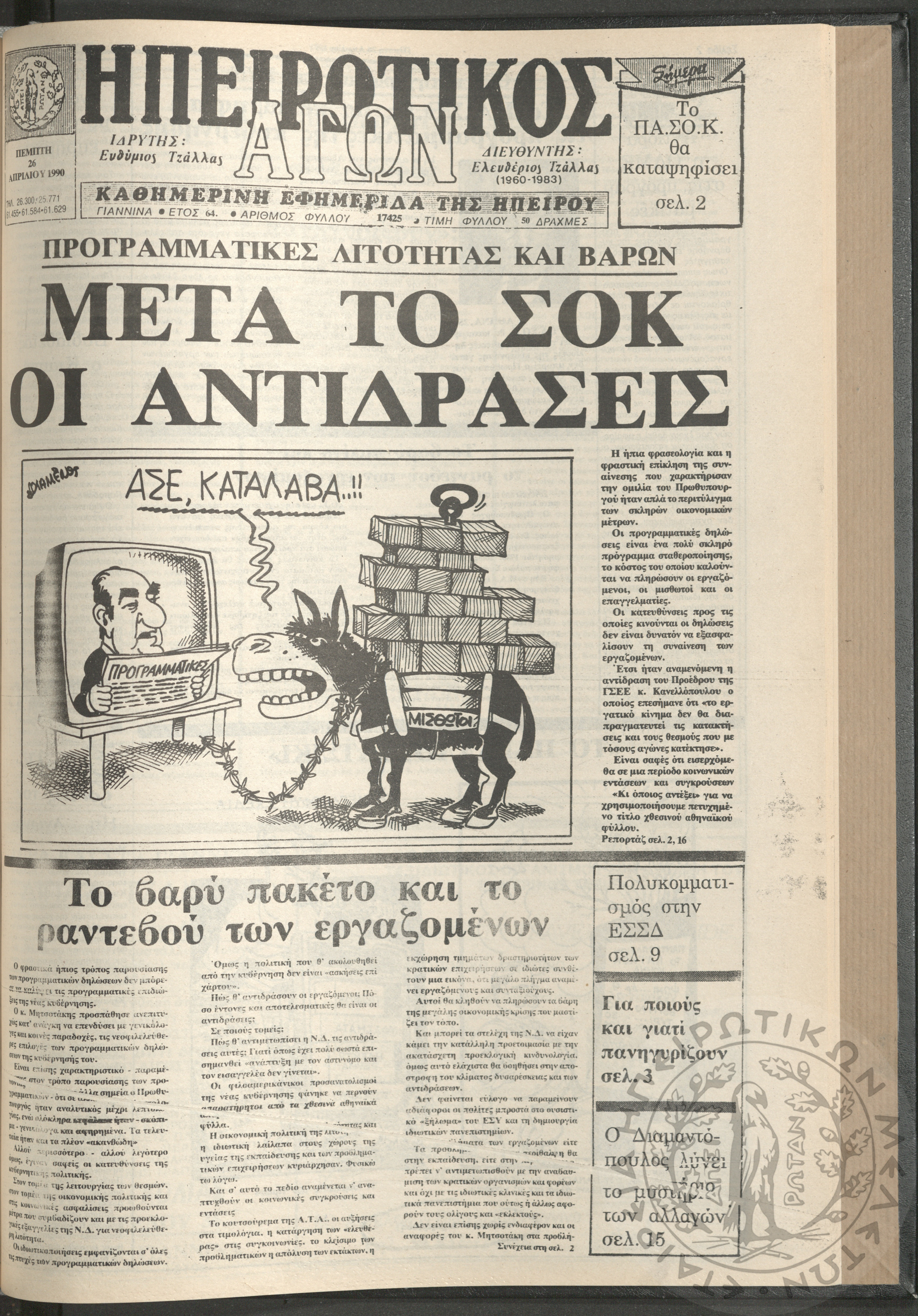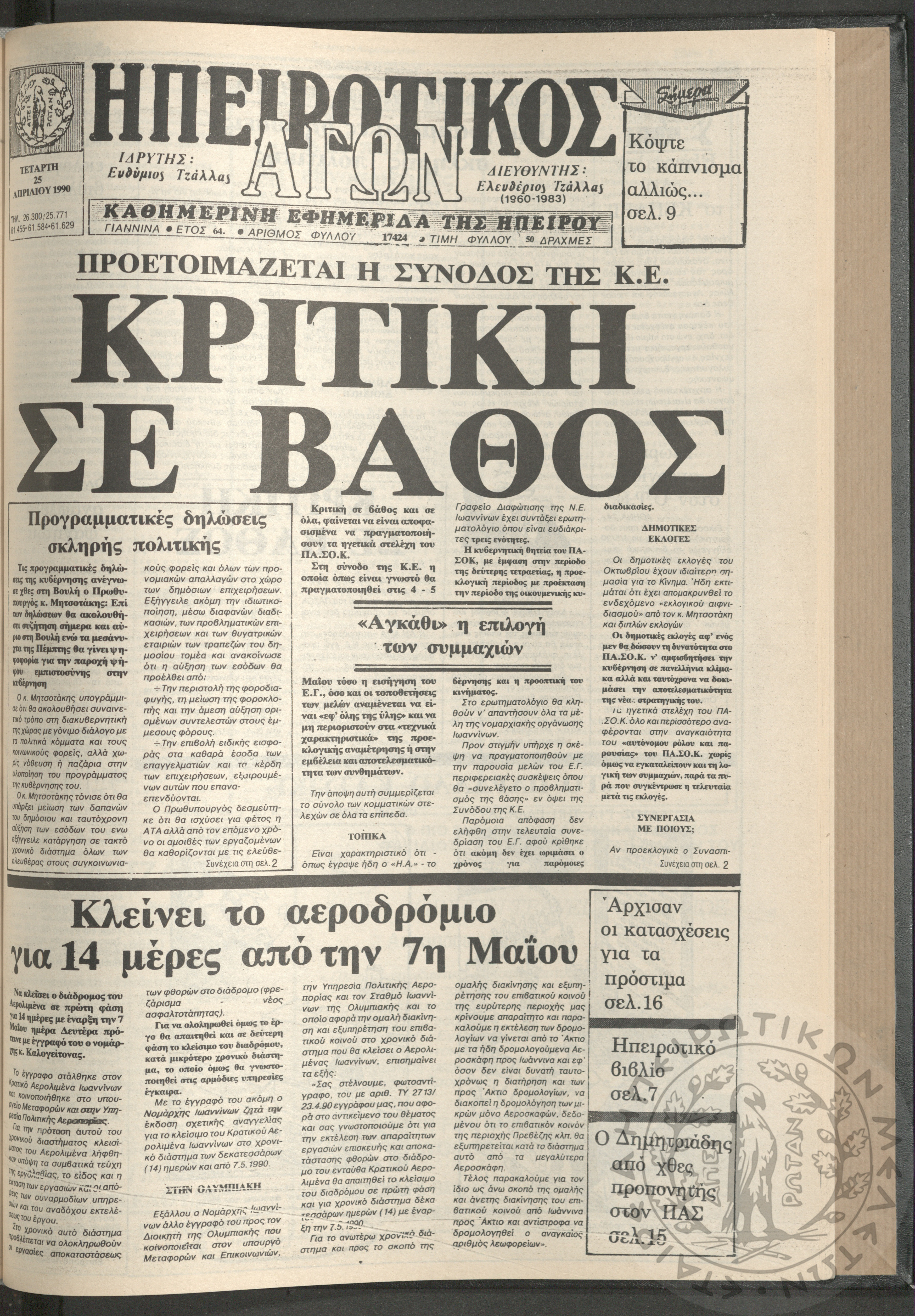 Ηπειρωτικός Αγών: καθημερινή εφημερίδα της Ηπείρου, 1990, φ. 17425