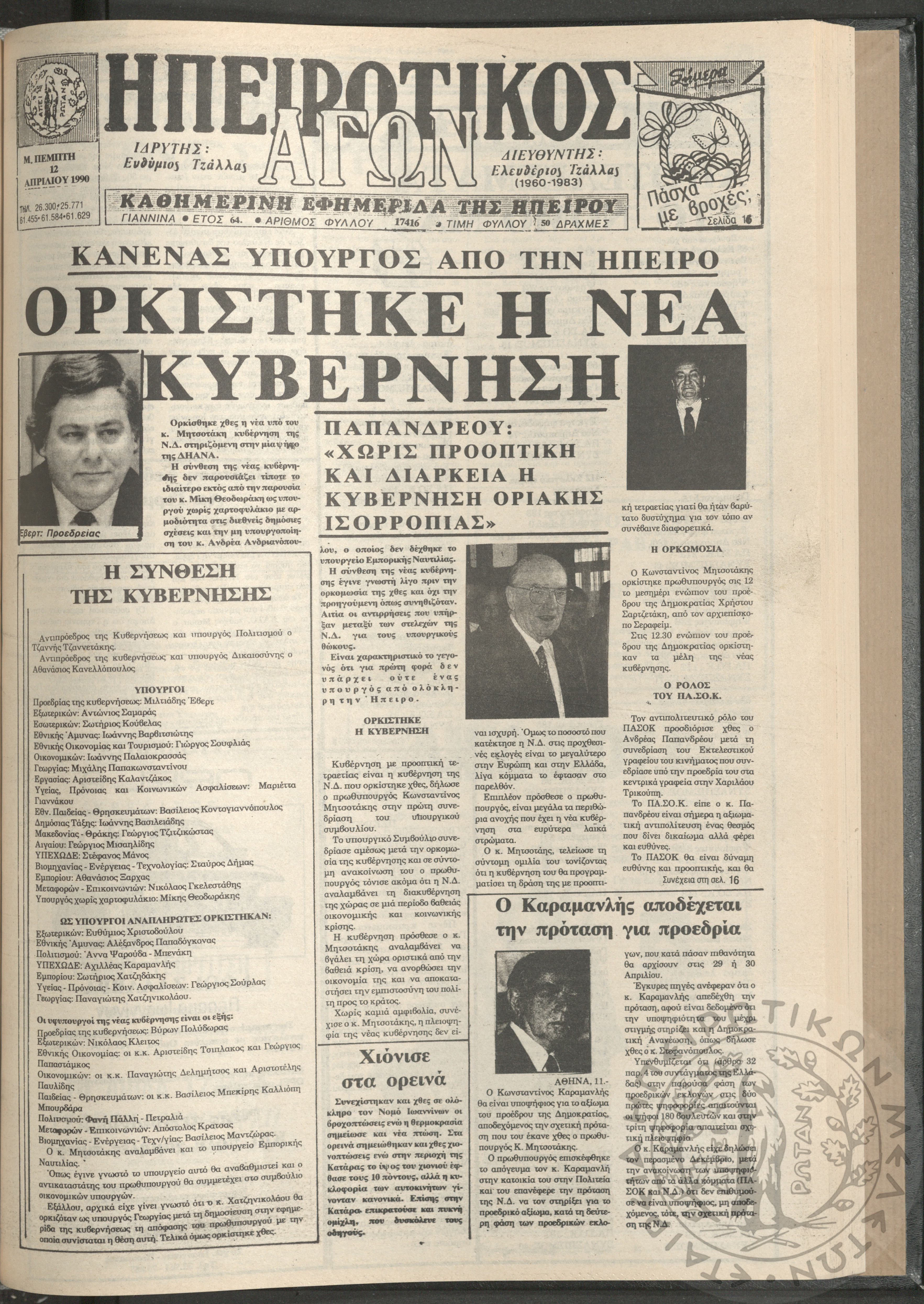 Ηπειρωτικός Αγών: καθημερινή εφημερίδα της Ηπείρου, 1990, φ. 17412