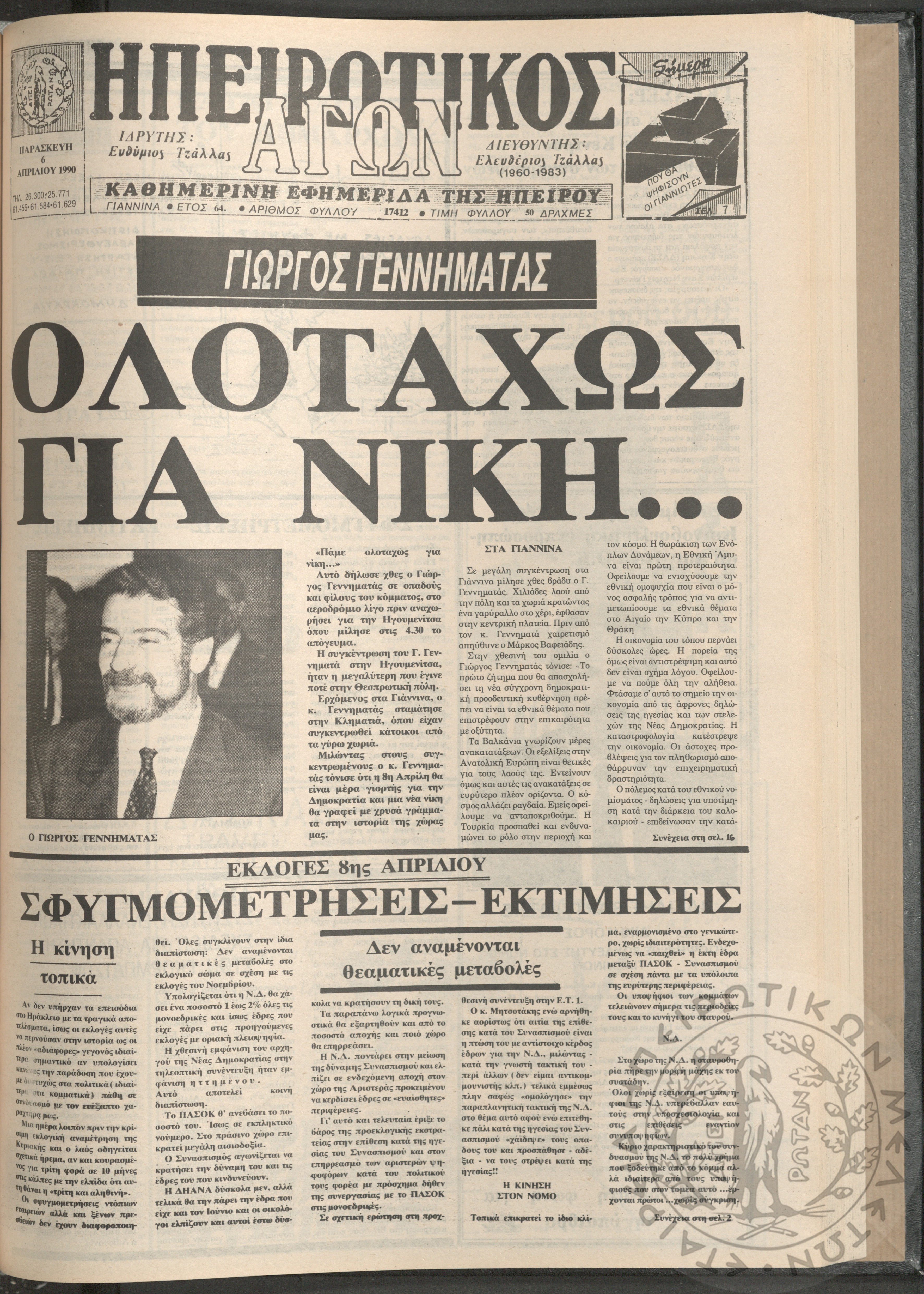 Ηπειρωτικός Αγών: καθημερινή εφημερίδα της Ηπείρου, 1990, φ. 17417