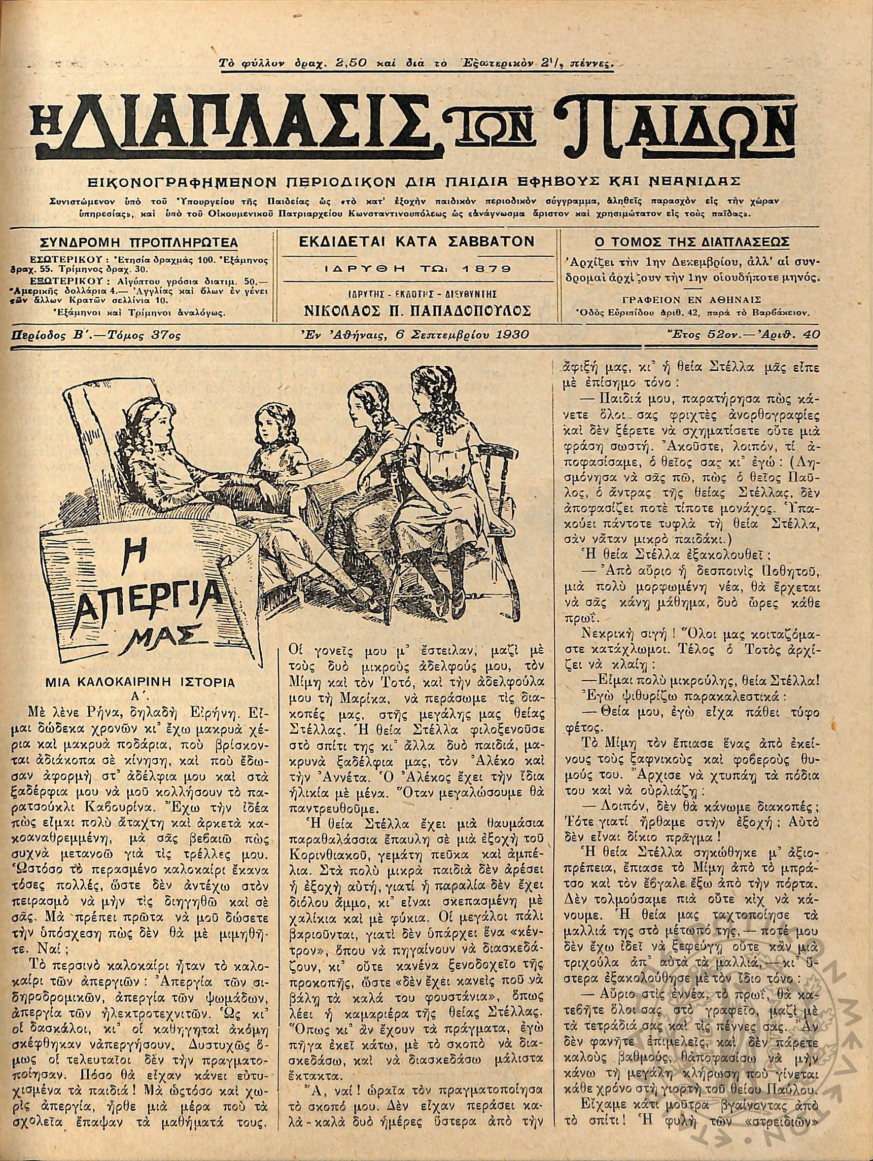 Η Διάπλασις των Παίδων: εικονογραφημένον περιοδικόν διά παιδιά, εφήβους και νεανίδας / τόμ. 37, τεύχ. 40Έτος 52, τόμ. 37, τεύχ. 40...