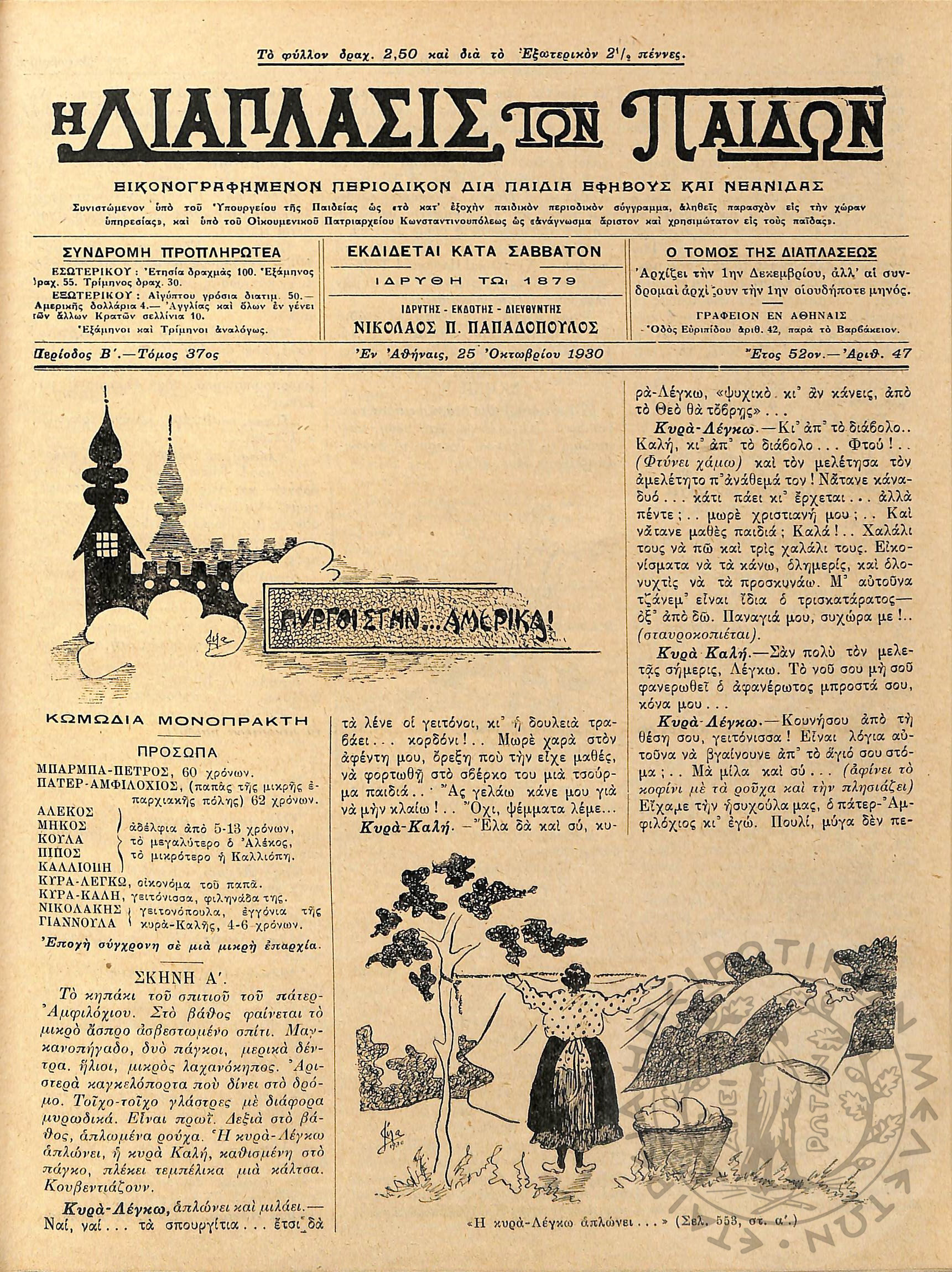 Η Διάπλασις των Παίδων: εικονογραφημένον περιοδικόν διά παιδιά, εφήβους και νεανίδας / τόμ. 37, τεύχ. 47Έτος 52, τόμ. 37, τεύχ. 47...