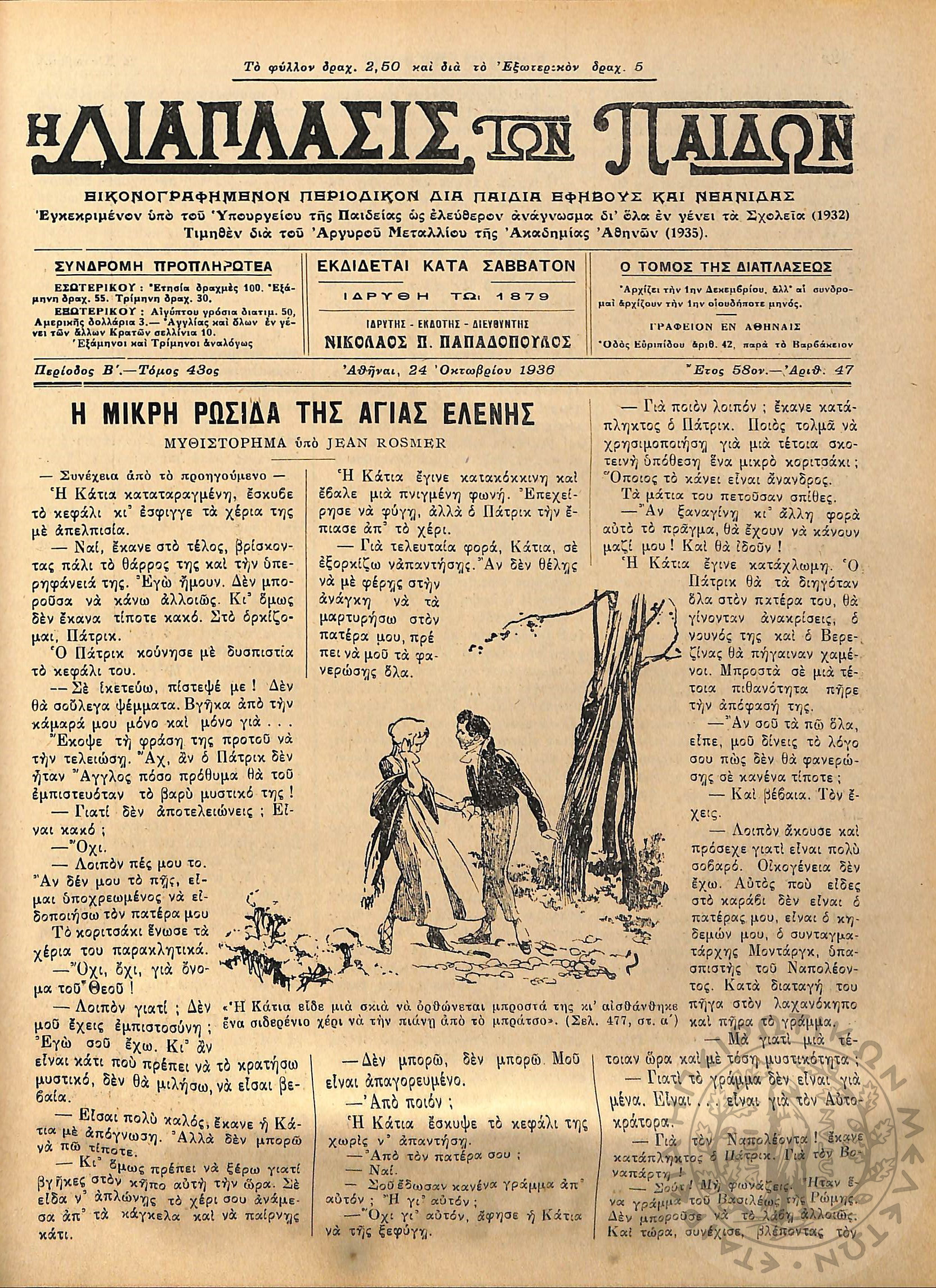 Η Διάπλασις των Παίδων: εικονογραφημένον περιοδικόν διά παιδιά, εφήβους και νεανίδας / Έτος 58, τεύχ. 47Έτος 58, τόμ. 43, τεύχ. 47...