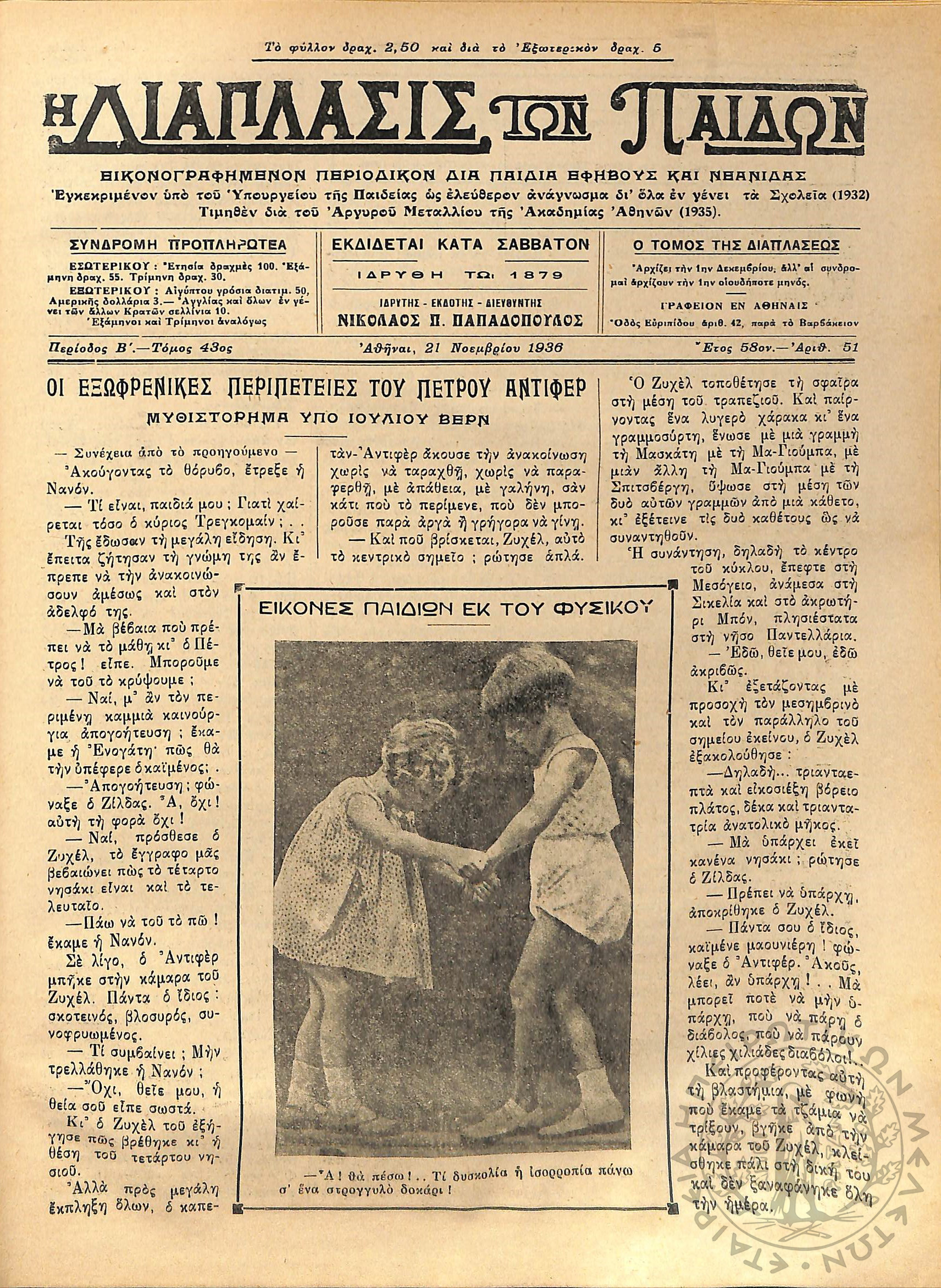 Η Διάπλασις των Παίδων: εικονογραφημένον περιοδικόν διά παιδιά, εφήβους και νεανίδας / Έτος 58, τεύχ. 51Έτος 58, τόμ. 43, τεύχ. 51...