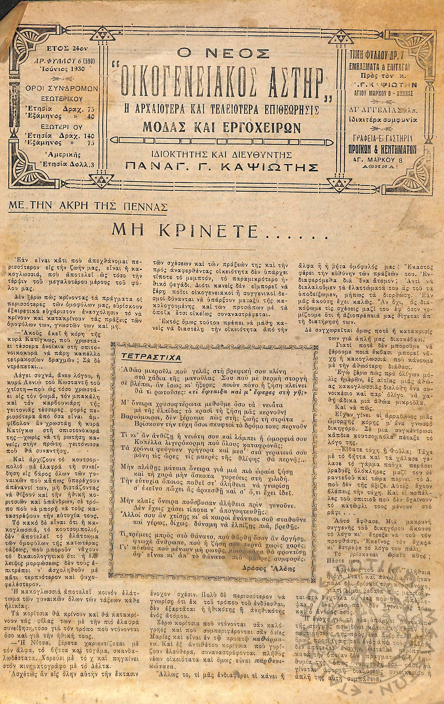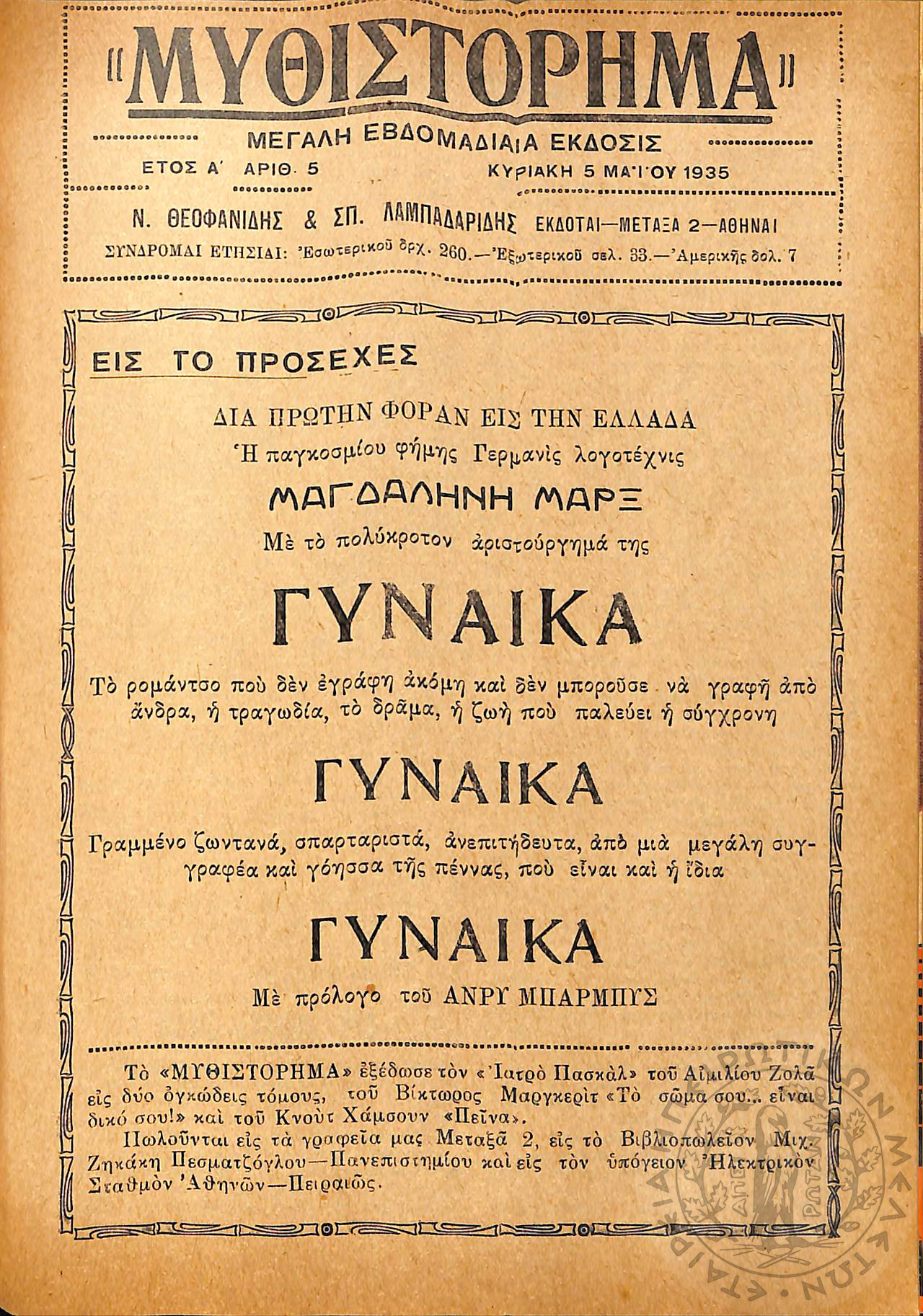 Έτος Α΄, αρ. τεύχ. 4: Πείνα... Έτος Α΄, αρ. τεύχ. 5: Γυναίκα... Έτος Α΄, αρ. τεύχ. 7: Το κατα... Έτος 24ο, τεύχ. 6 [590]... Έτος 14, αρ. τεύχ. 9-10...