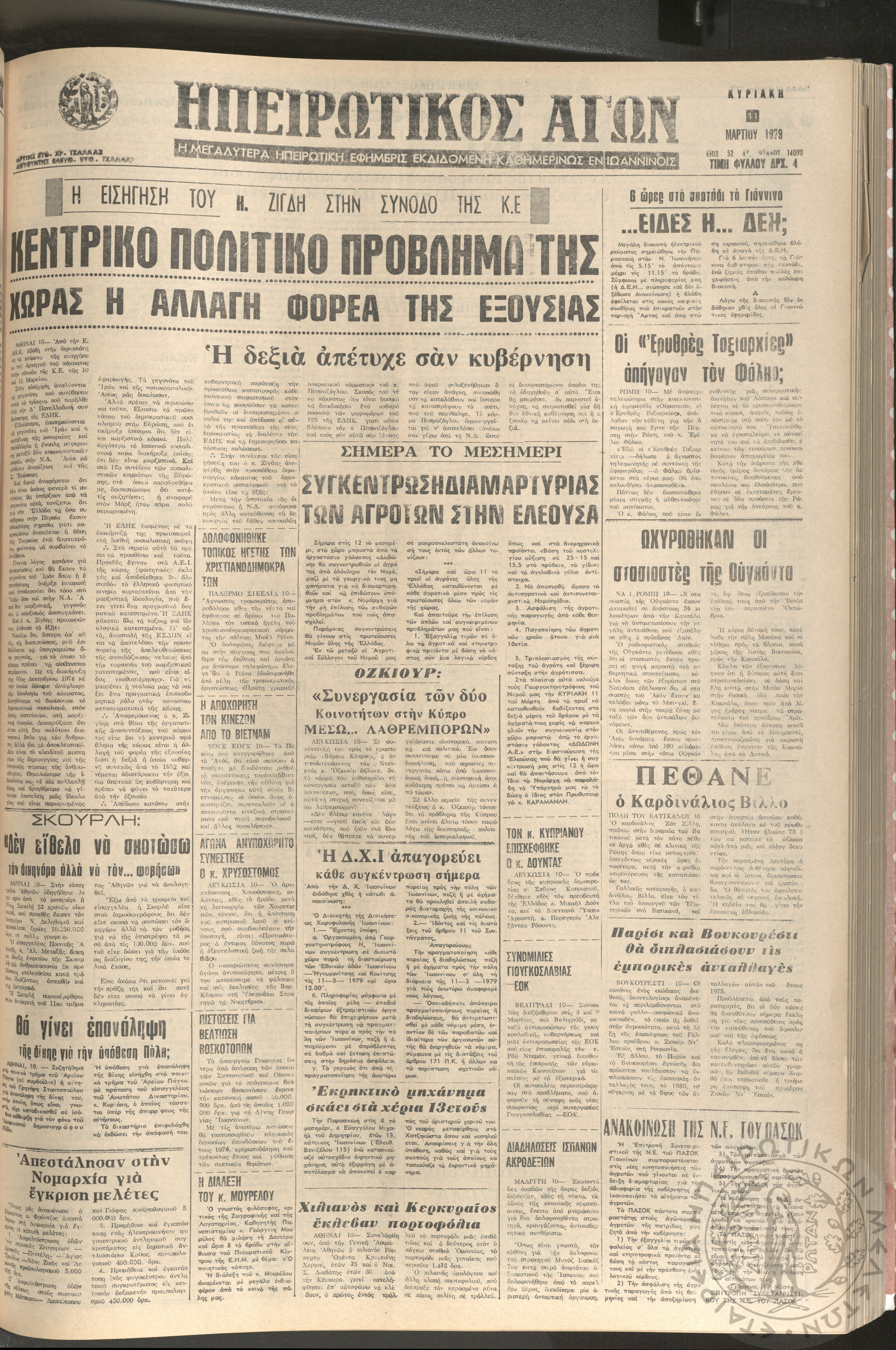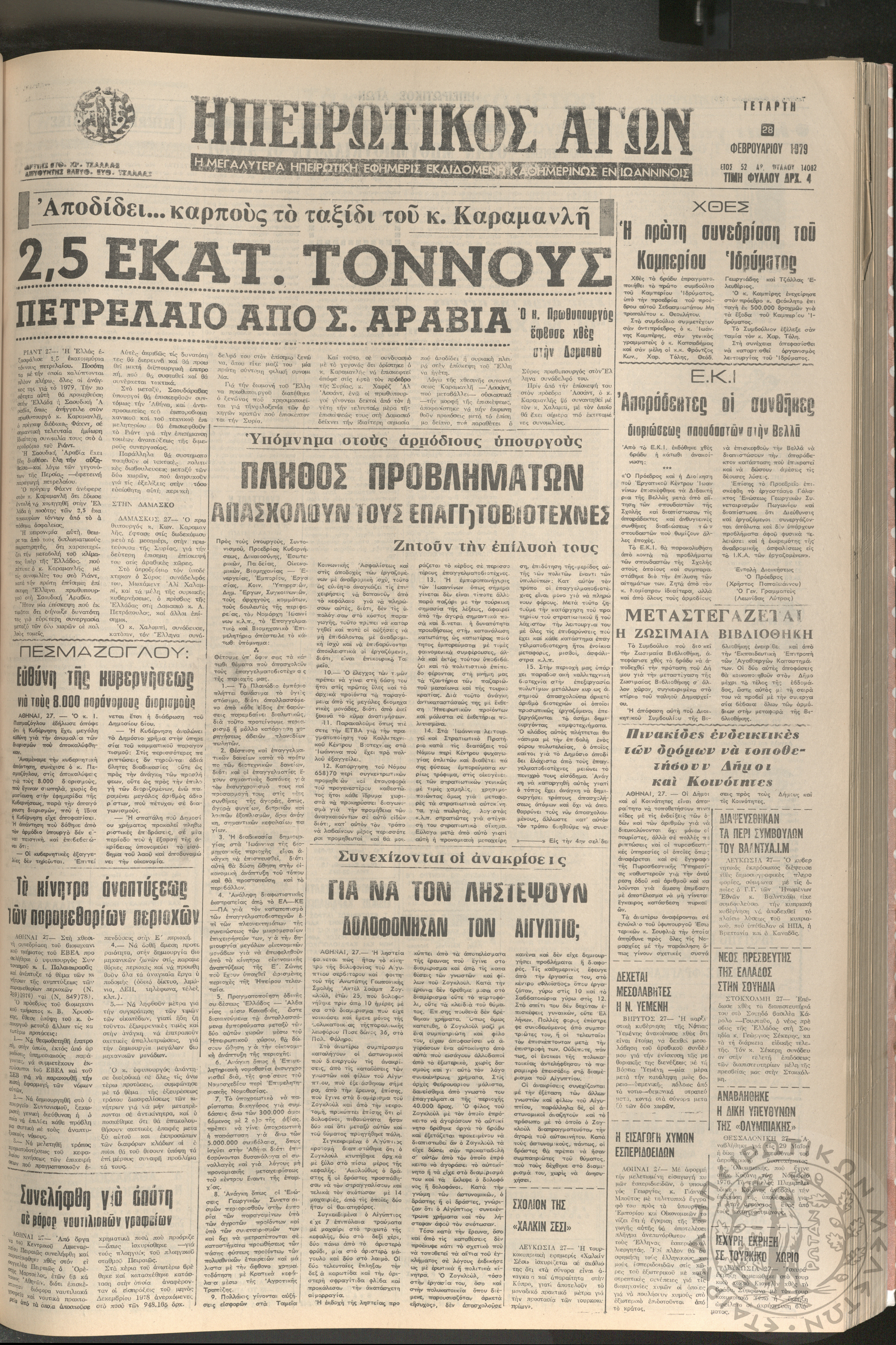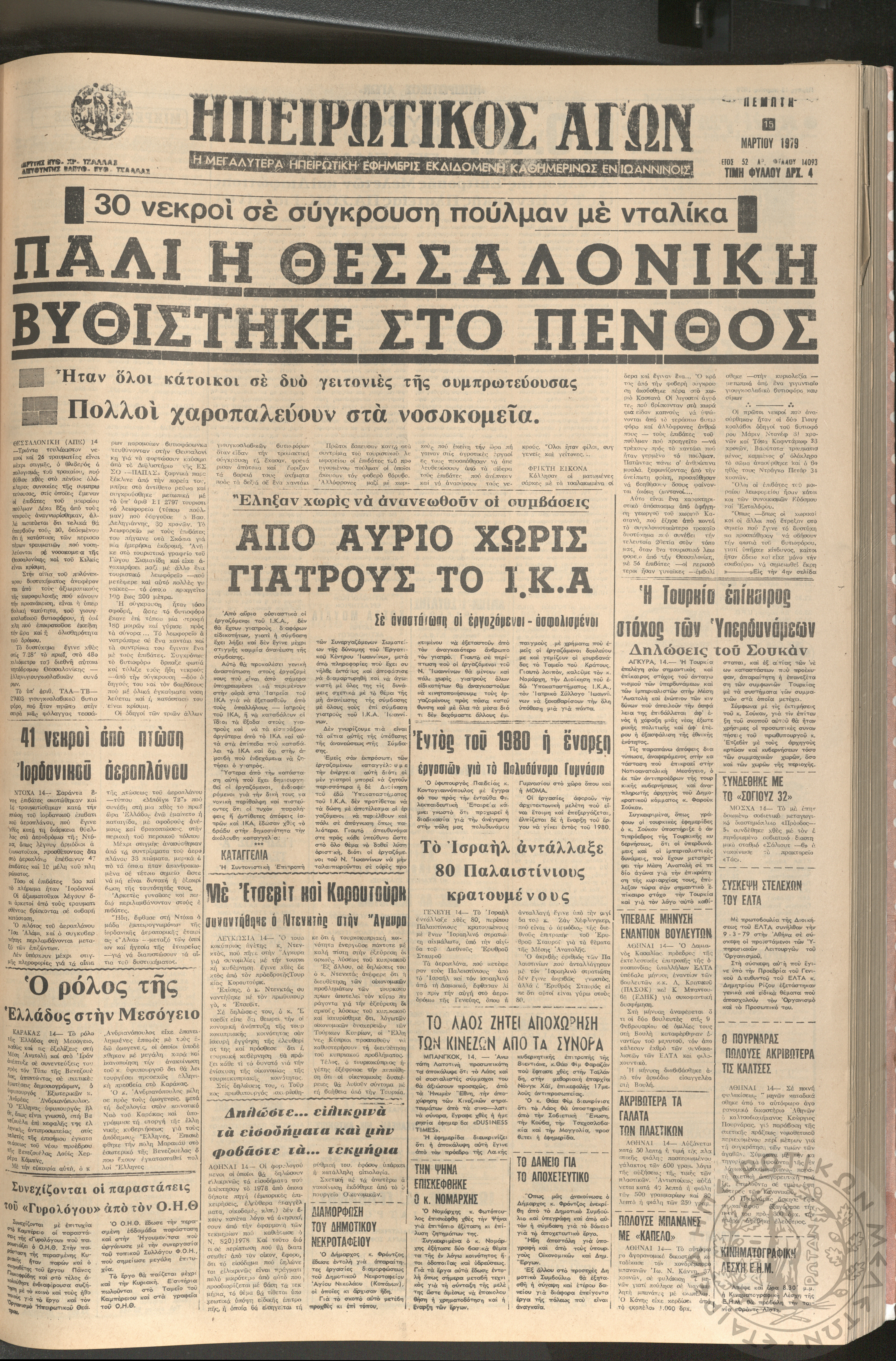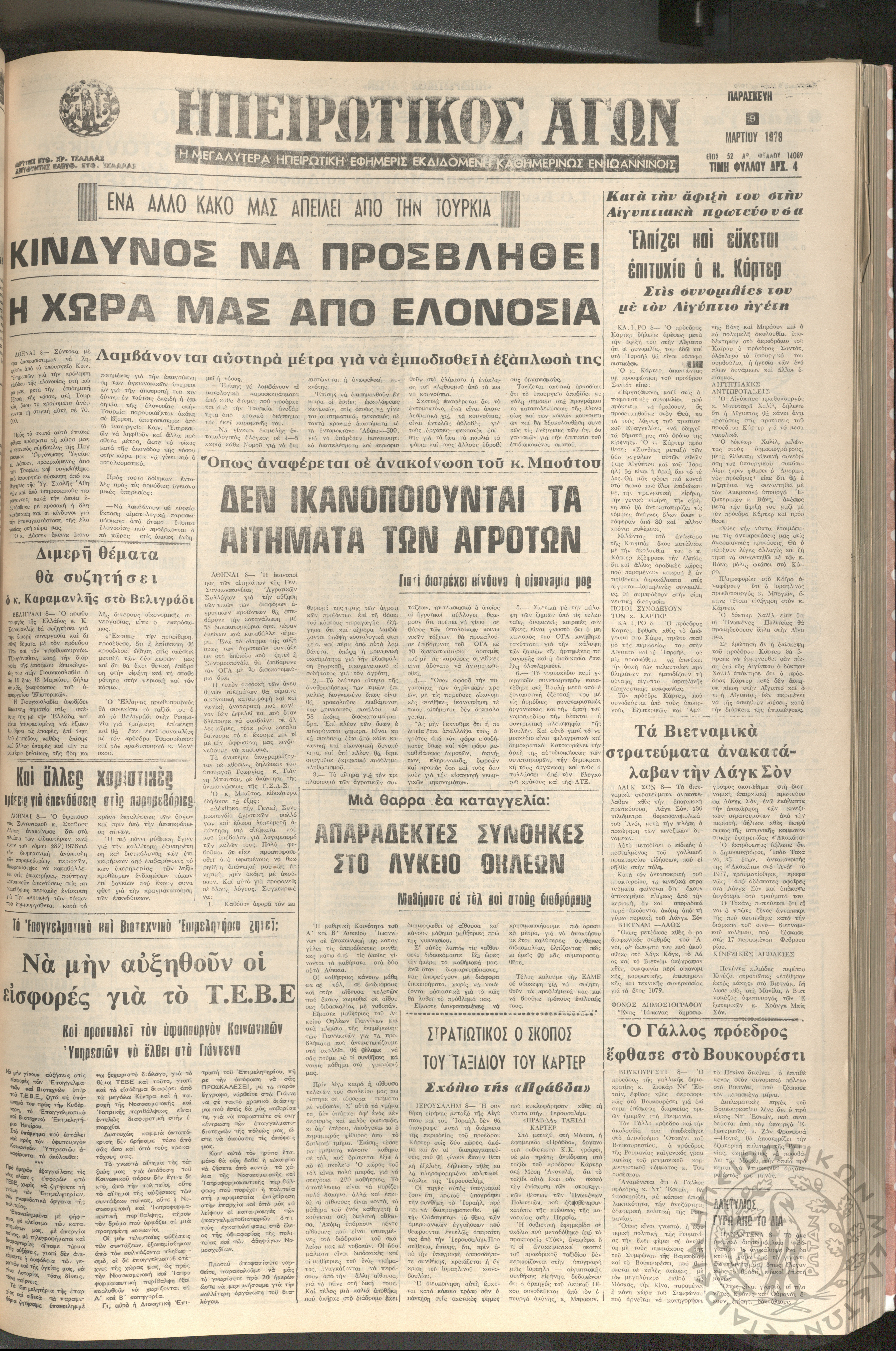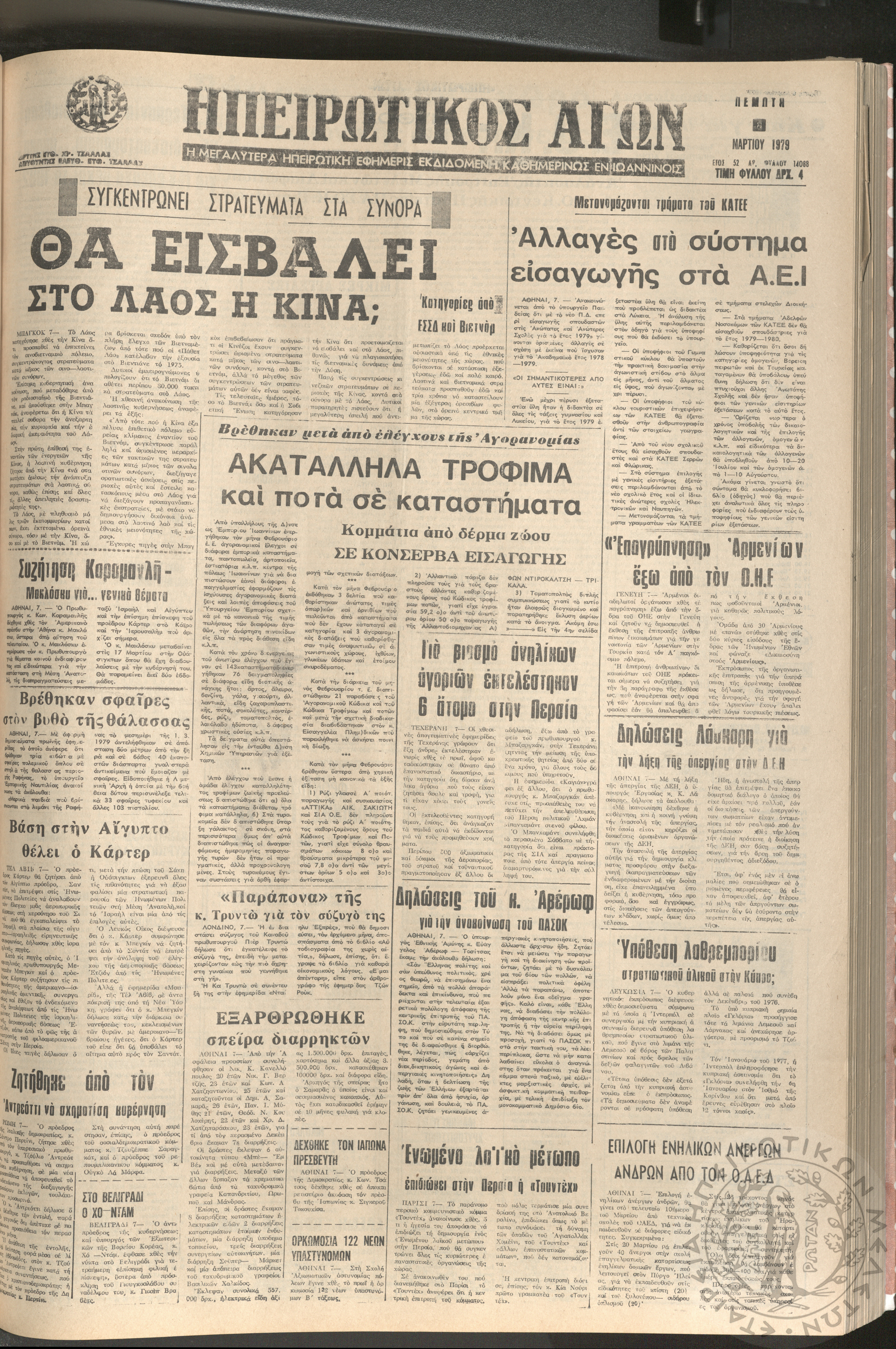 Ηπειρωτικός Αγών: η μεγαλυτέρα Ηπειρωτική εφημερίς εκδιδομένη καθημερινώς εν Ιωαννίνοις, 1979, φ. 14090Έτος 52, φ. 14090...