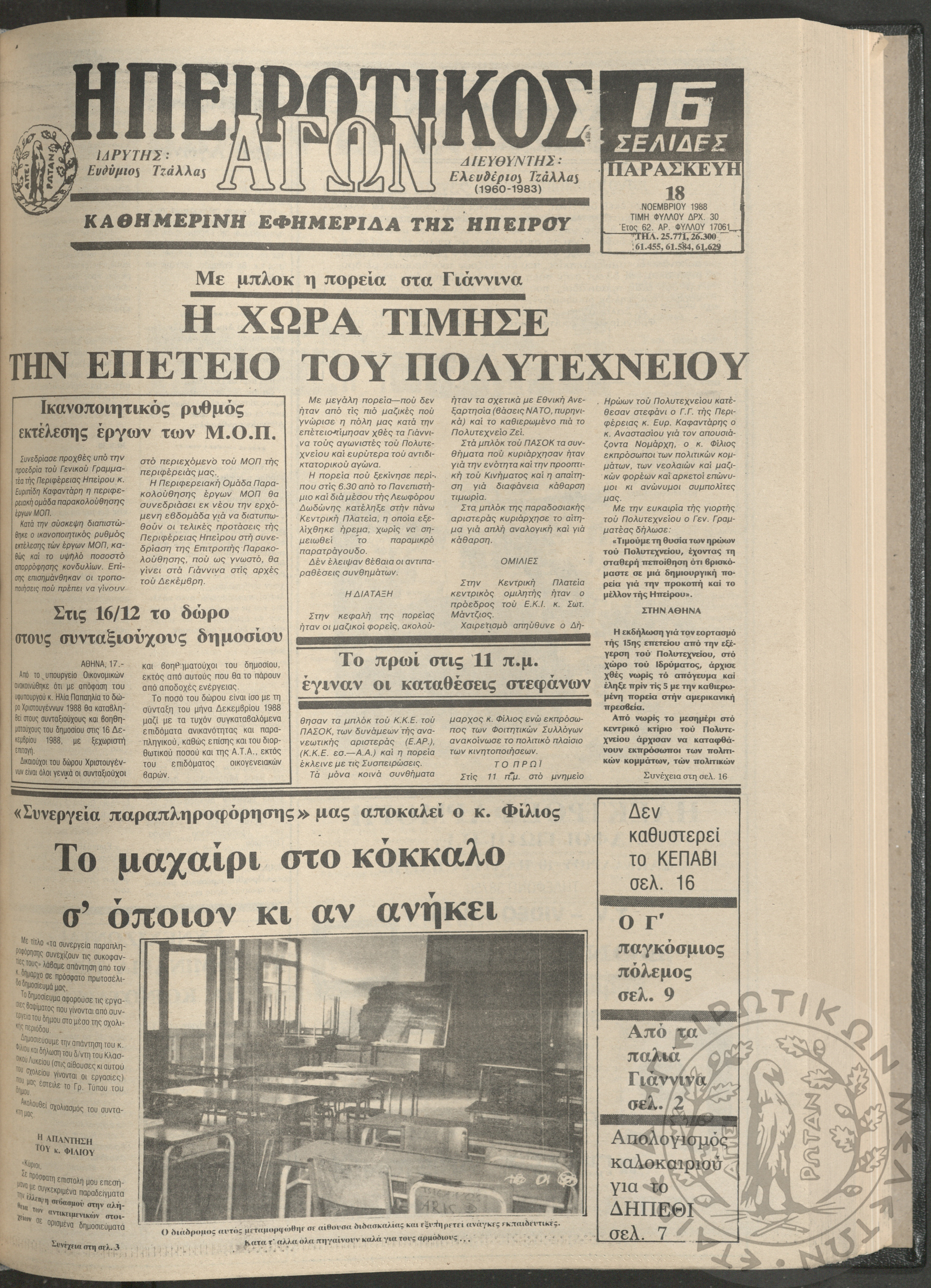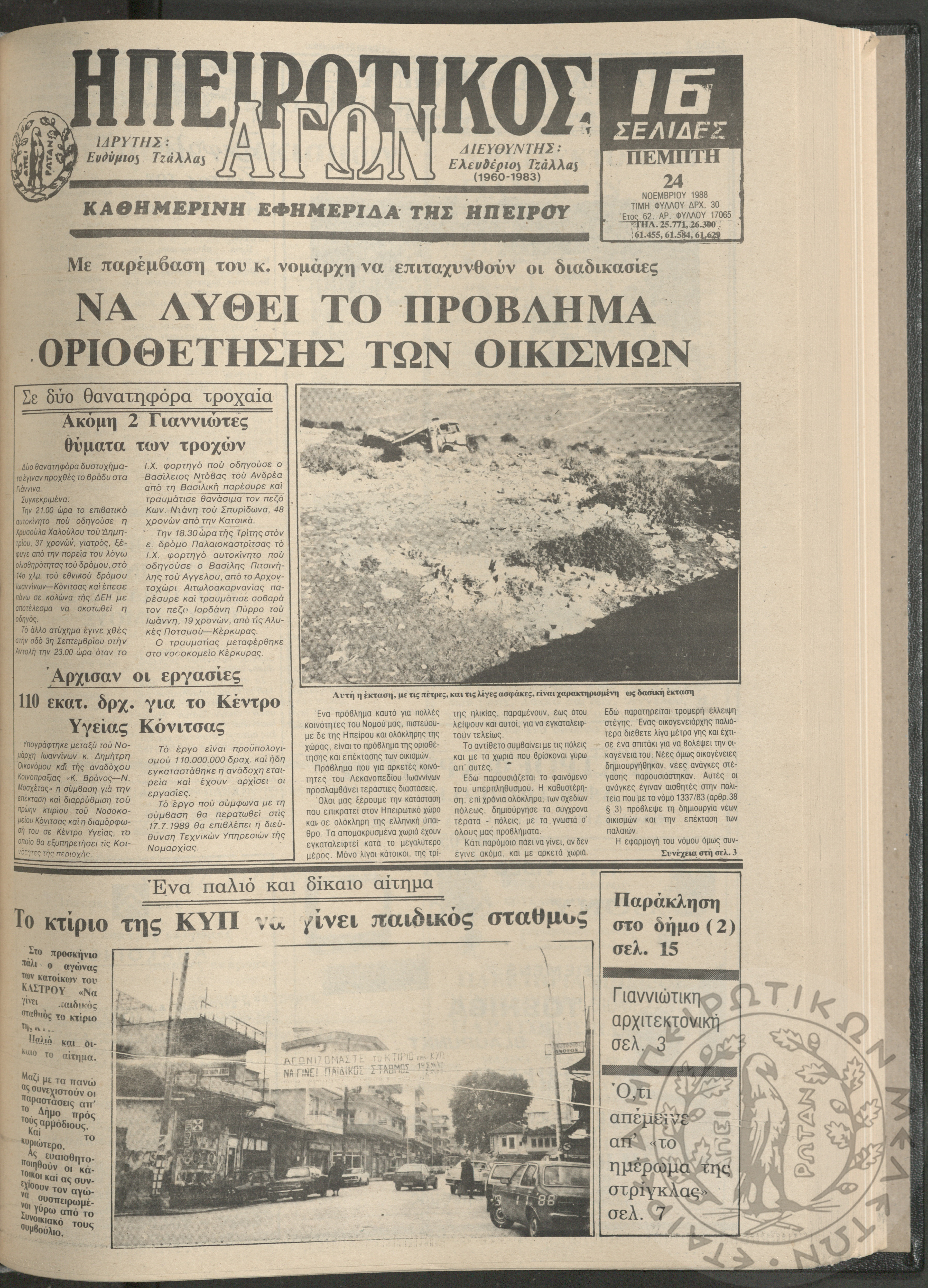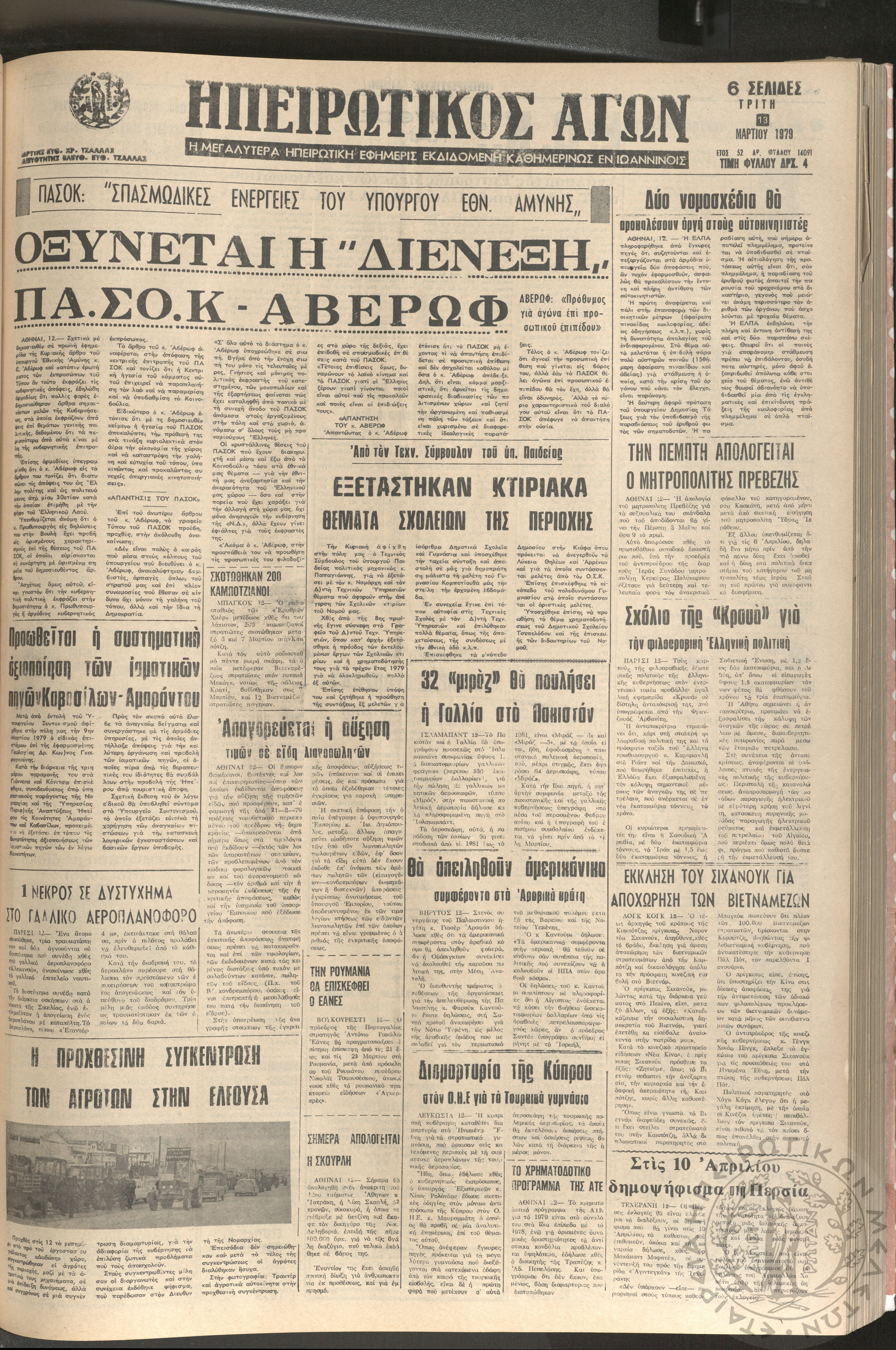 Ηπειρωτικός Αγών: η μεγαλυτέρα Ηπειρωτική εφημερίς εκδιδομένη καθημερινώς εν Ιωαννίνοις, 1979, φ. 14088Έτος 52, φ. 14088...