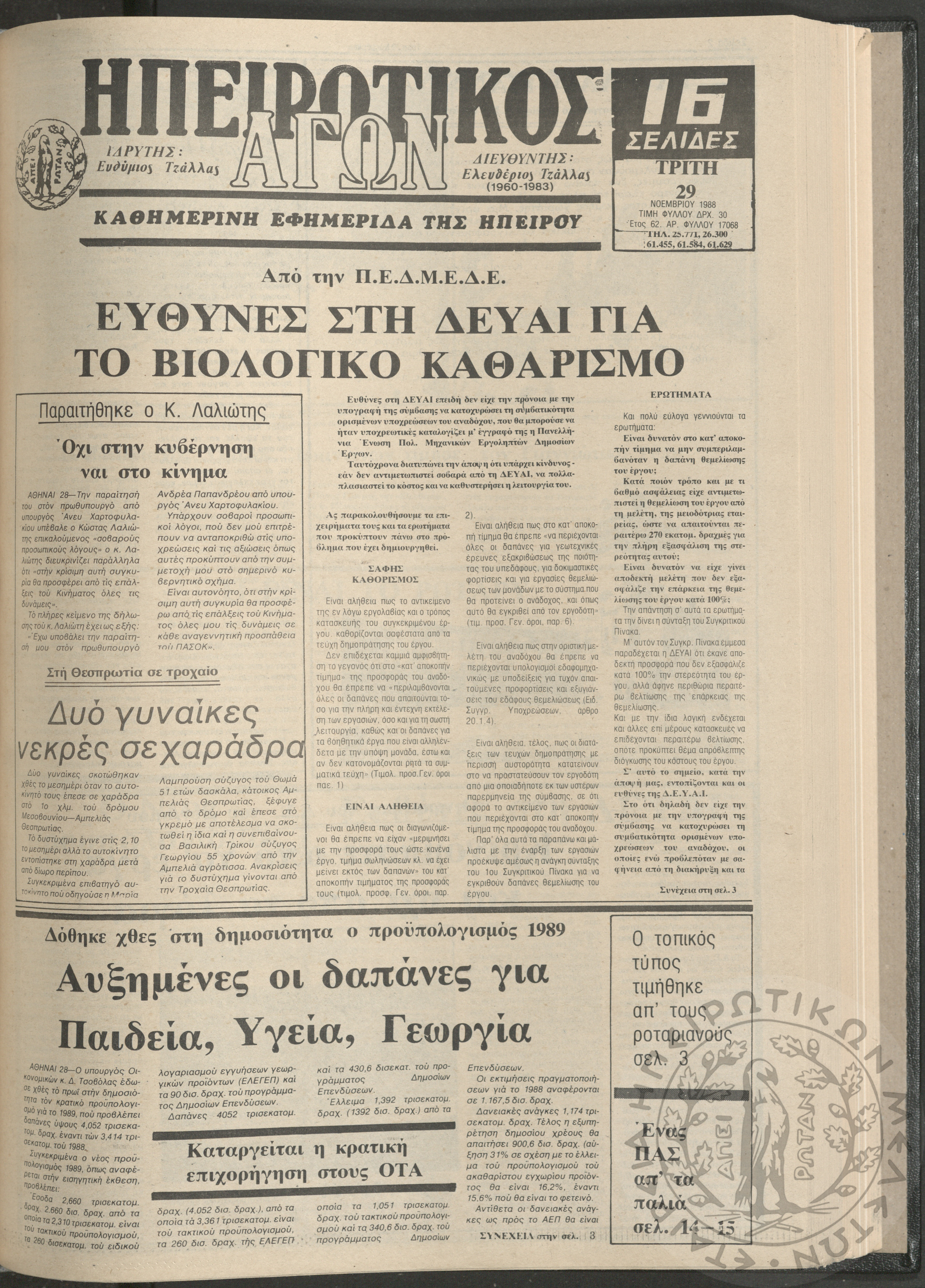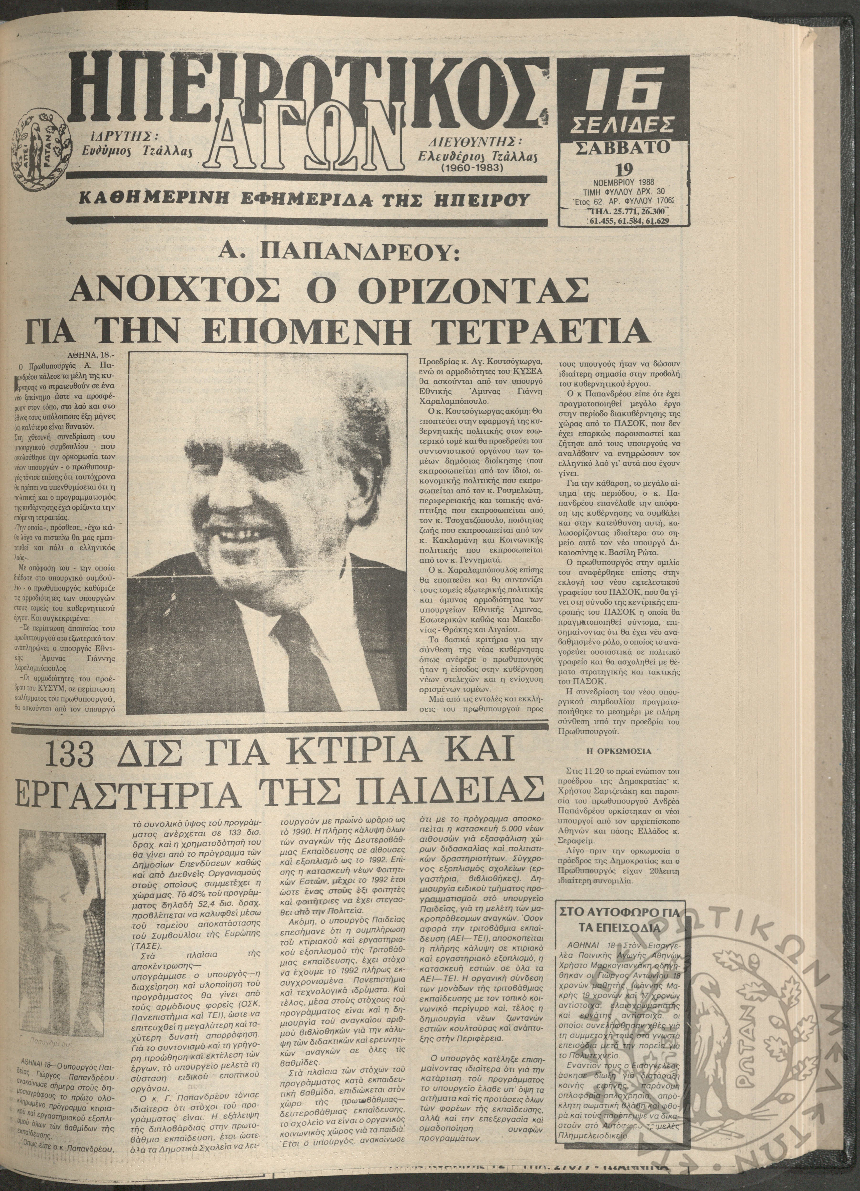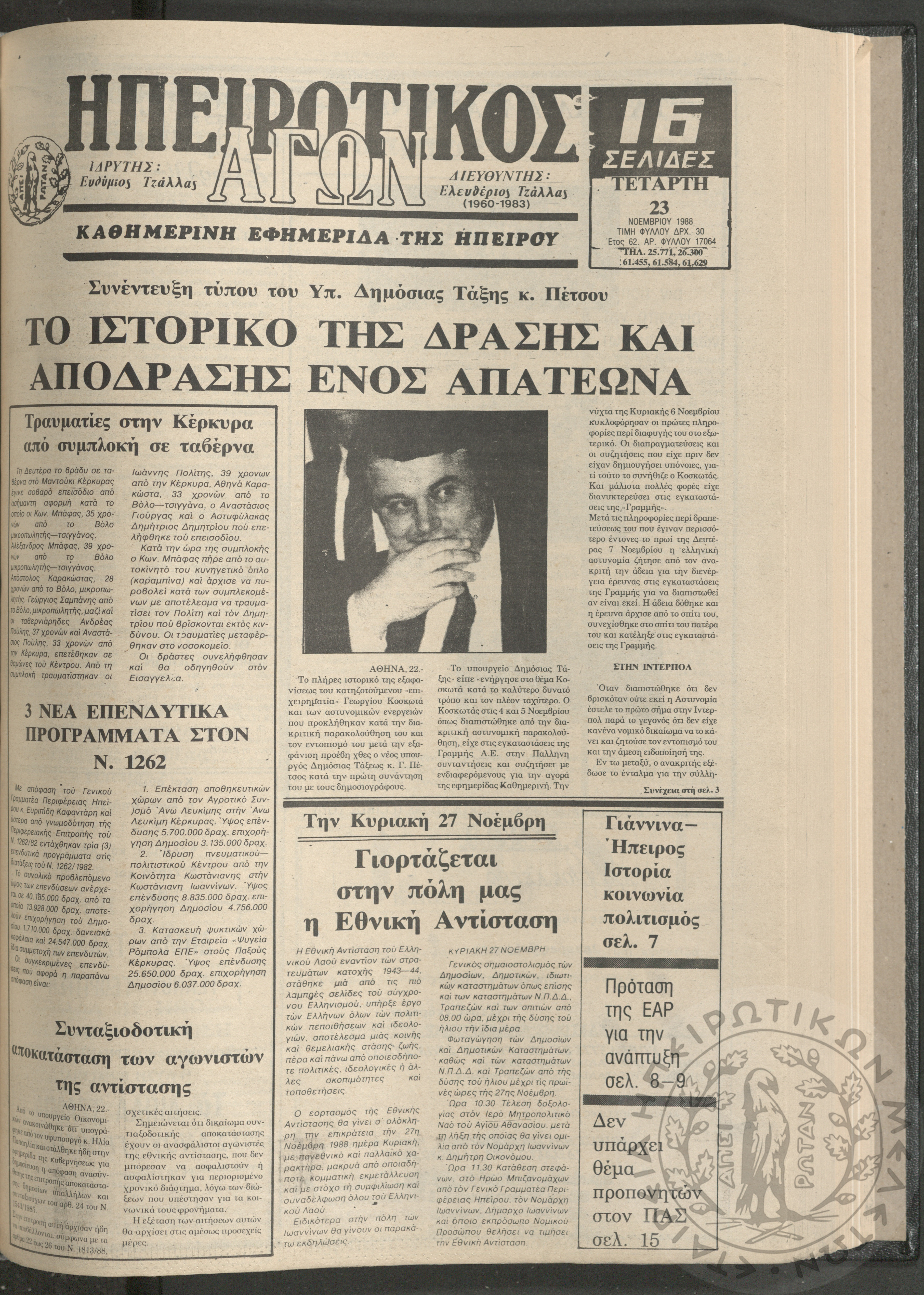 Ηπειρωτικός Αγών: η μεγαλυτέρα Ηπειρωτική εφημερίς εκδιδομένη καθημερινώς εν Ιωαννίνοις, 1979, φ. 14088Έτος 52, φ. 14088...