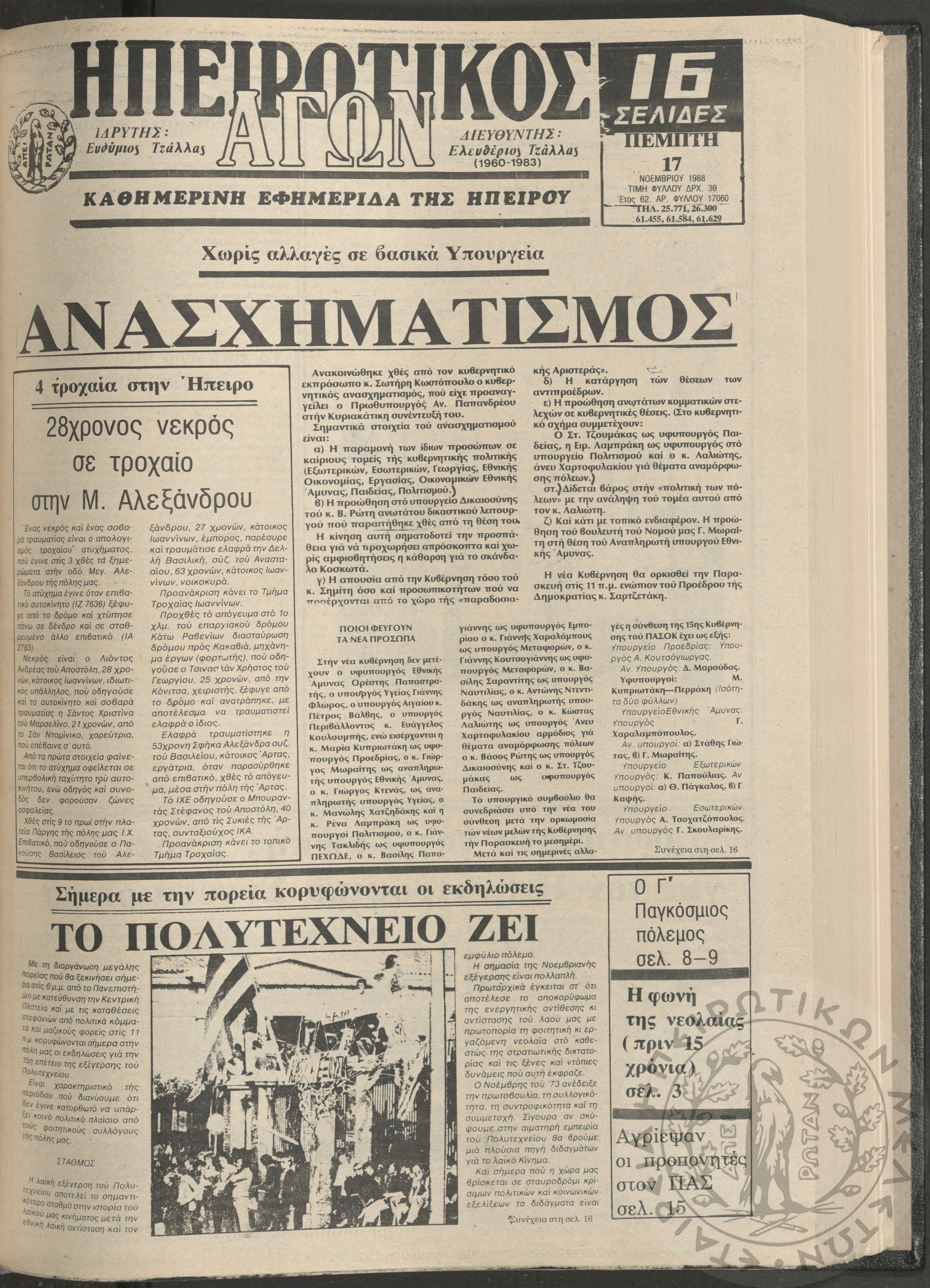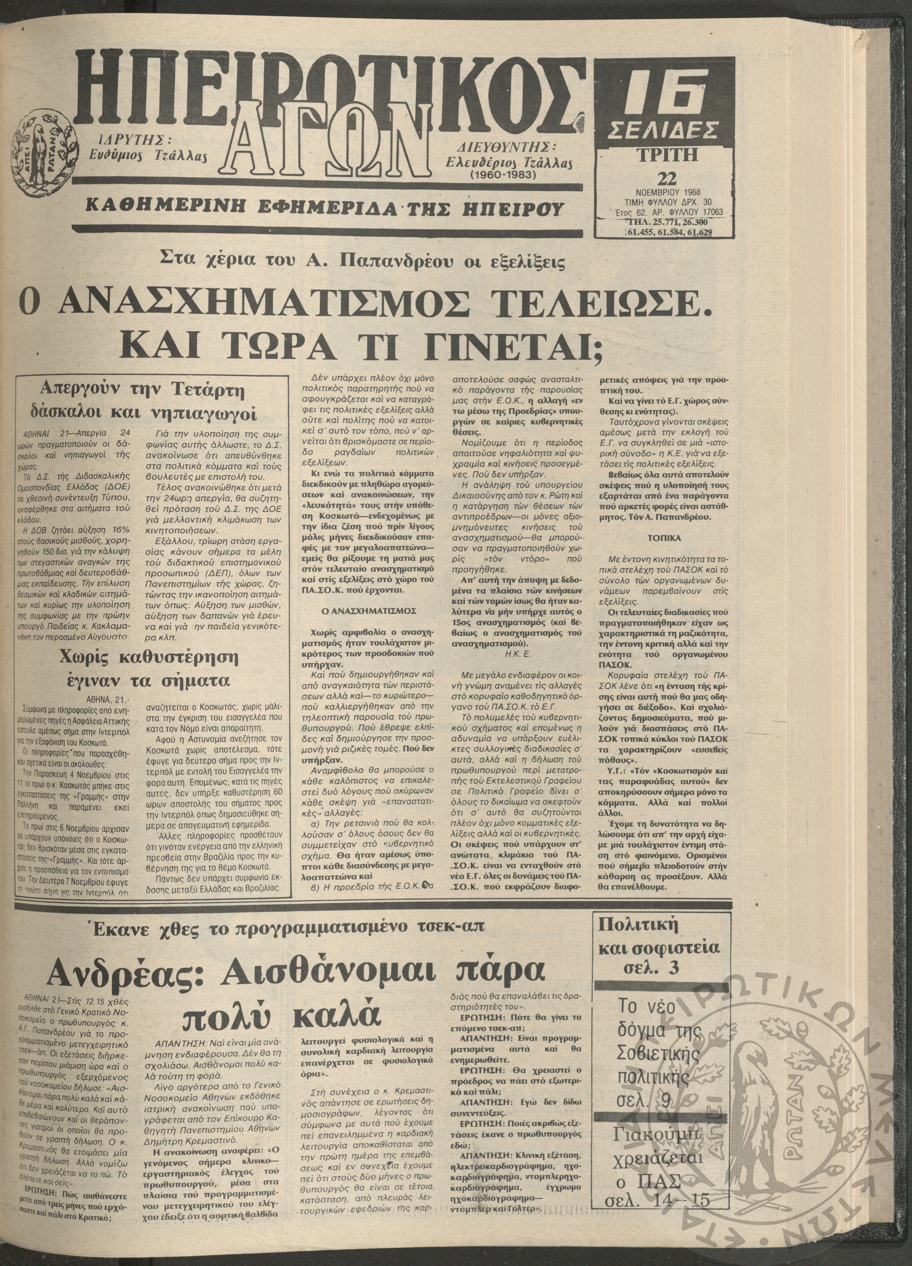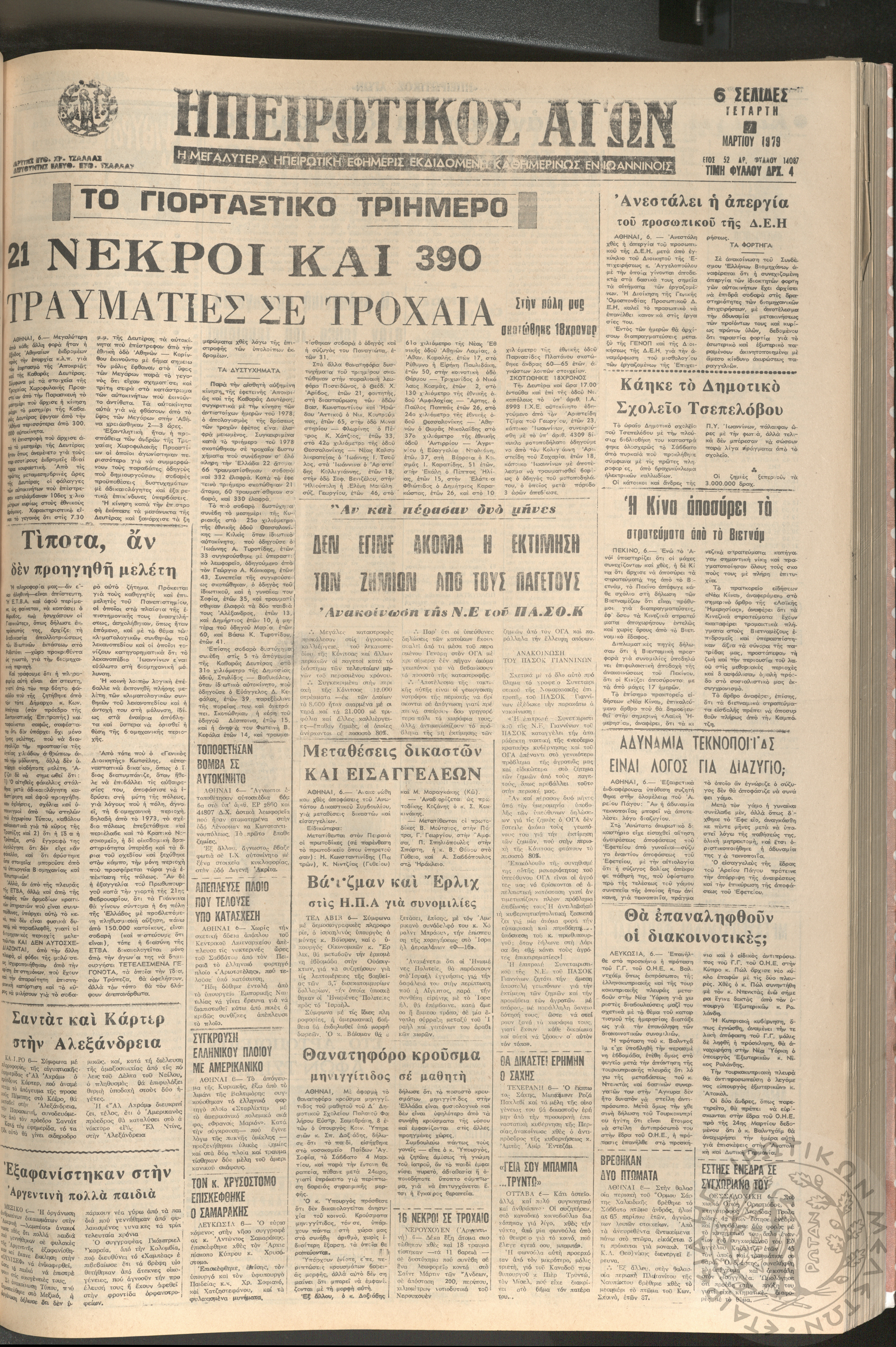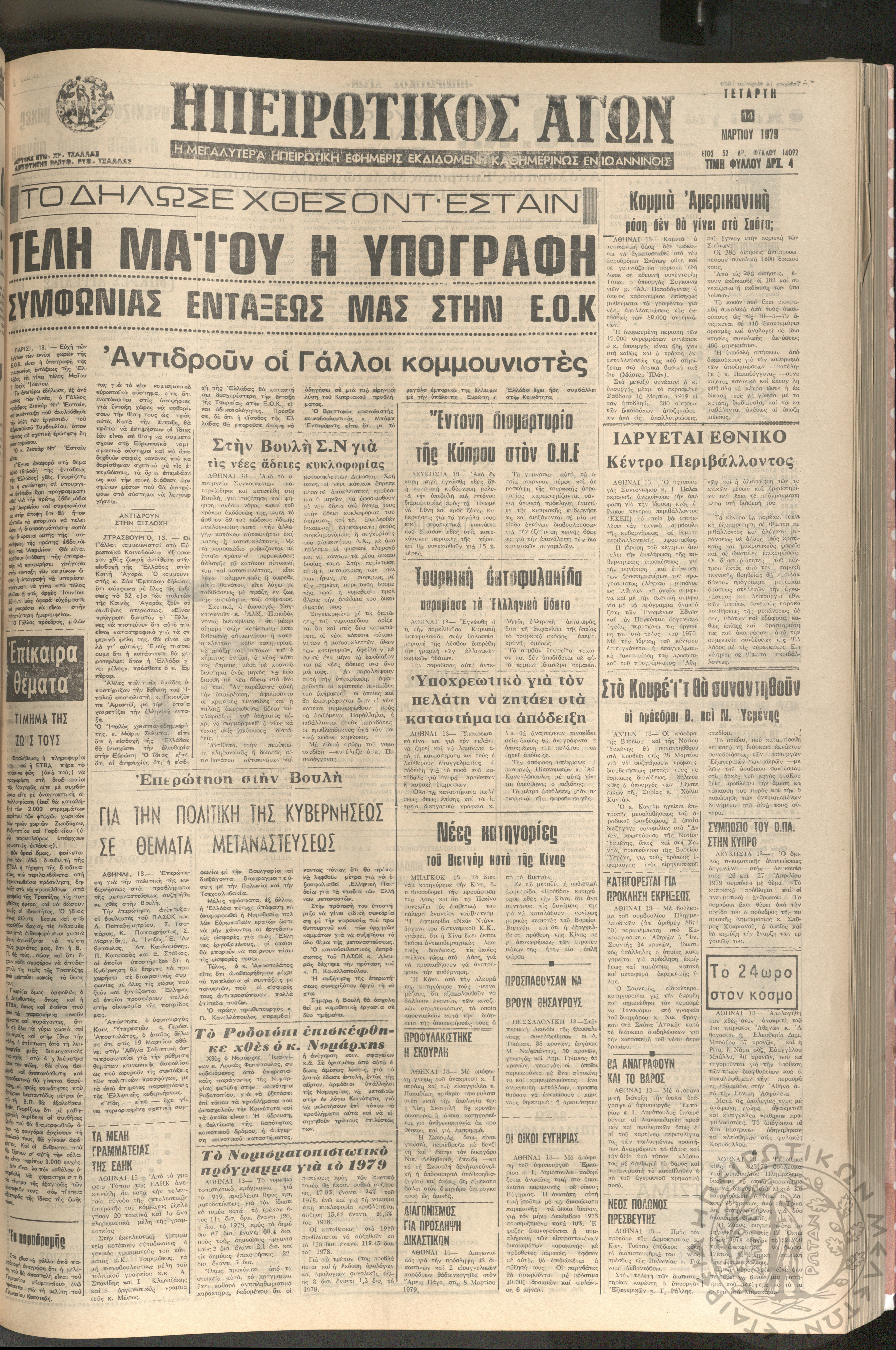Ηπειρωτικός Αγών: η μεγαλυτέρα Ηπειρωτική εφημερίς εκδιδομένη καθημερινώς εν Ιωαννίνοις, 1979, φ. 14089Έτος 52, φ. 14089...