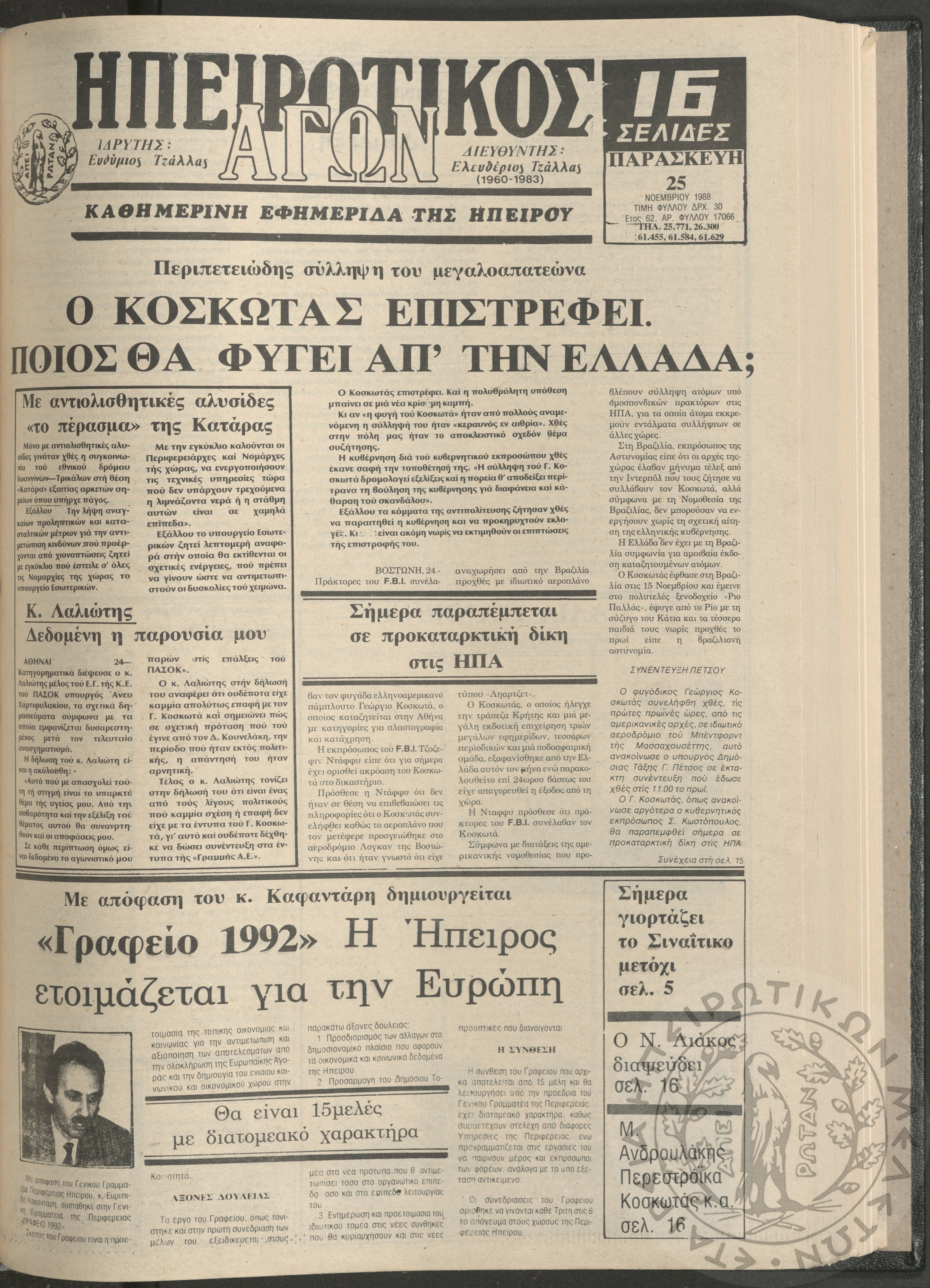 Ηπειρωτικός Αγών: η μεγαλυτέρα Ηπειρωτική εφημερίς εκδιδομένη καθημερινώς εν Ιωαννίνοις, 1979, φ. 14092Έτος 52, φ. 14092...