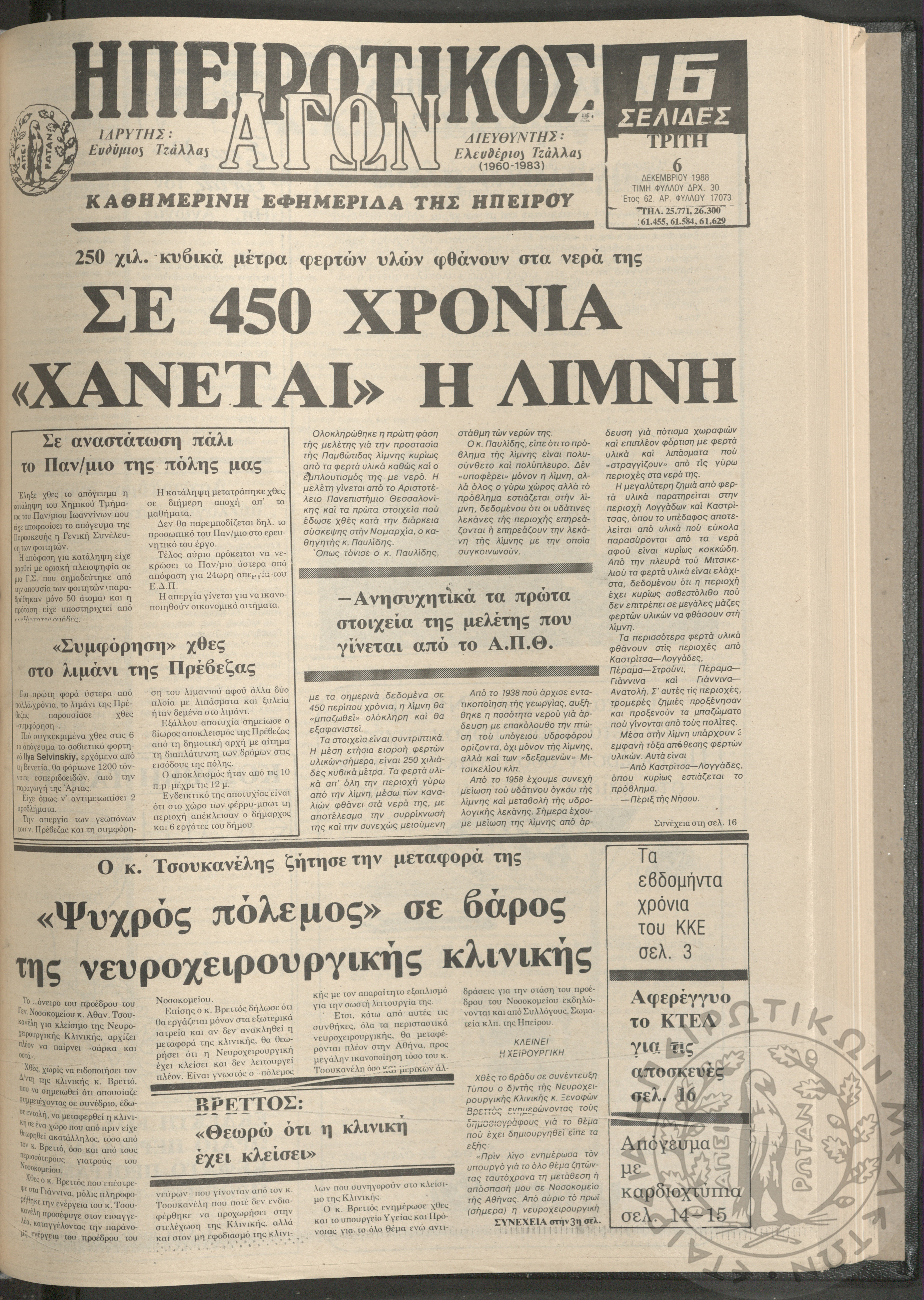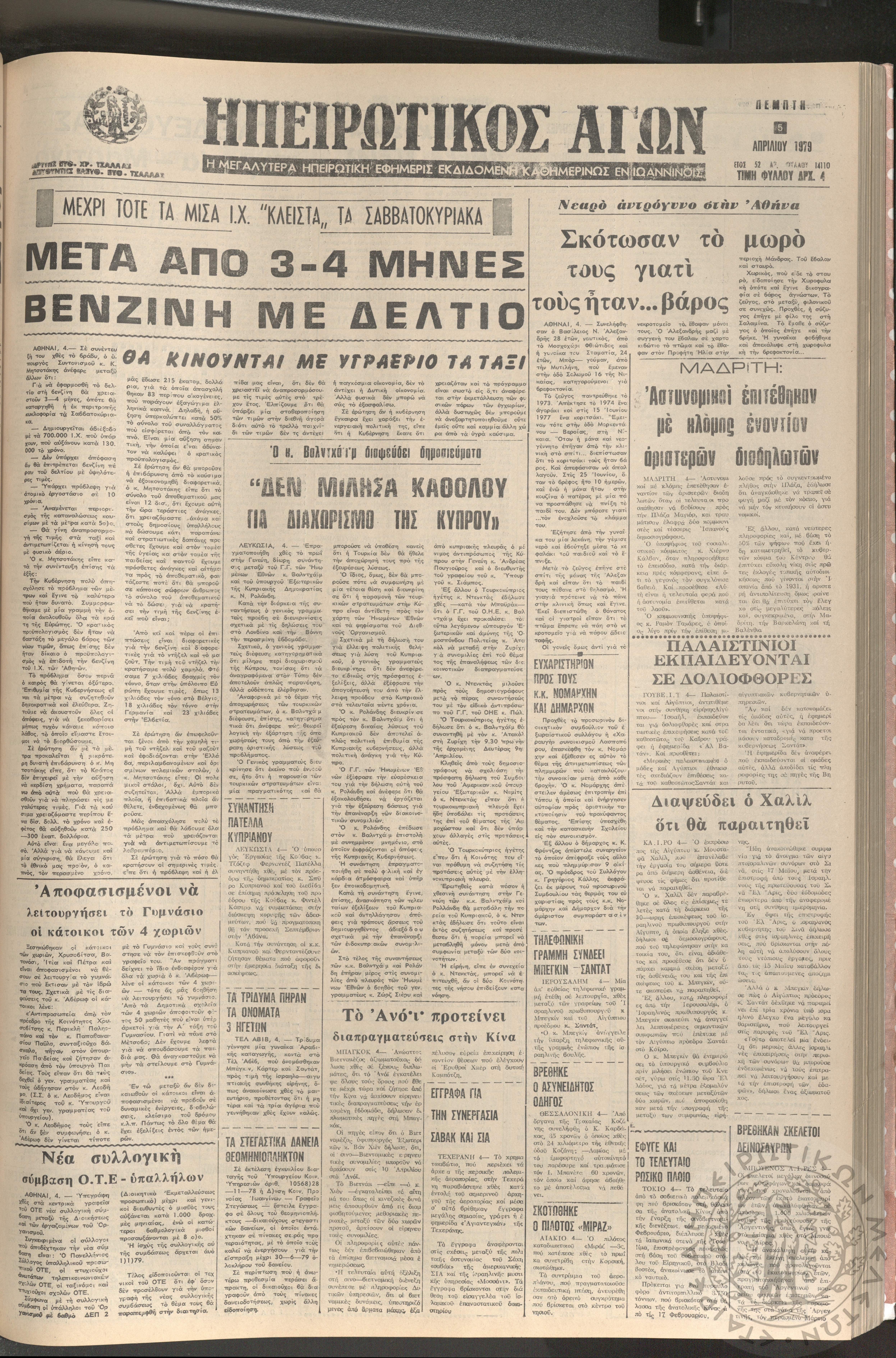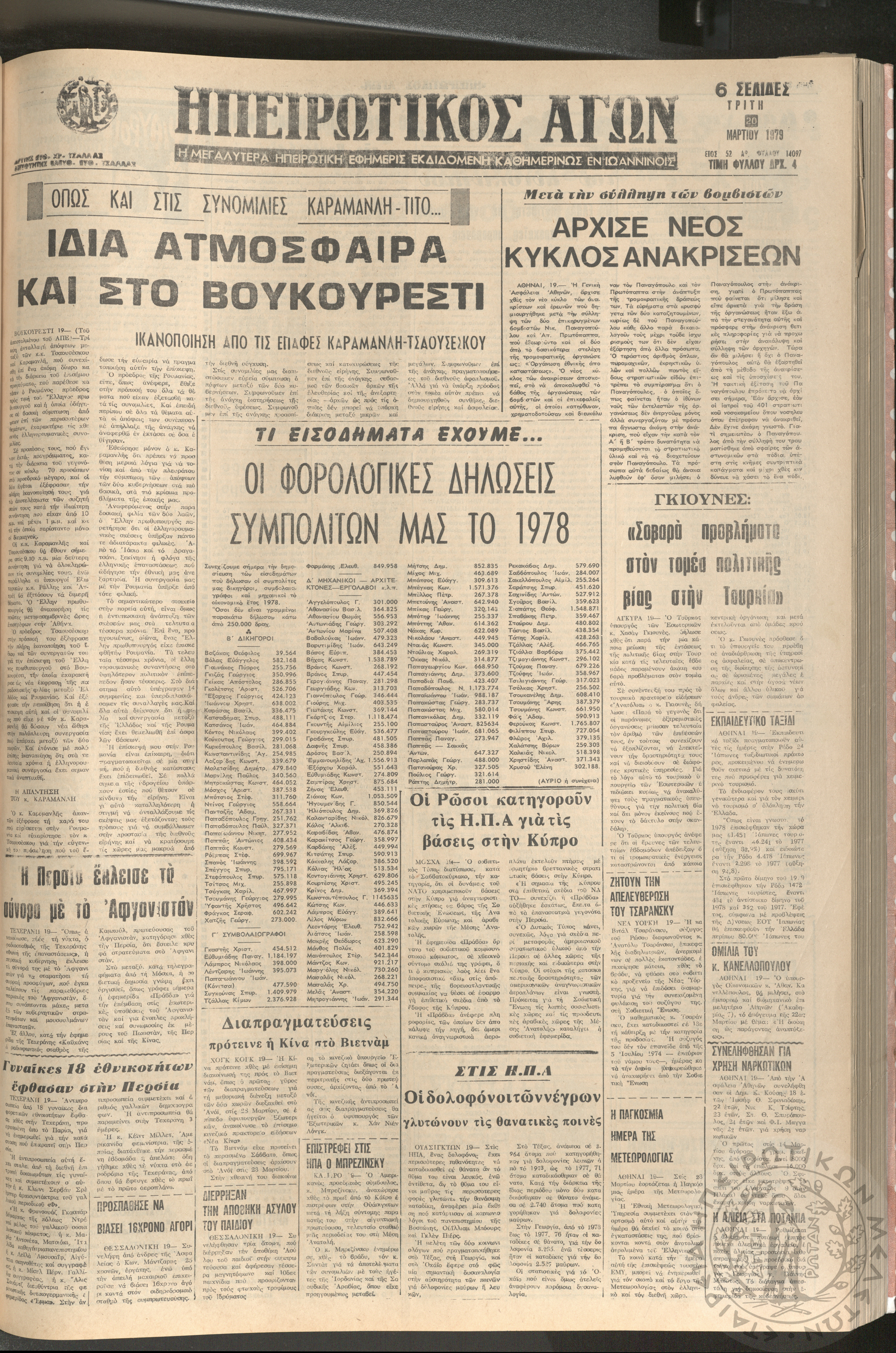 Ηπειρωτικός Αγών: η μεγαλυτέρα Ηπειρωτική εφημερίς εκδιδομένη καθημερινώς εν Ιωαννίνοις, 1979, φ. 14100Έτος 52, φ. 14100...