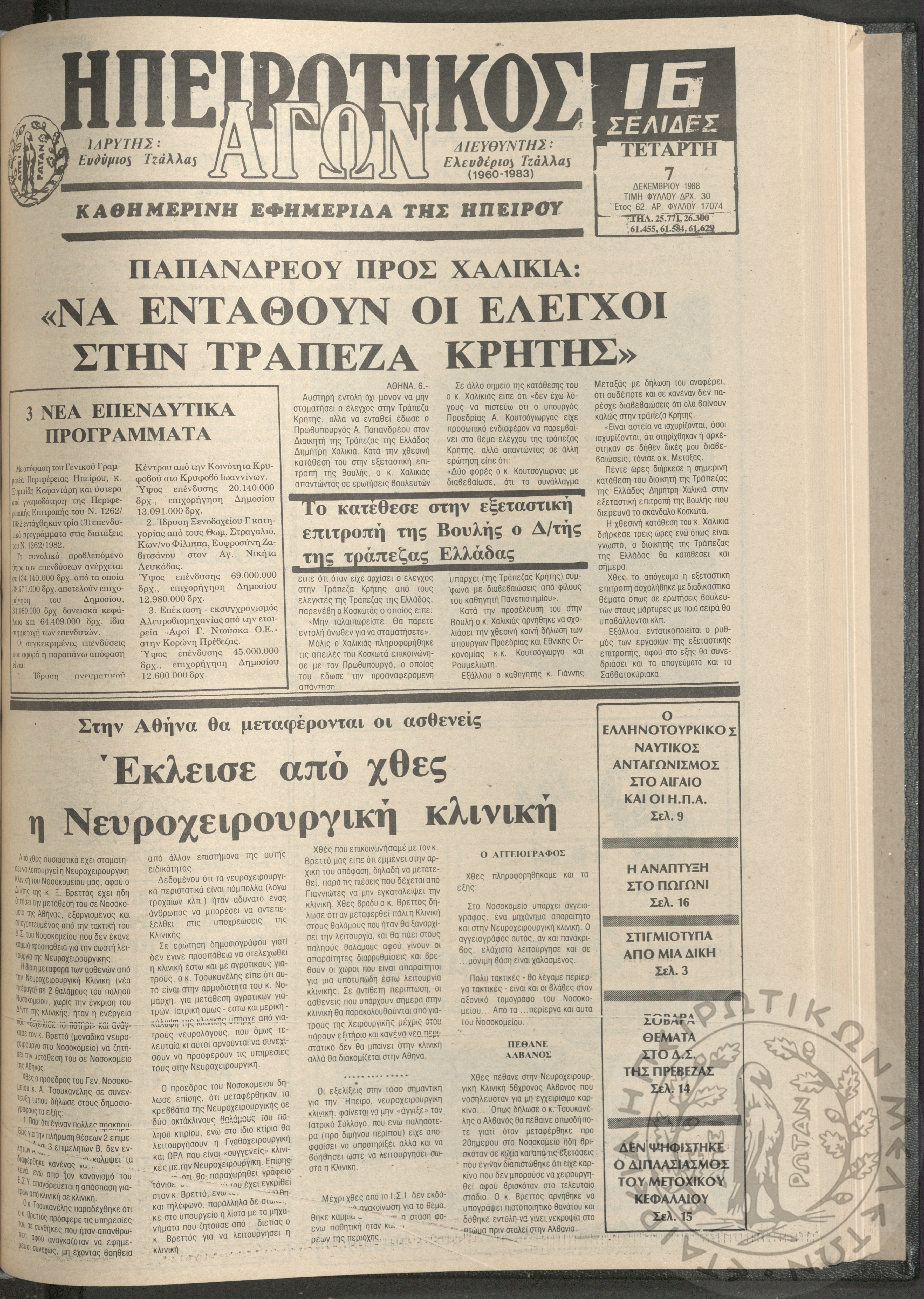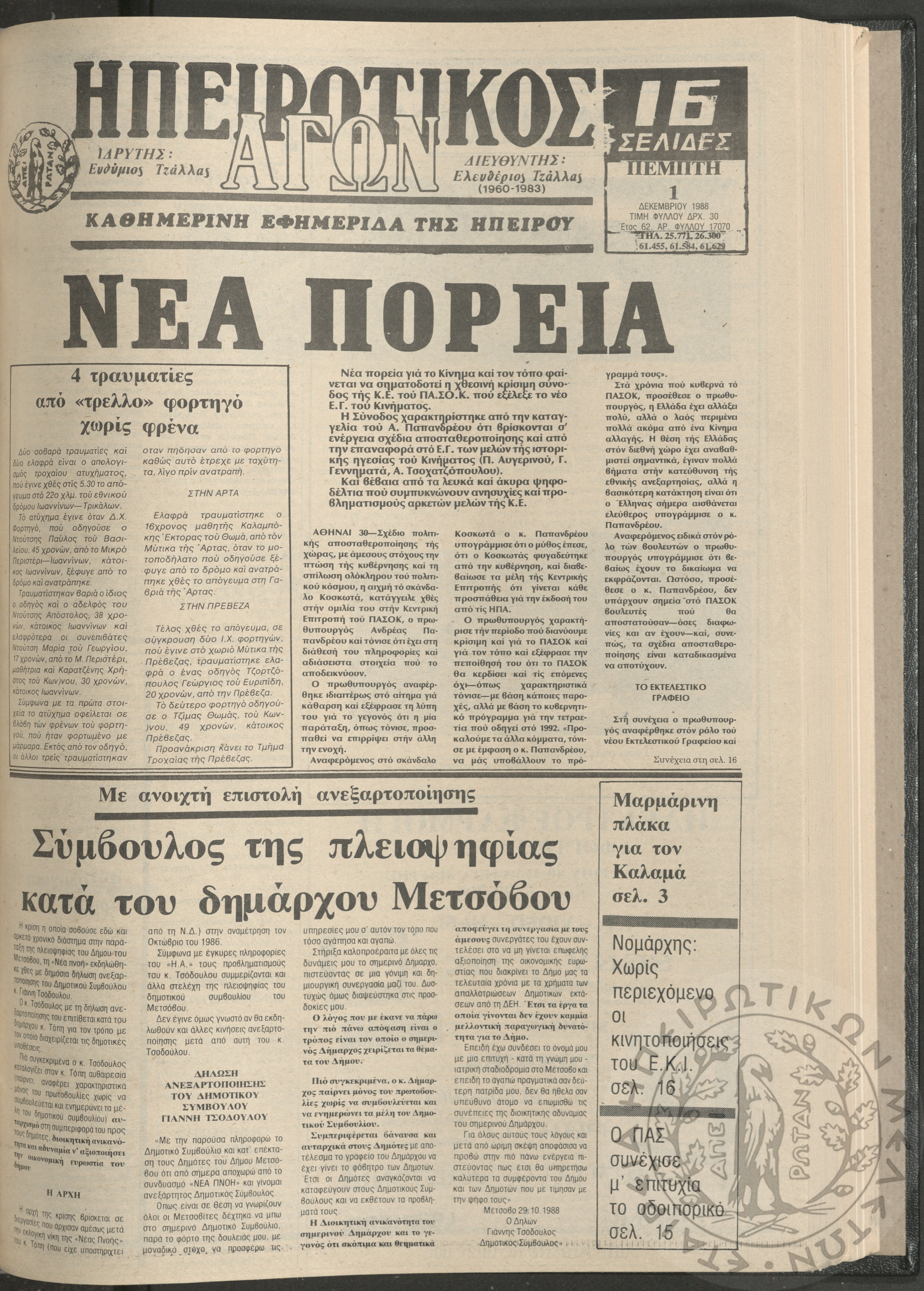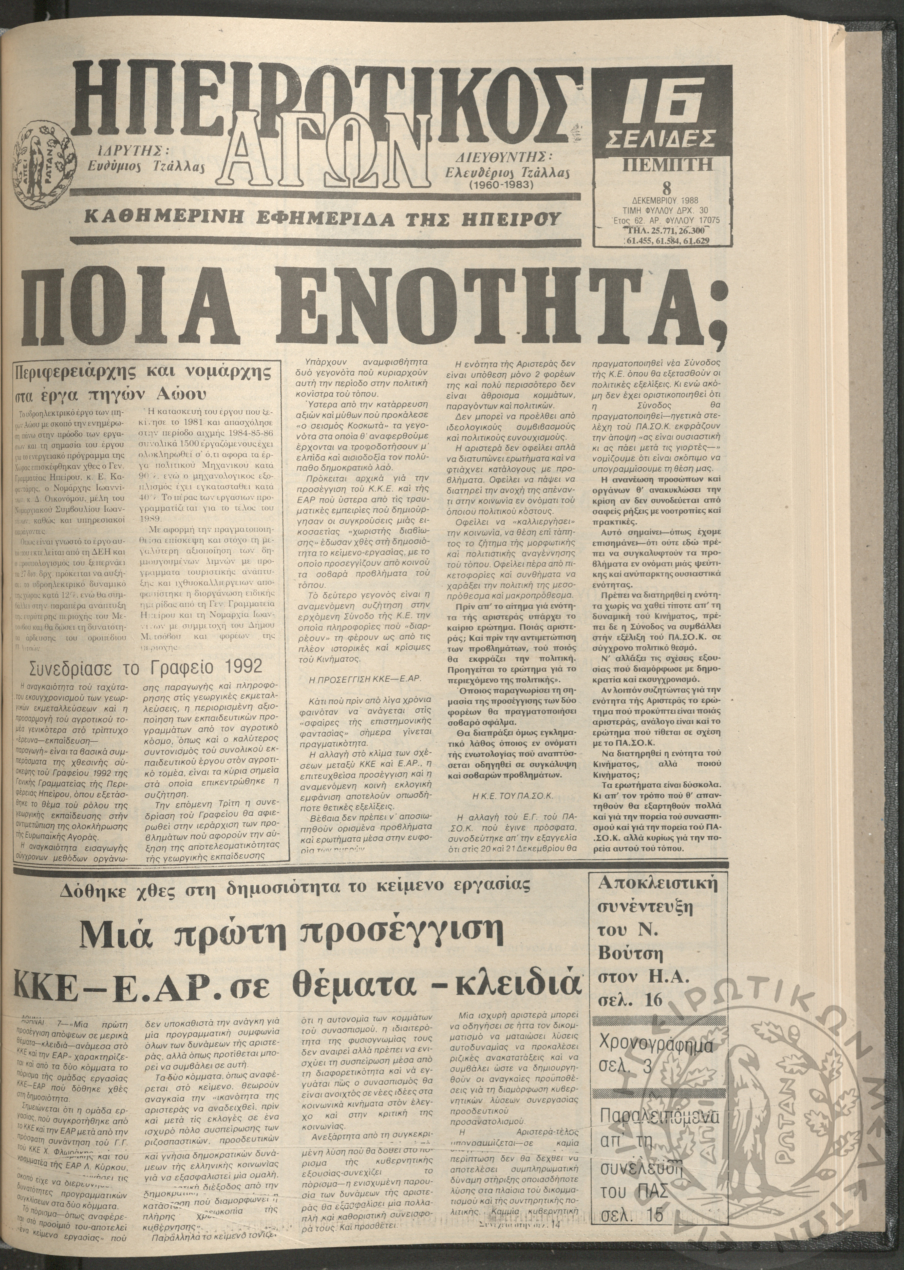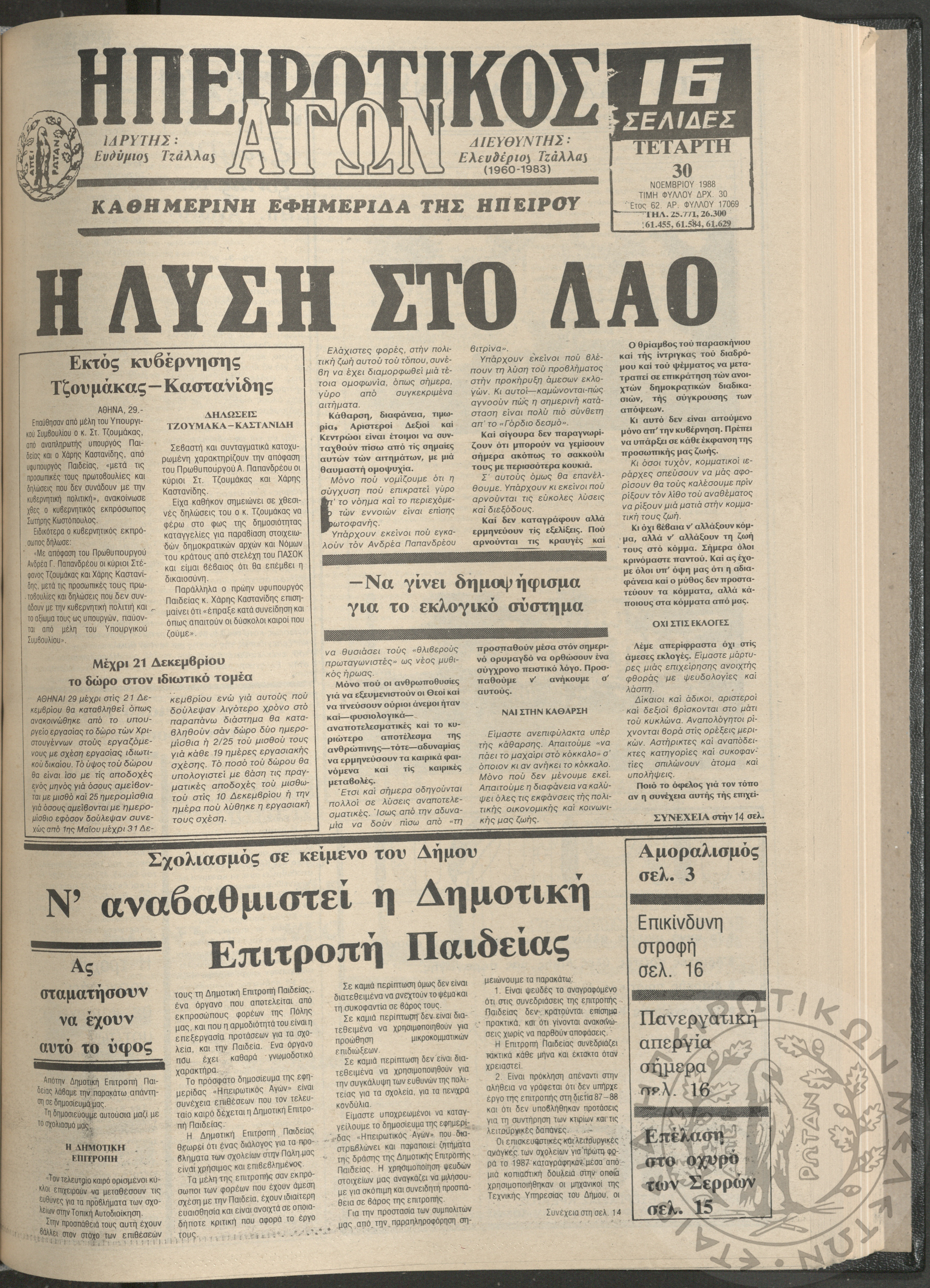 Ηπειρωτικός Αγών: η μεγαλυτέρα Ηπειρωτική εφημερίς εκδιδομένη καθημερινώς εν Ιωαννίνοις, 1979, φ. 14100Έτος 52, φ. 14100...