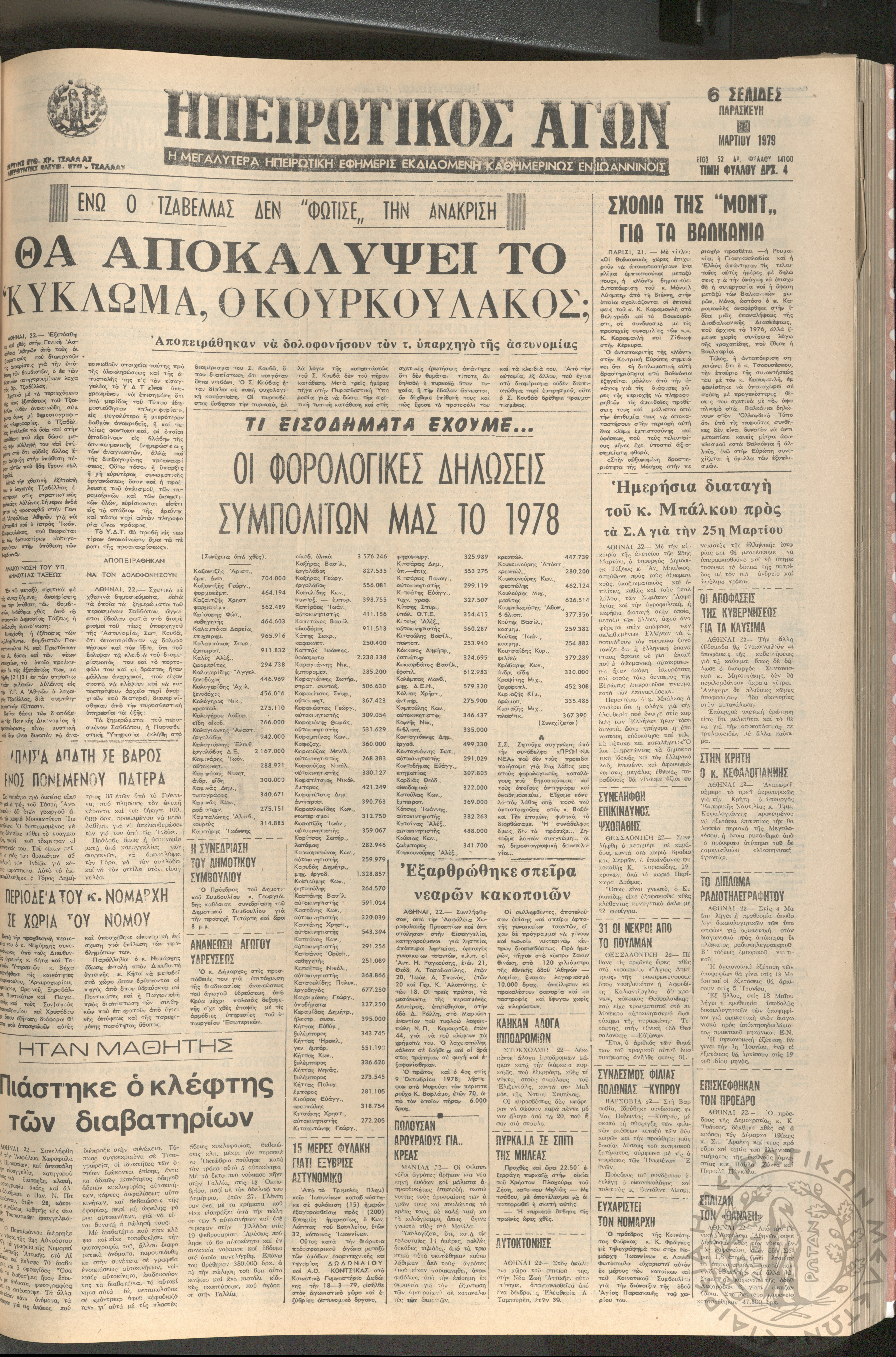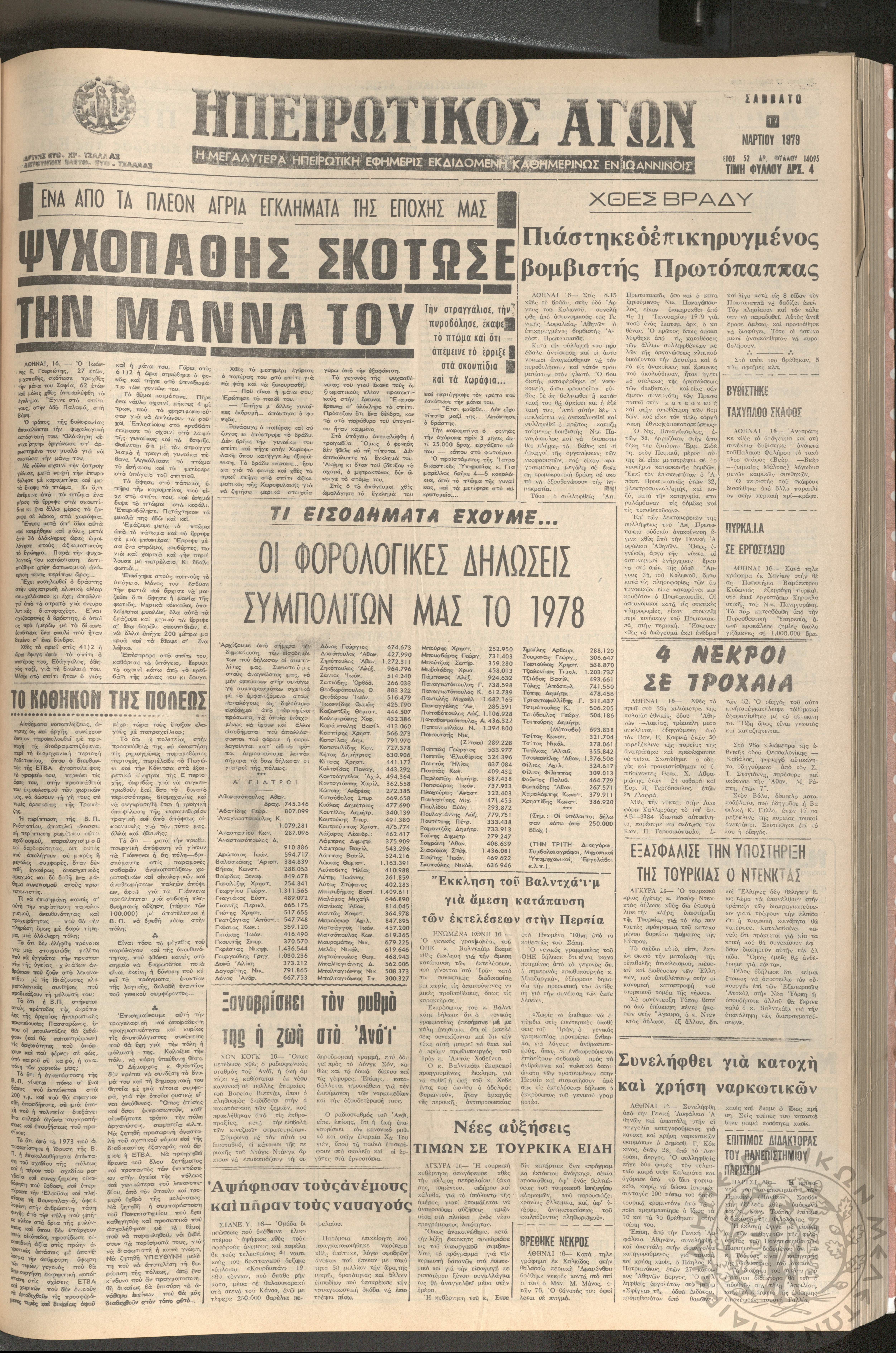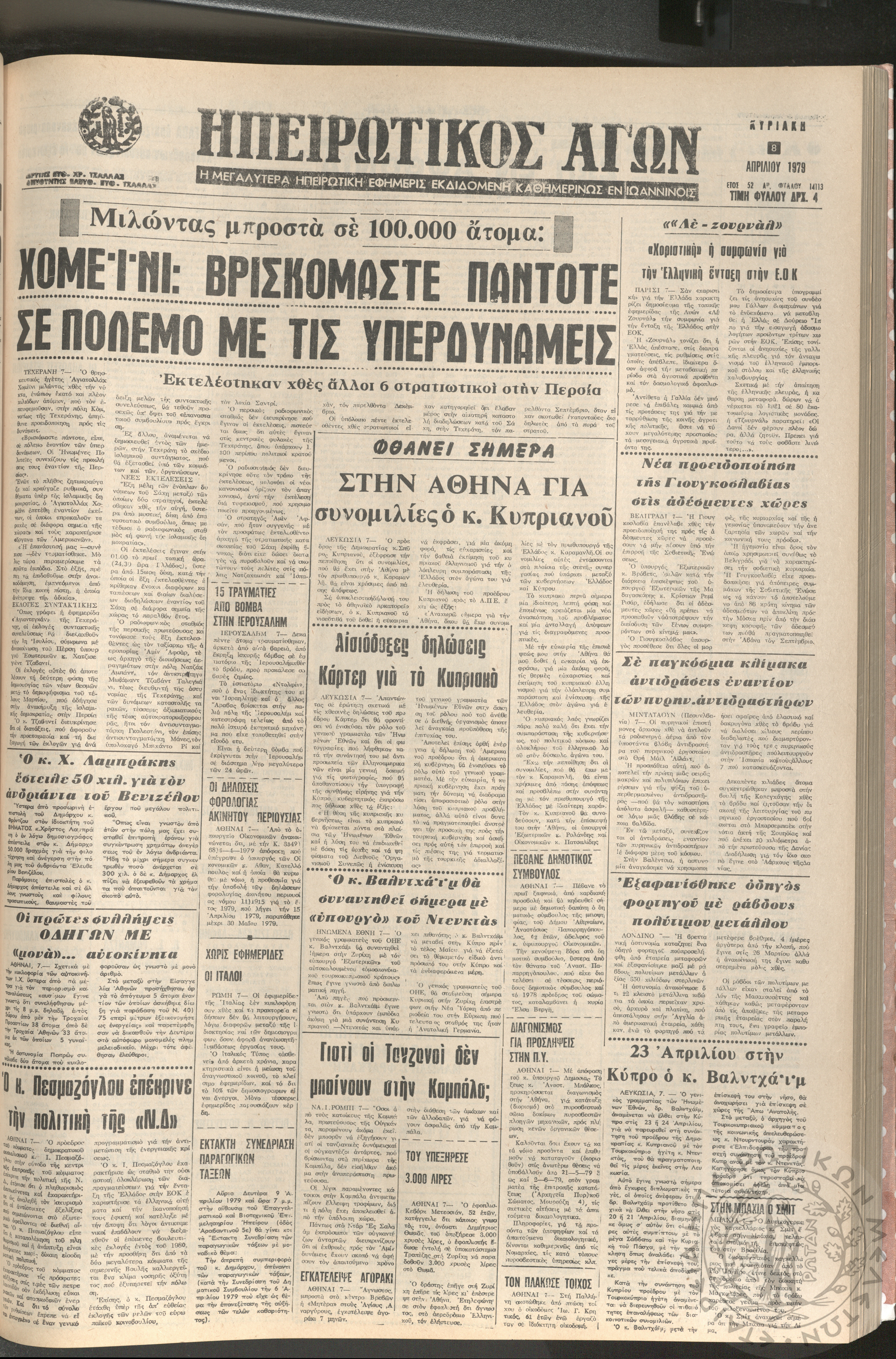 Ηπειρωτικός Αγών: η μεγαλυτέρα Ηπειρωτική εφημερίς εκδιδομένη καθημερινώς εν Ιωαννίνοις, 1979, φ. 14113Έτος 52, φ. 14113...