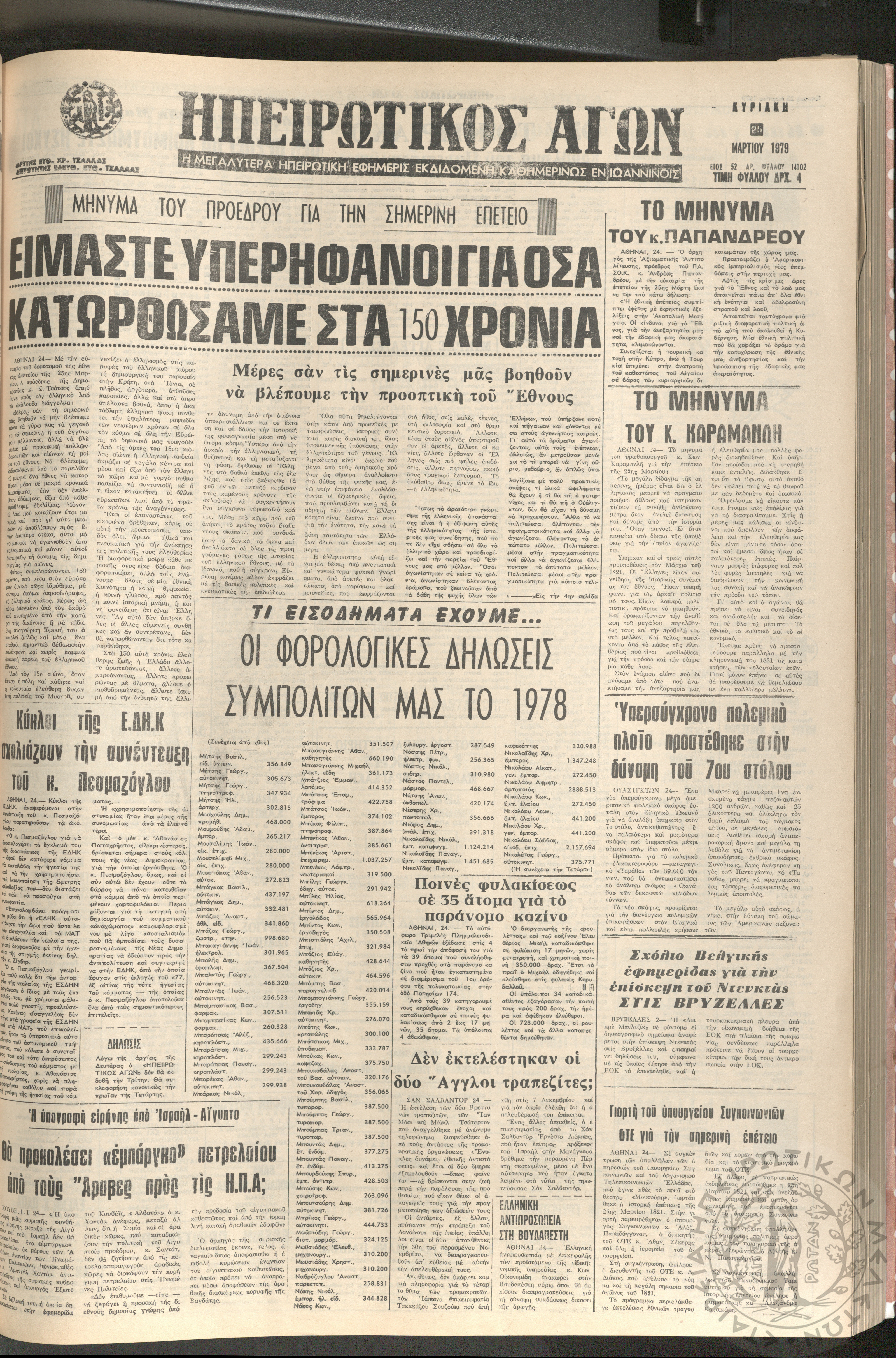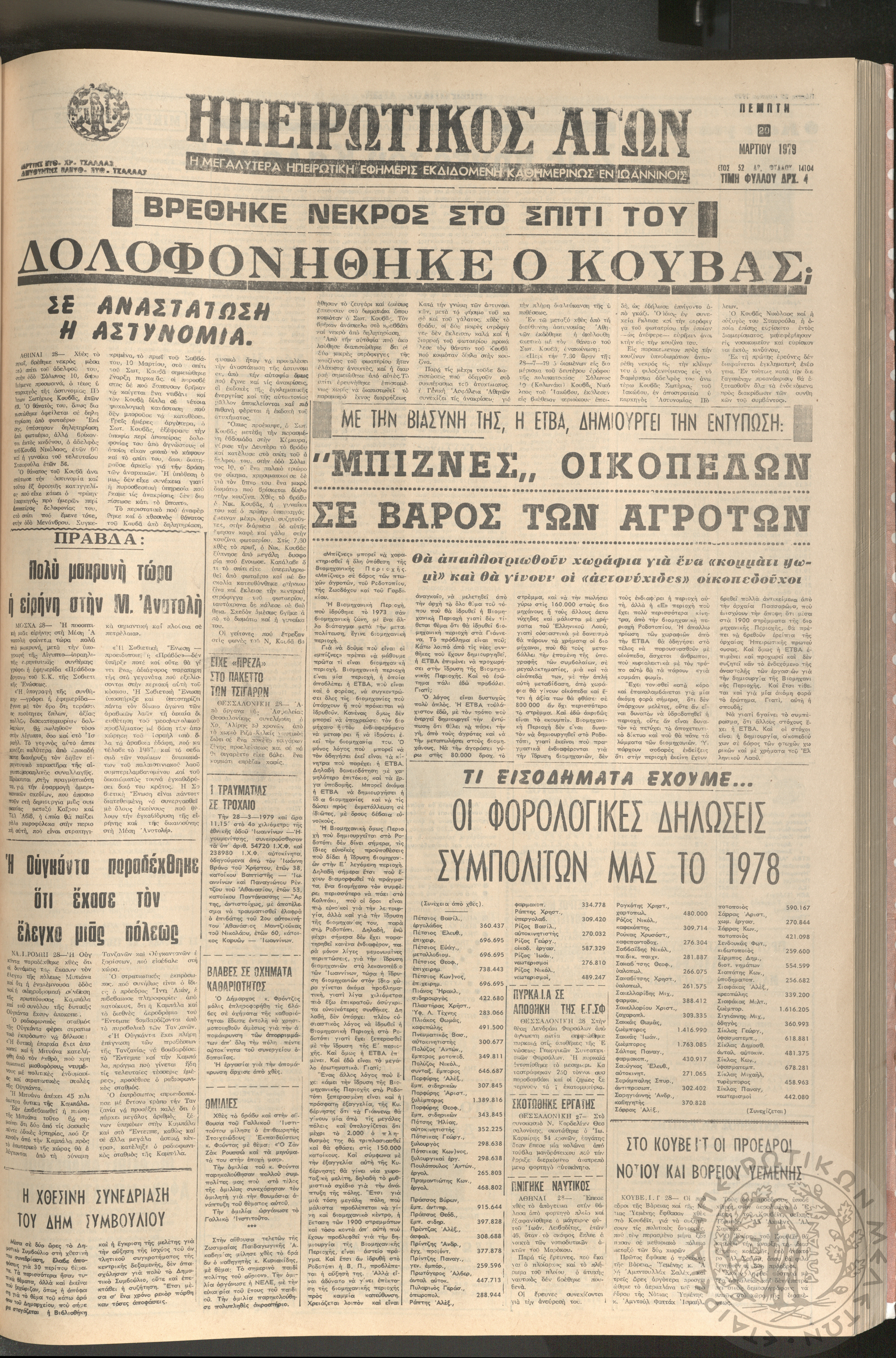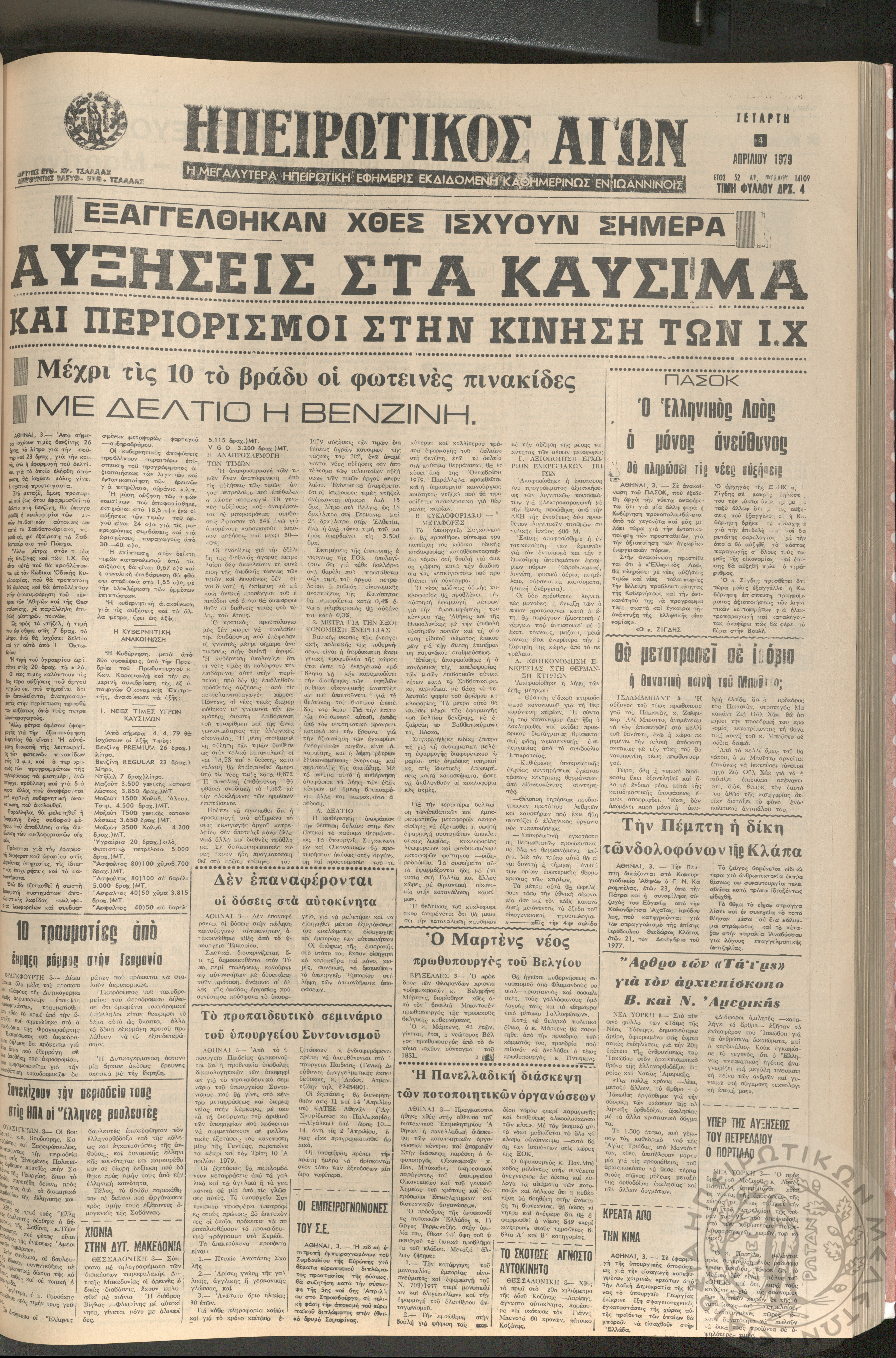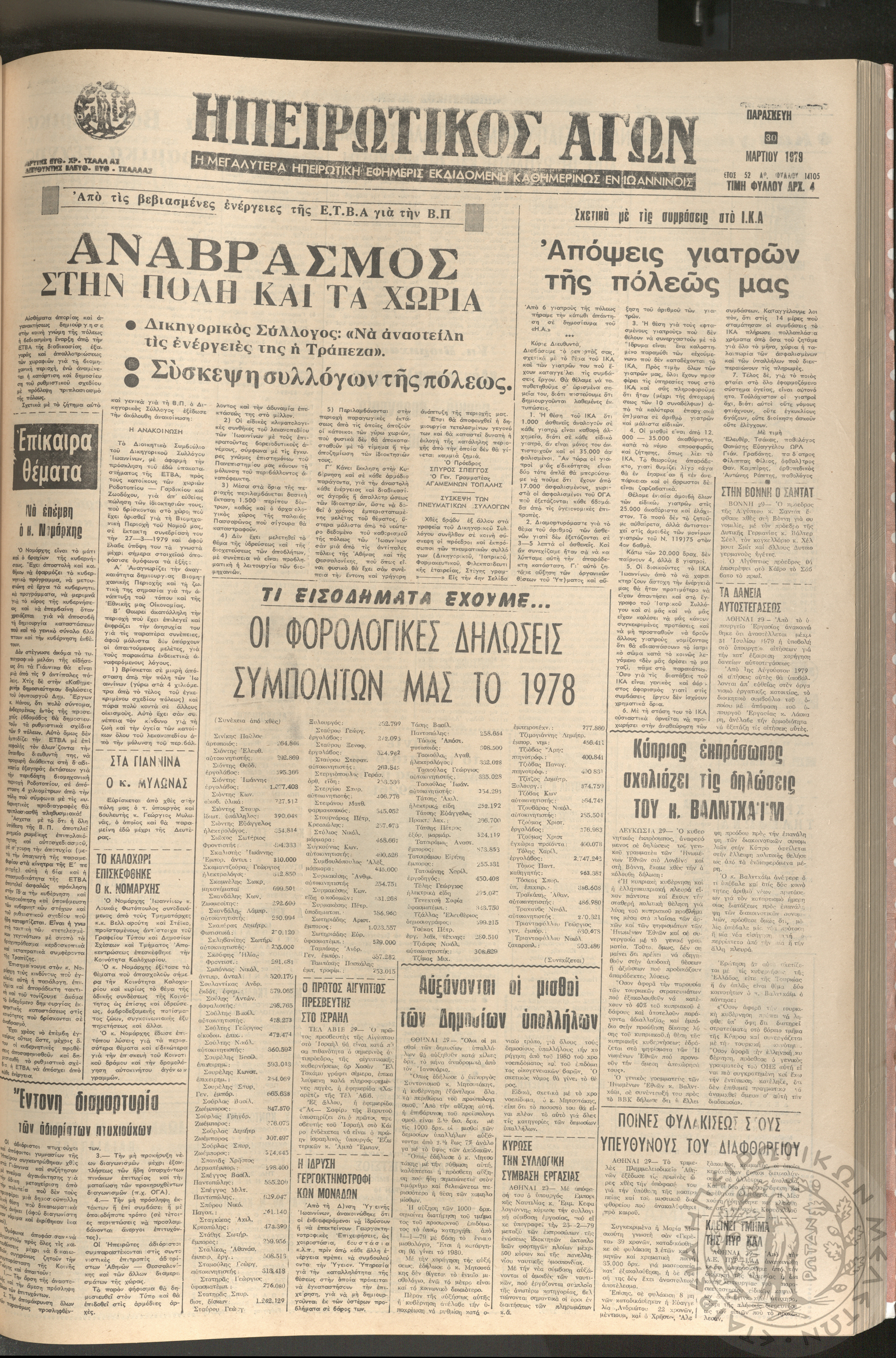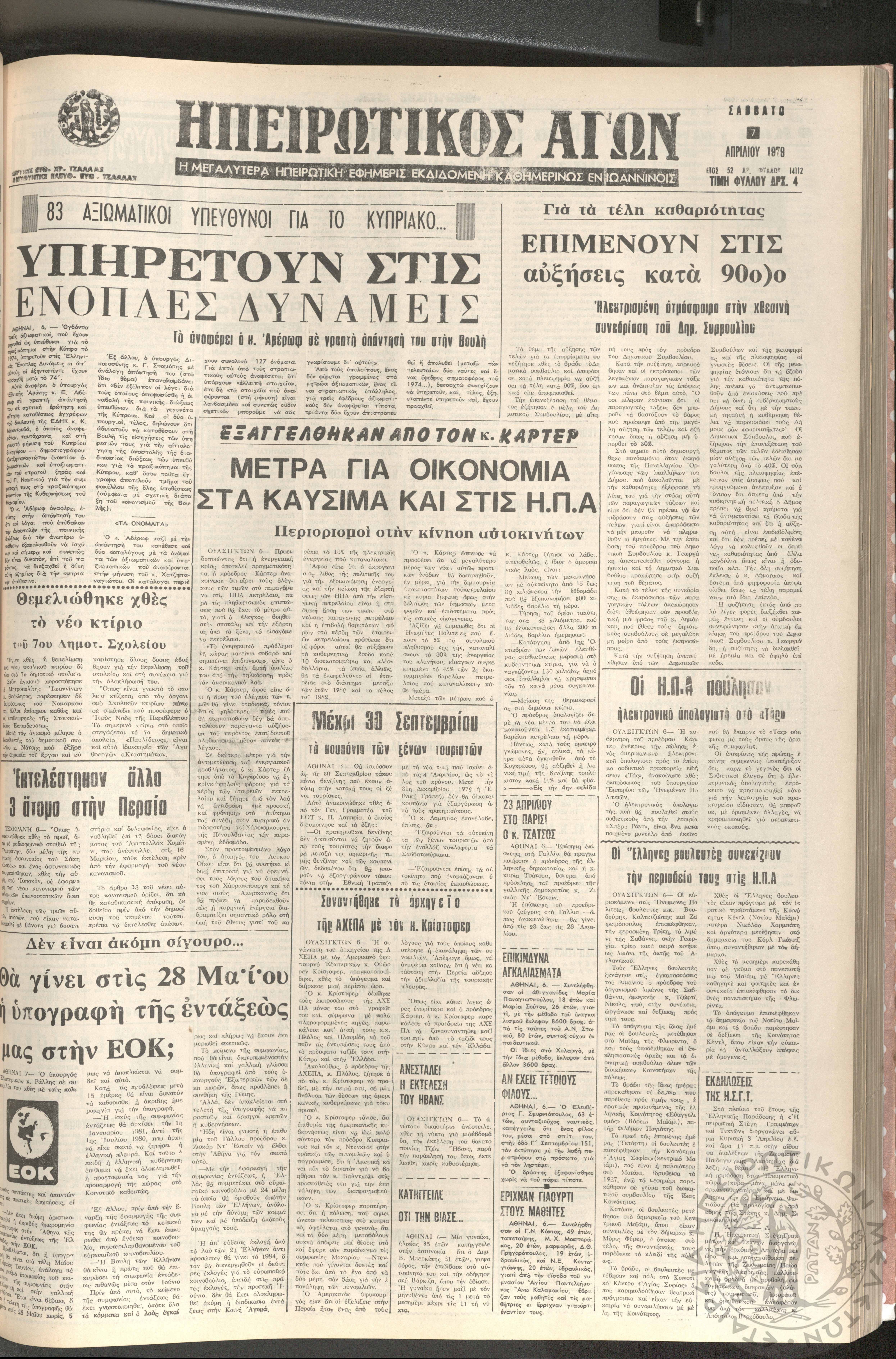 Ηπειρωτικός Αγών: η μεγαλυτέρα Ηπειρωτική εφημερίς εκδιδομένη καθημερινώς εν Ιωαννίνοις, 1979, φ. 14104Έτος 52, φ. 14104...