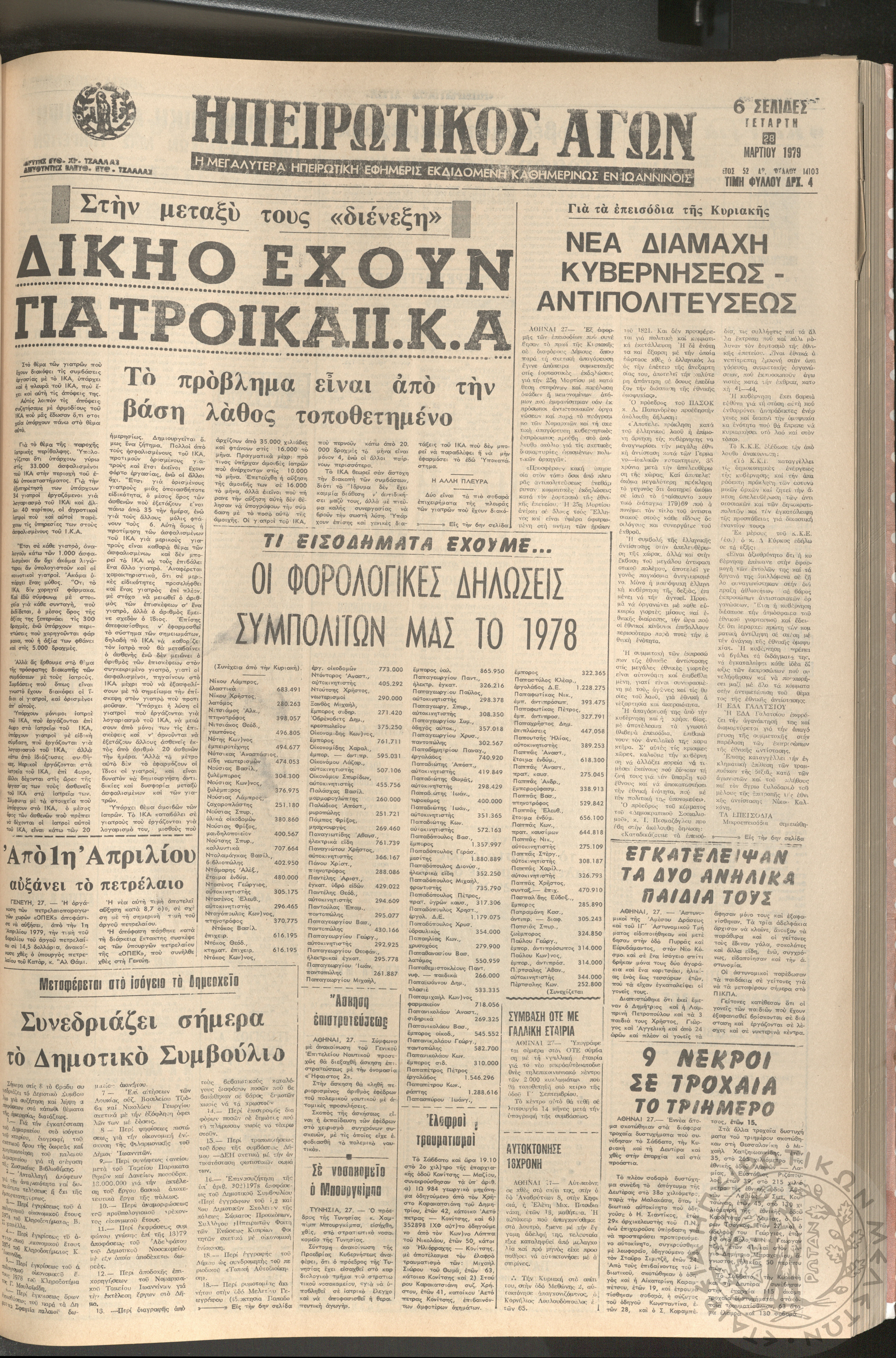 Ηπειρωτικός Αγών: η μεγαλυτέρα Ηπειρωτική εφημερίς εκδιδομένη καθημερινώς εν Ιωαννίνοις, 1979, φ. 14103Έτος 52, φ. 14103...
