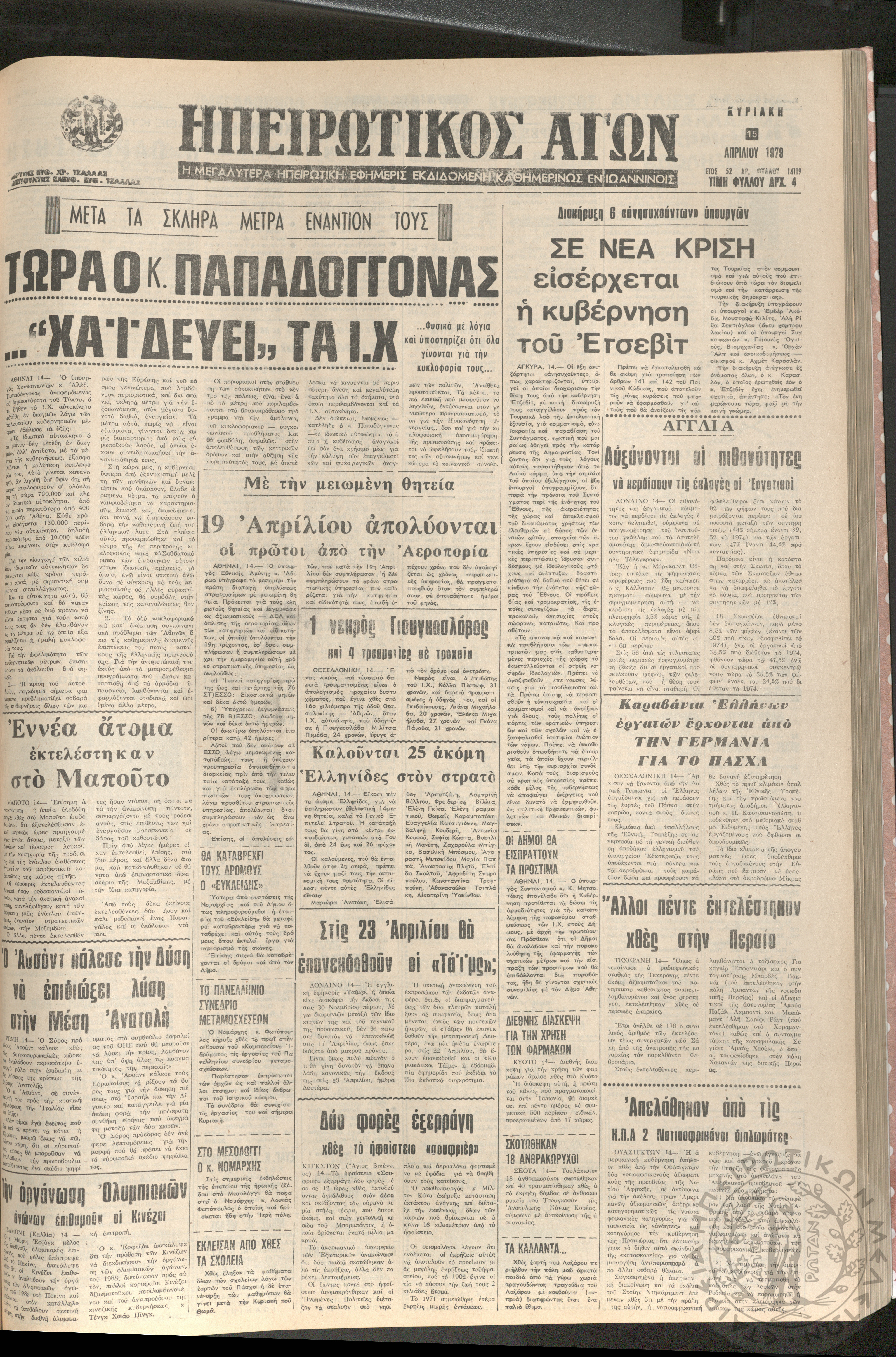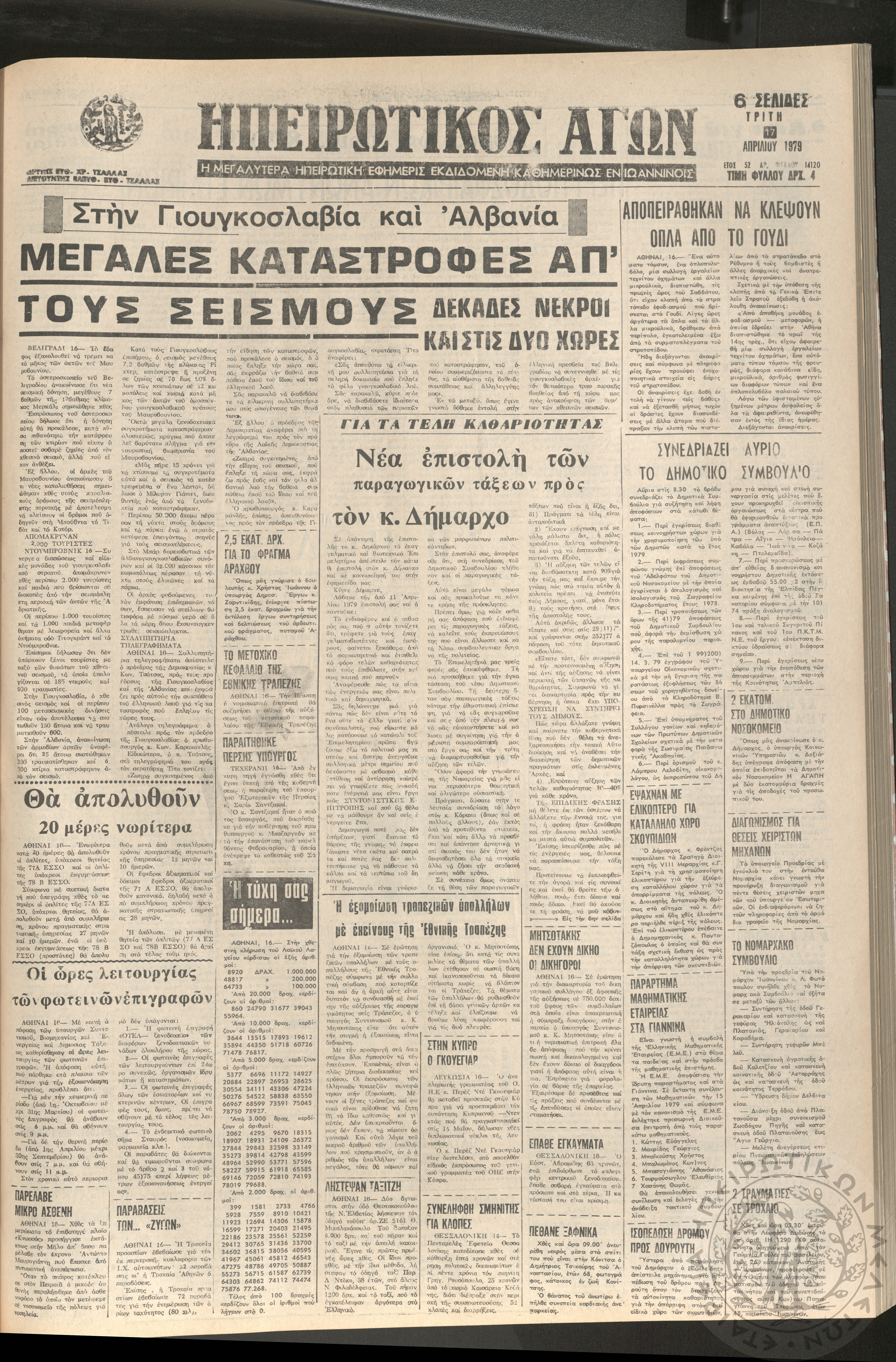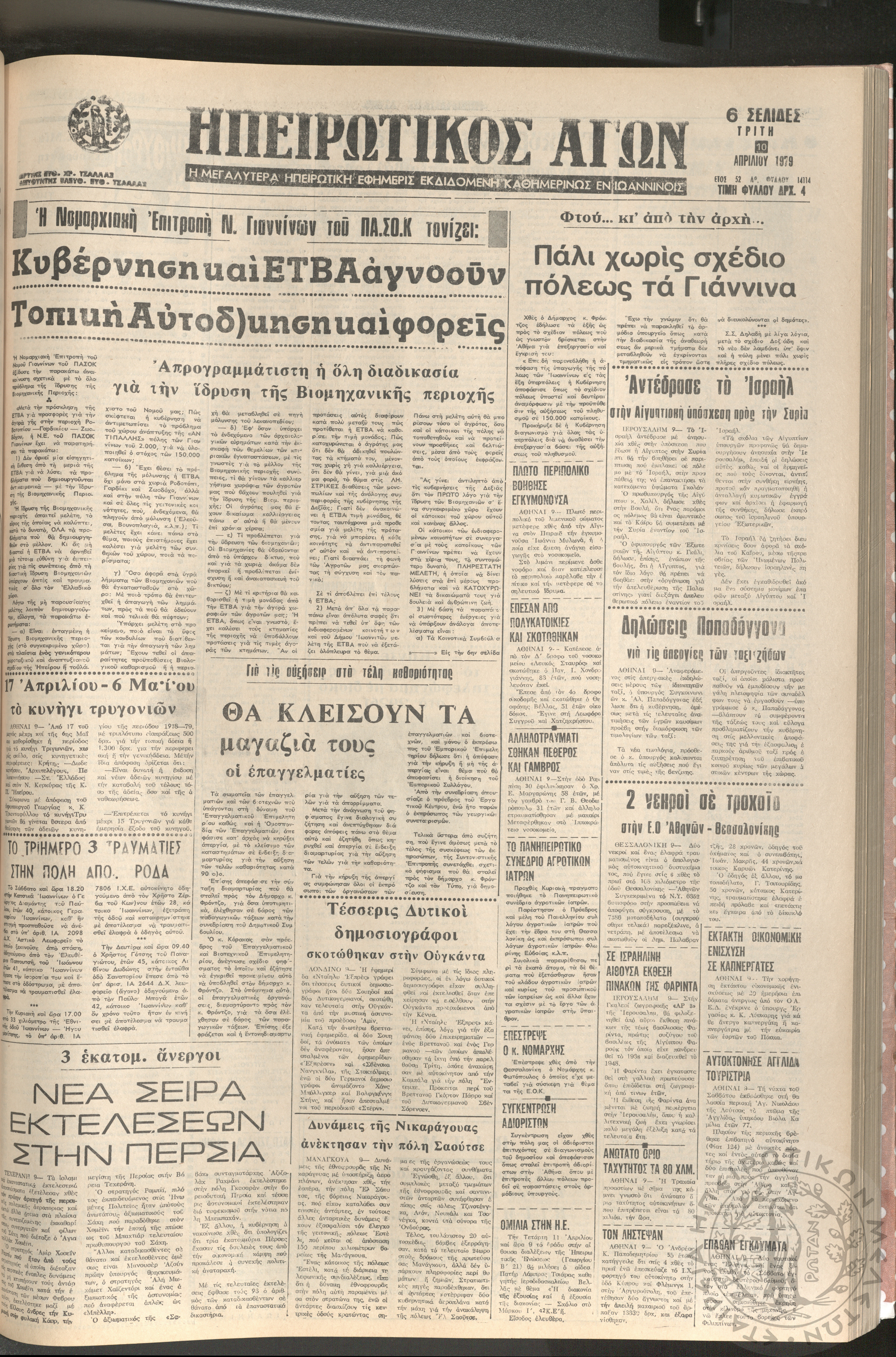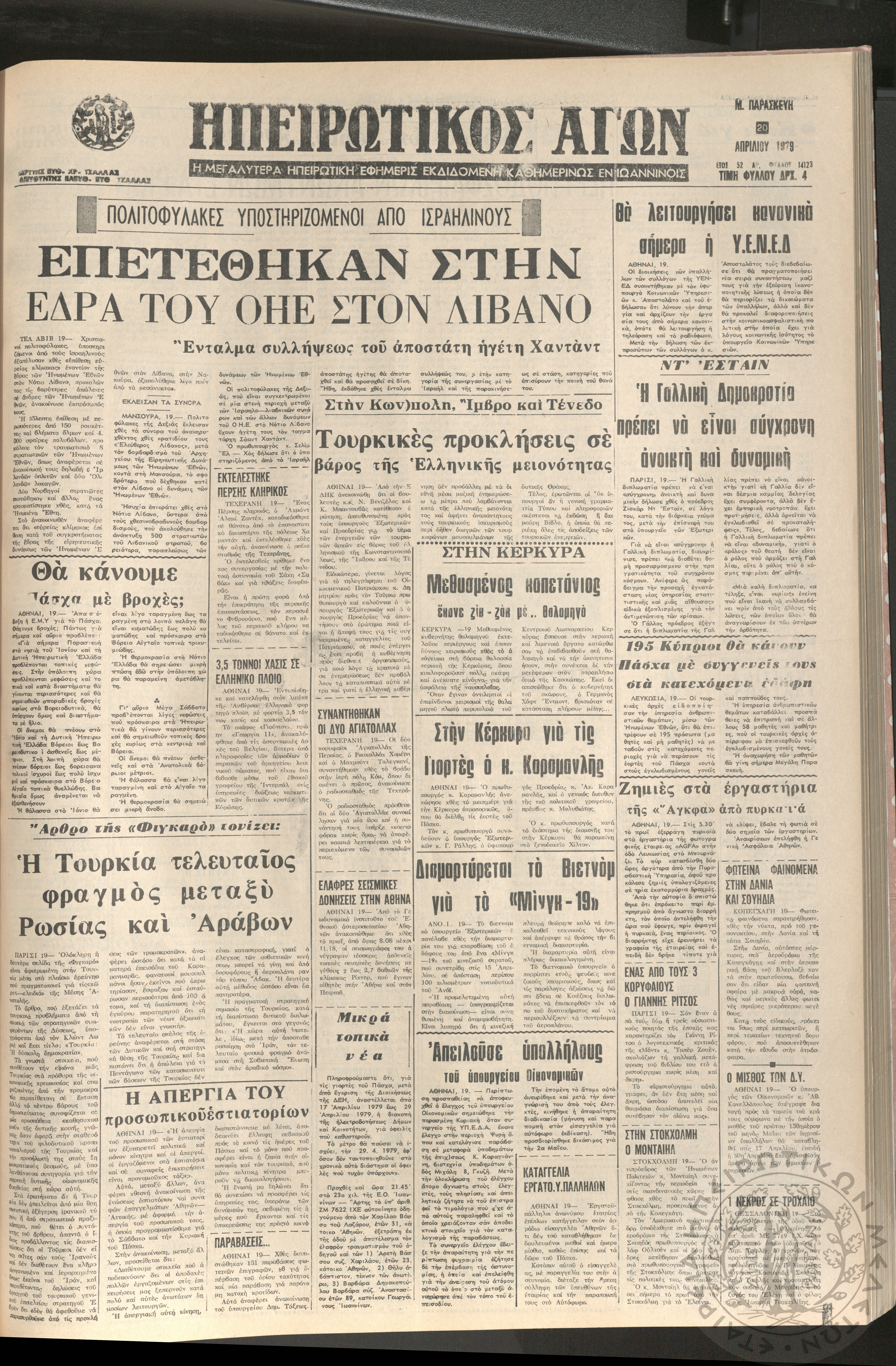 Ηπειρωτικός Αγών: η μεγαλυτέρα Ηπειρωτική εφημερίς εκδιδομένη καθημερινώς εν Ιωαννίνοις, 1979, φ. 14120Έτος 52, φ. 14120...