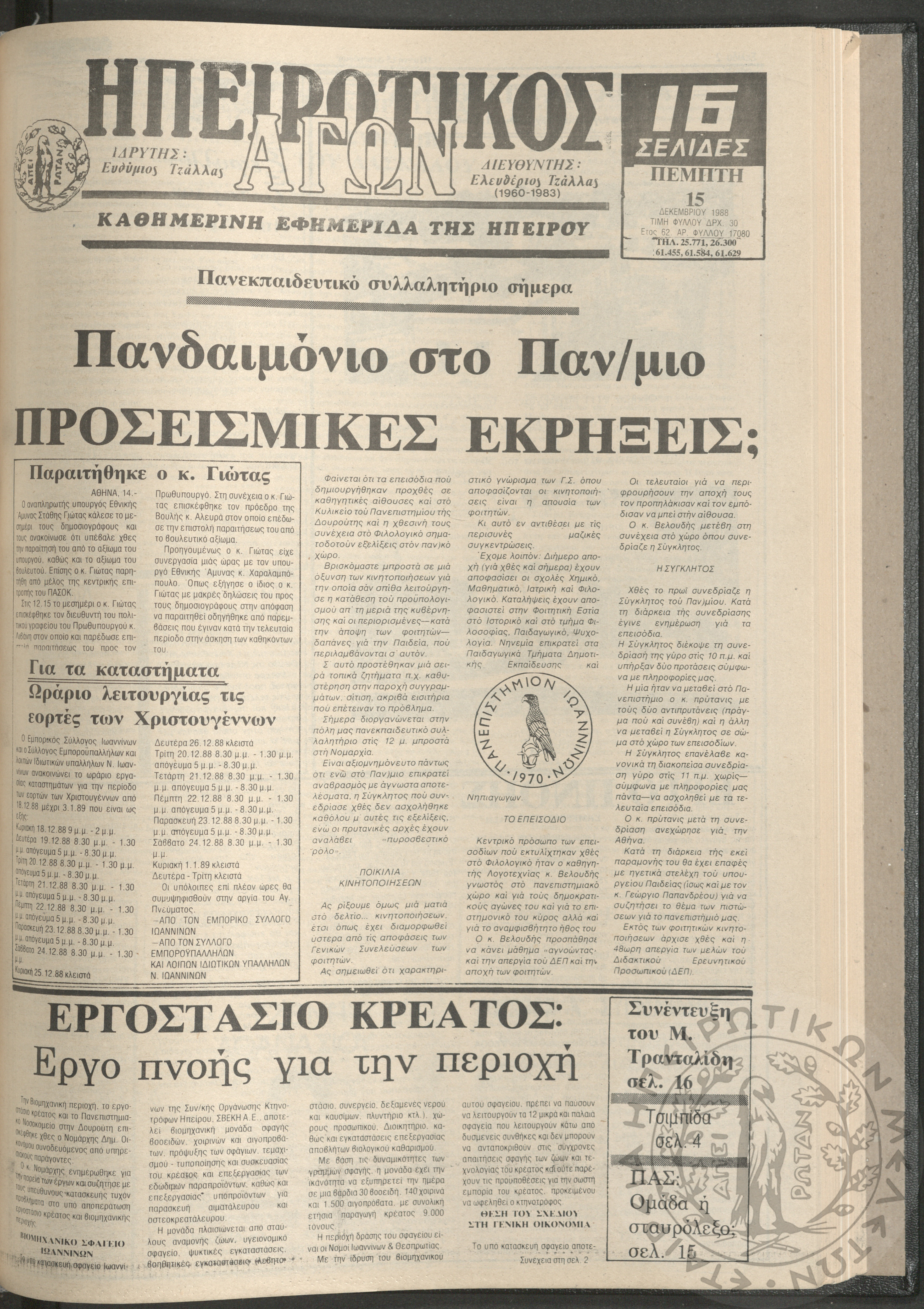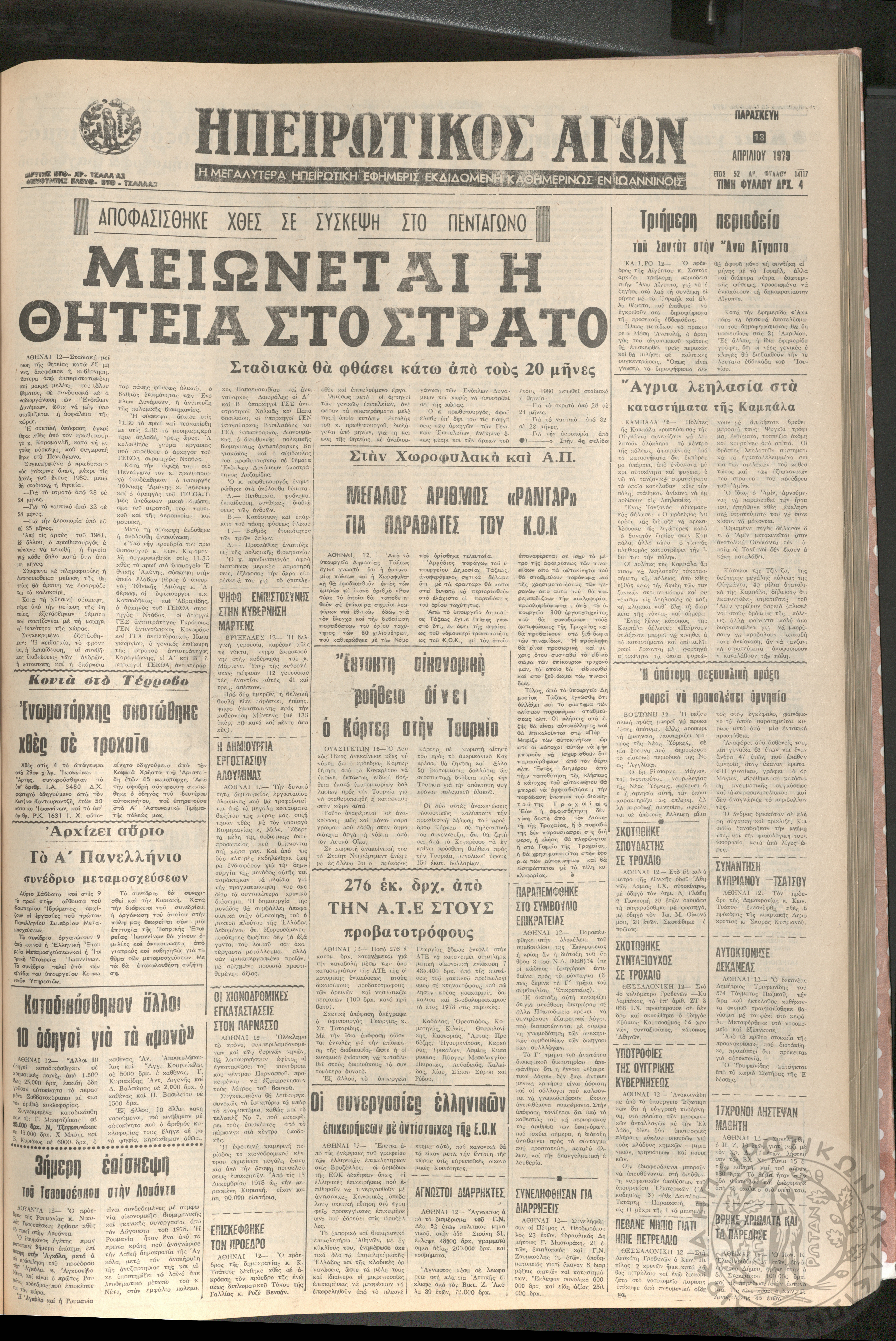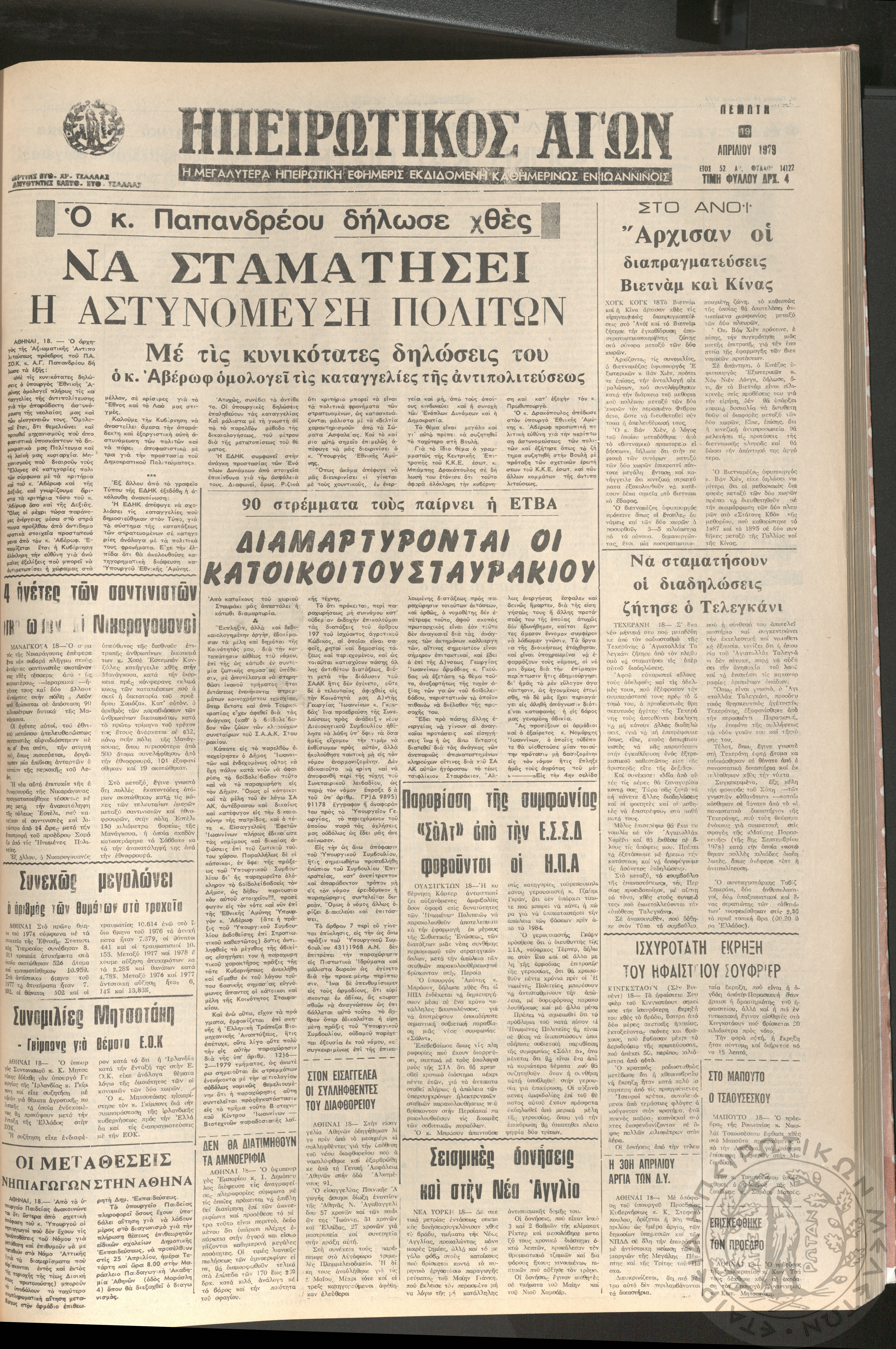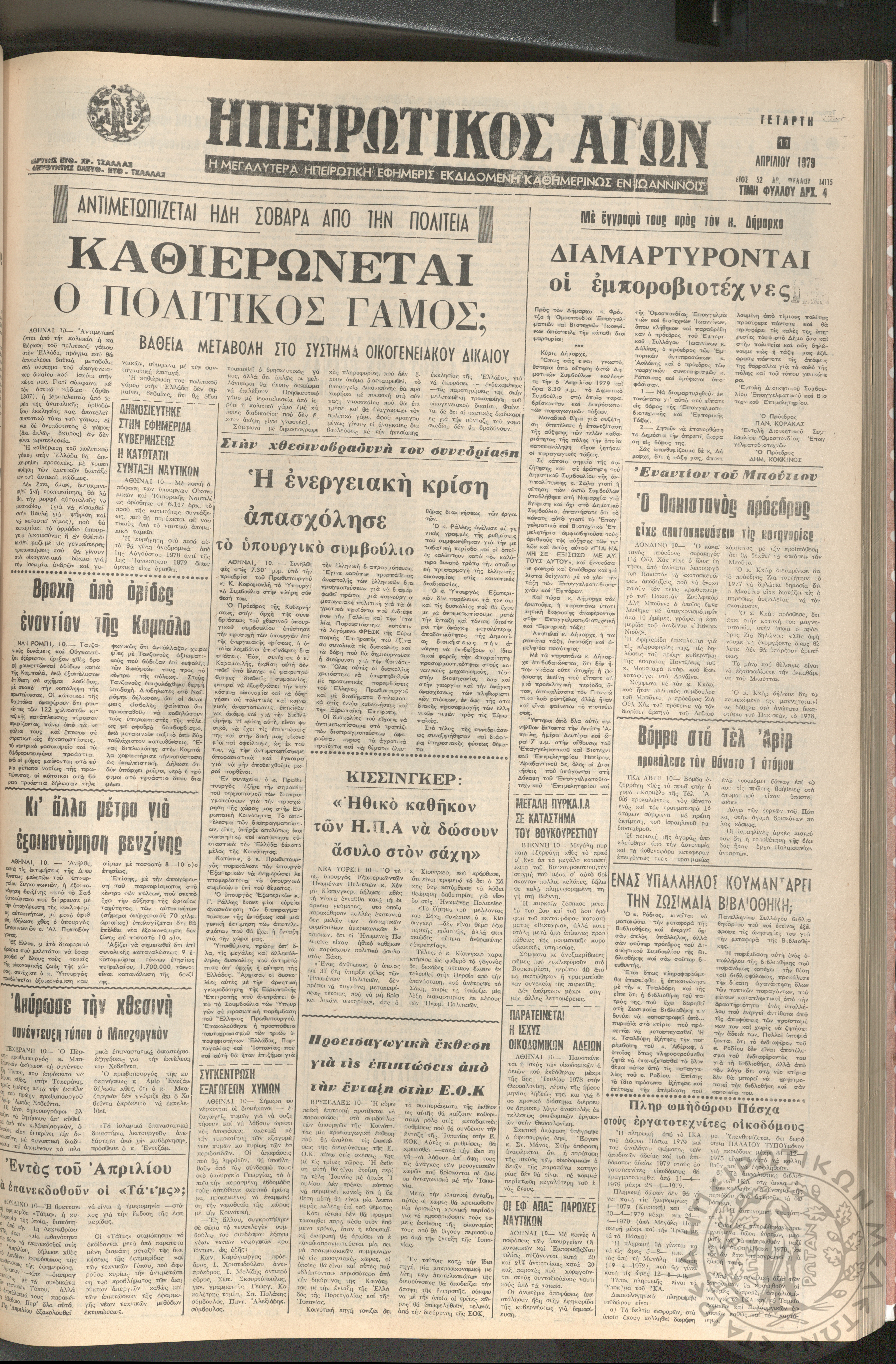 Ηπειρωτικός Αγών: η μεγαλυτέρα Ηπειρωτική εφημερίς εκδιδομένη καθημερινώς εν Ιωαννίνοις, 1979, φ. 14120Έτος 52, φ. 14120...