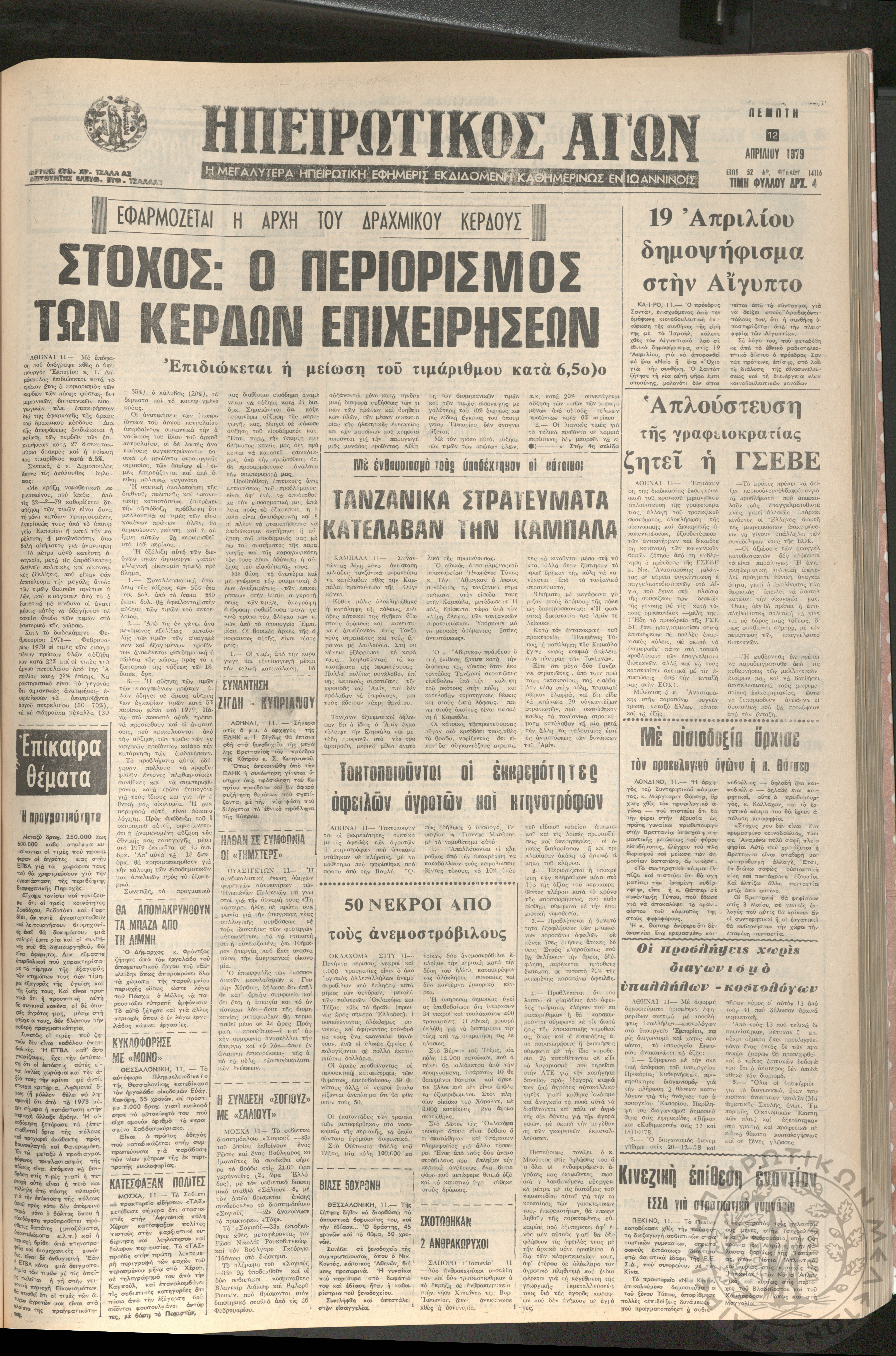 Ηπειρωτικός Αγών: η μεγαλυτέρα Ηπειρωτική εφημερίς εκδιδομένη καθημερινώς εν Ιωαννίνοις, 1979, φ. 14117Έτος 52, φ. 14117...
